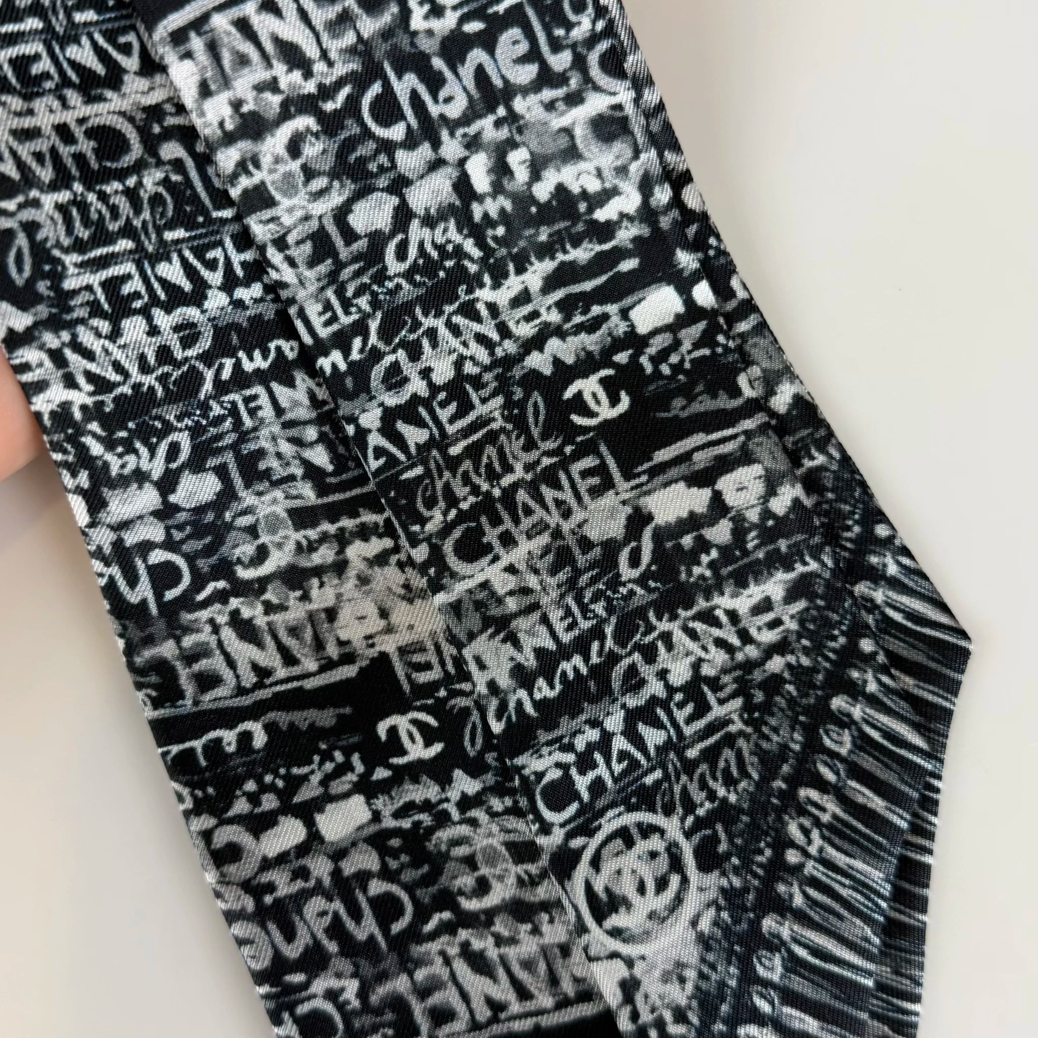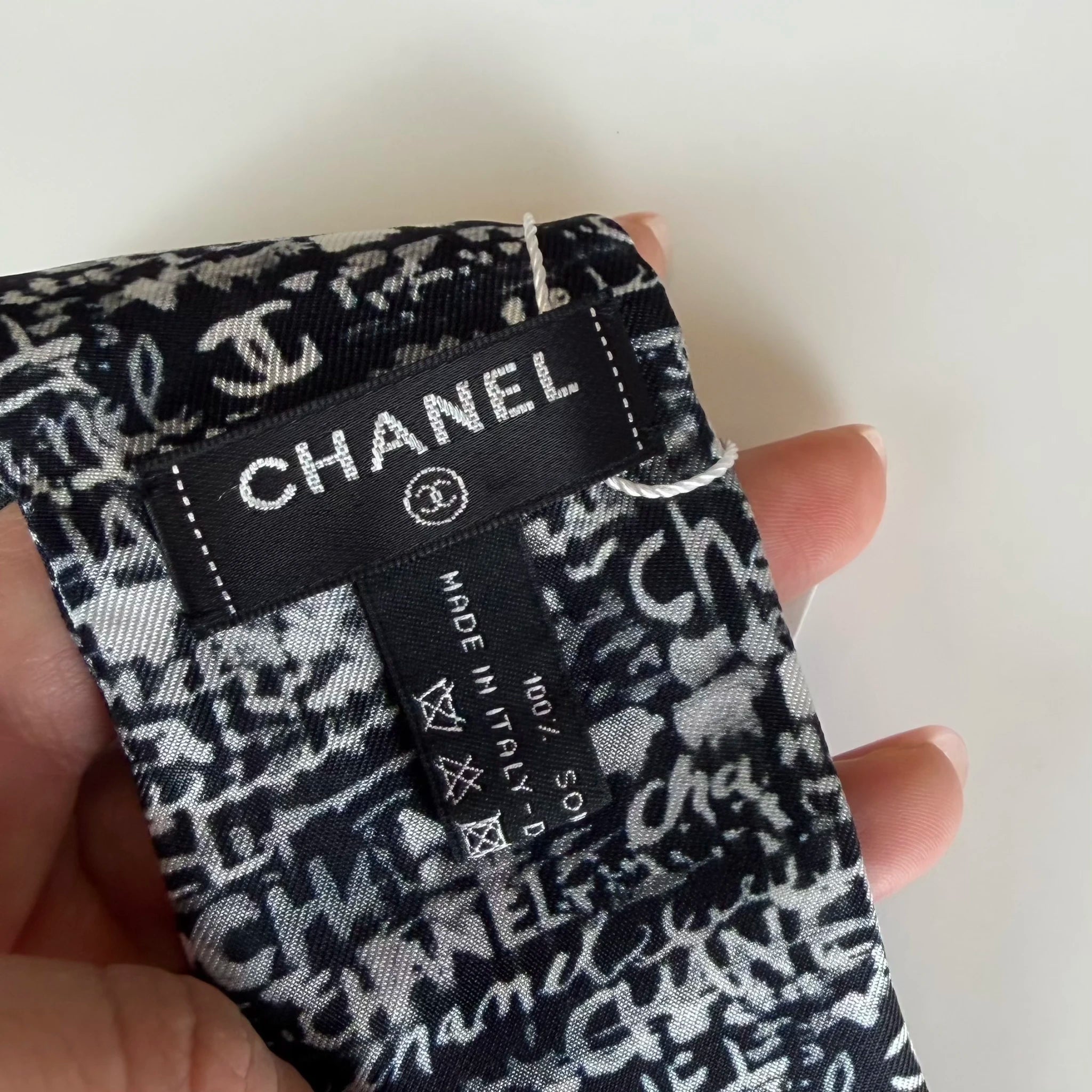 Chanel Logo Print Silk Slim Bandeau Scarf