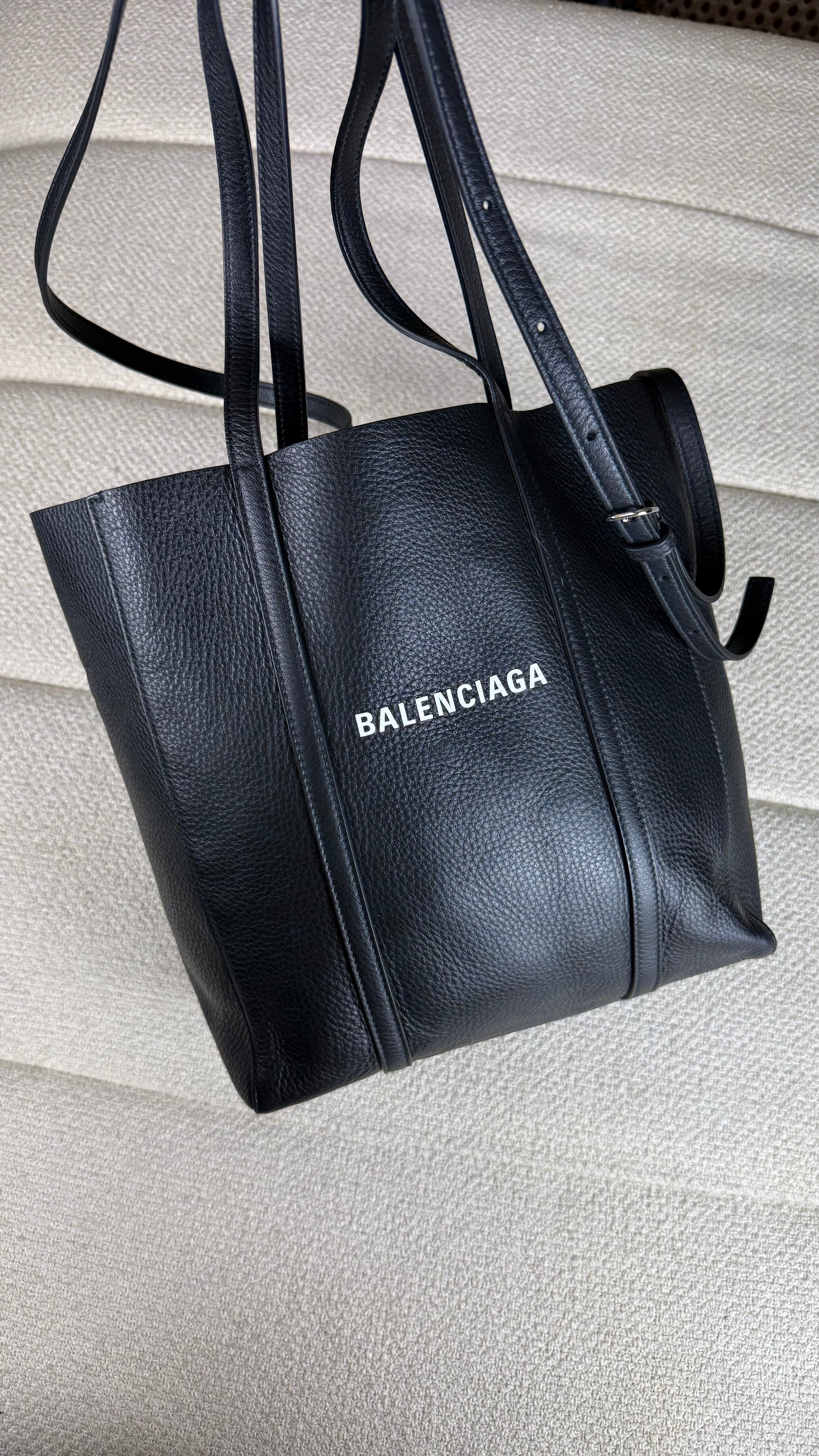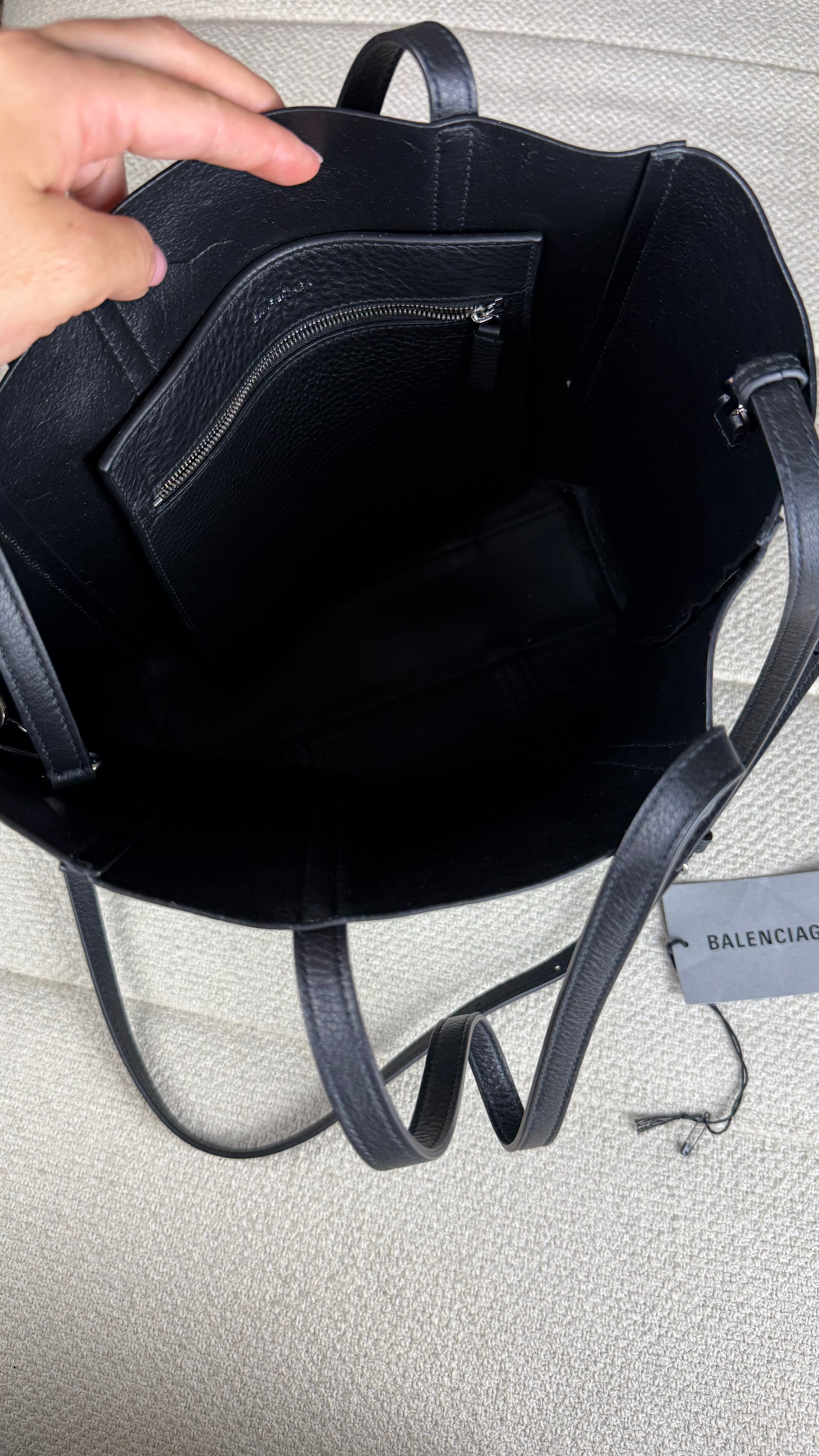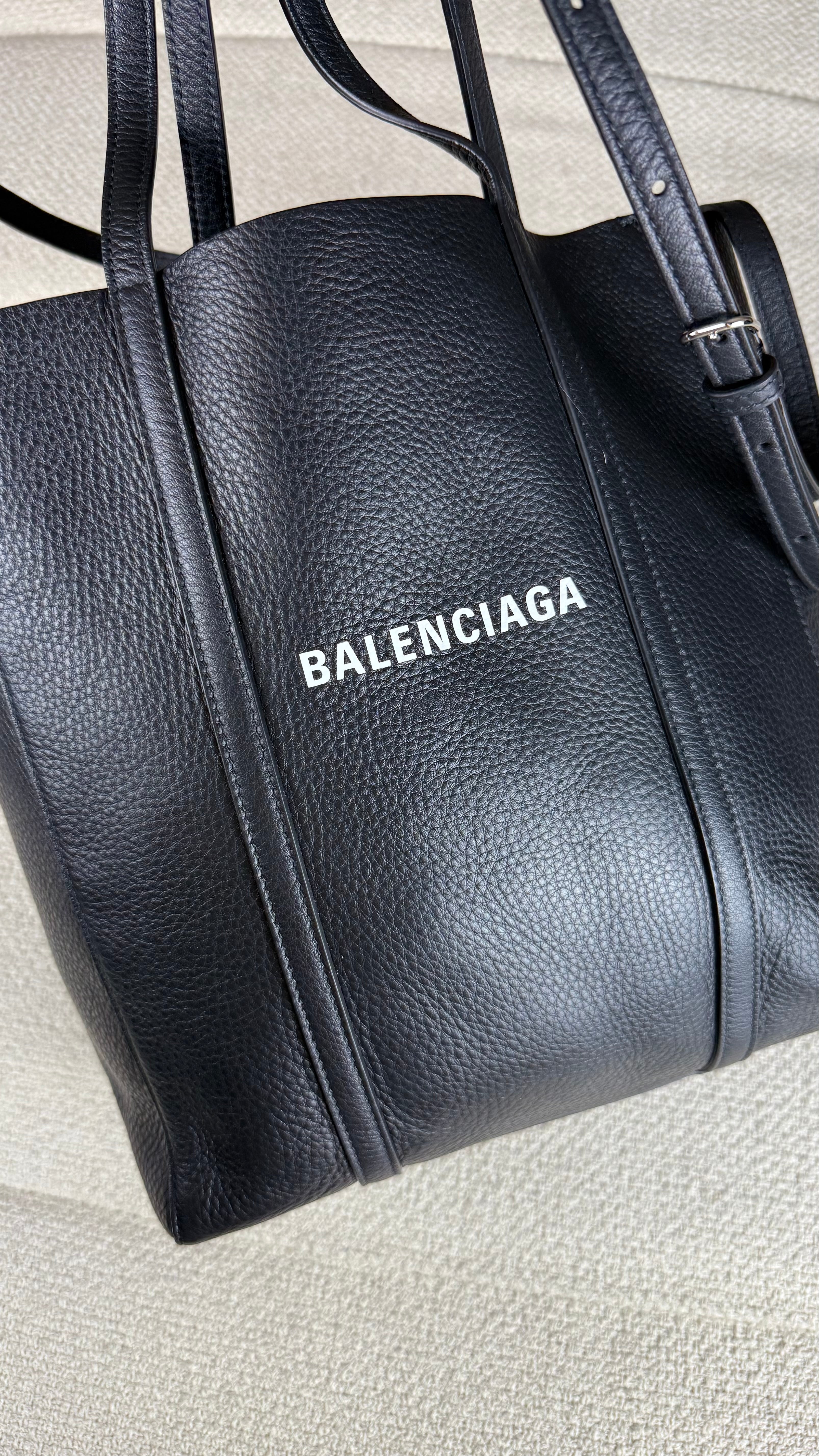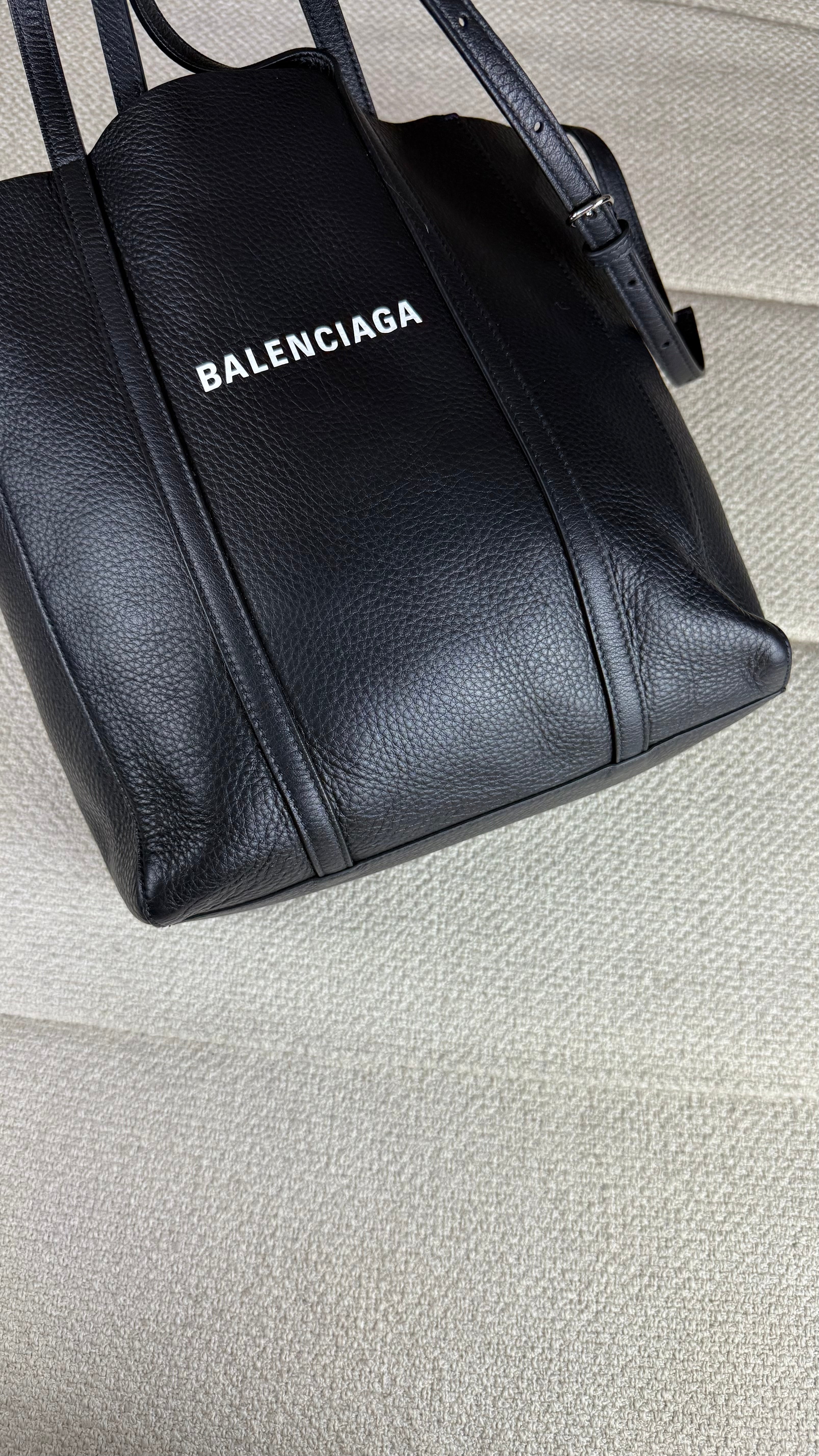 Elegância e funcionalidade em um só acessório. Produzida em couro legítimo com textura granulada, esta tote bag Balenciaga apresenta design minimalista e atemporal. O modelo conta com duas alças finas para uso confortável no ombro e estampa frontal com o logo da marca em branco, conferindo um toque moderno e sofisticado. Espaçosa e versátil, é ideal para acompanhar a rotina com estilo.