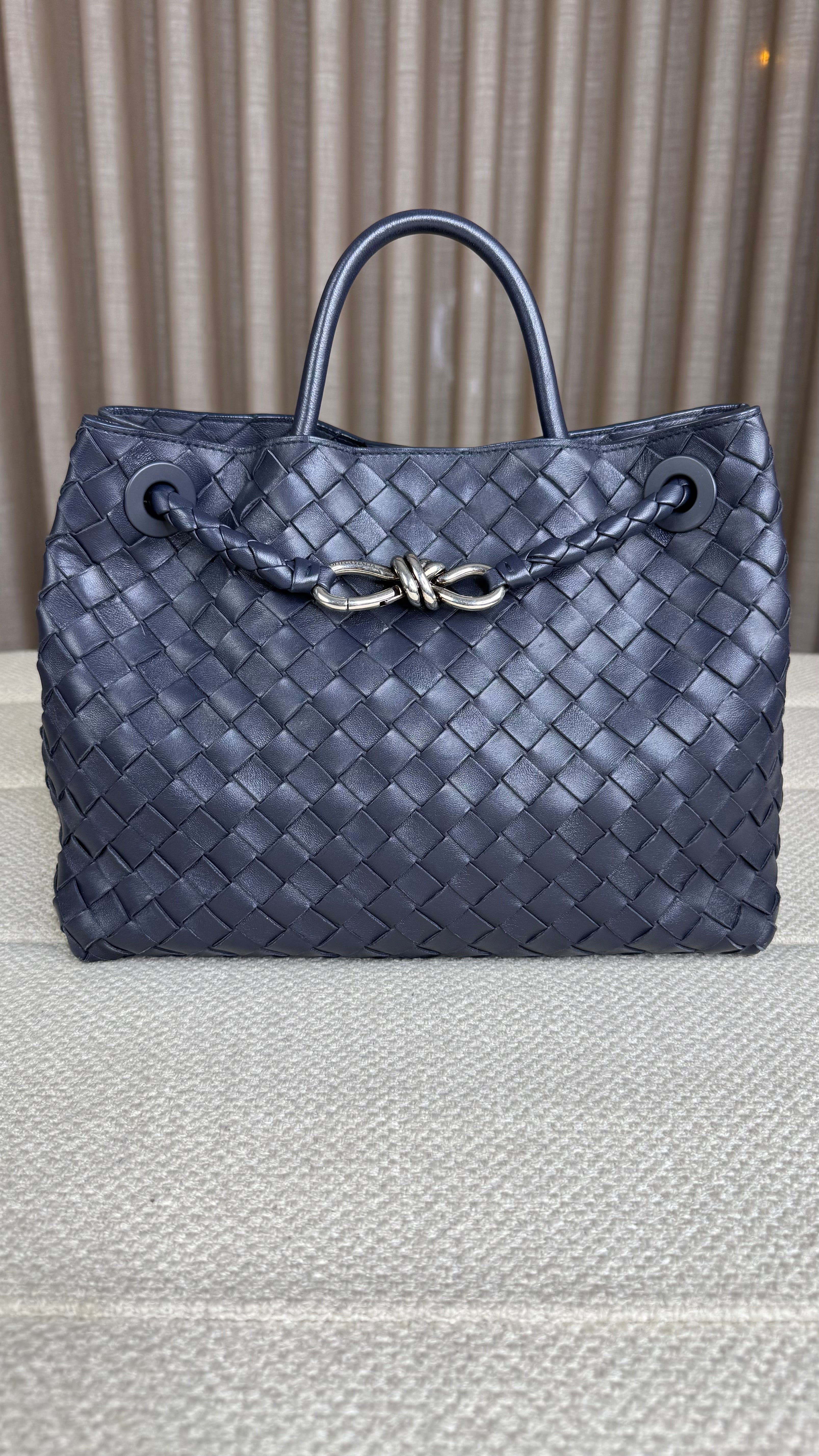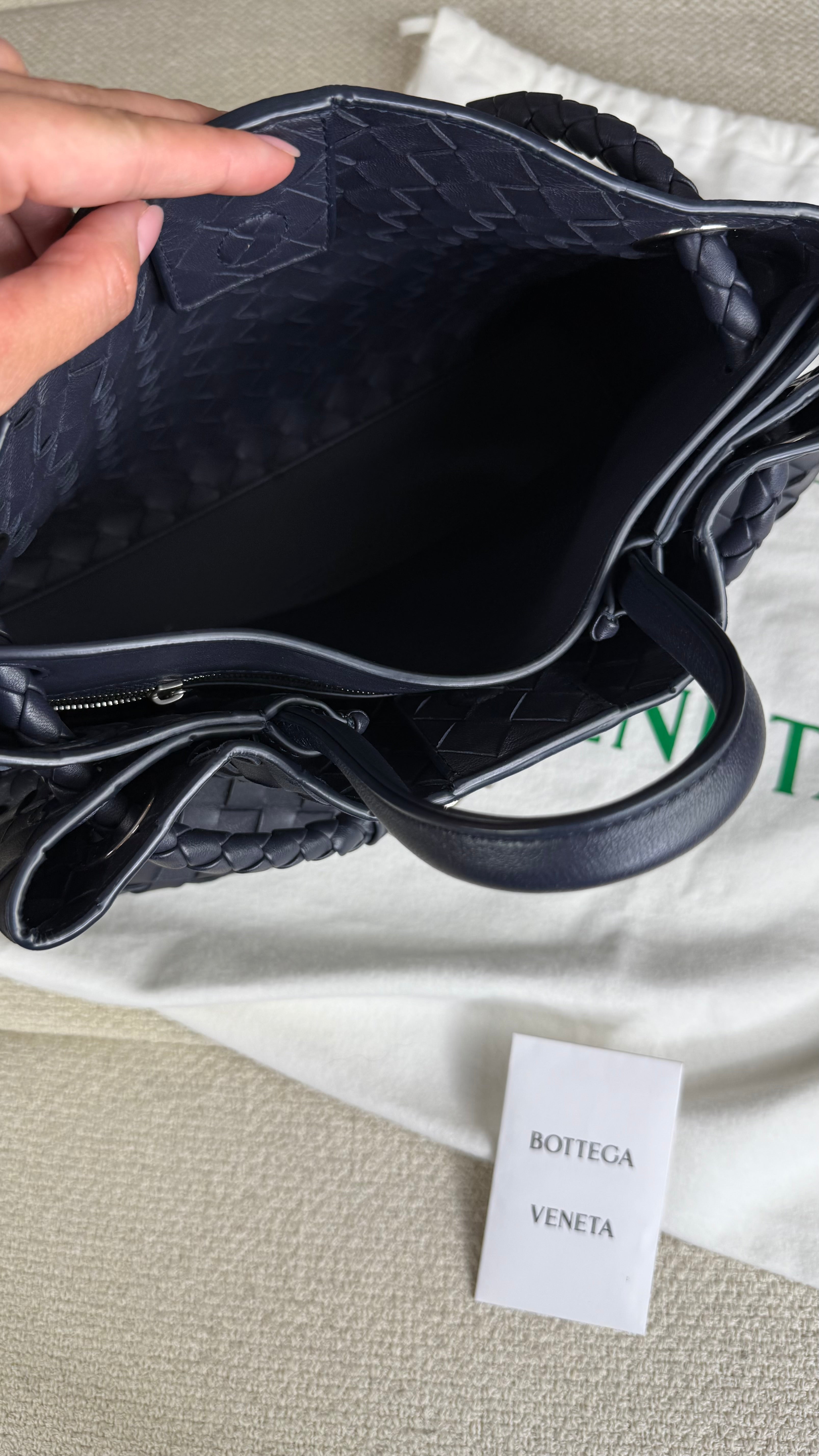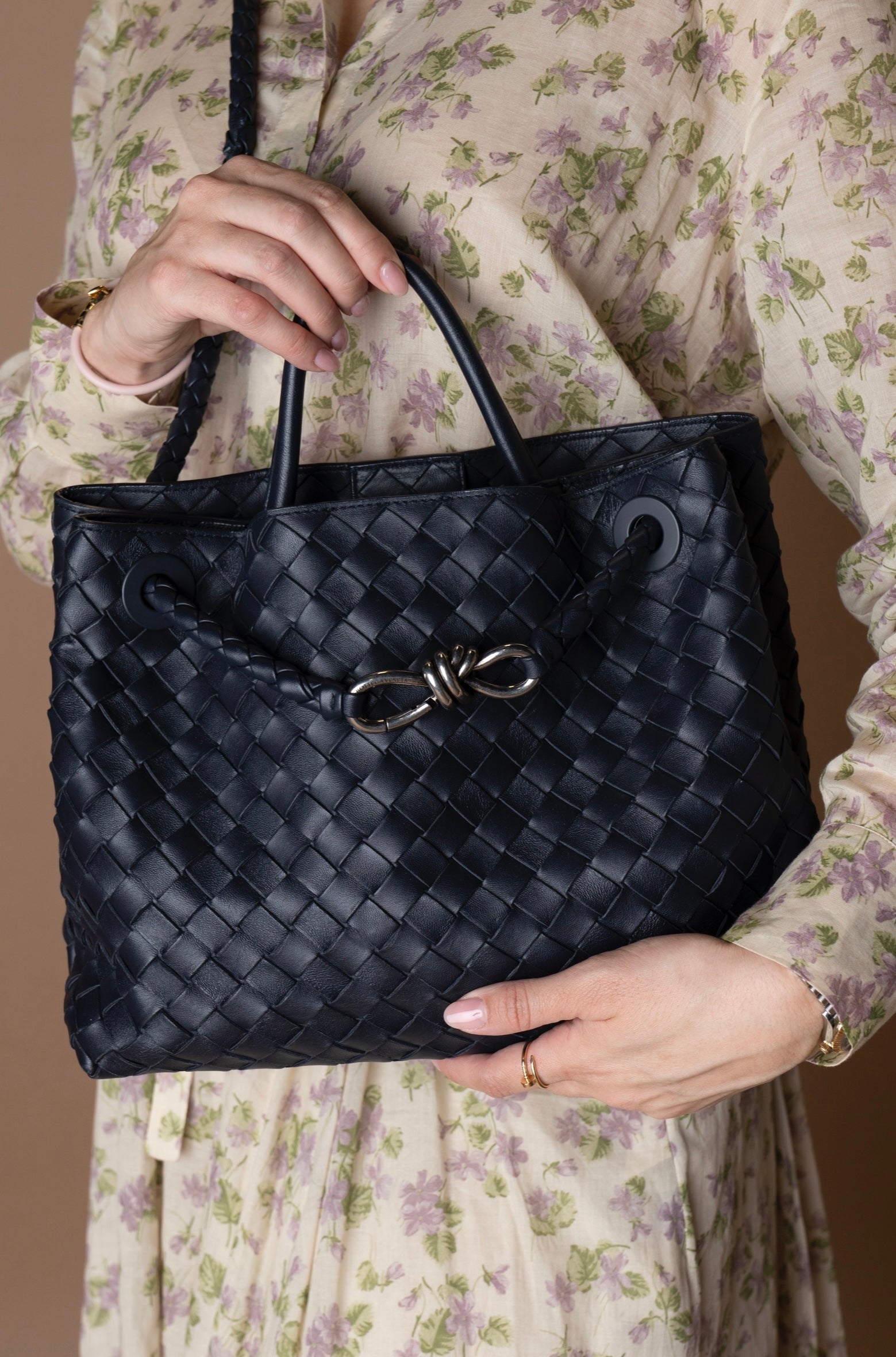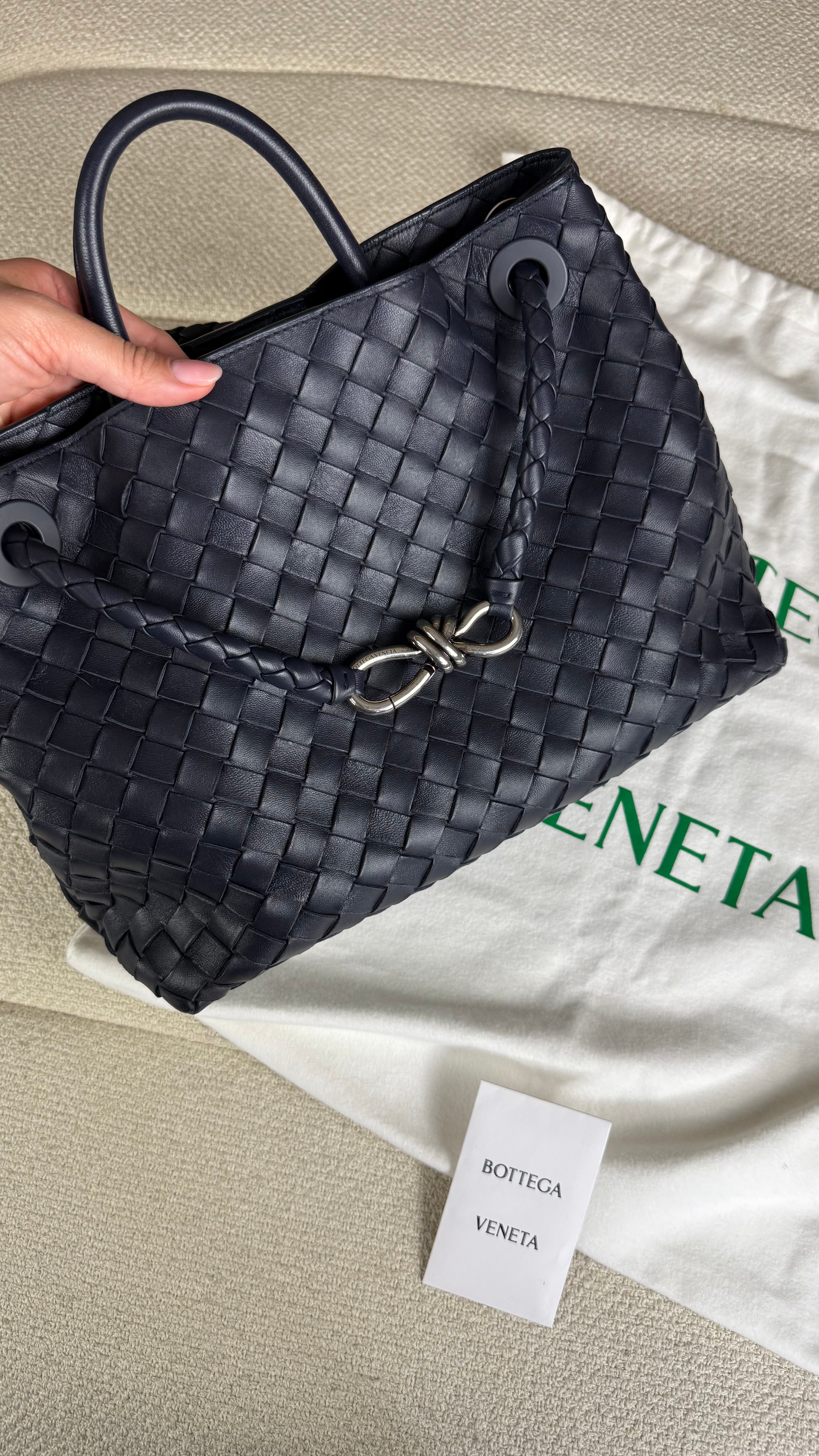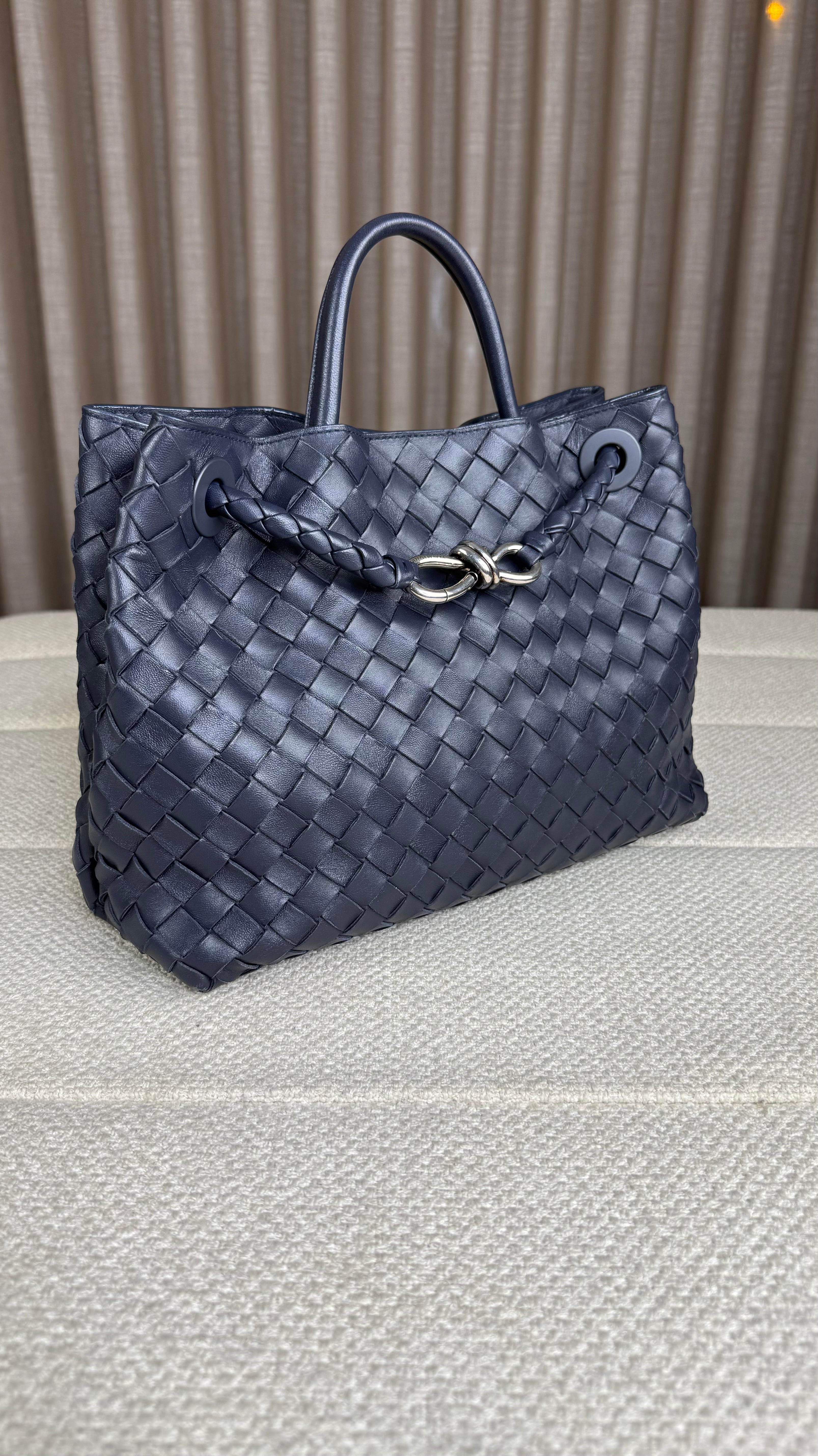 A Bottega Veneta Andiamo Medium é uma bolsa de luxo que combina a herança artesanal italiana com um design contemporâneo e funcional. O nome Andiamo, que significa “vamos” em italiano, reflete o espírito dinâmico e versátil desta peça, ideal para acompanhar o ritmo da vida moderna.