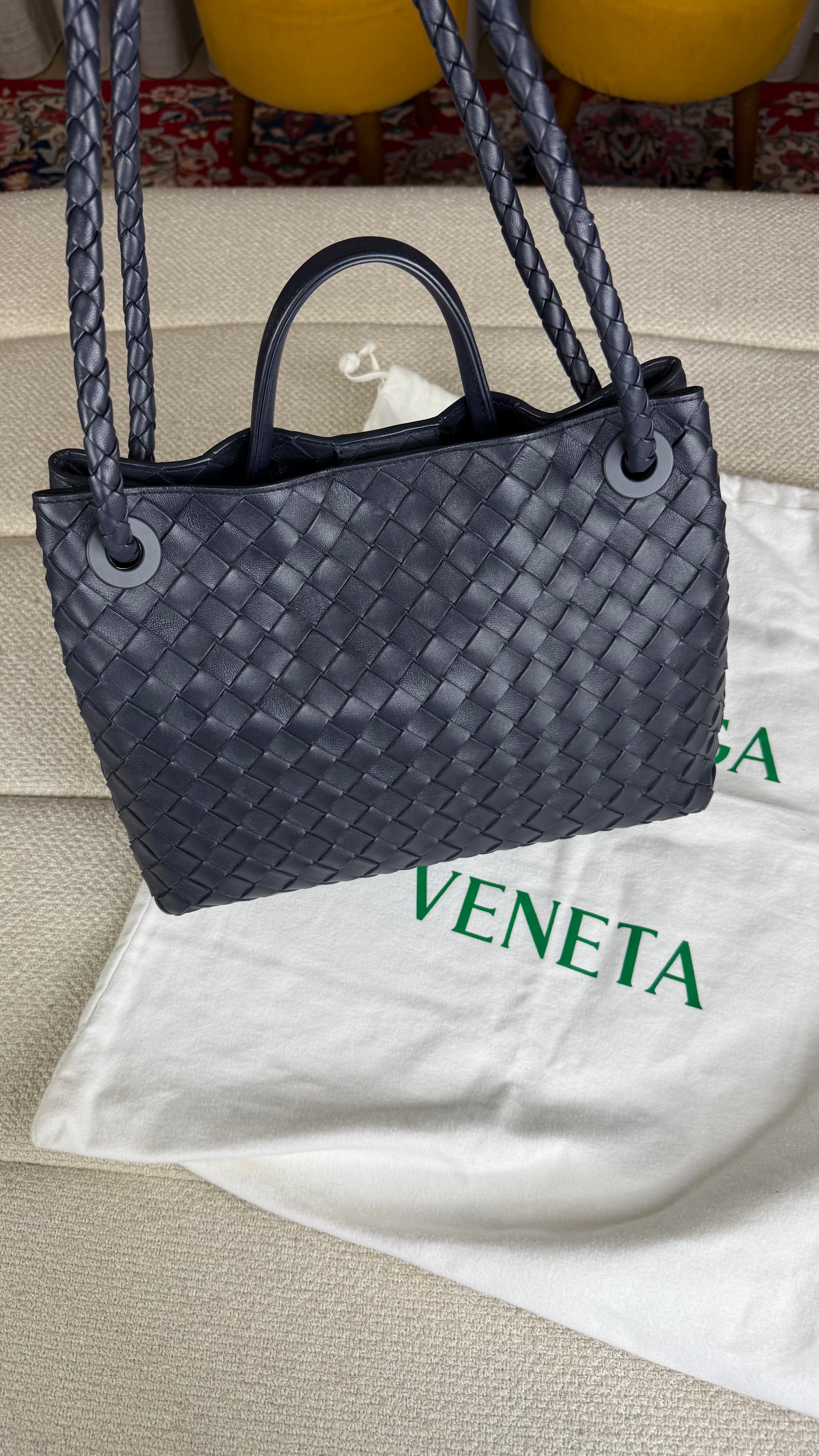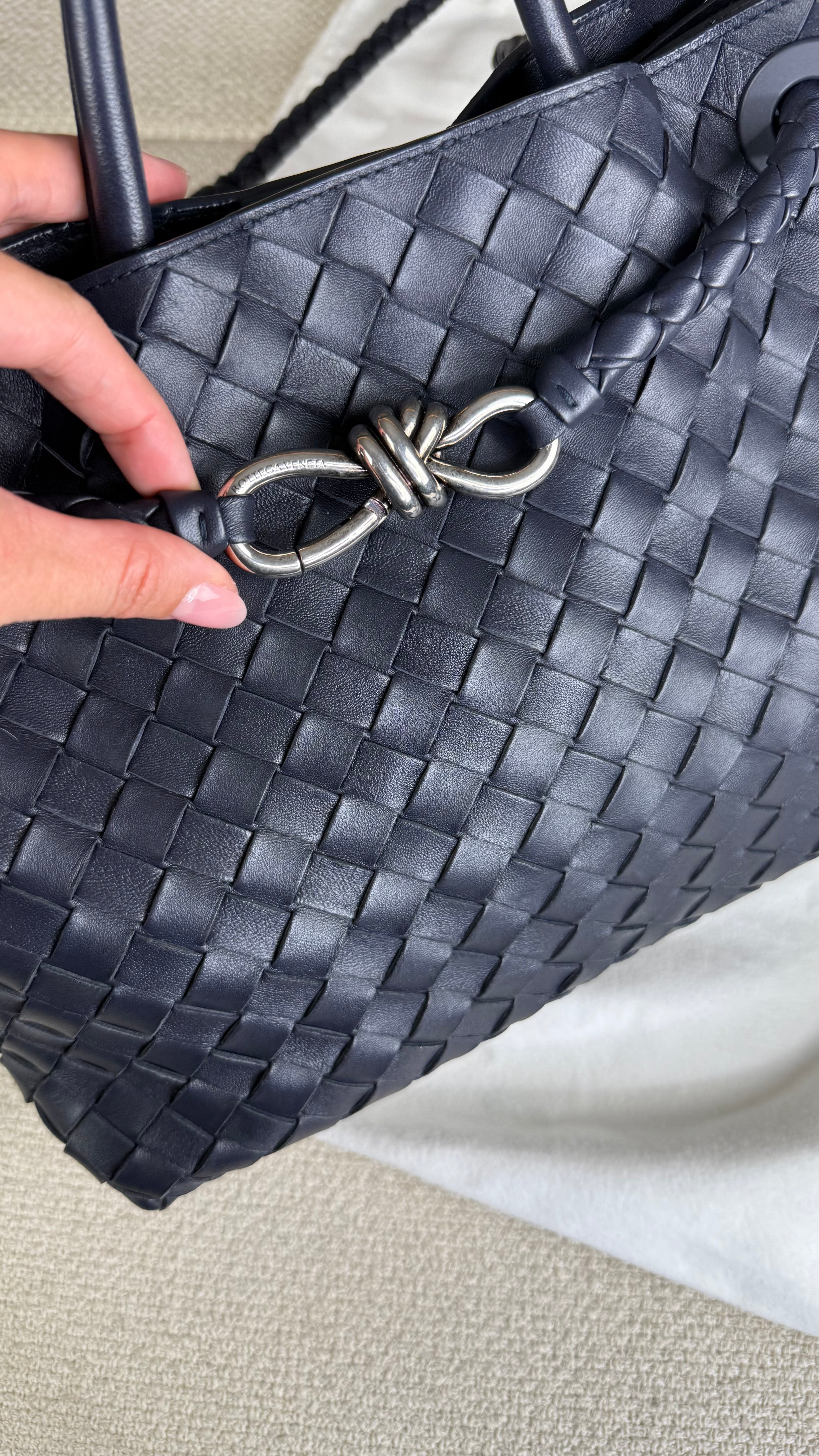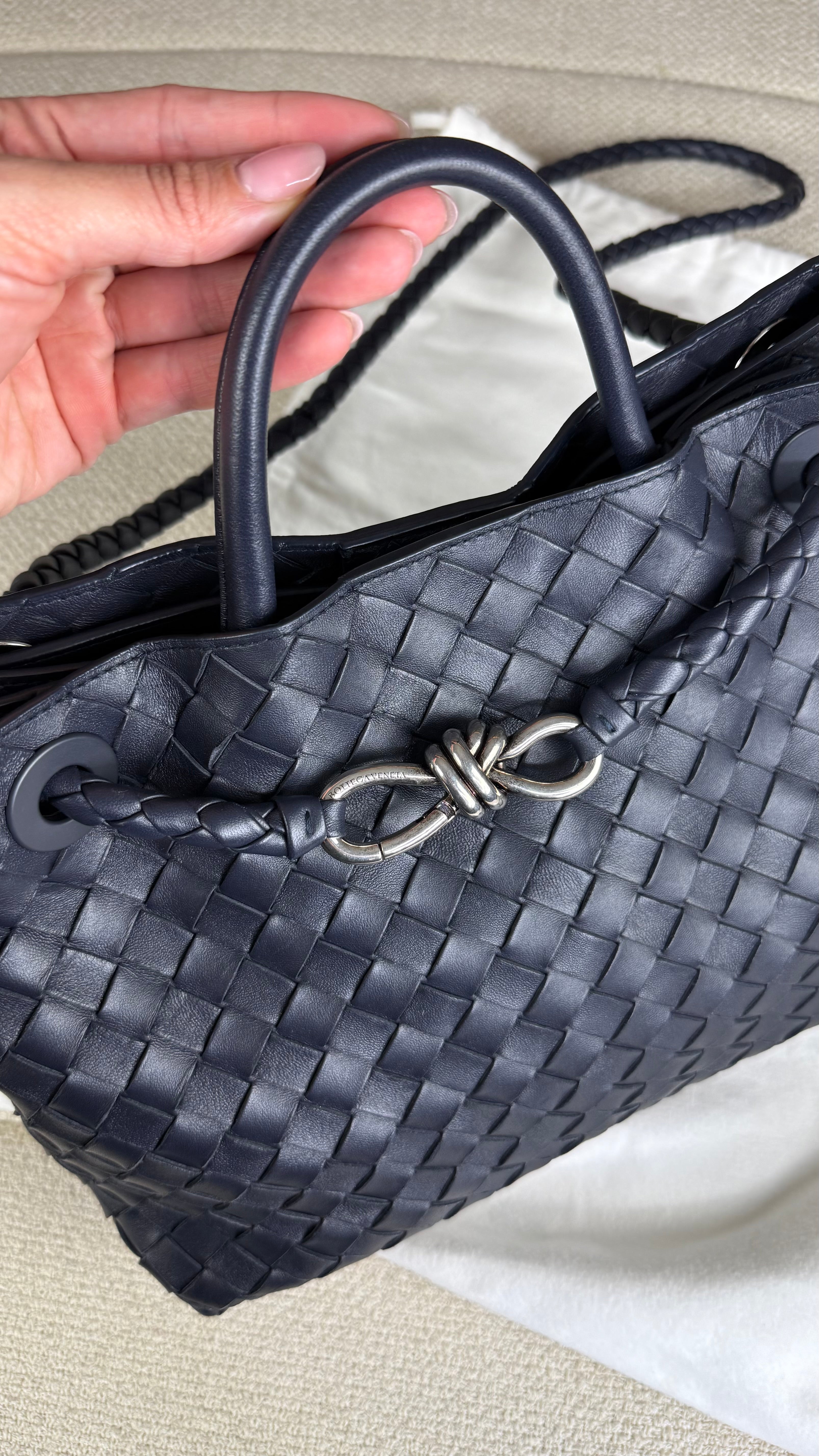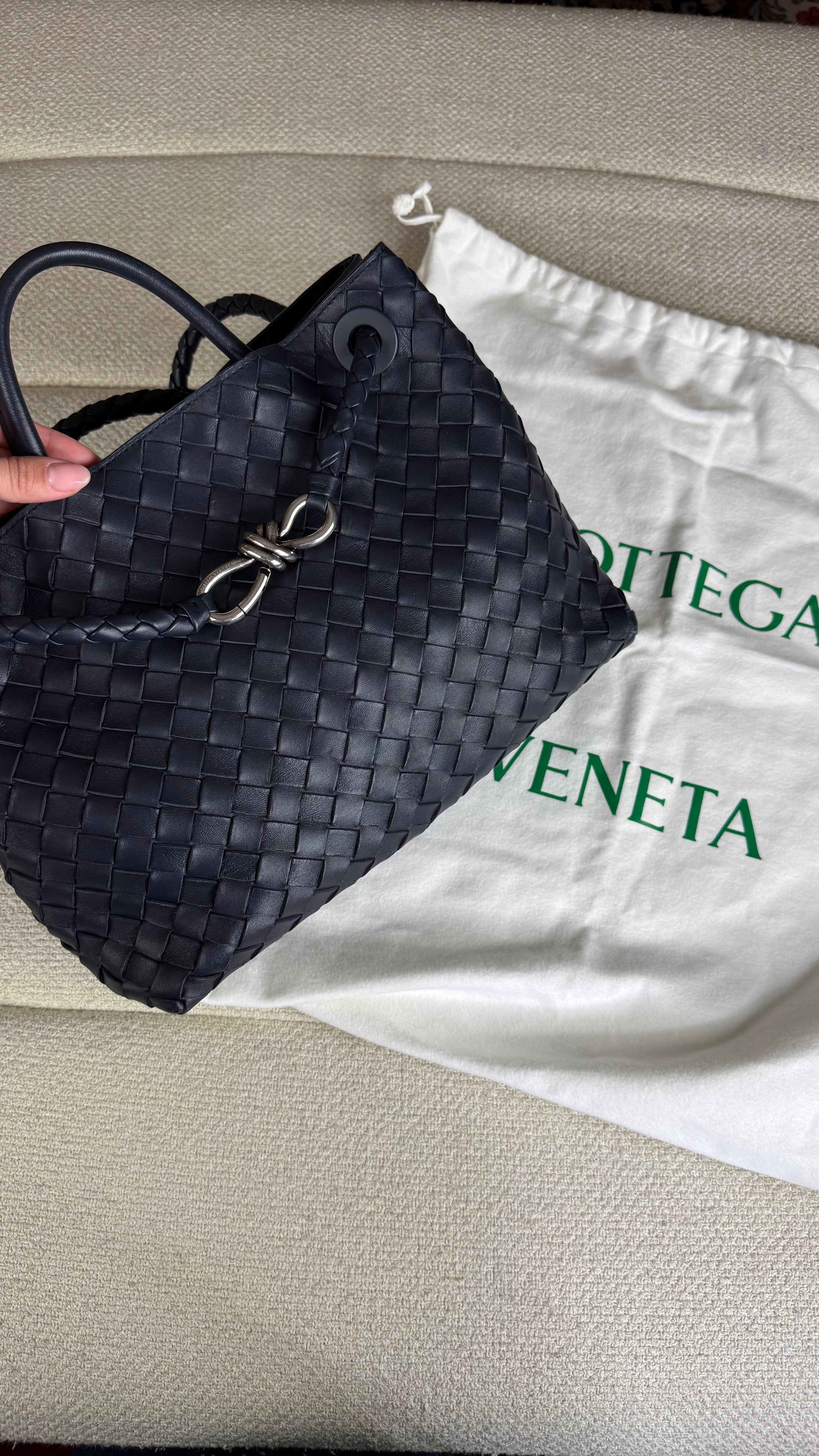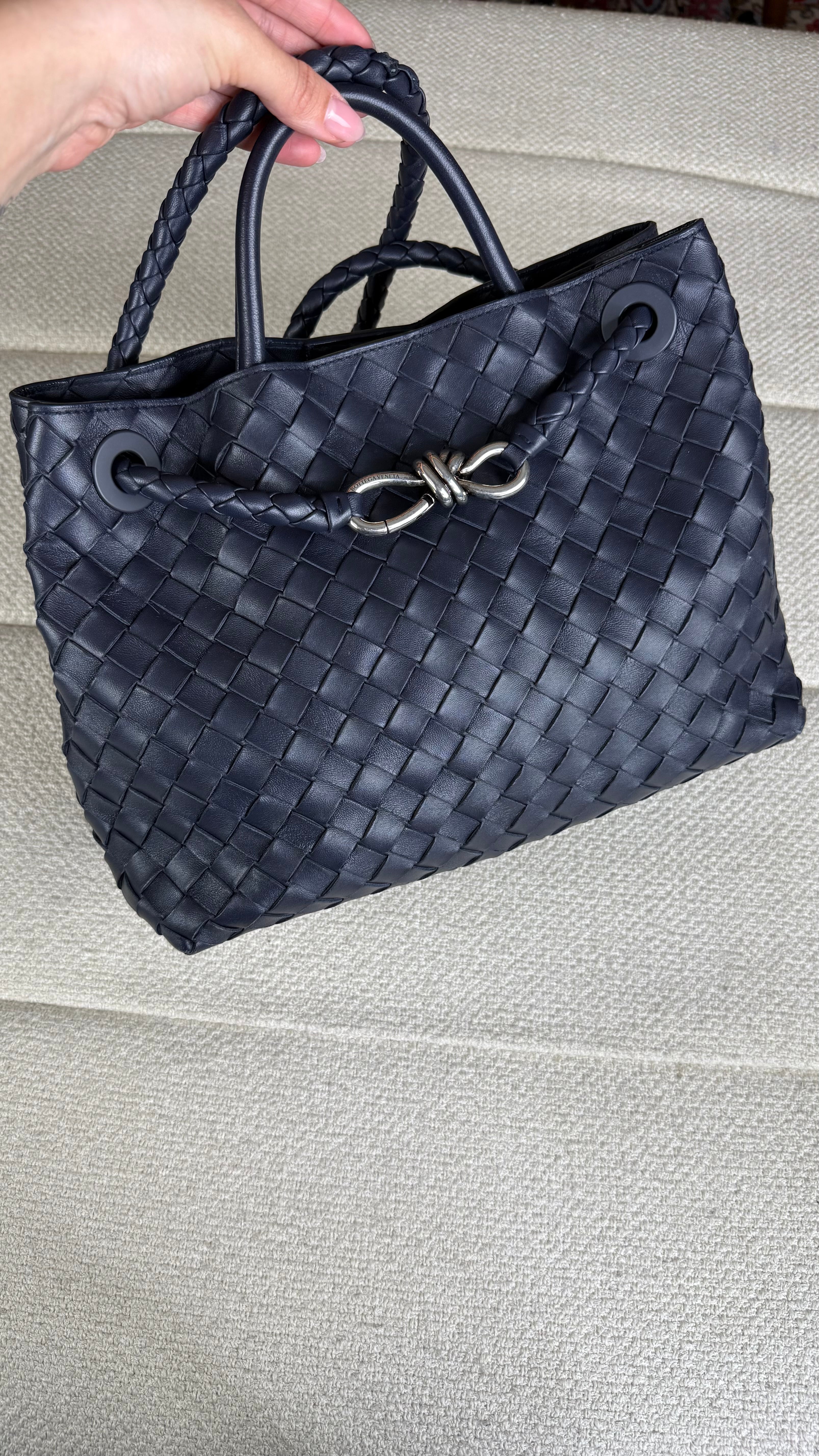 A Bottega Veneta Andiamo Medium é uma bolsa de luxo que combina a herança artesanal italiana com um design contemporâneo e funcional. O nome Andiamo, que significa “vamos” em italiano, reflete o espírito dinâmico e versátil desta peça, ideal para acompanhar o ritmo da vida moderna.