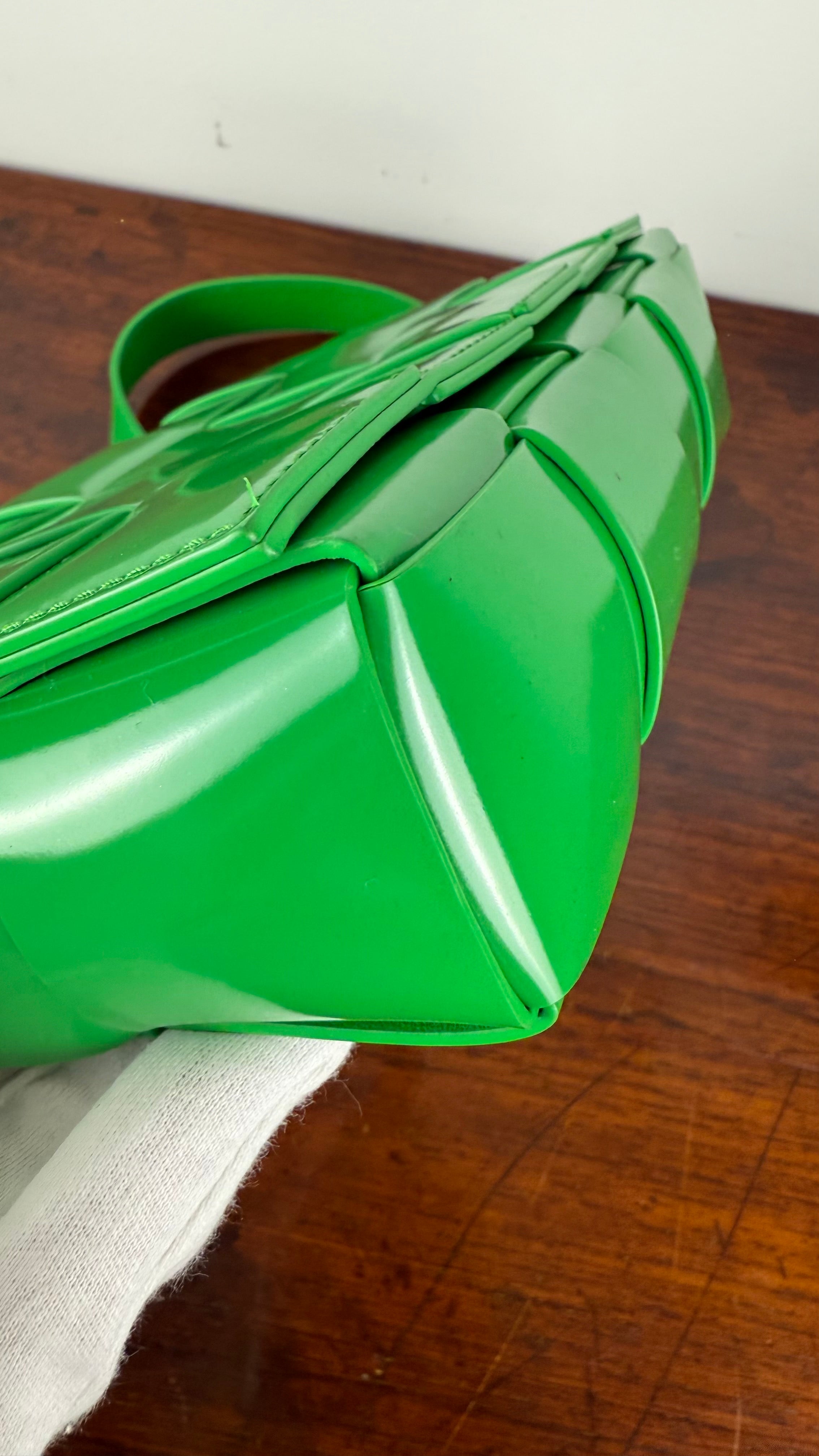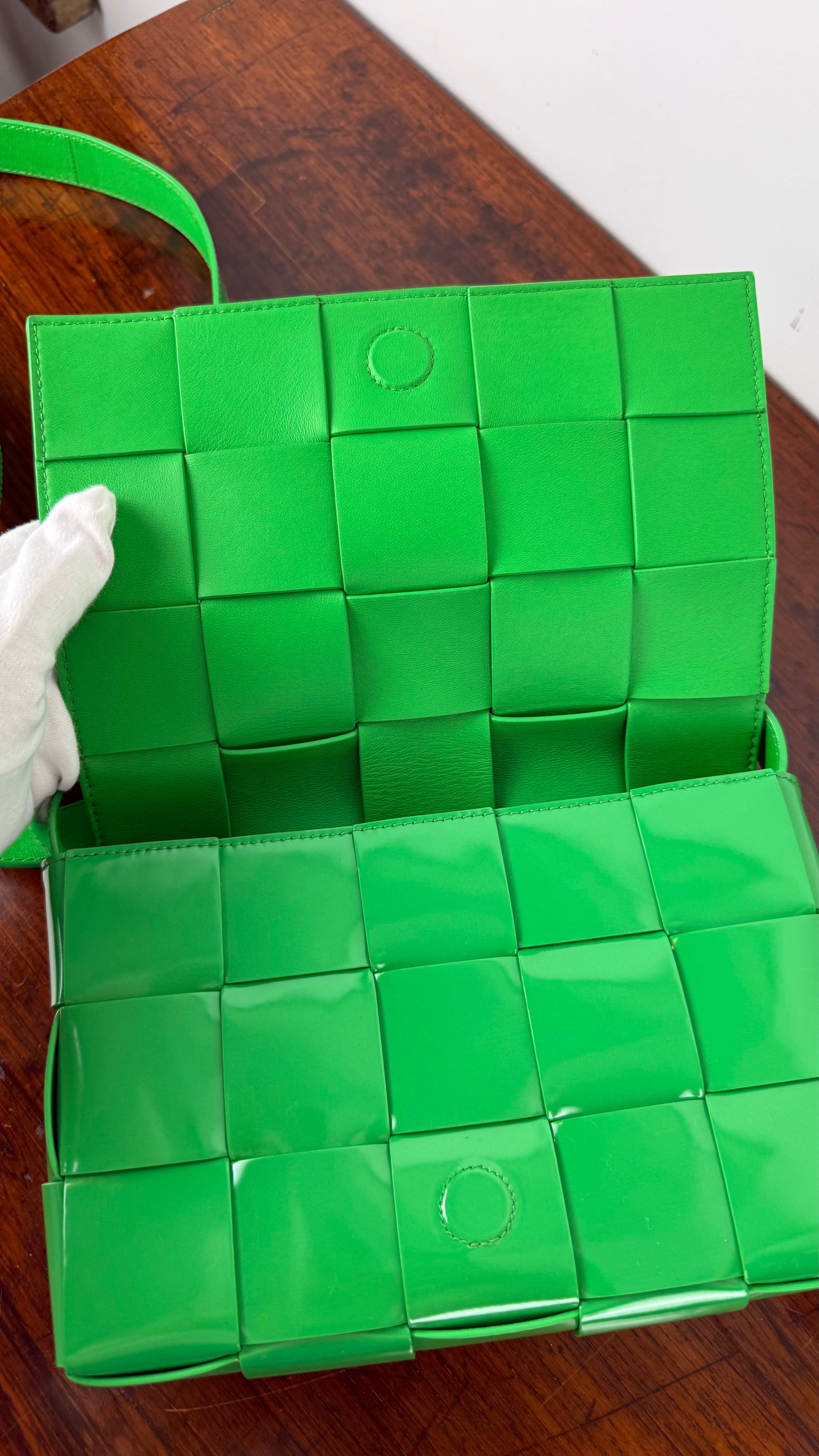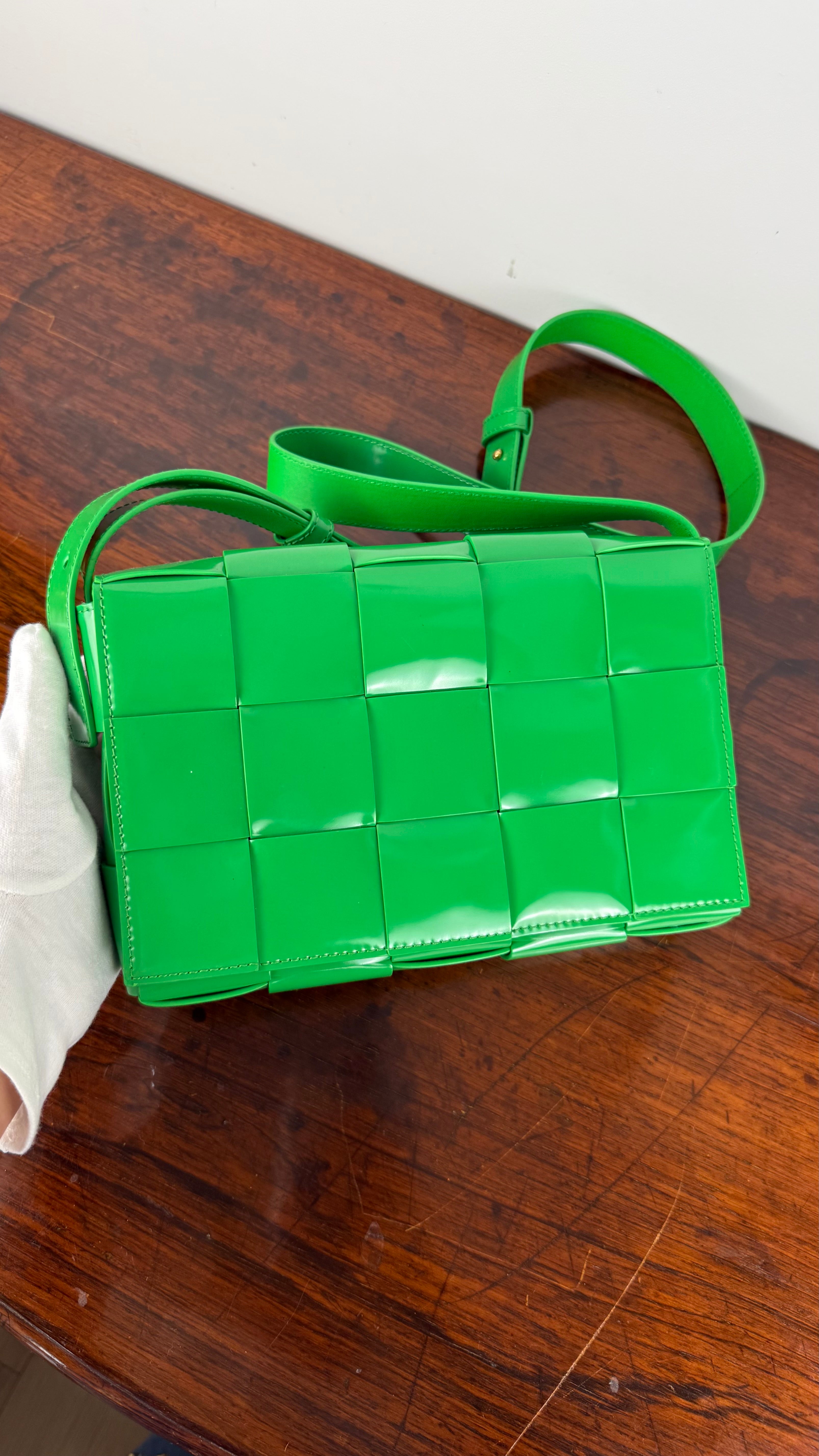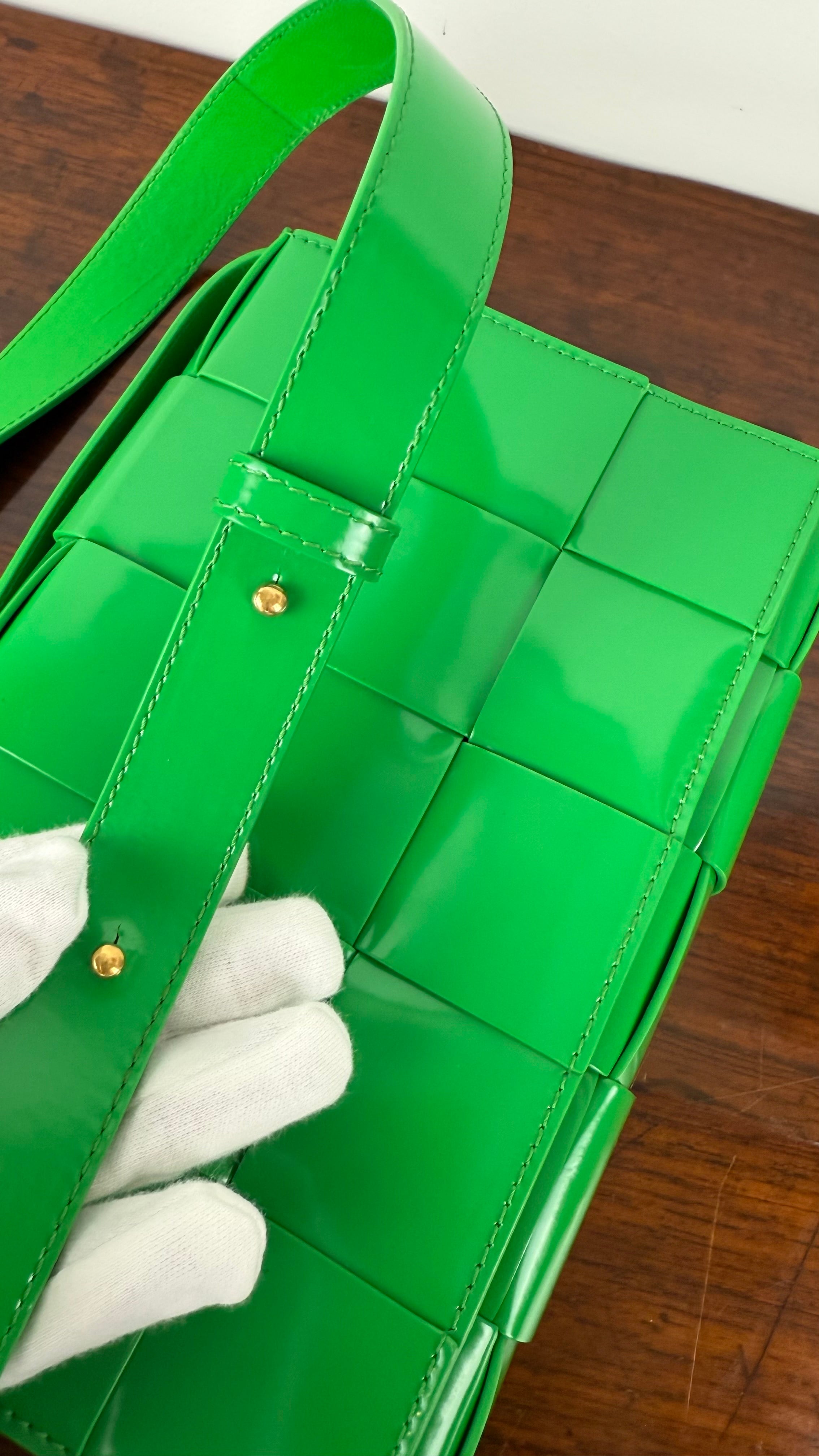 A mala Cassette da Bottega Veneta é um clássico contemporâneo, reconhecida pelo seu design em tiras largas de pele entrançadas, que se tornaram assinatura da marca.