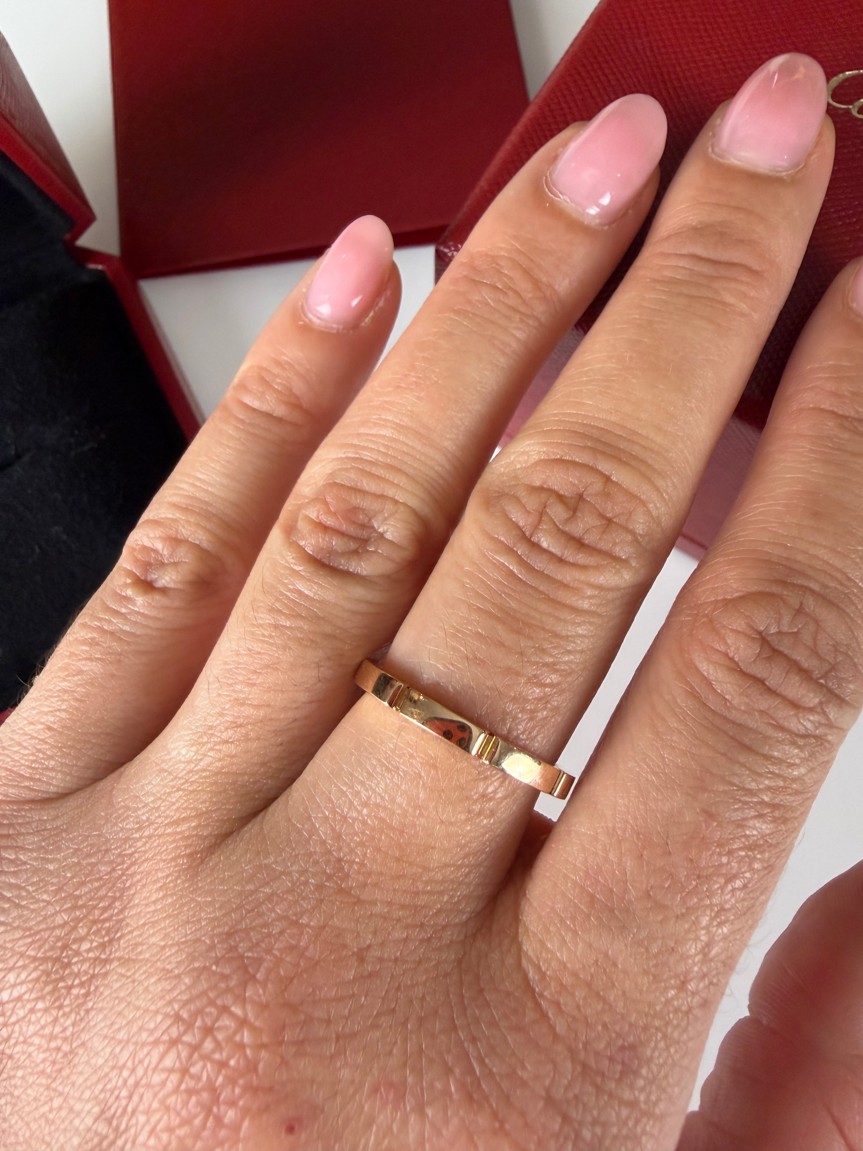 Produzido em ouro rosa de 18 quilates (750/1000), este anel destaca-se pela sua textura suave e estrutura geométrica, proporcionando conforto e brilho inigualáveis. Uma peça intemporal, perfeita para uso diário ou ocasiões especiais.