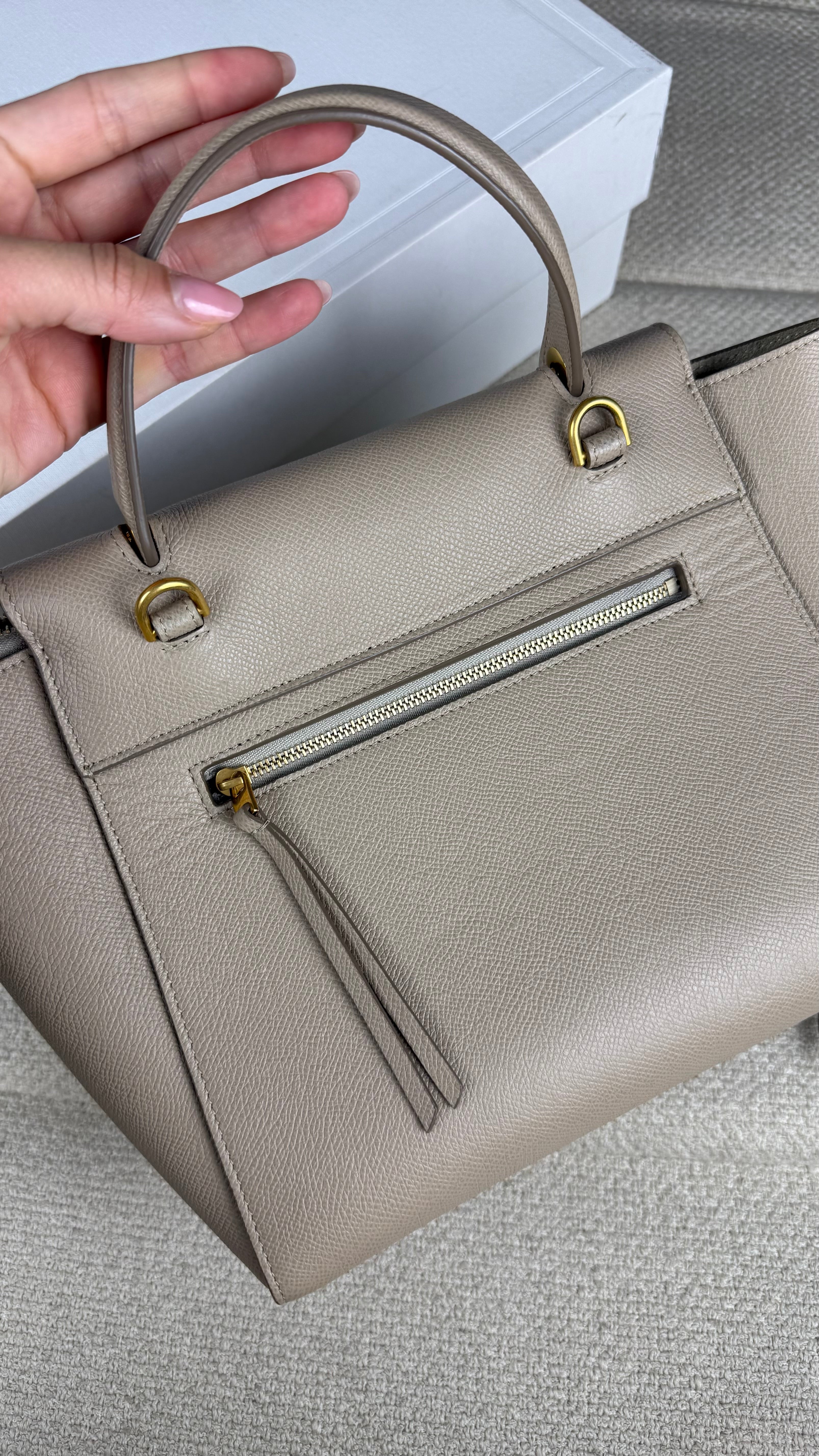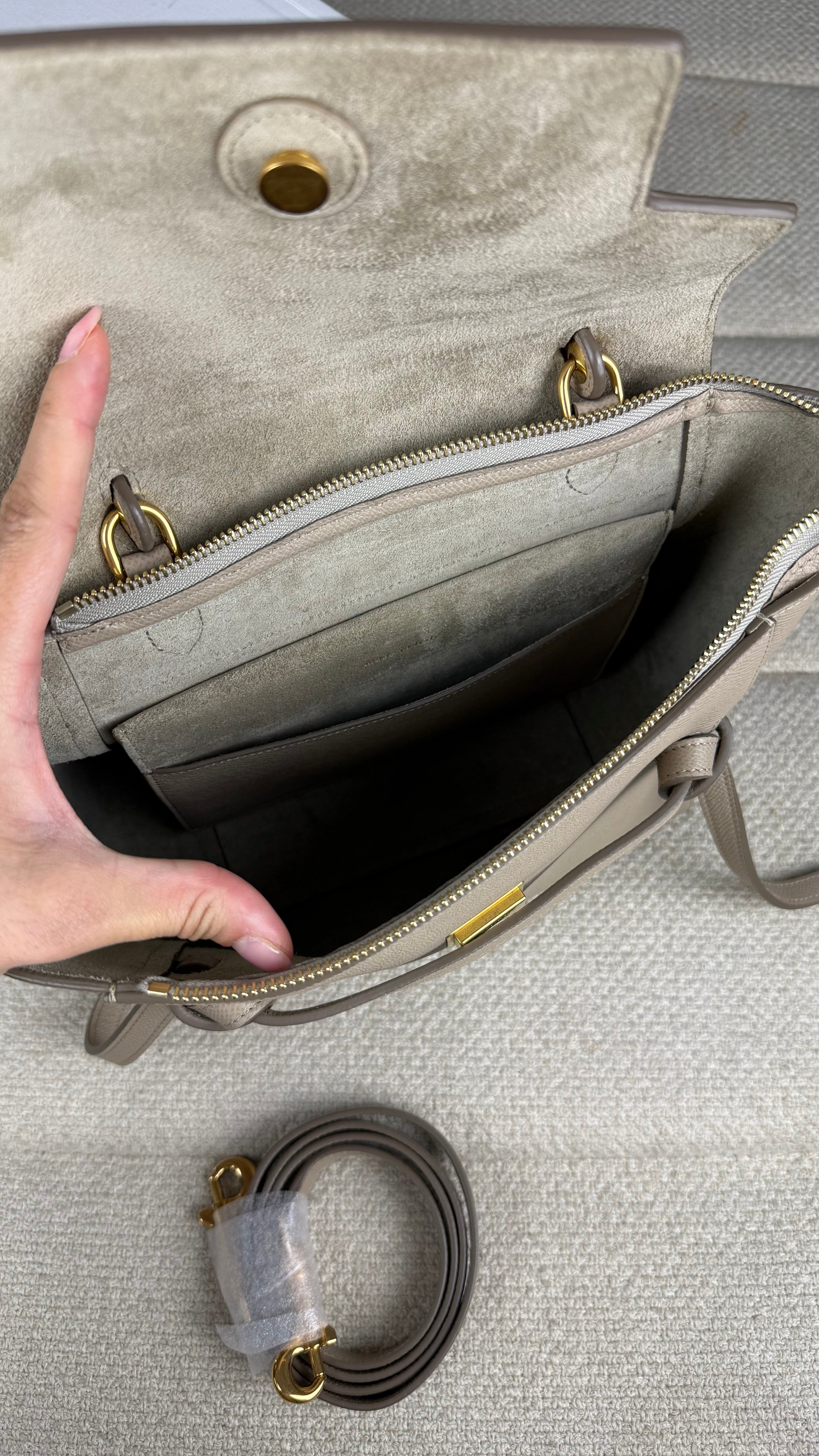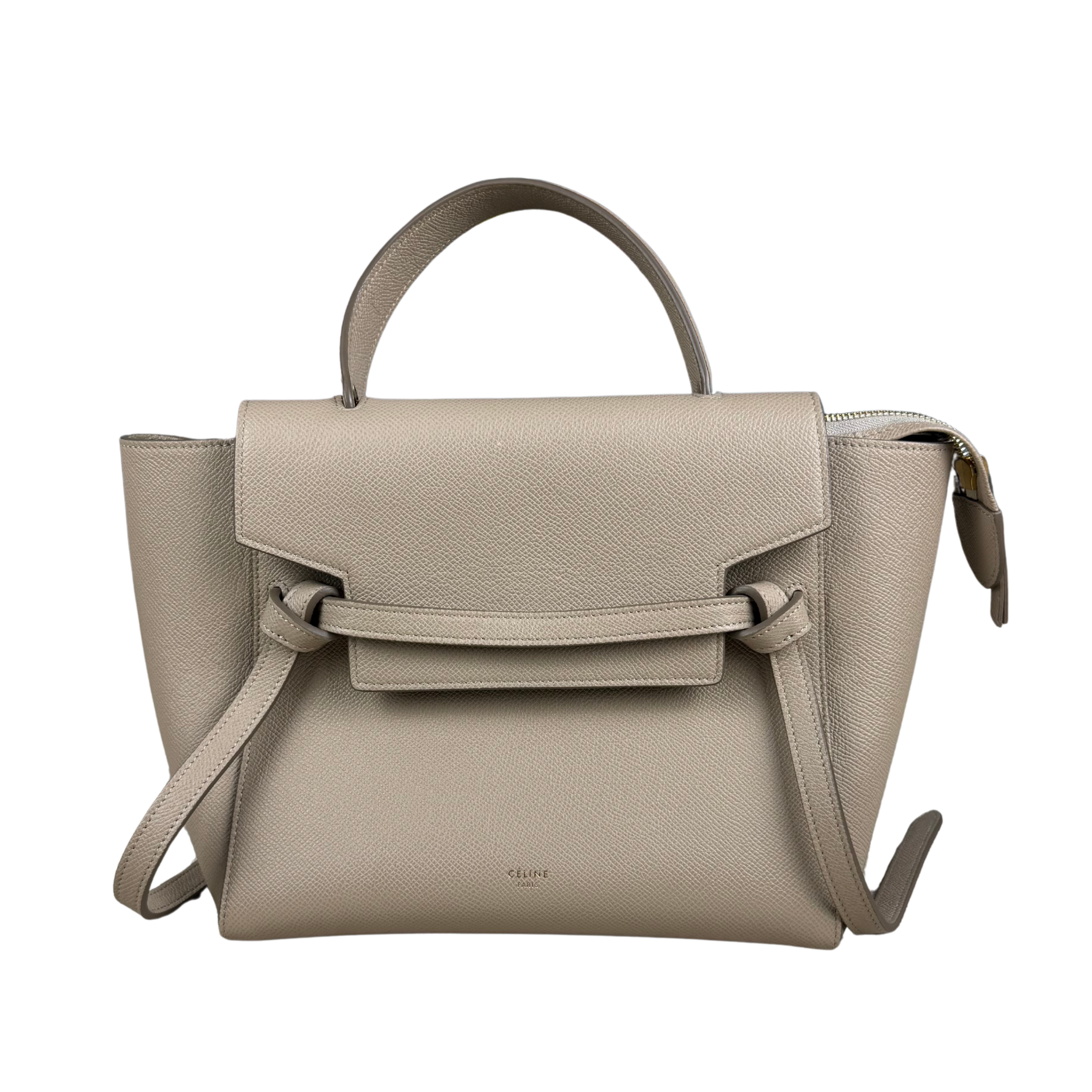 A Celine Micro Belt Bag representa o equilíbrio perfeito entre sofisticação e design minimalista — um ícone intemporal da maison francesa. Fabricada em pele granulada de alta qualidade, distingue-se pelas linhas estruturadas e pelo emblemático detalhe do “cinto” na parte frontal, símbolo da elegância discreta da Celine.