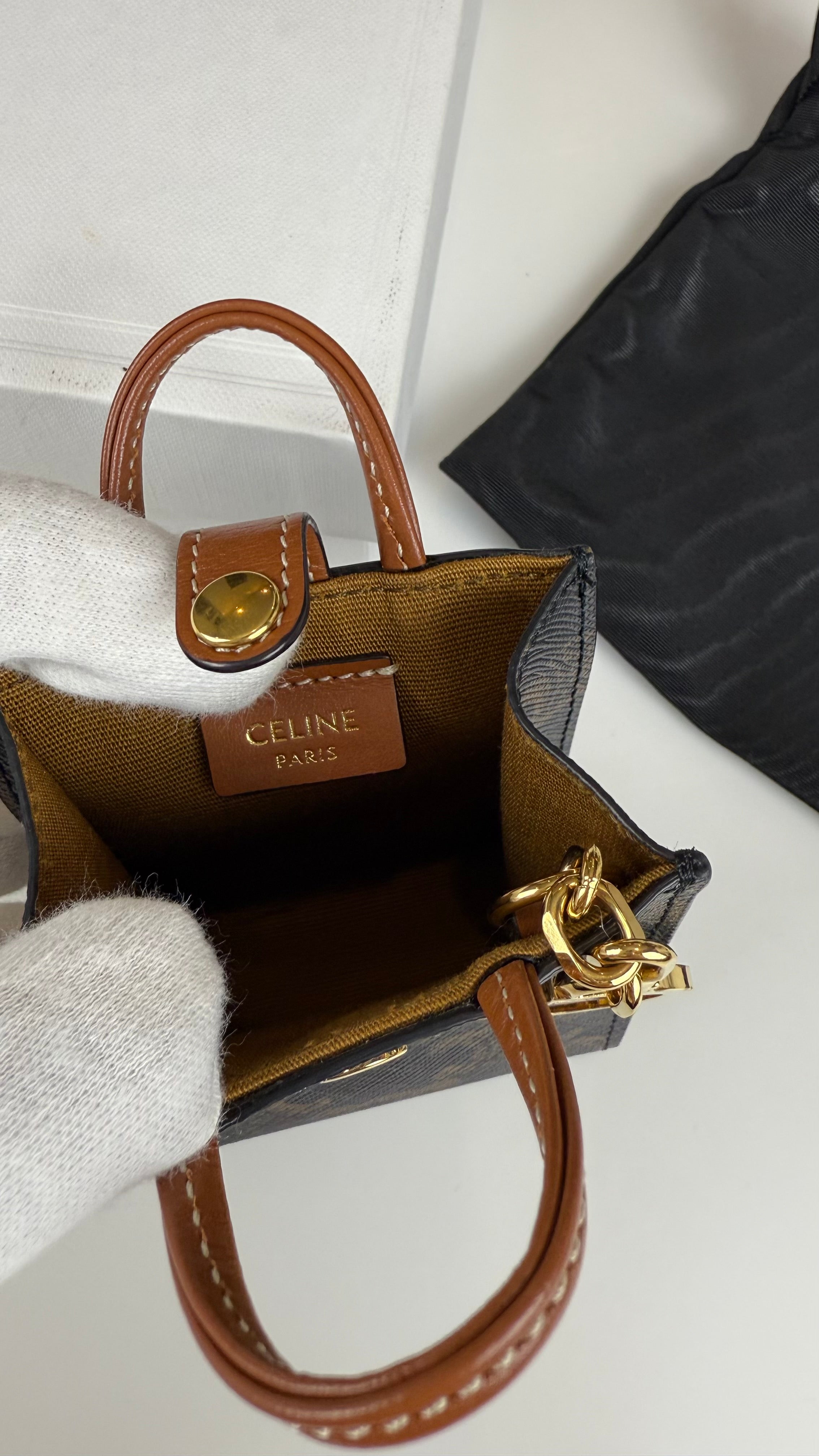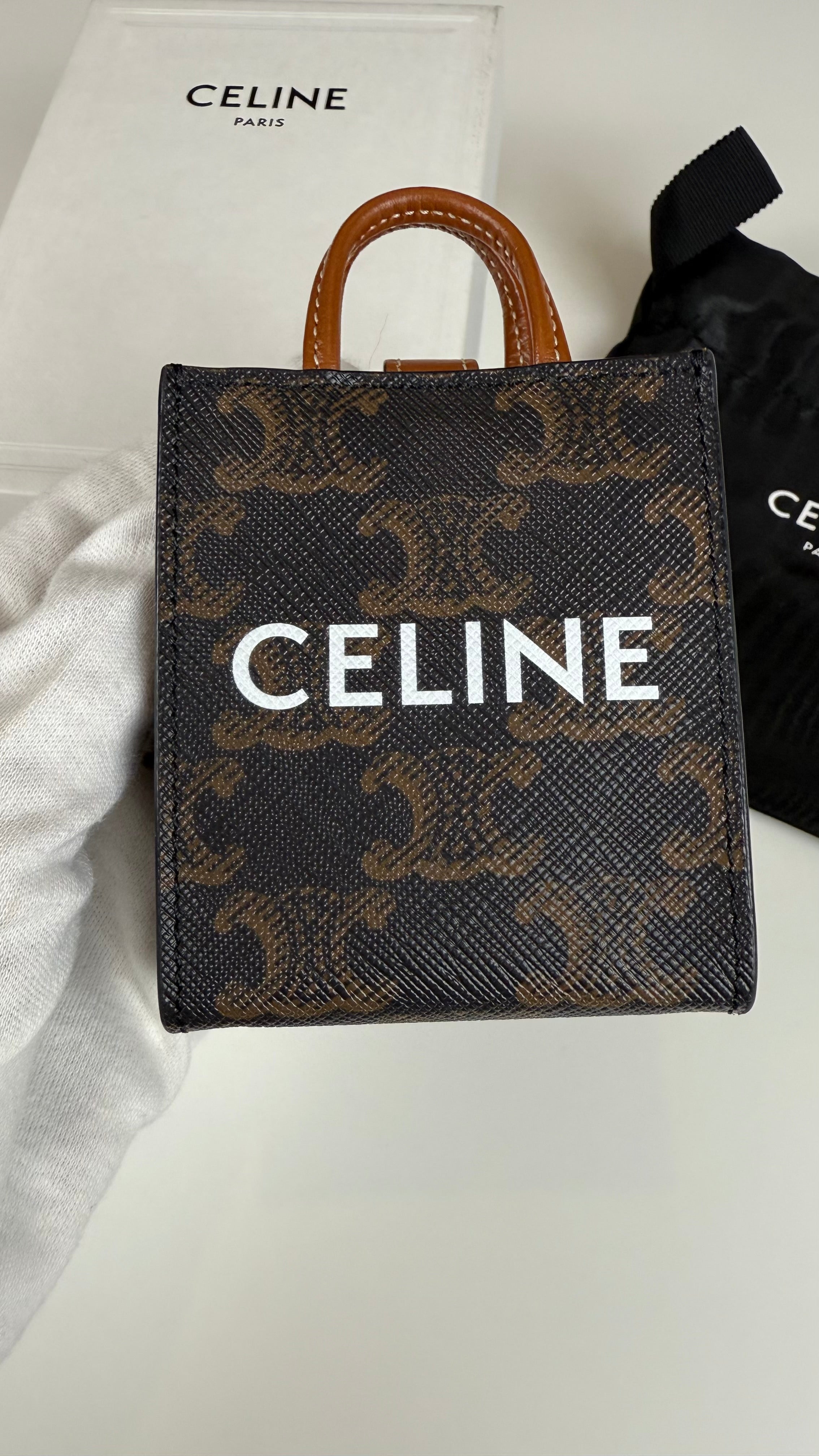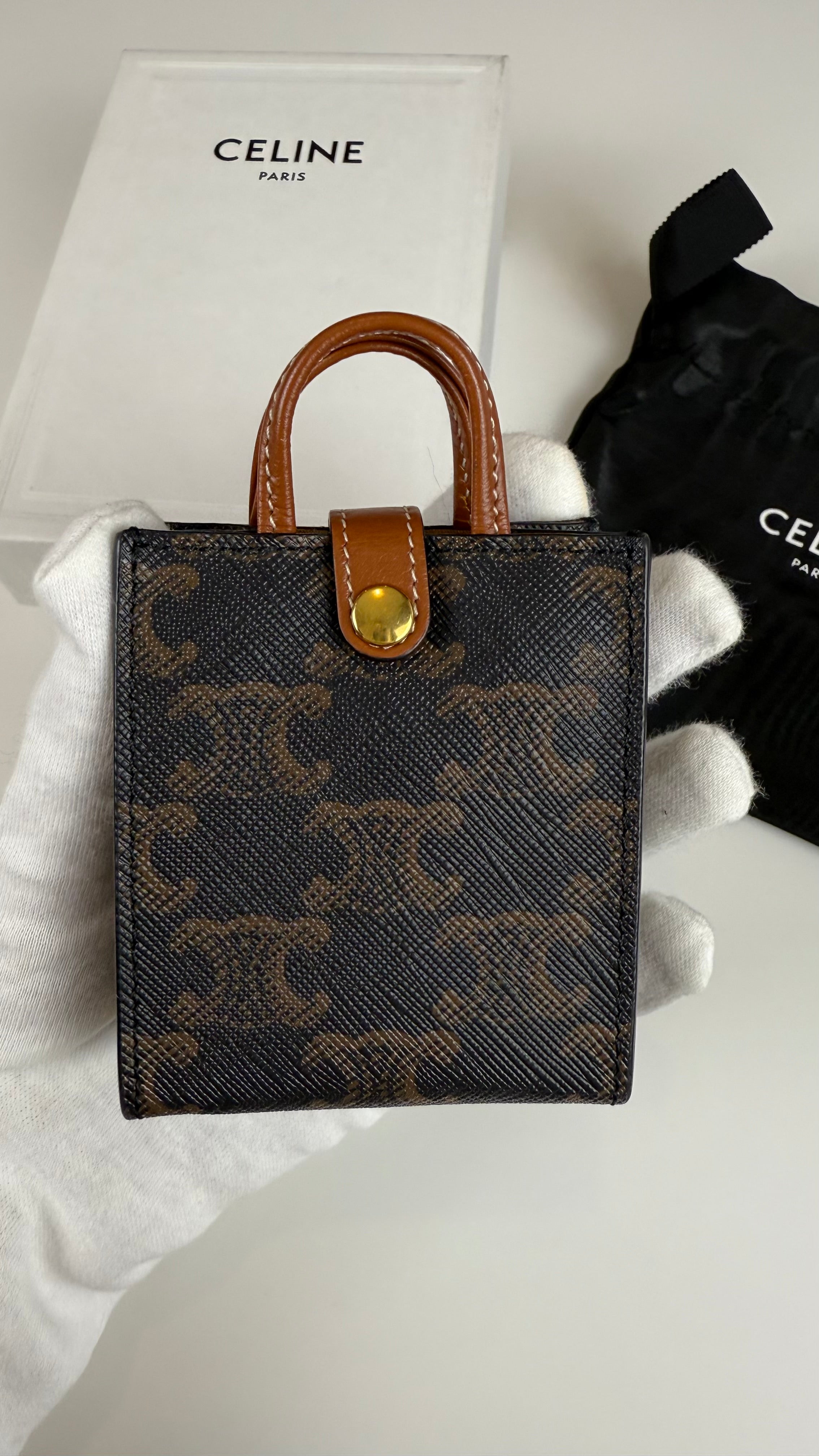 A Celine Micro Triomphe Bag Charm é um acessório luxuoso em miniatura inspirado nas bolsas icônicas da marca francesa Celine.