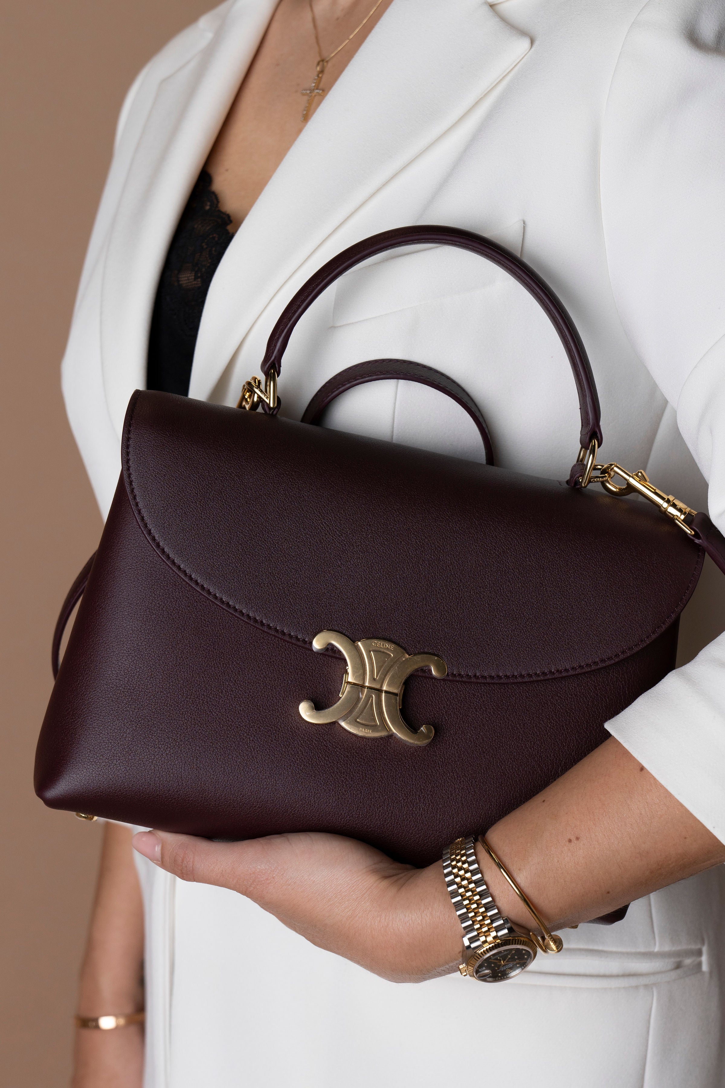 - MaterialCouro de vitela suave granulado (soft grained calfskin)