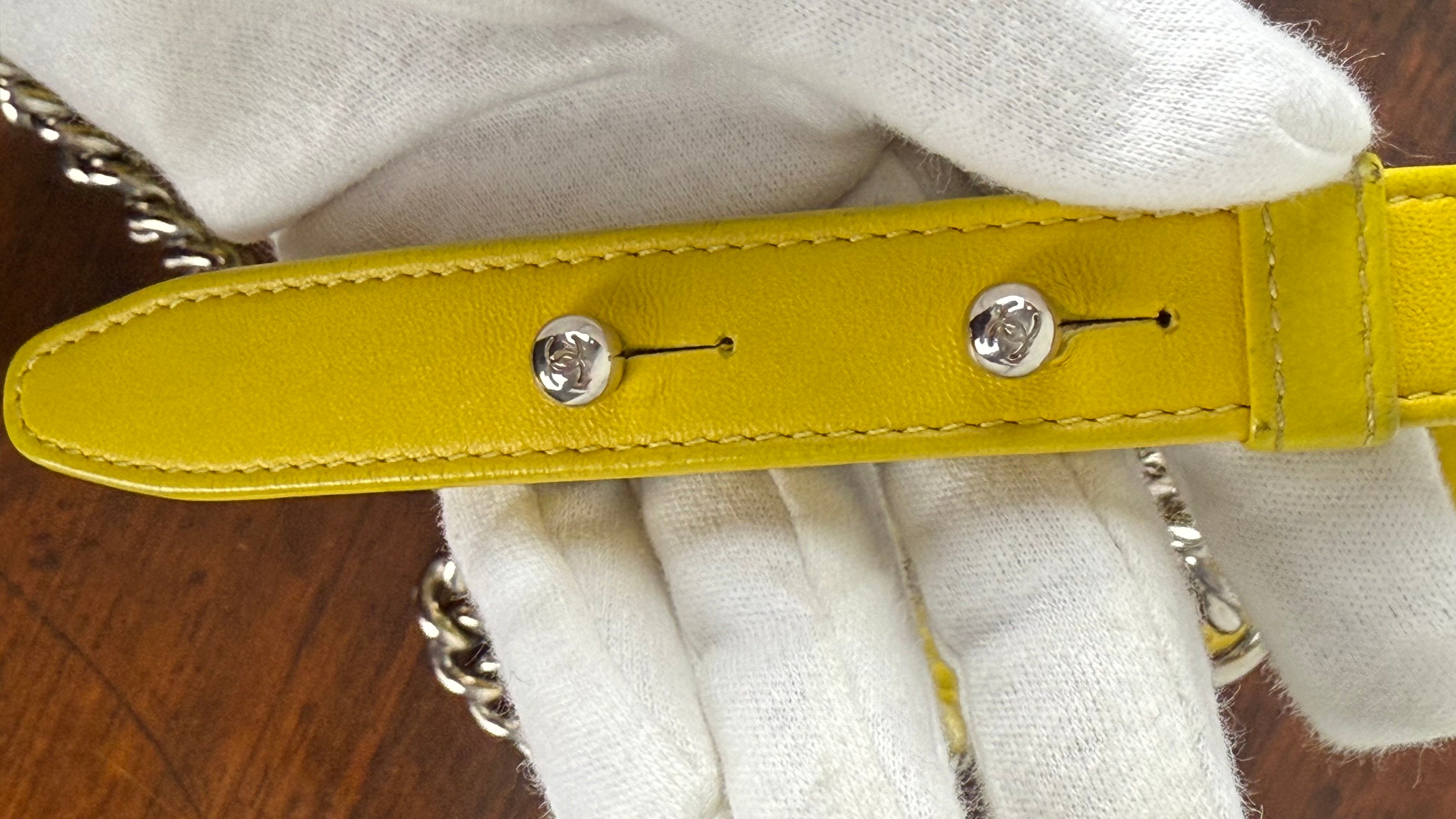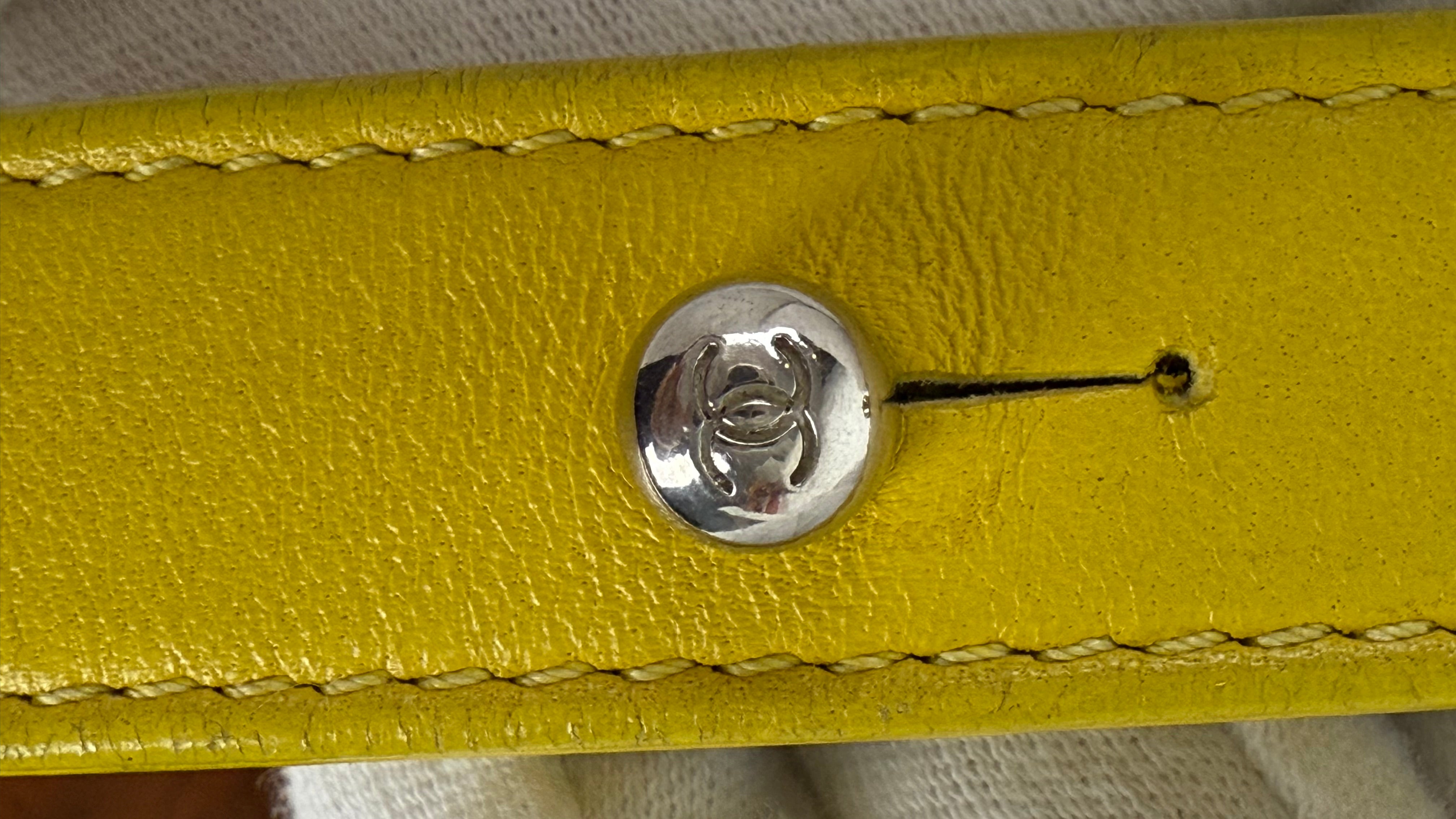 Uma peça statement da Chanel, que mistura a sofisticação do tweed clássico da maison com a ousadia do couro em tom vibrante. Ideal para quem deseja um look moderno, exclusivo e colecionável.