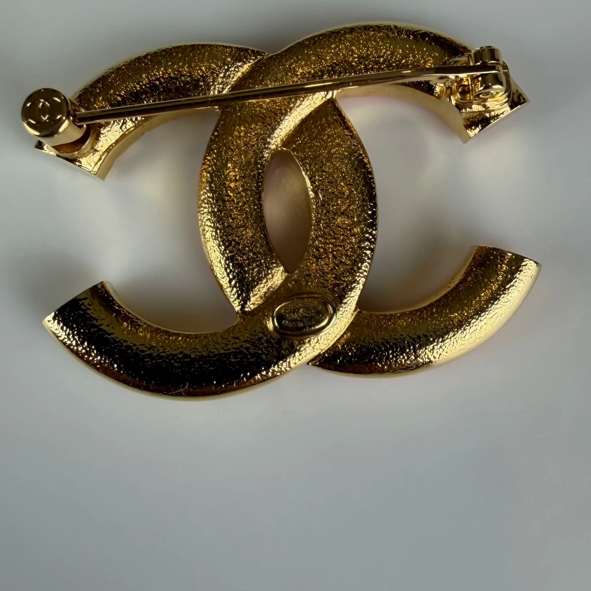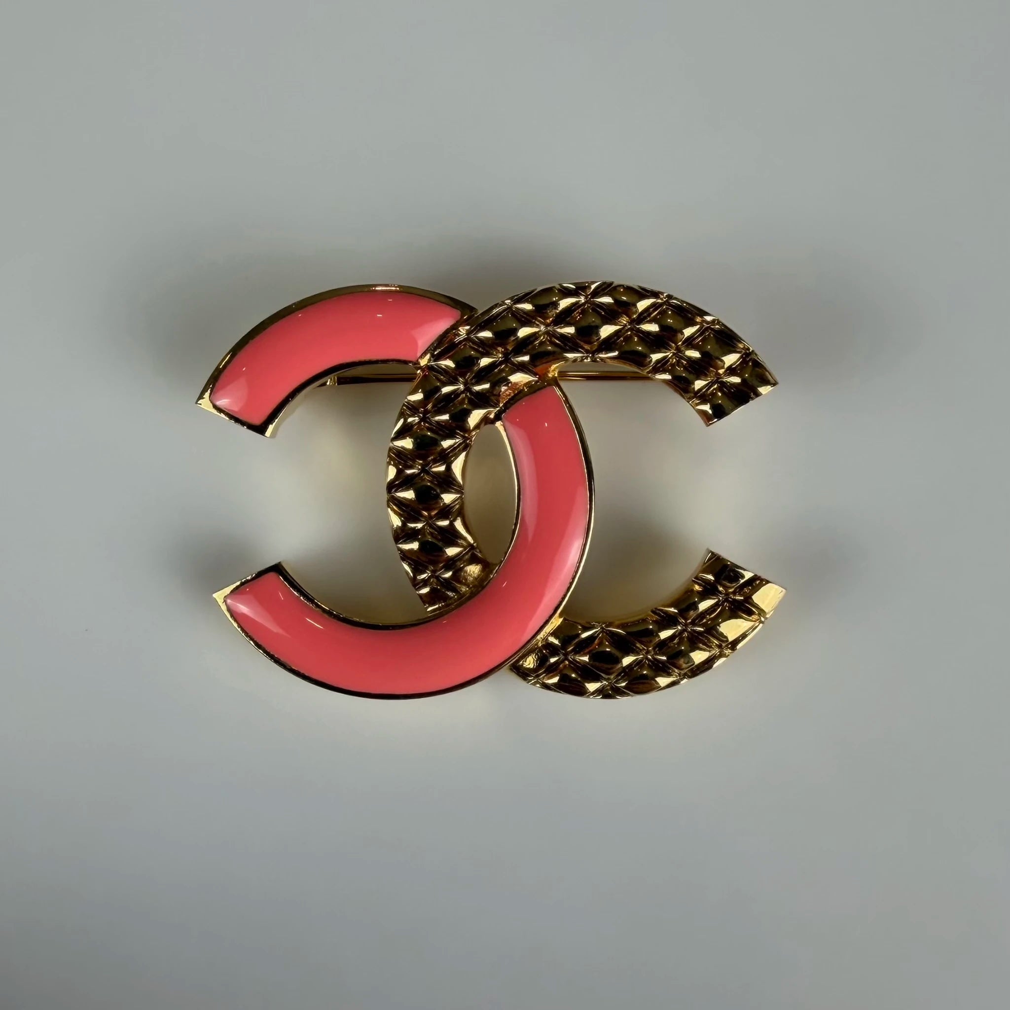 Chanel Gold Plated Quilted CC Enamel Brooch