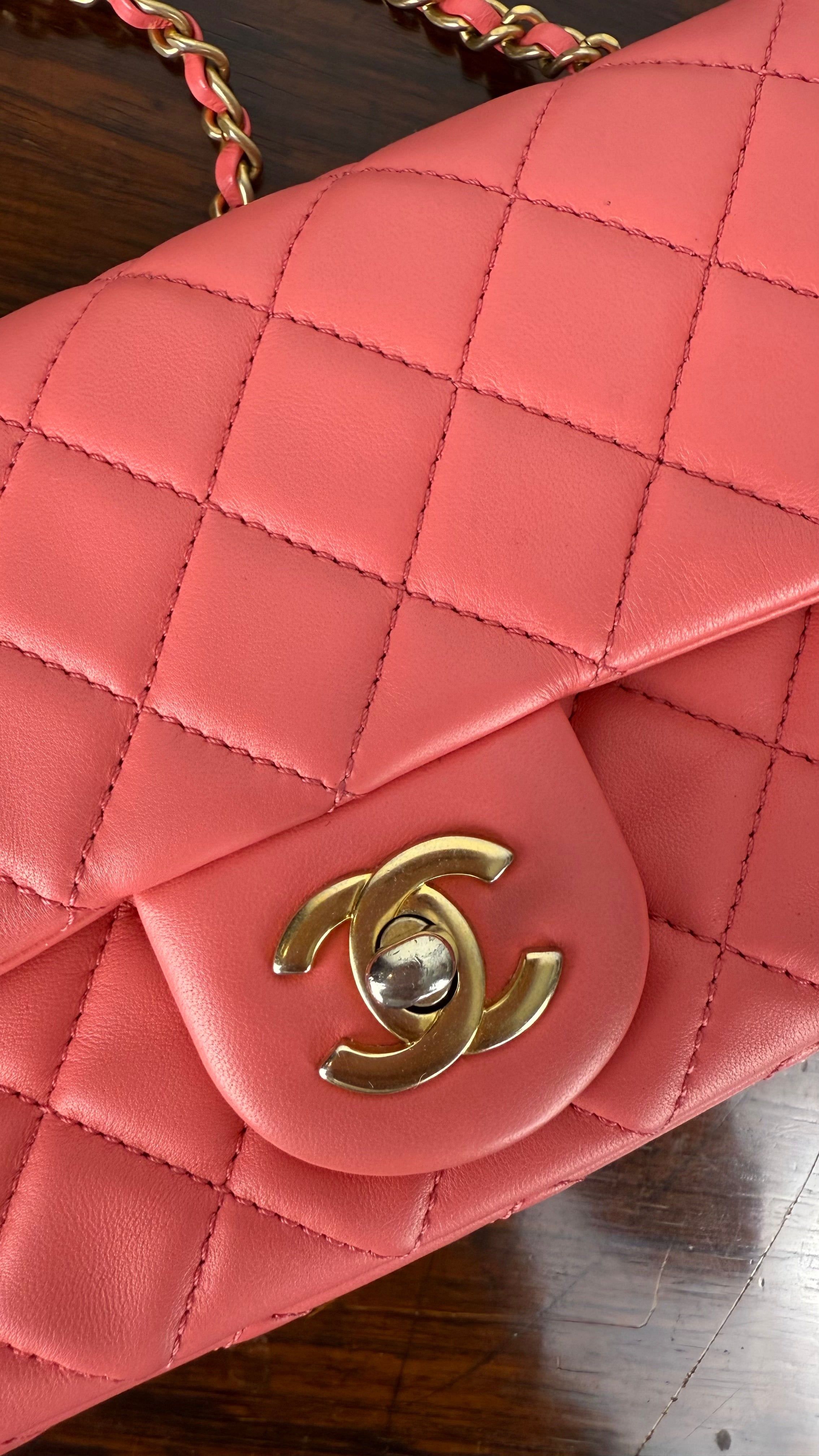 - MaterialPele de cordeiro (lambskin) acolchoada com o tradicional padrão matelassé em losangos
