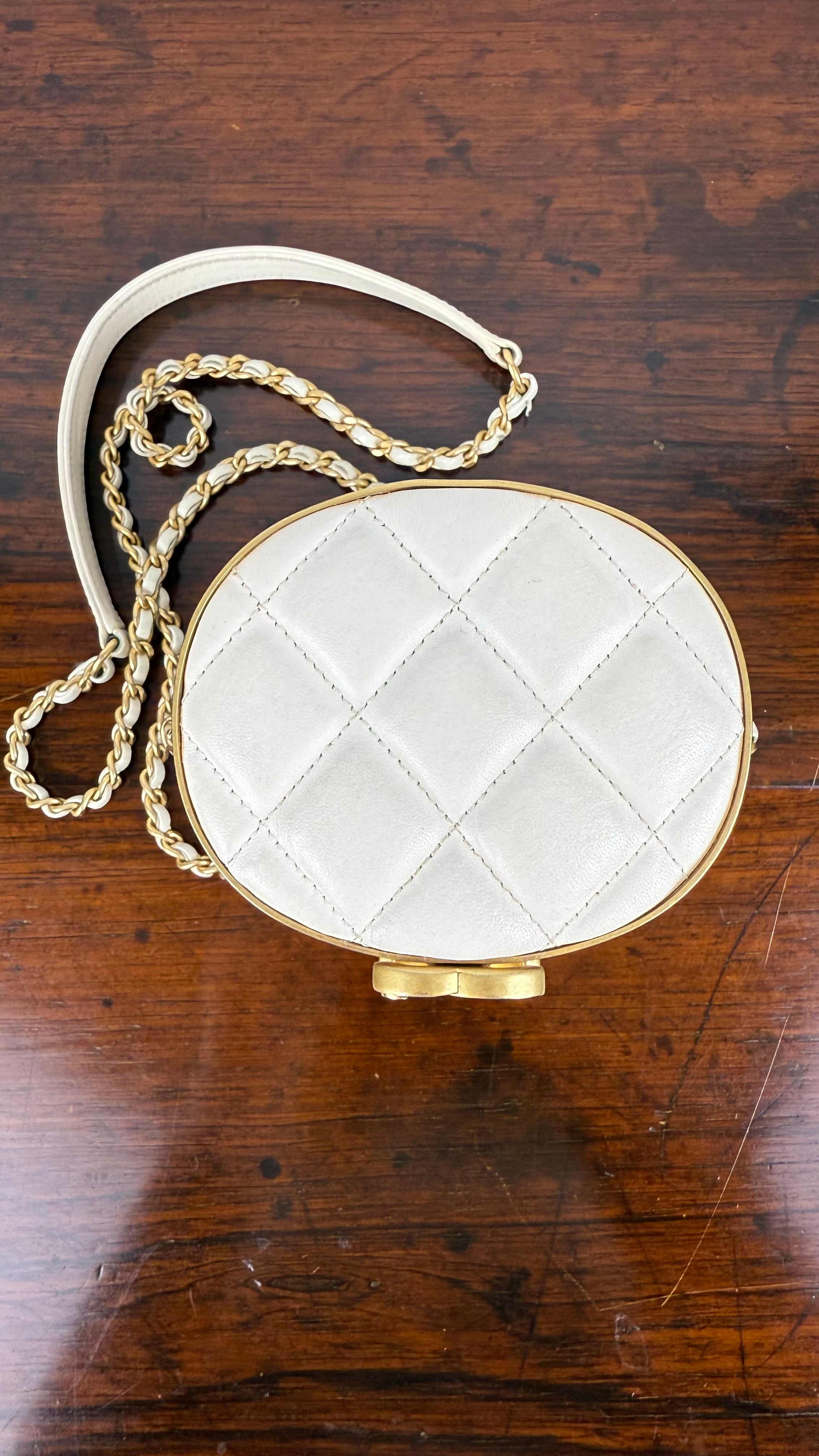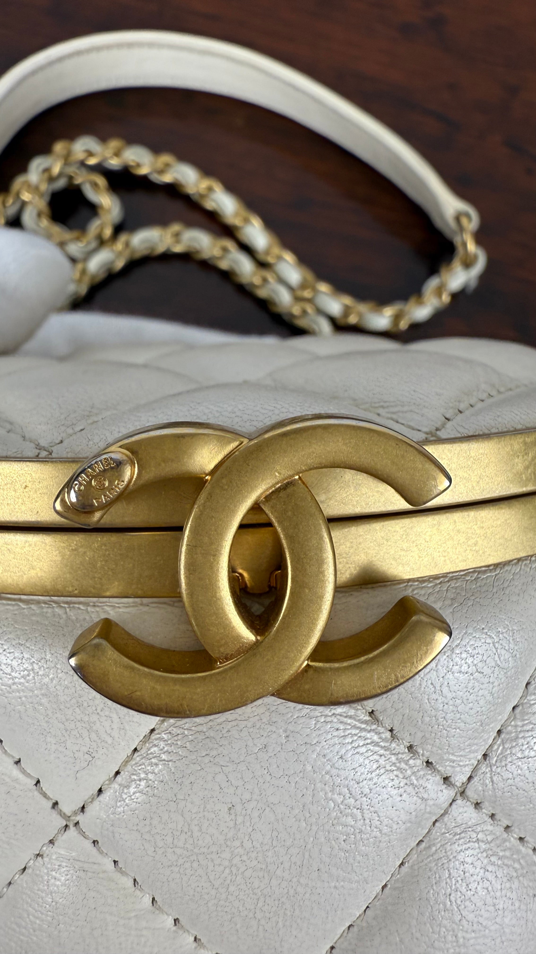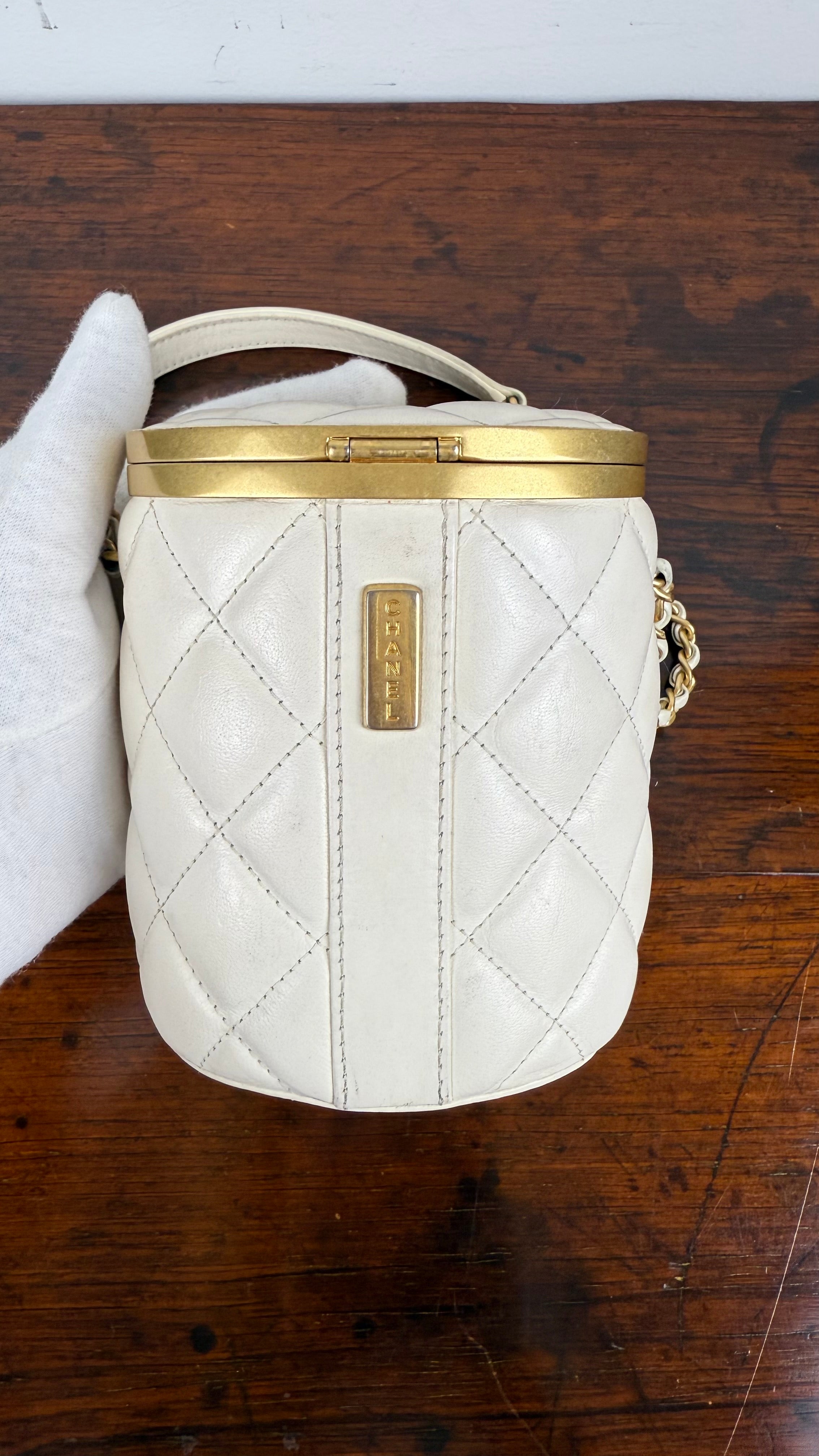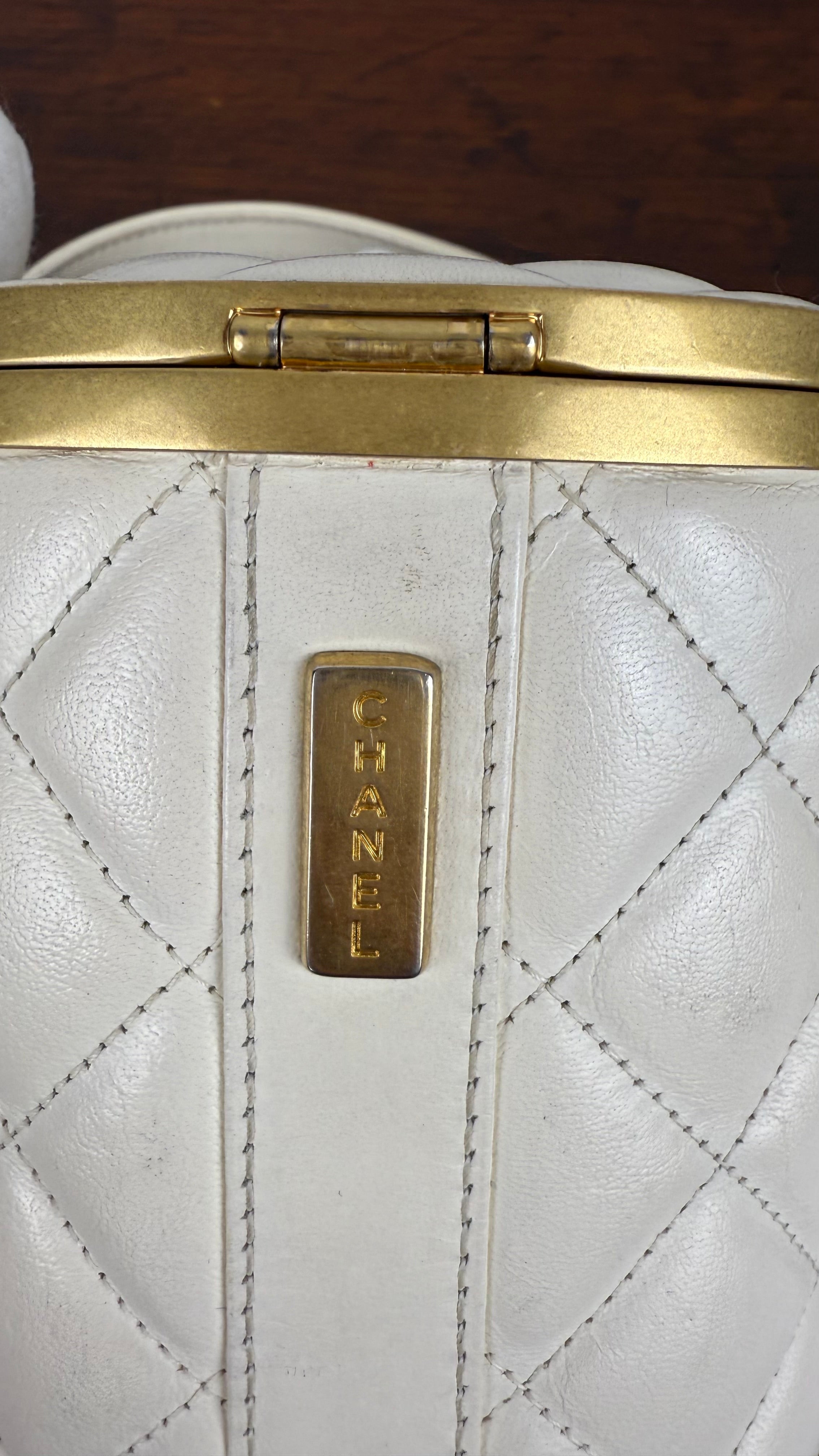 Chanel Mini Vanity with Chain – Off-White com Ferragens Douradas.