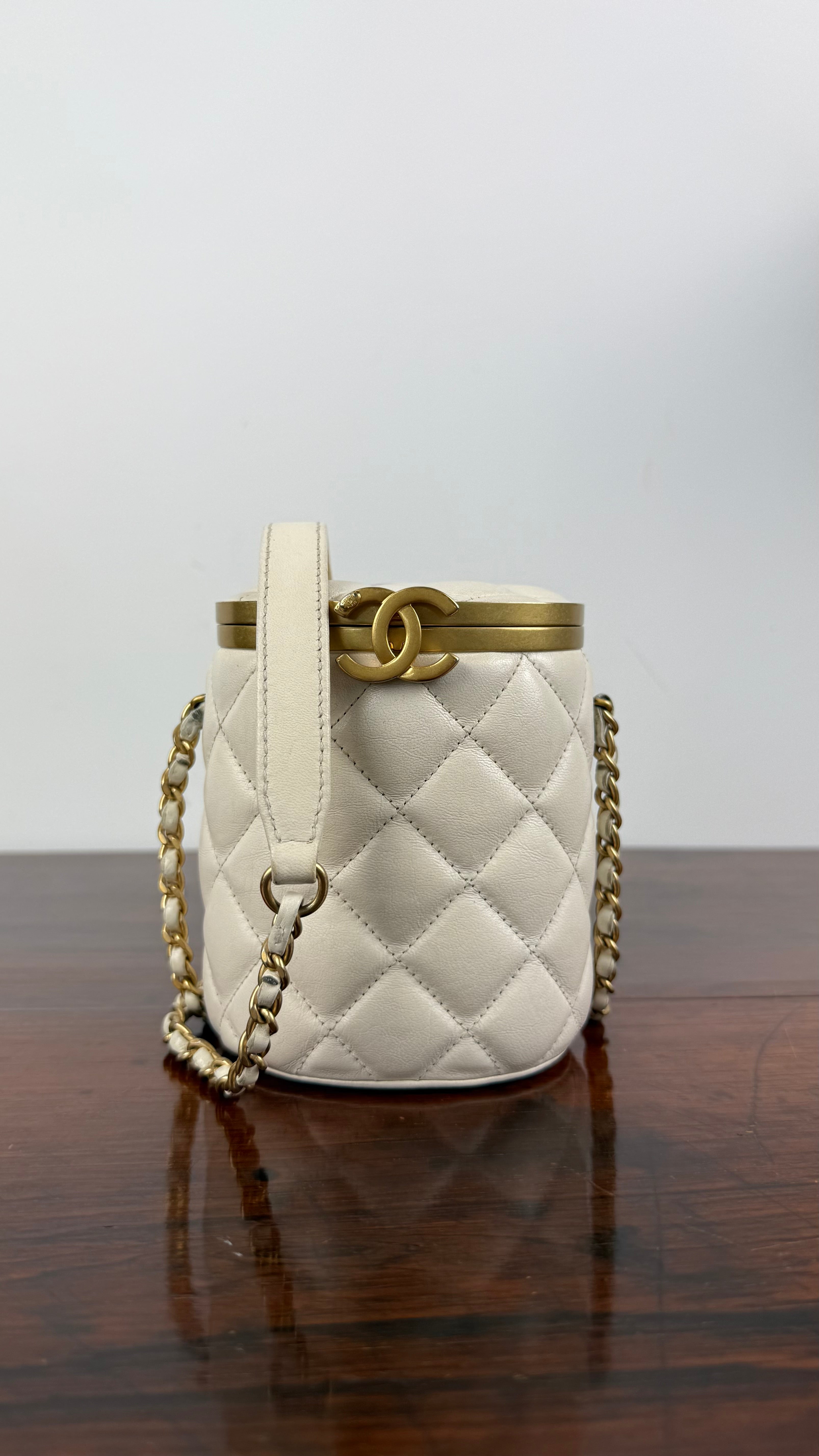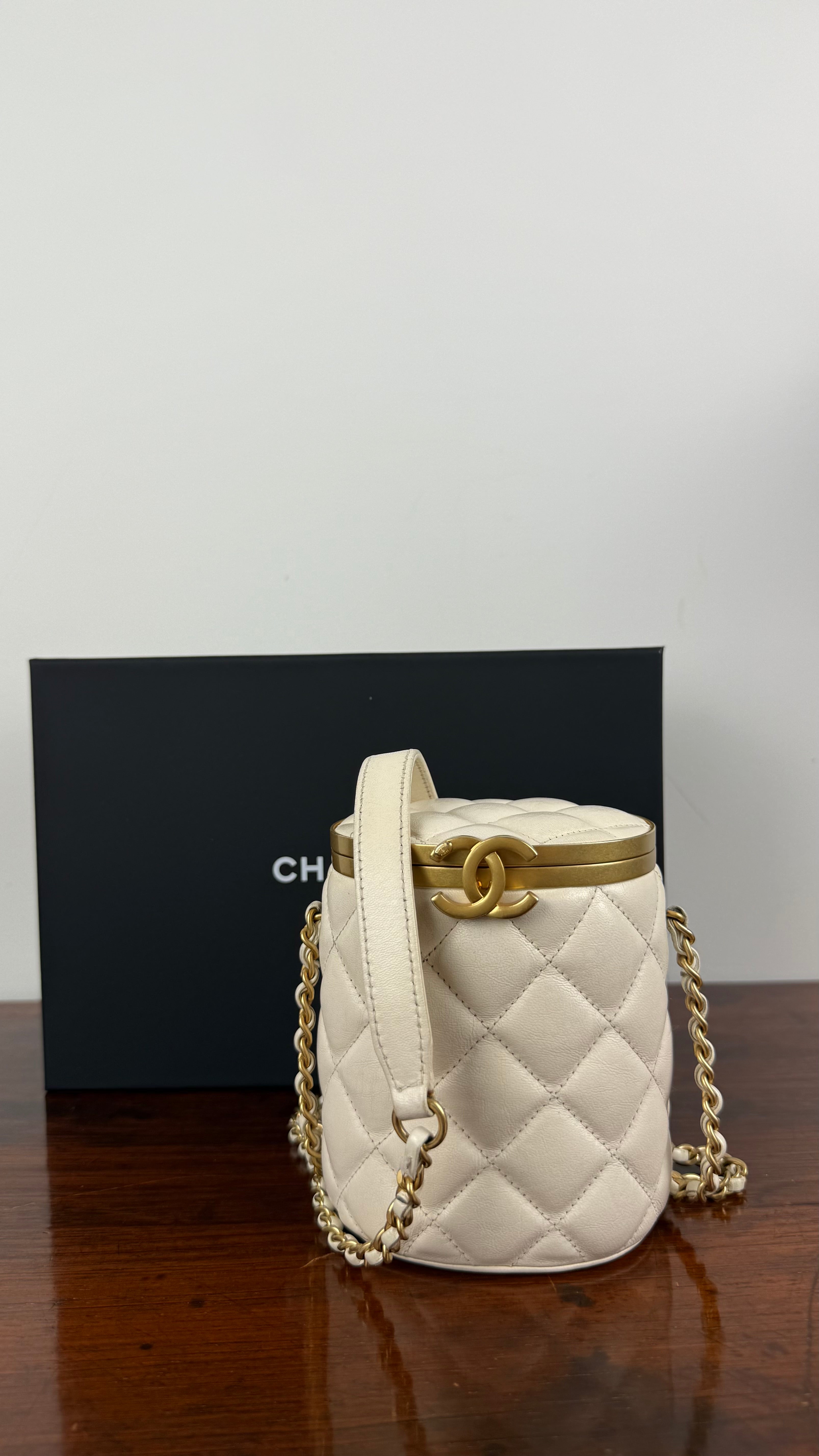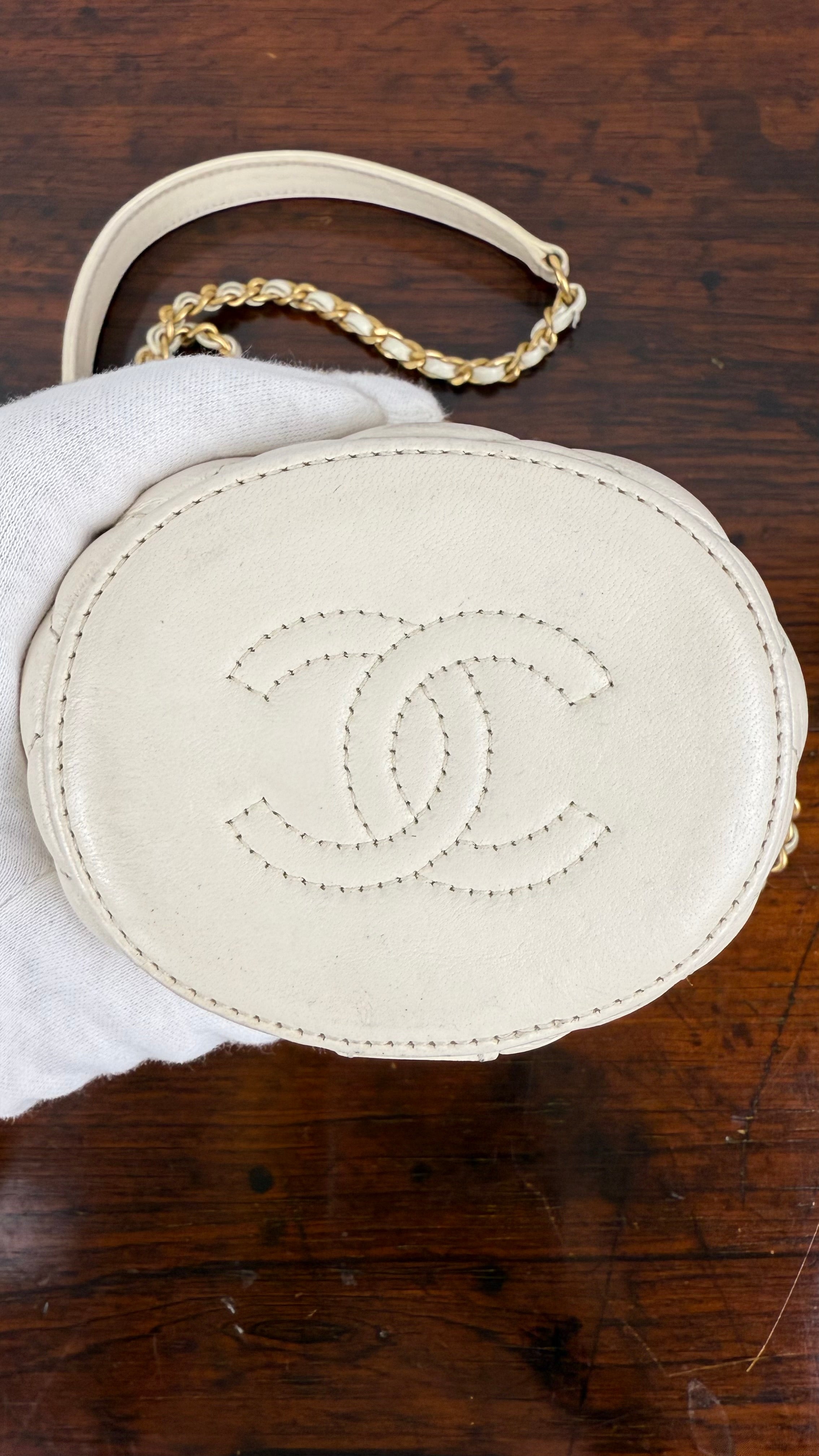 Chanel Mini Vanity with Chain – Off-White com Ferragens Douradas.