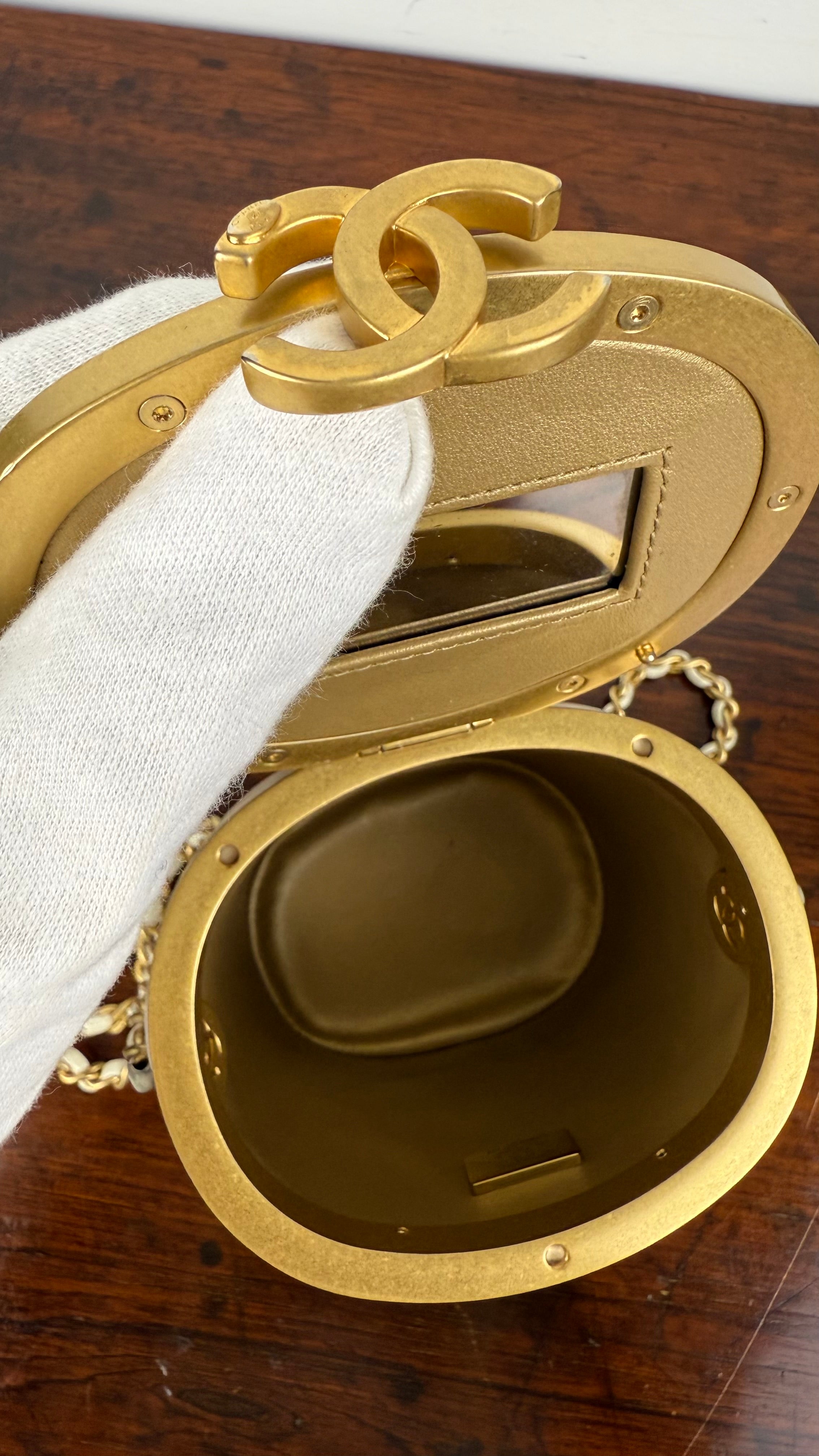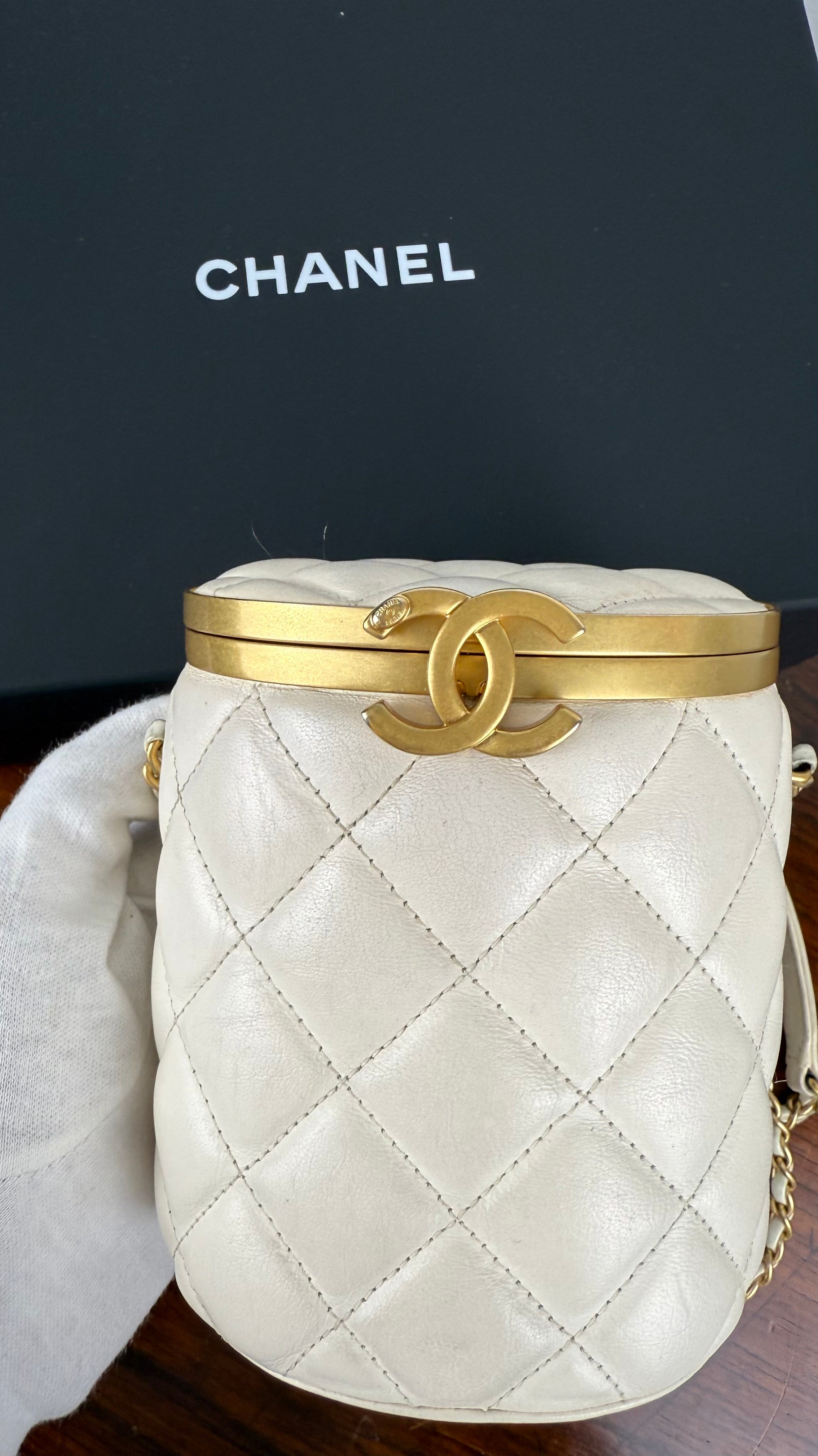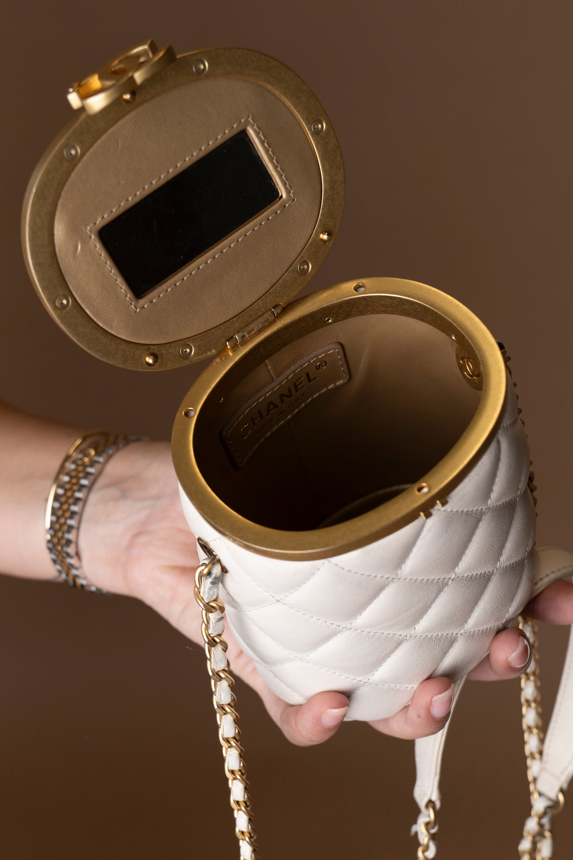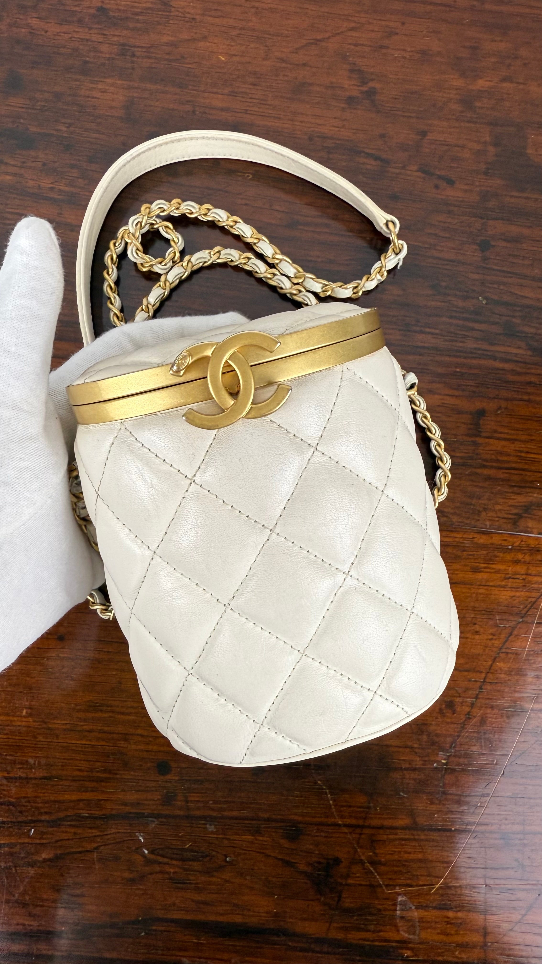 Chanel Mini Vanity with Chain – Off-White com Ferragens Douradas.