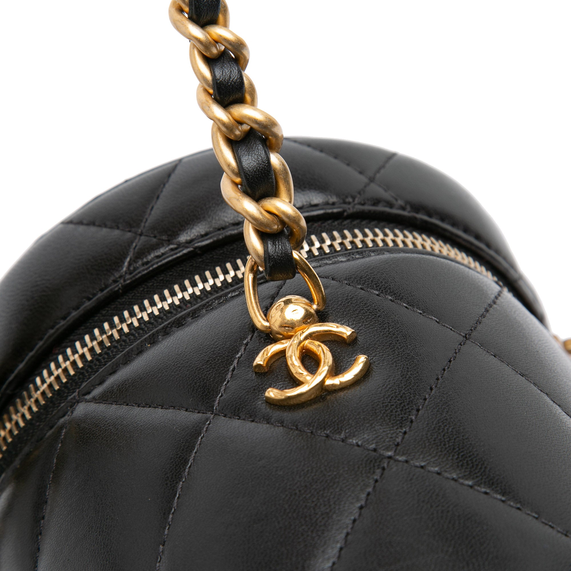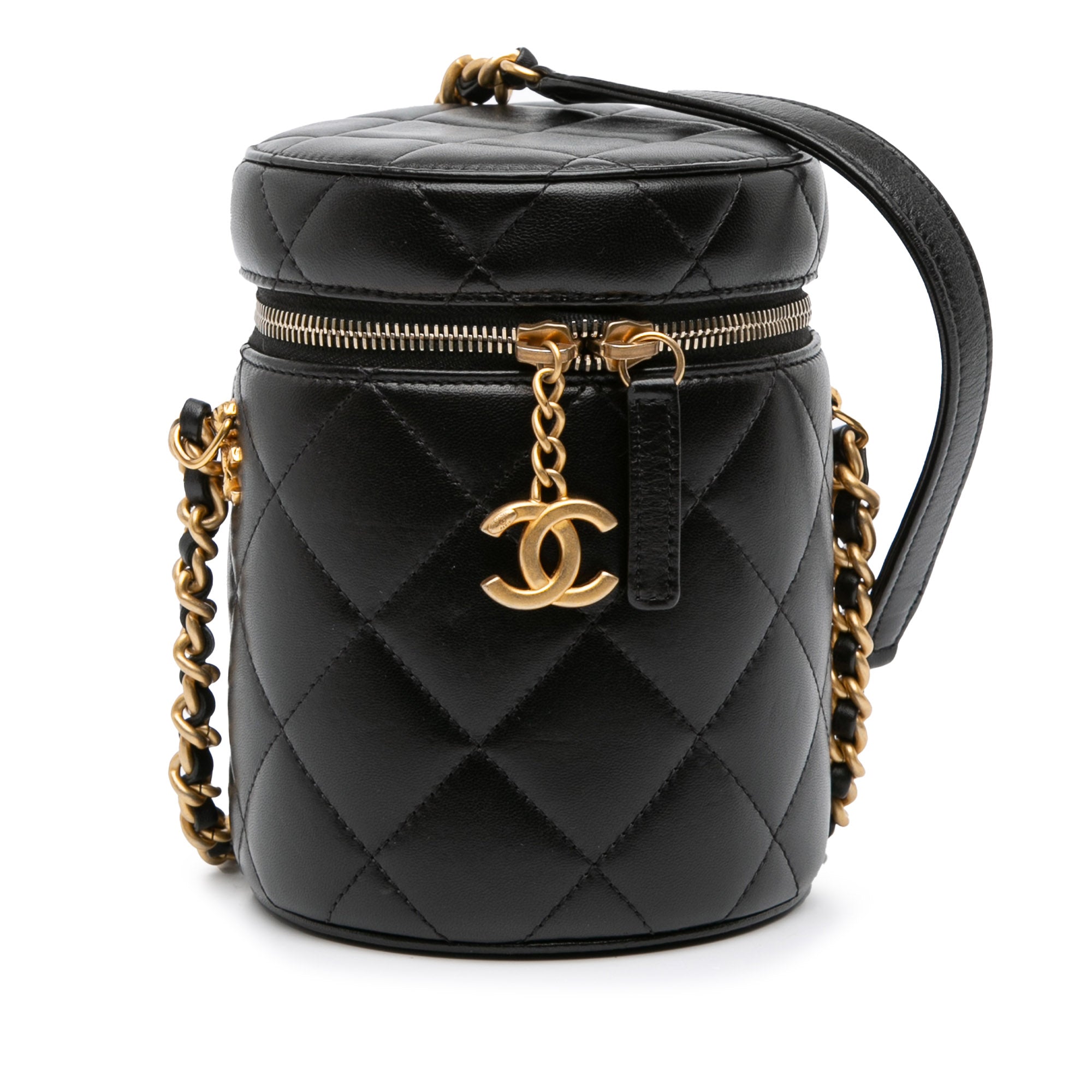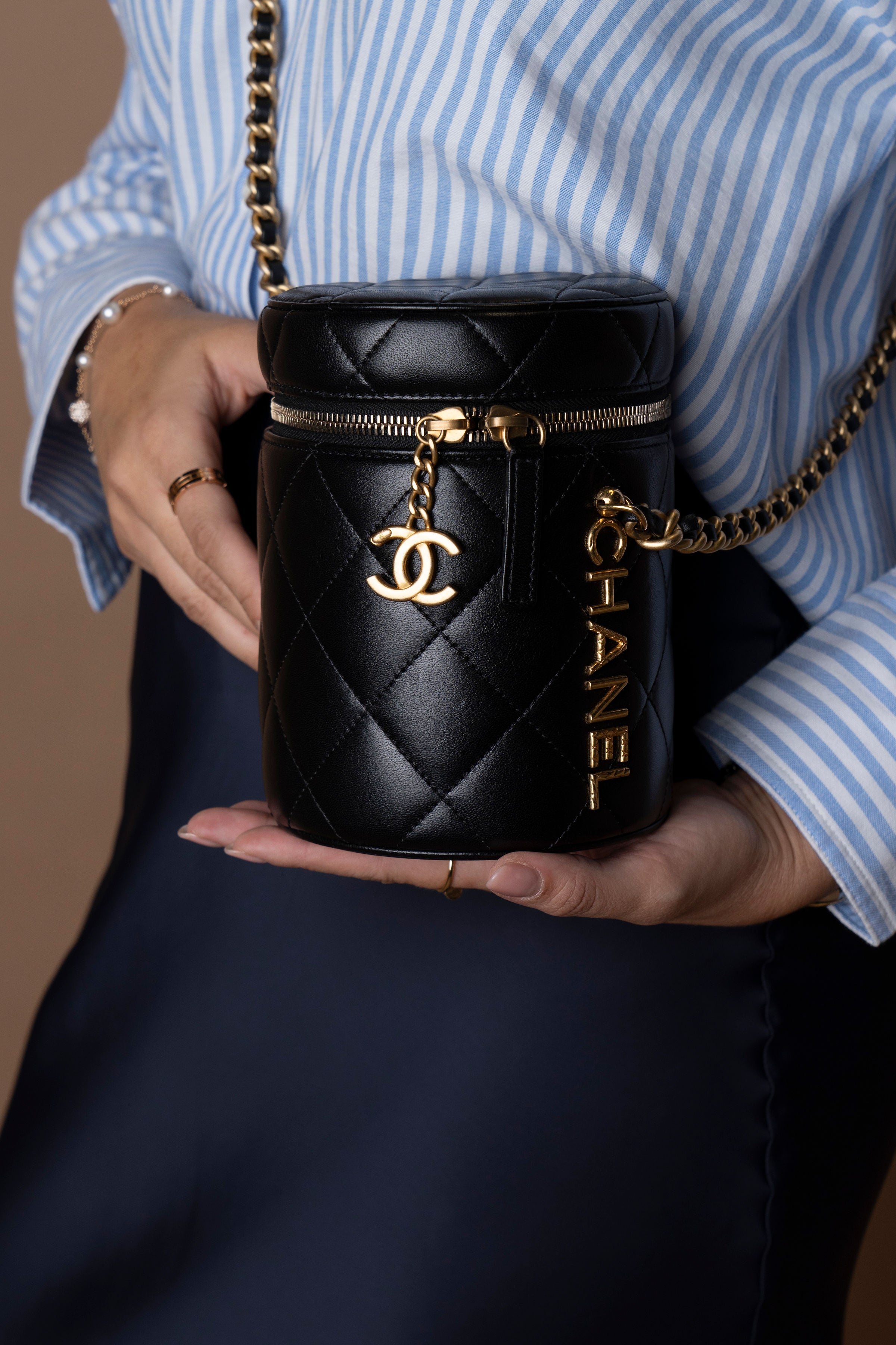 A Chanel Side Note Vanity Case combina o charme vintage das nécessaires clássicas da maison com o estilo urbano e contemporâneo da mulher moderna. Confeccionada em couro de bezerro macio com o tradicional padrão matelassê, a peça exibe uma estrutura cilíndrica elegante e compacta, ideal para quem busca sofisticação em formato mini.