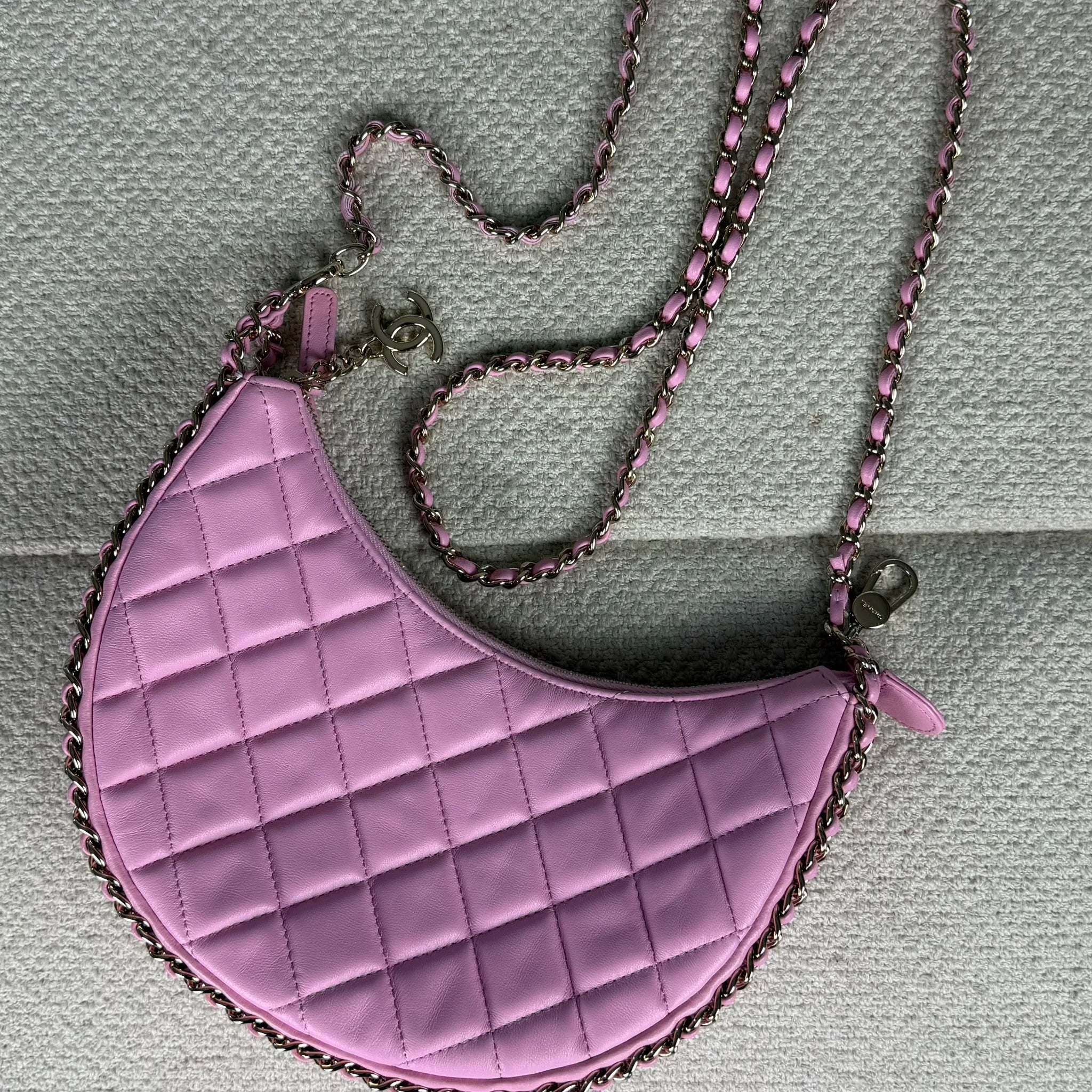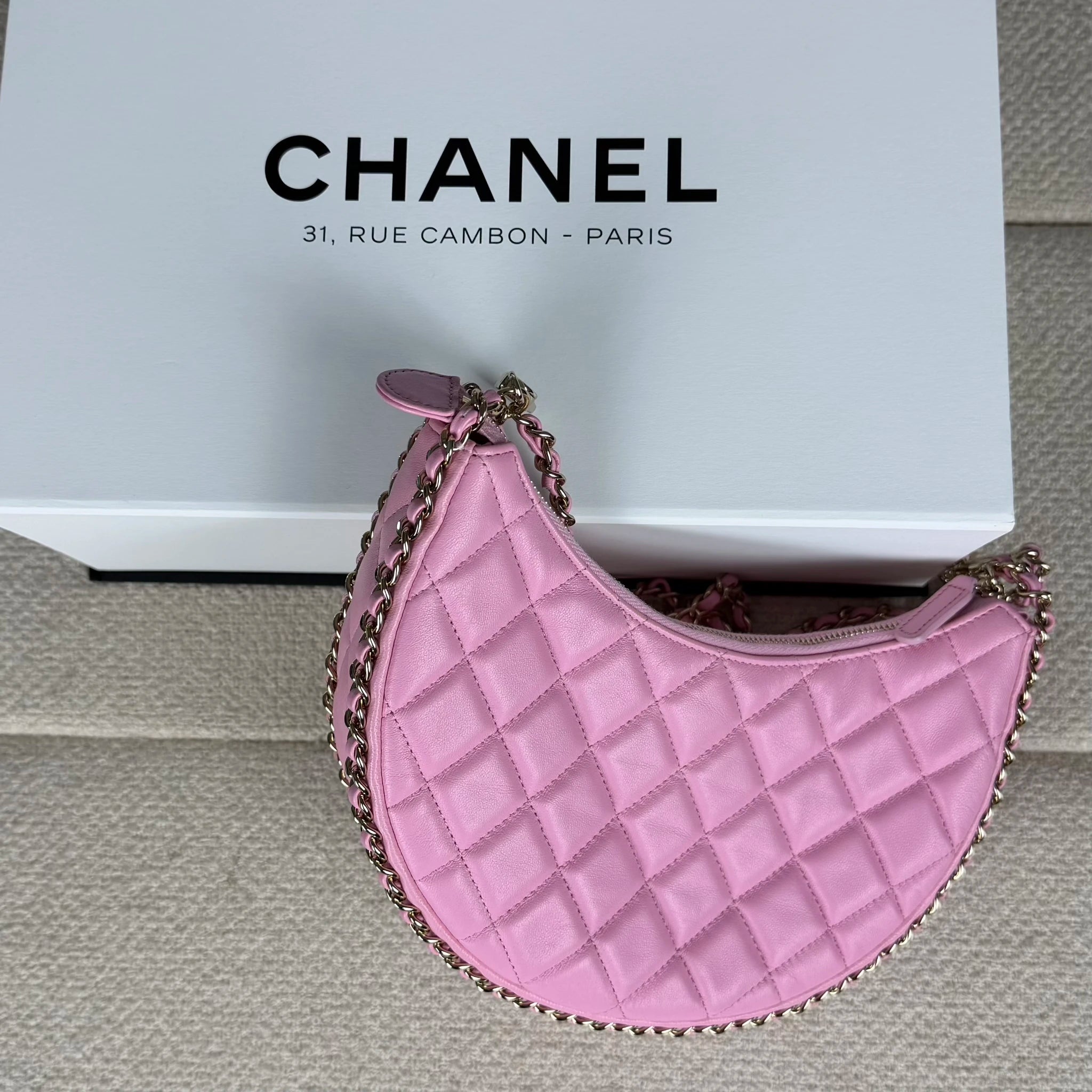 Chanel Small Quilted Lambskin Chain Around Hook Hobo Bag