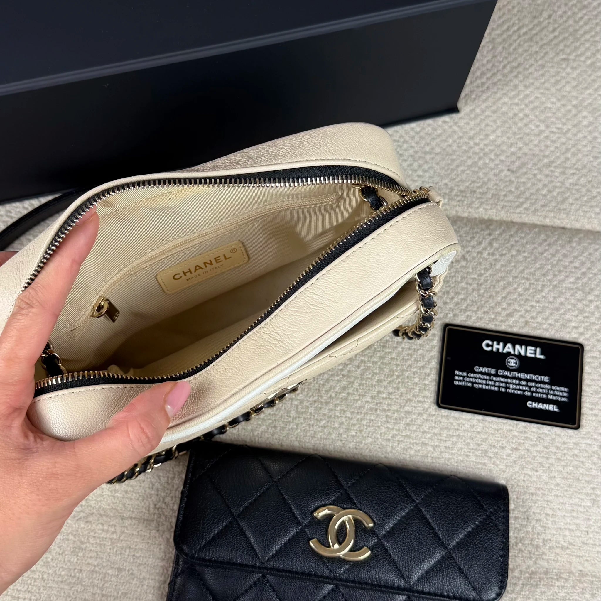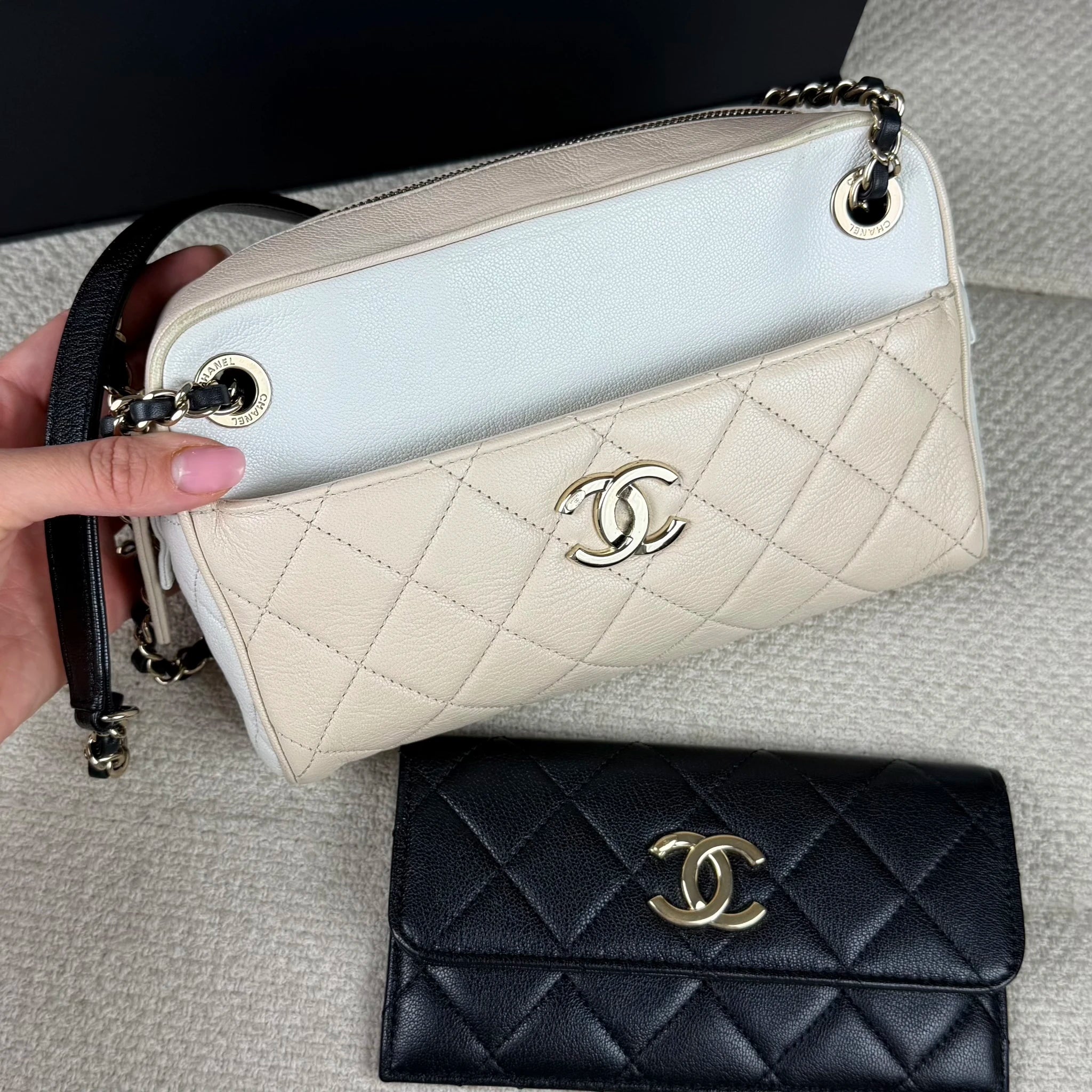 Chanel top zip around tricolor