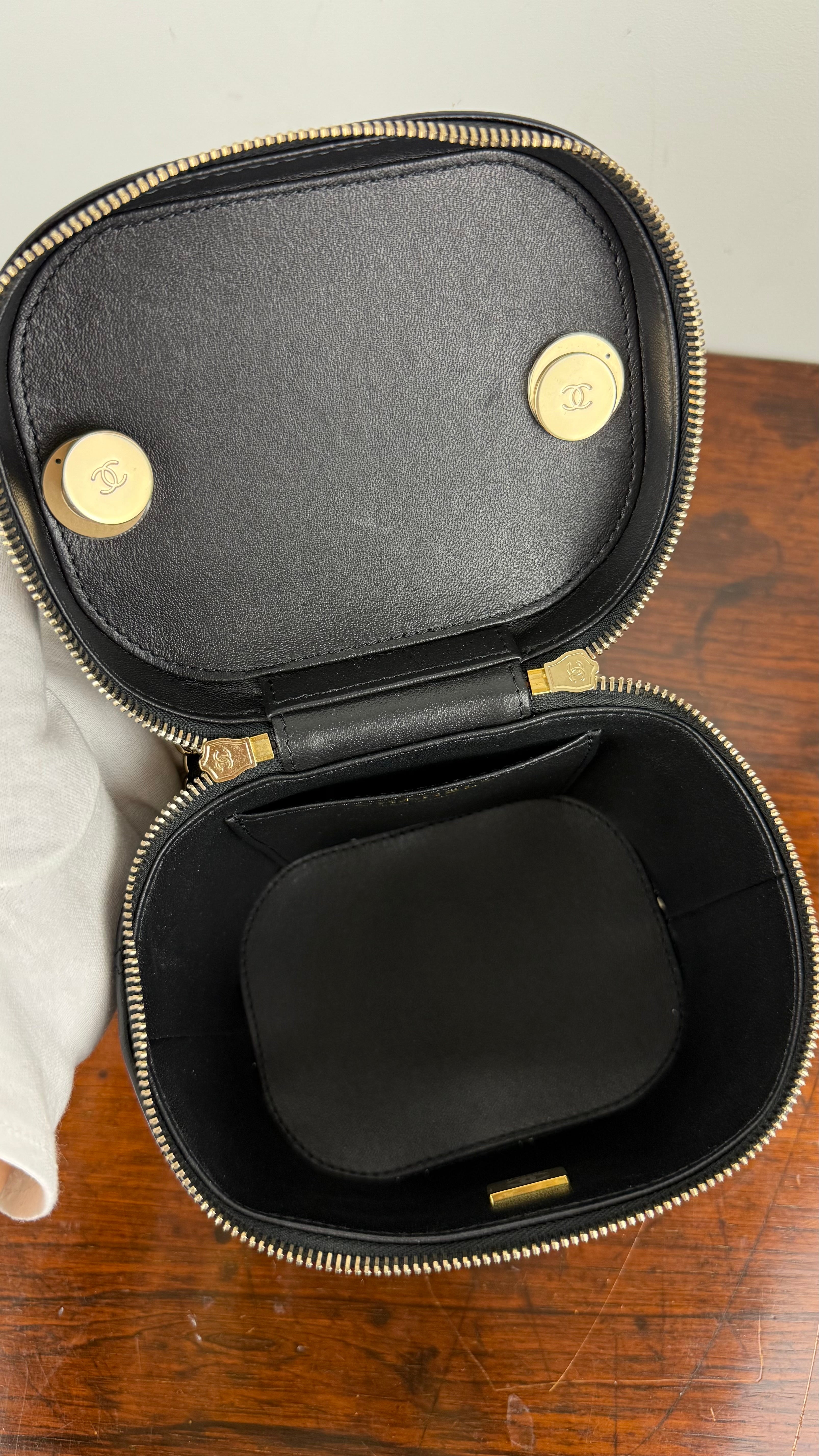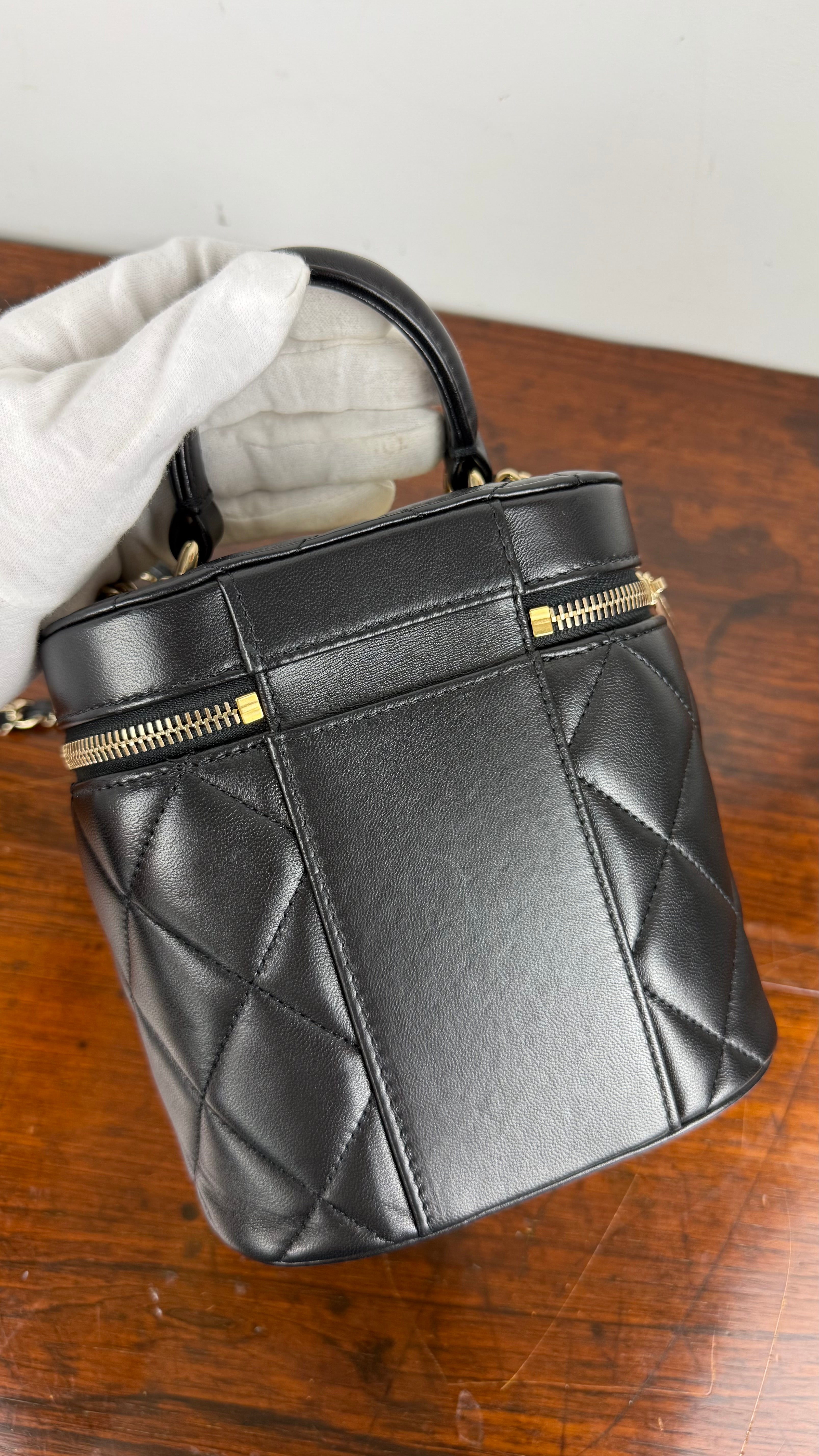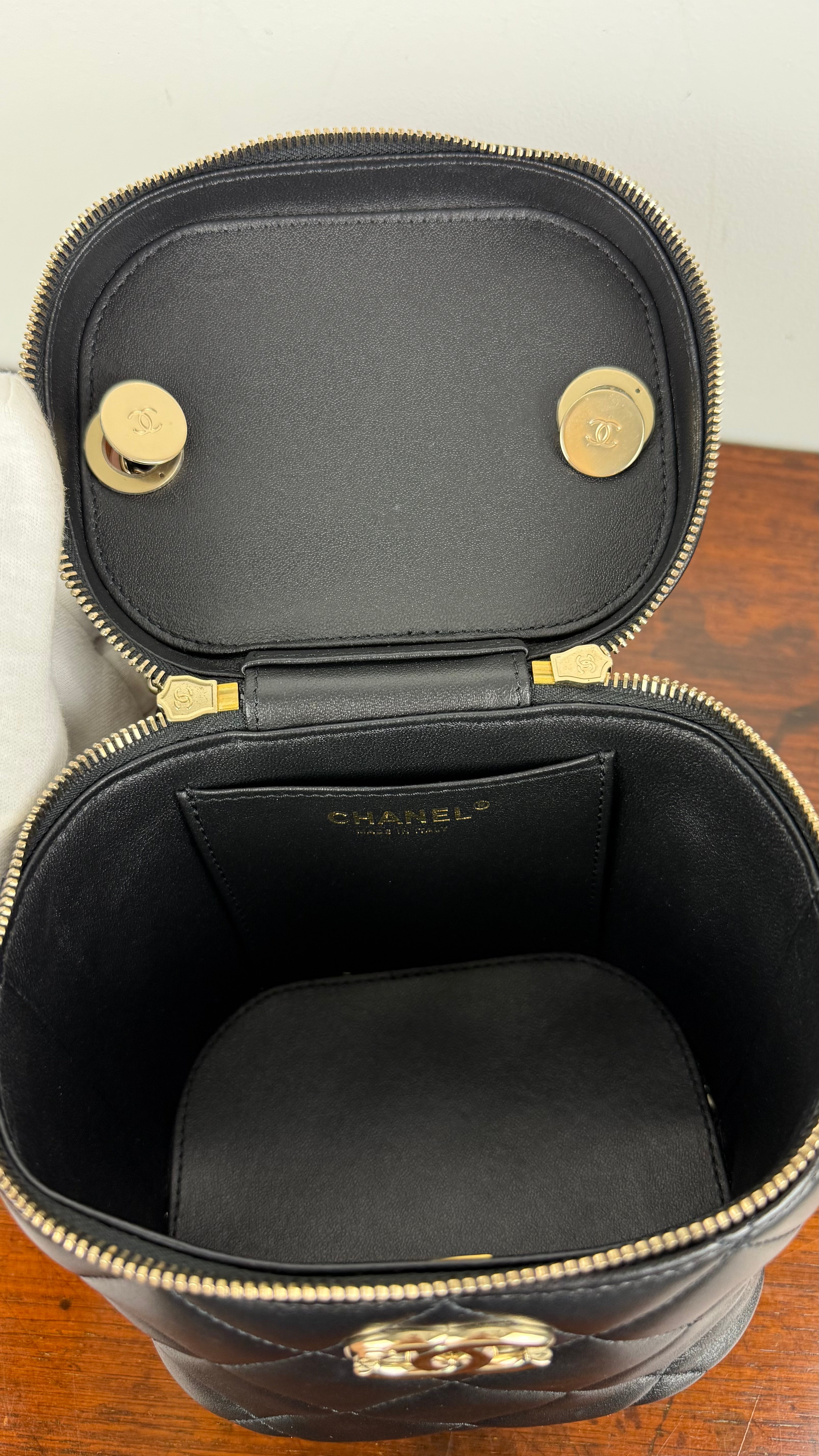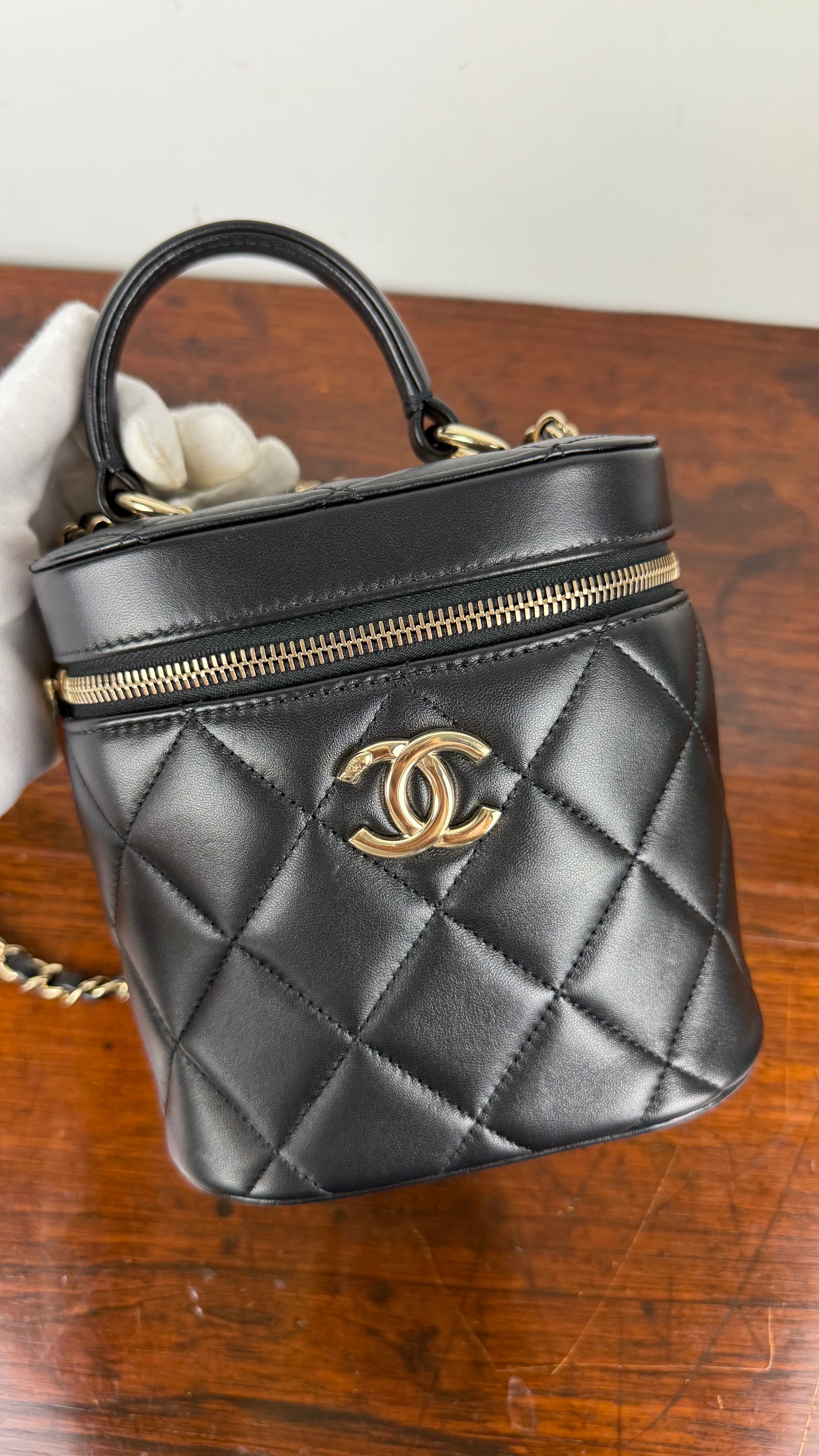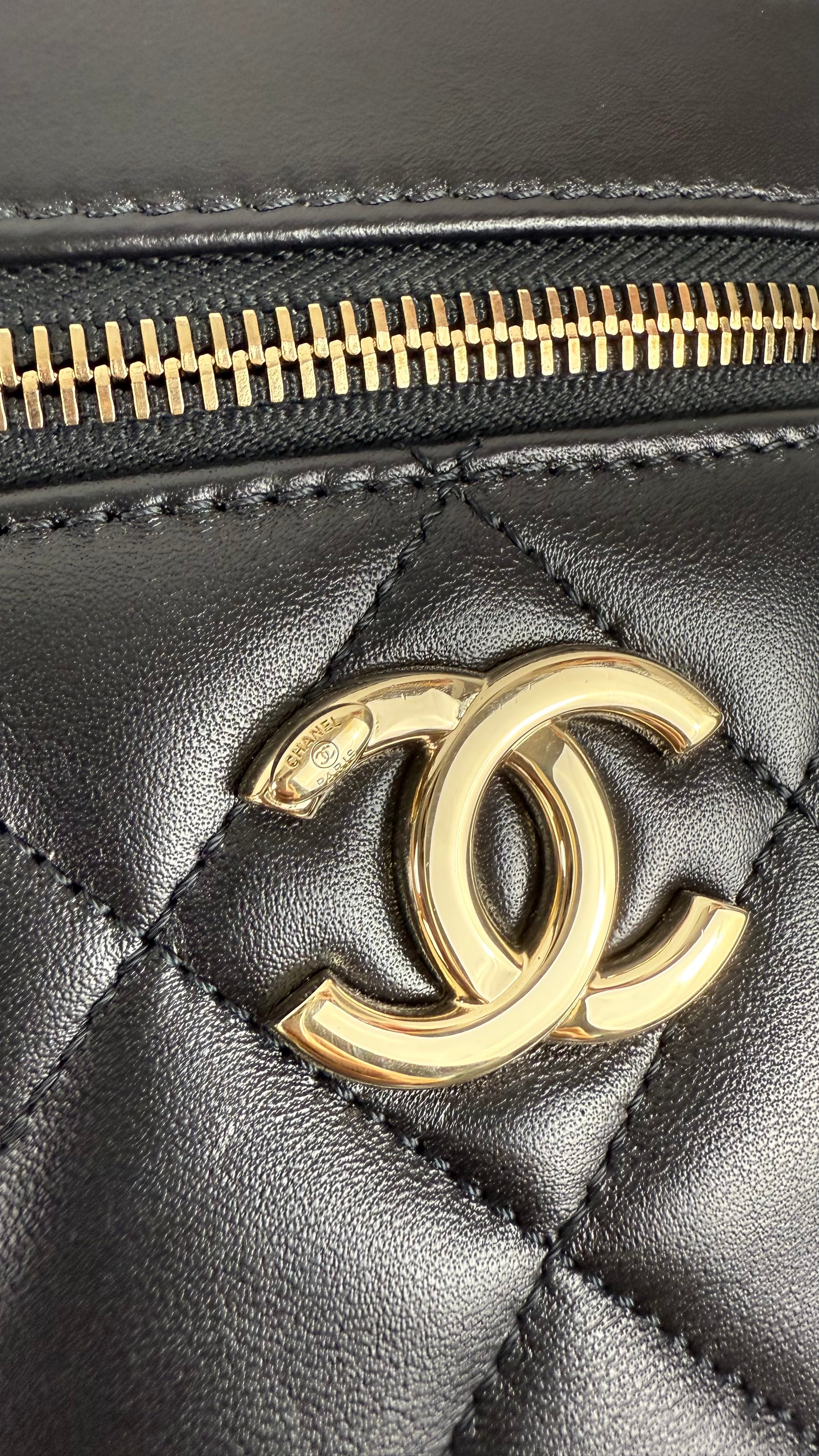 A linha Trendy CC é reconhecida pelo seu design sofisticado, elegante e contemporâneo, mantendo a tradição da Chanel. Esta versão Vanity é um acessório statement, perfeito para quem procura uma bolsa rara, prática e altamente colecionável.