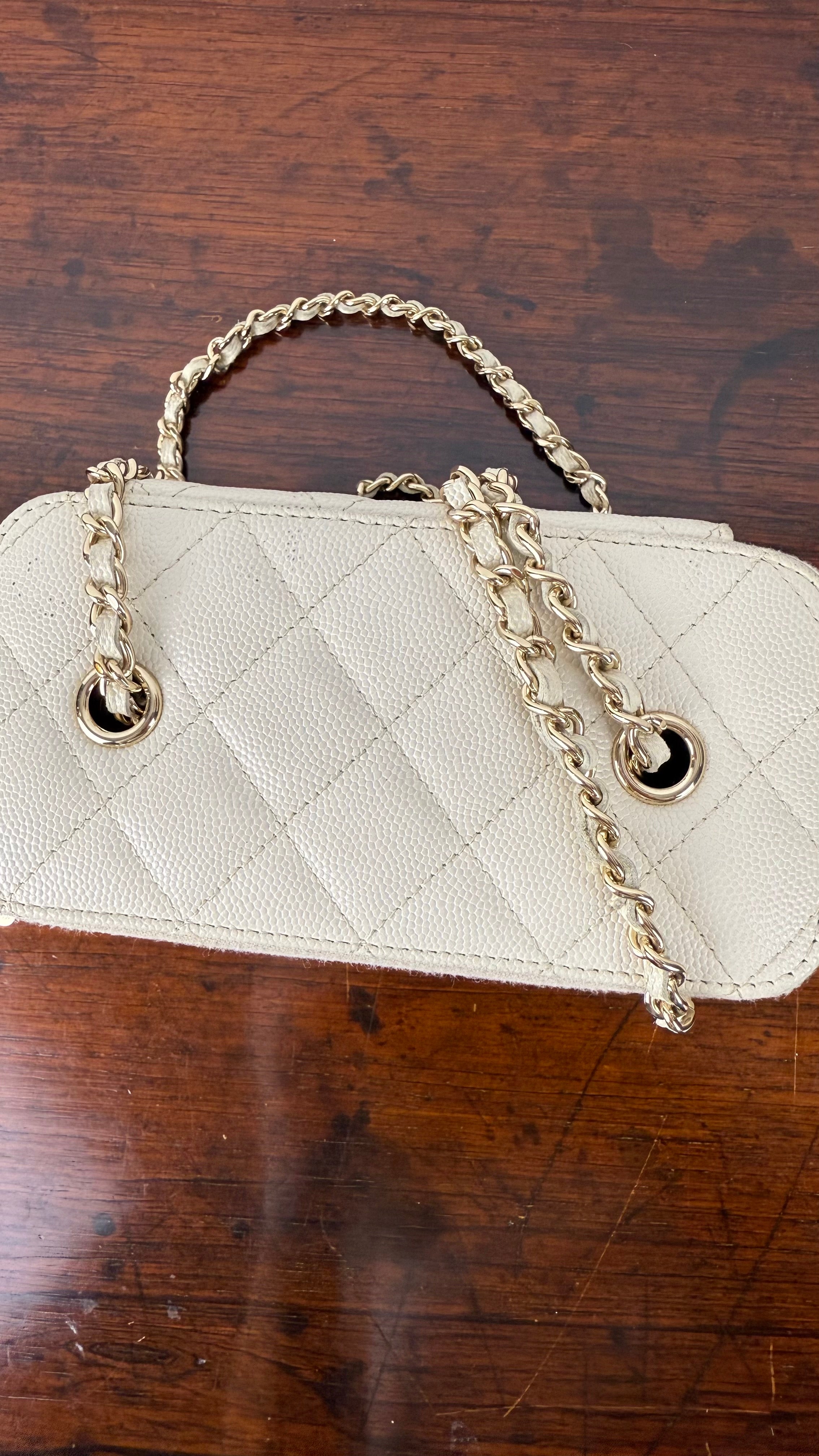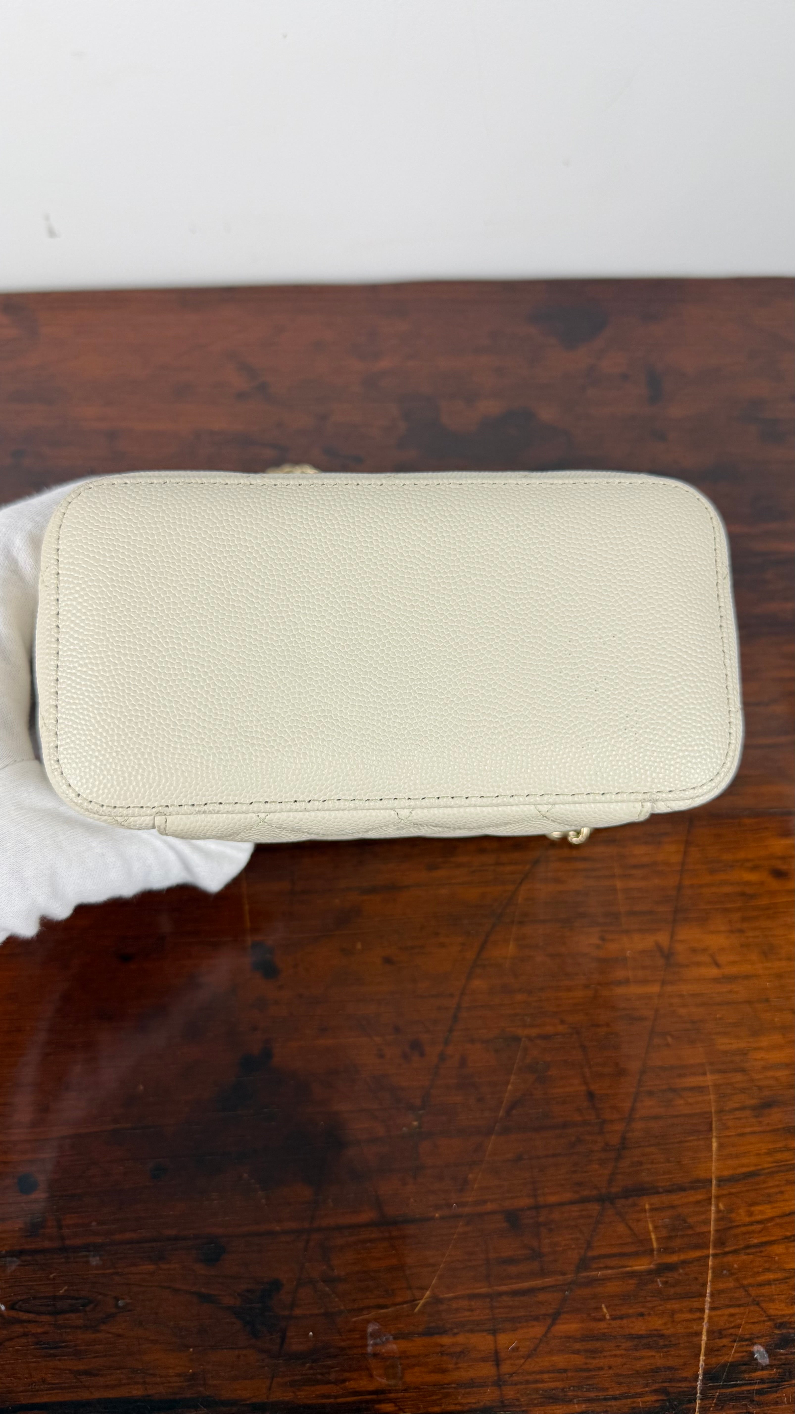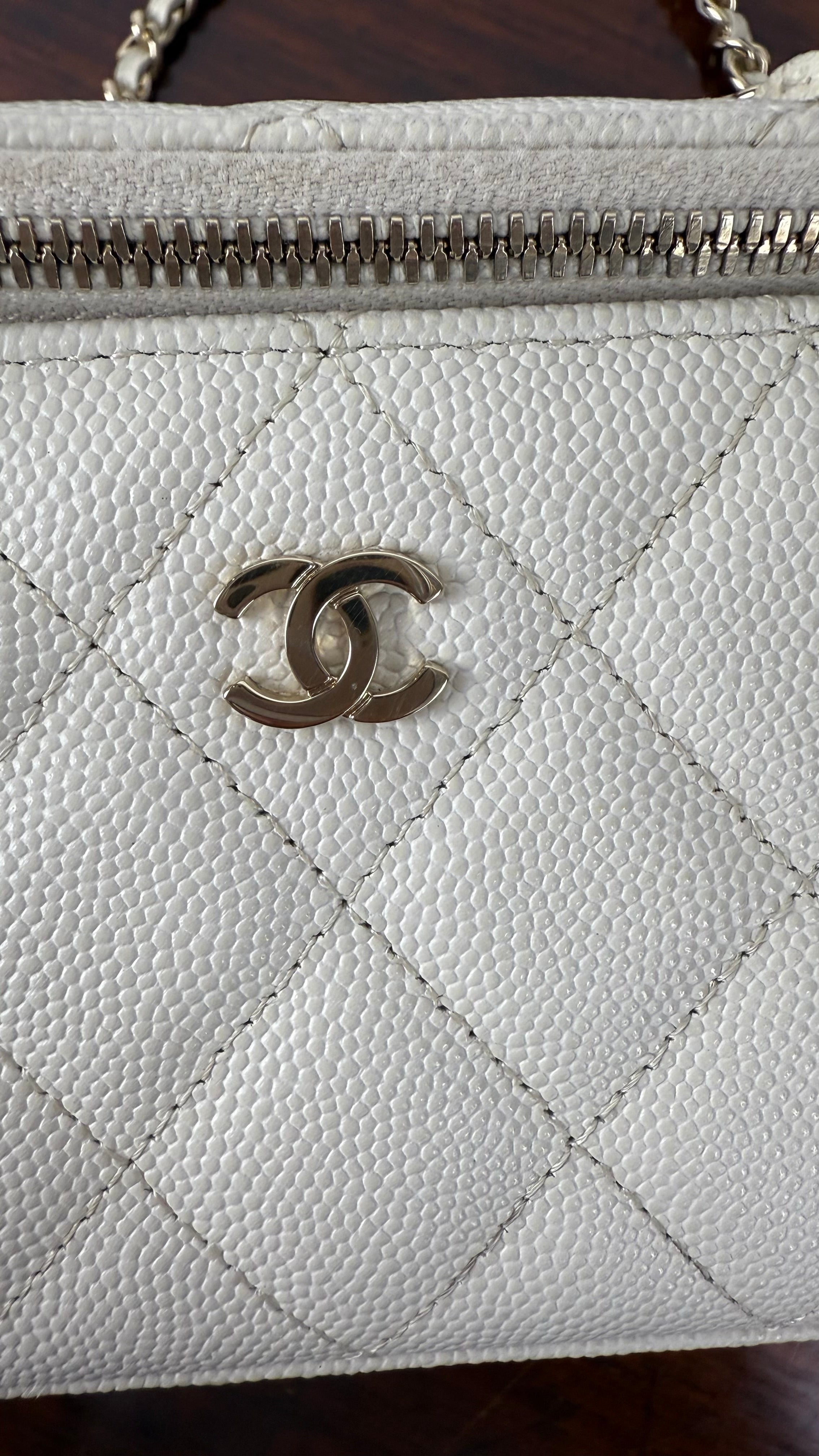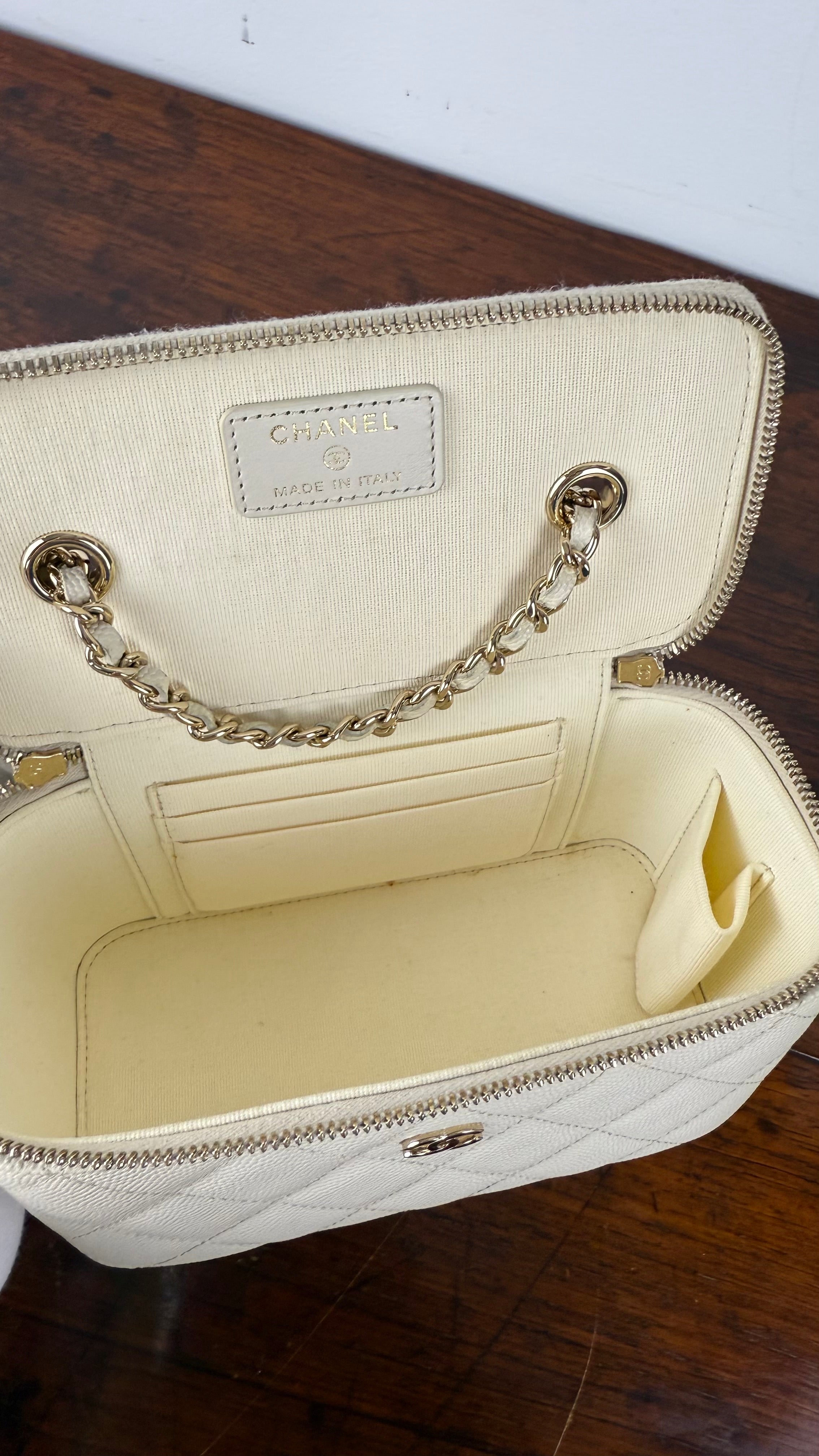 A Vanity Bag da Chanel é uma das peças mais desejadas das coleções recentes, reinterpretando as clássicas vanity cases em versão moderna e funcional. O design combina a elegância intemporal do acolchoado Chanel com a praticidade de uma mala compacta para o dia a dia.