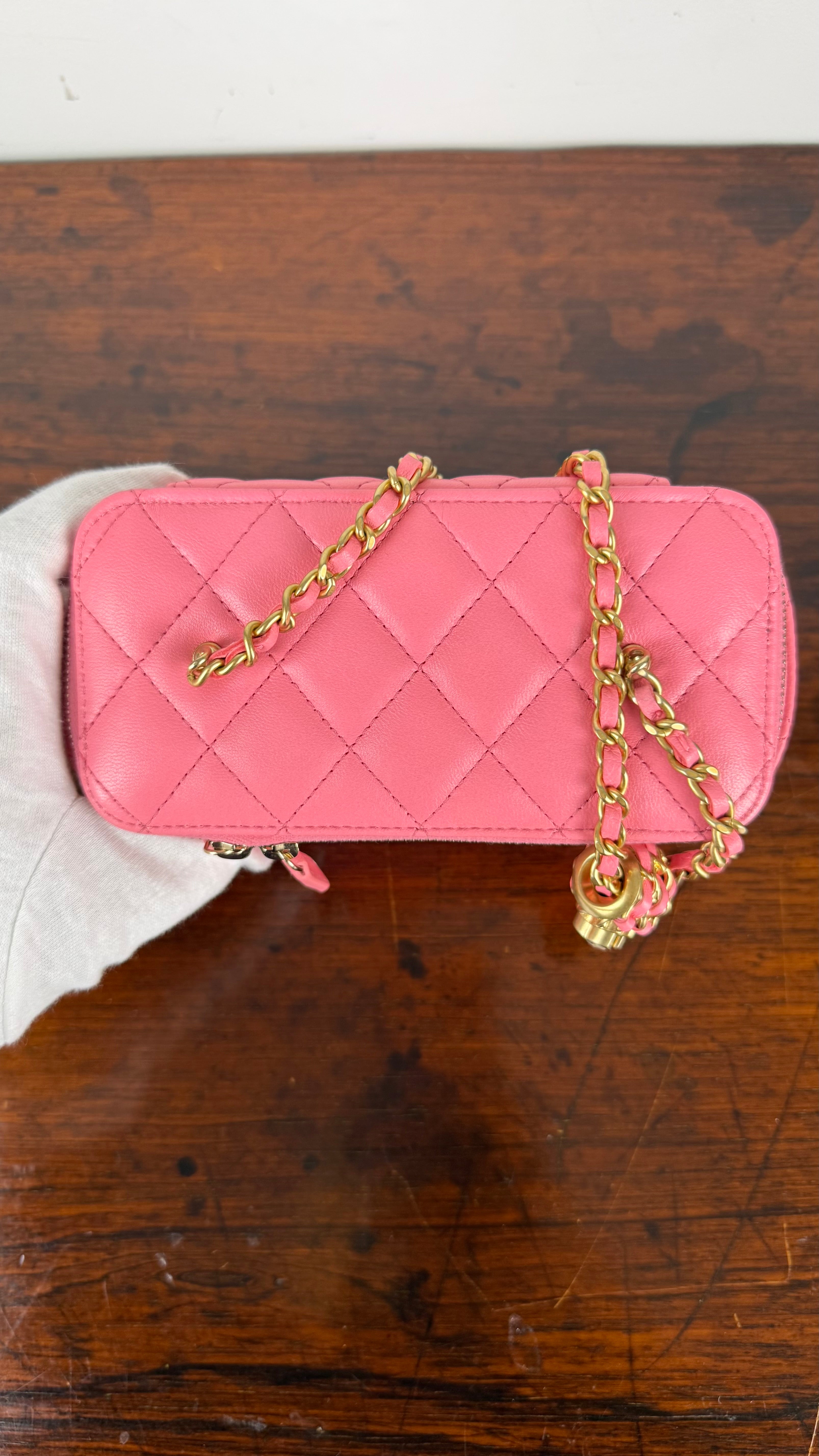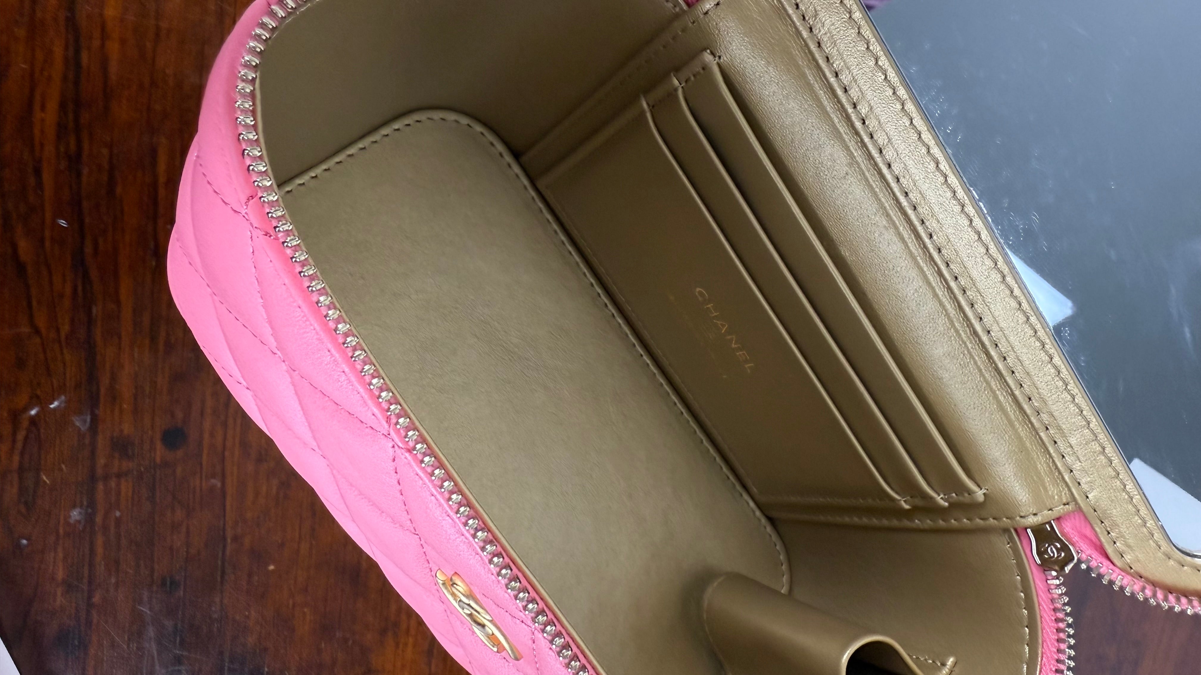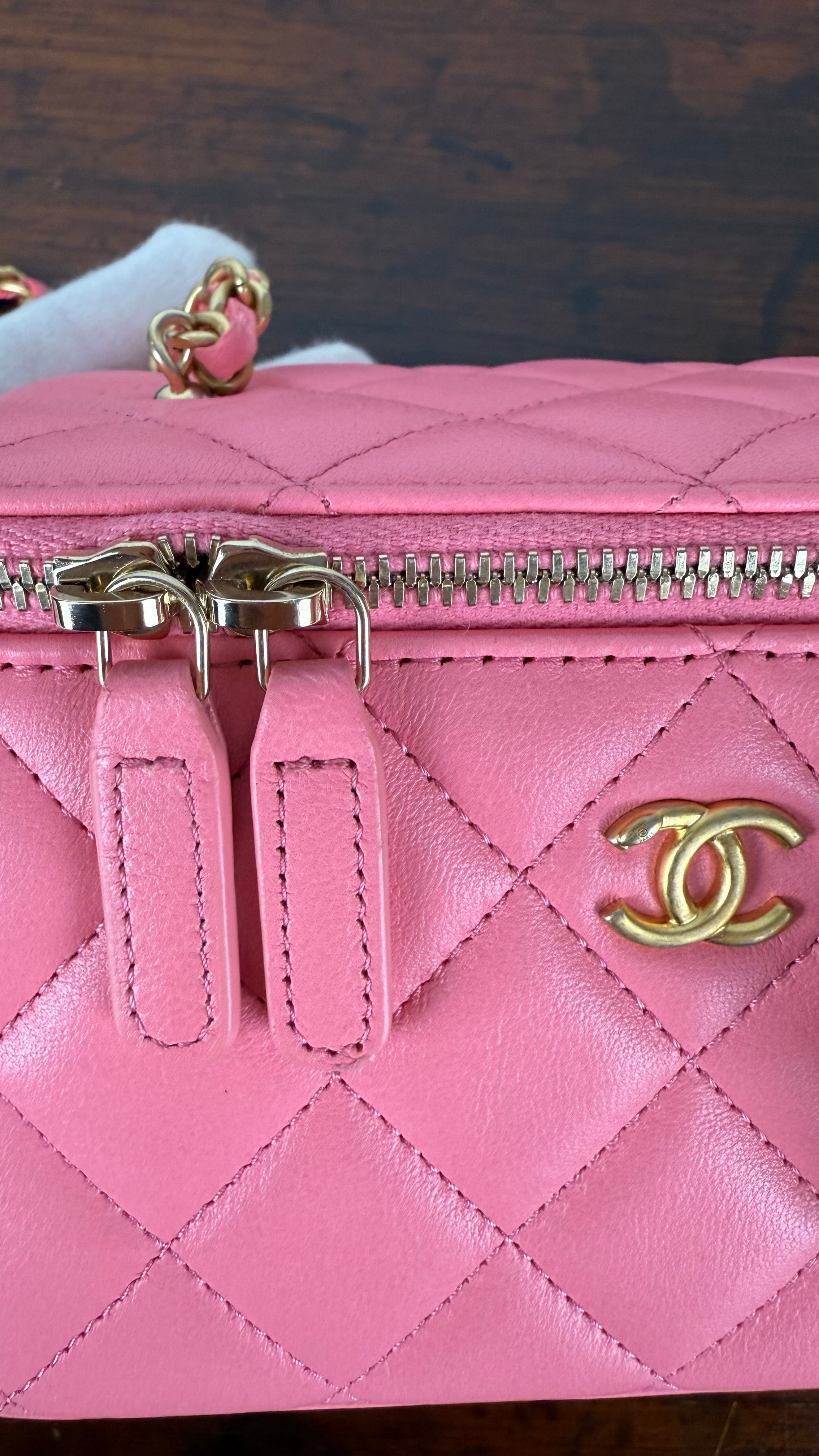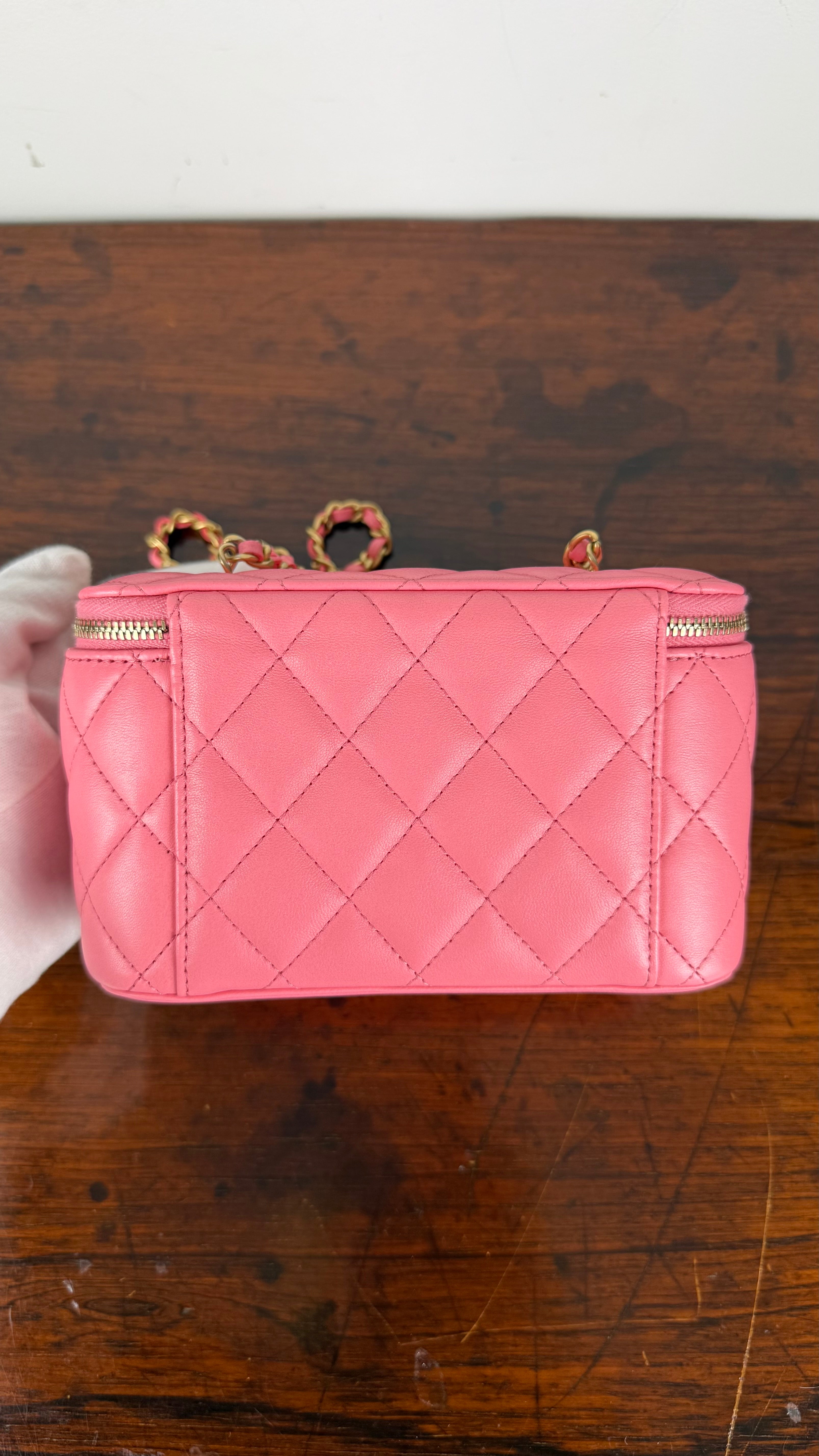 A Vanity Case da Chanel é uma peça atemporal que une sofisticação e praticidade. Inspirada nos estojos de beleza vintage da maison, ganhou uma versão moderna e versátil, perfeita para ser usada tanto como crossbody quanto como clutch de impacto.