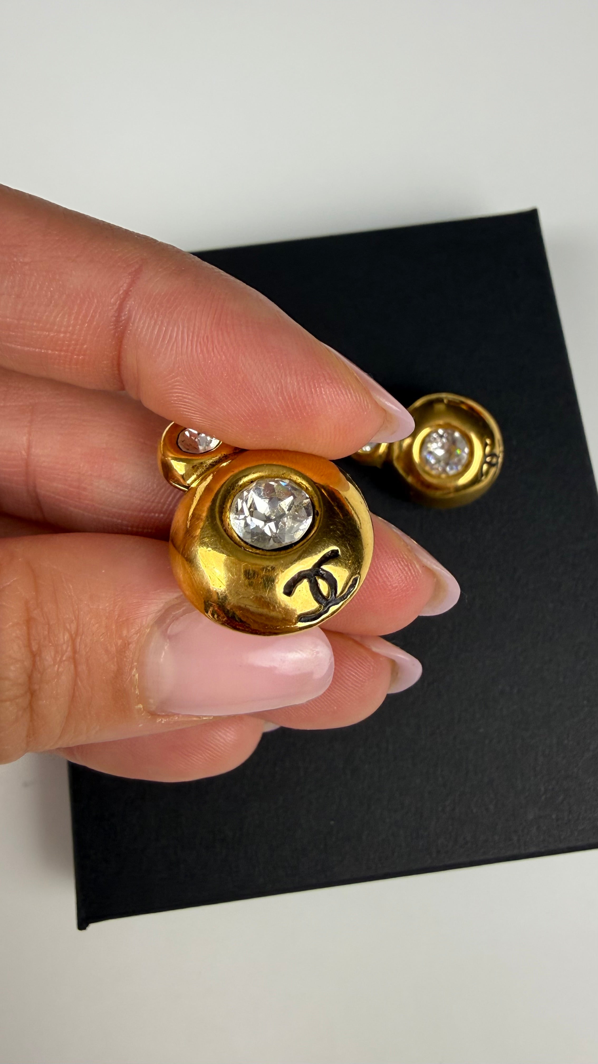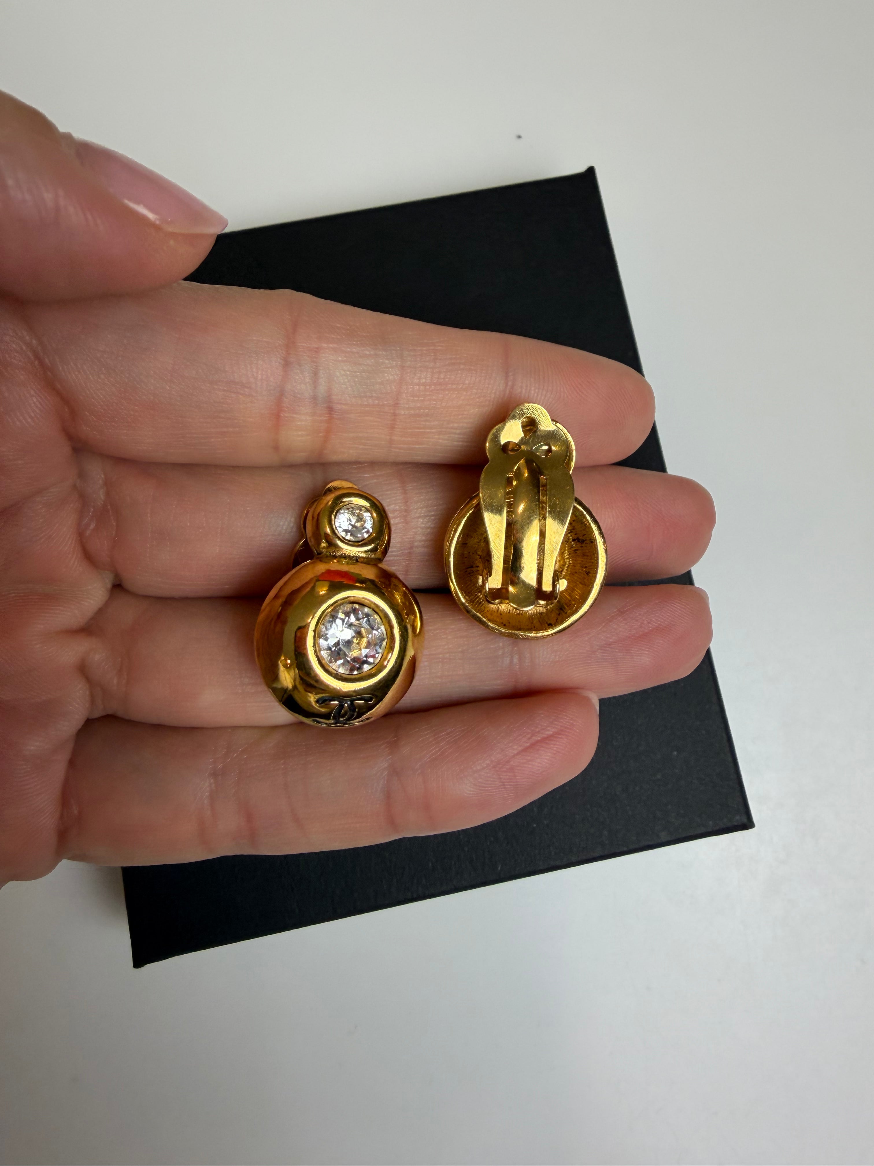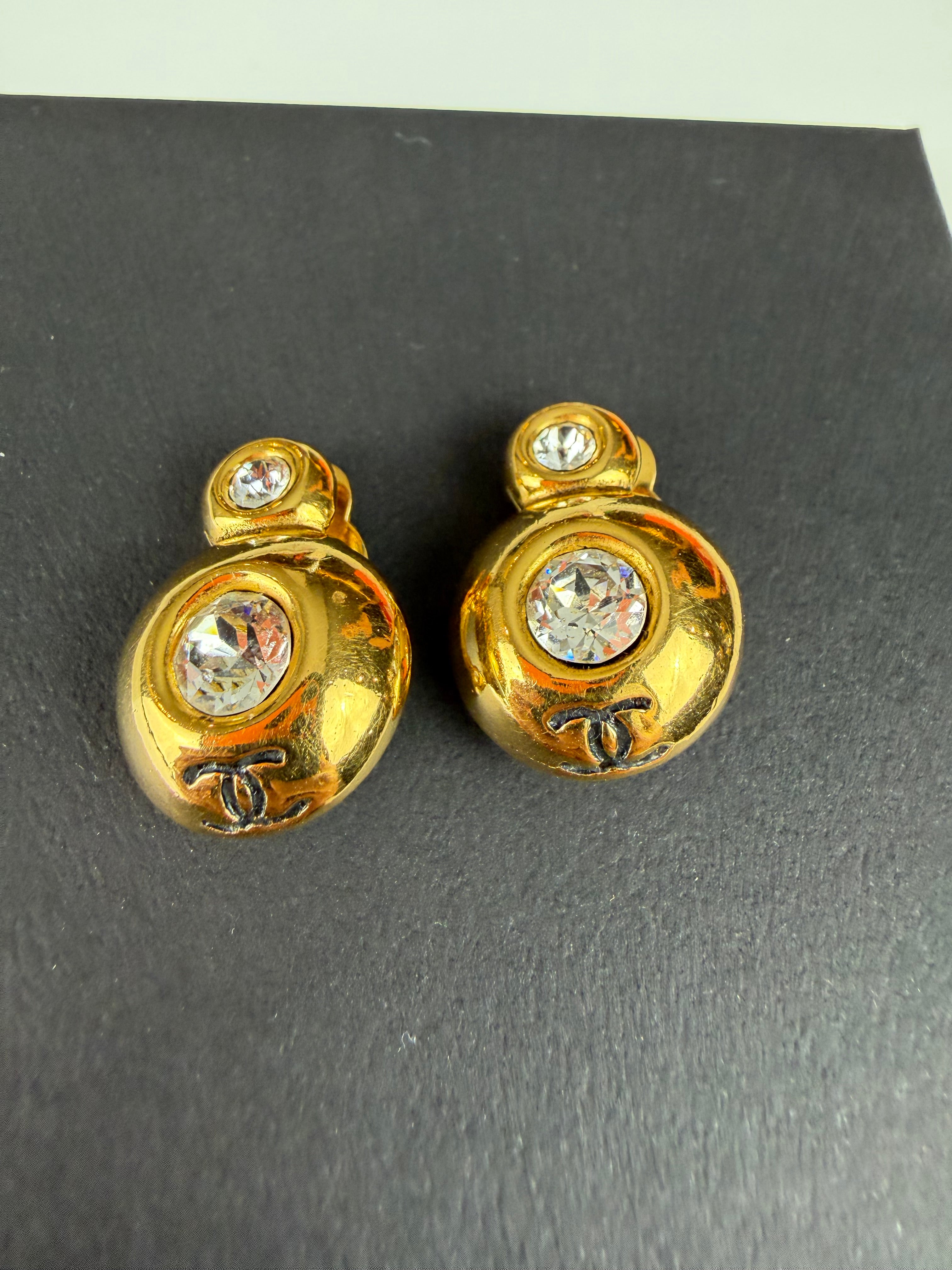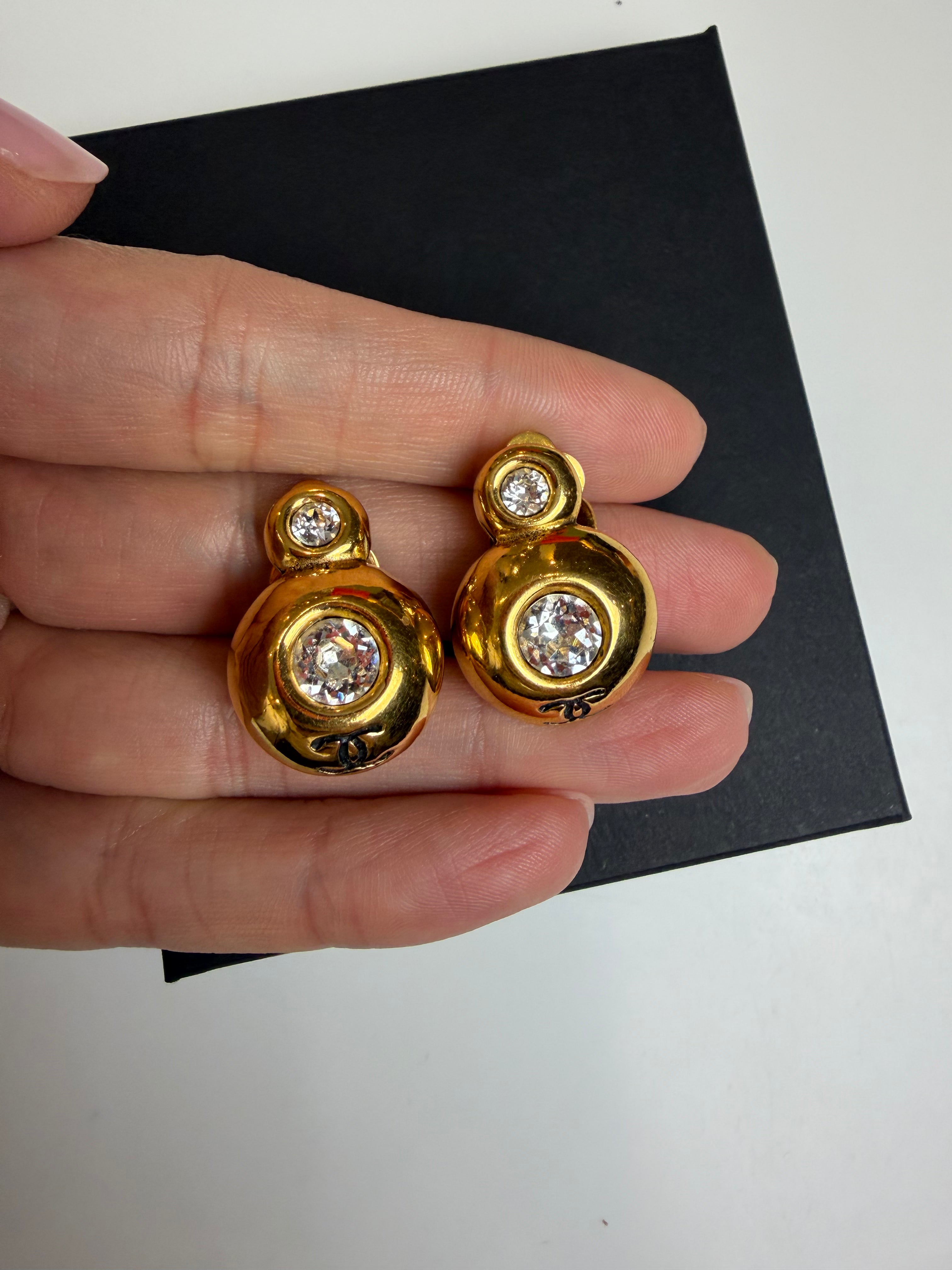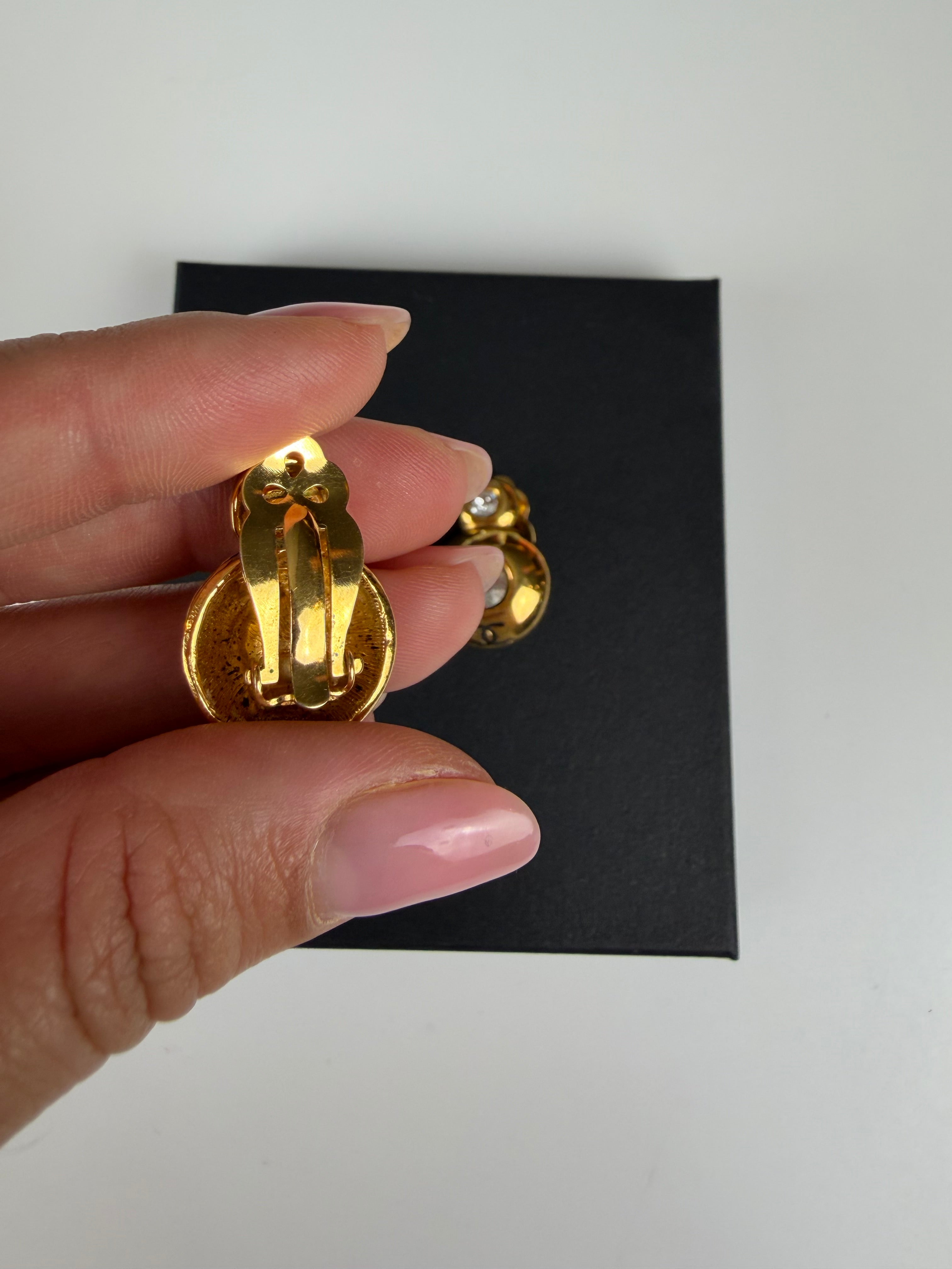 Chanel Vintage Gold Clip-On Earrings with Crystals