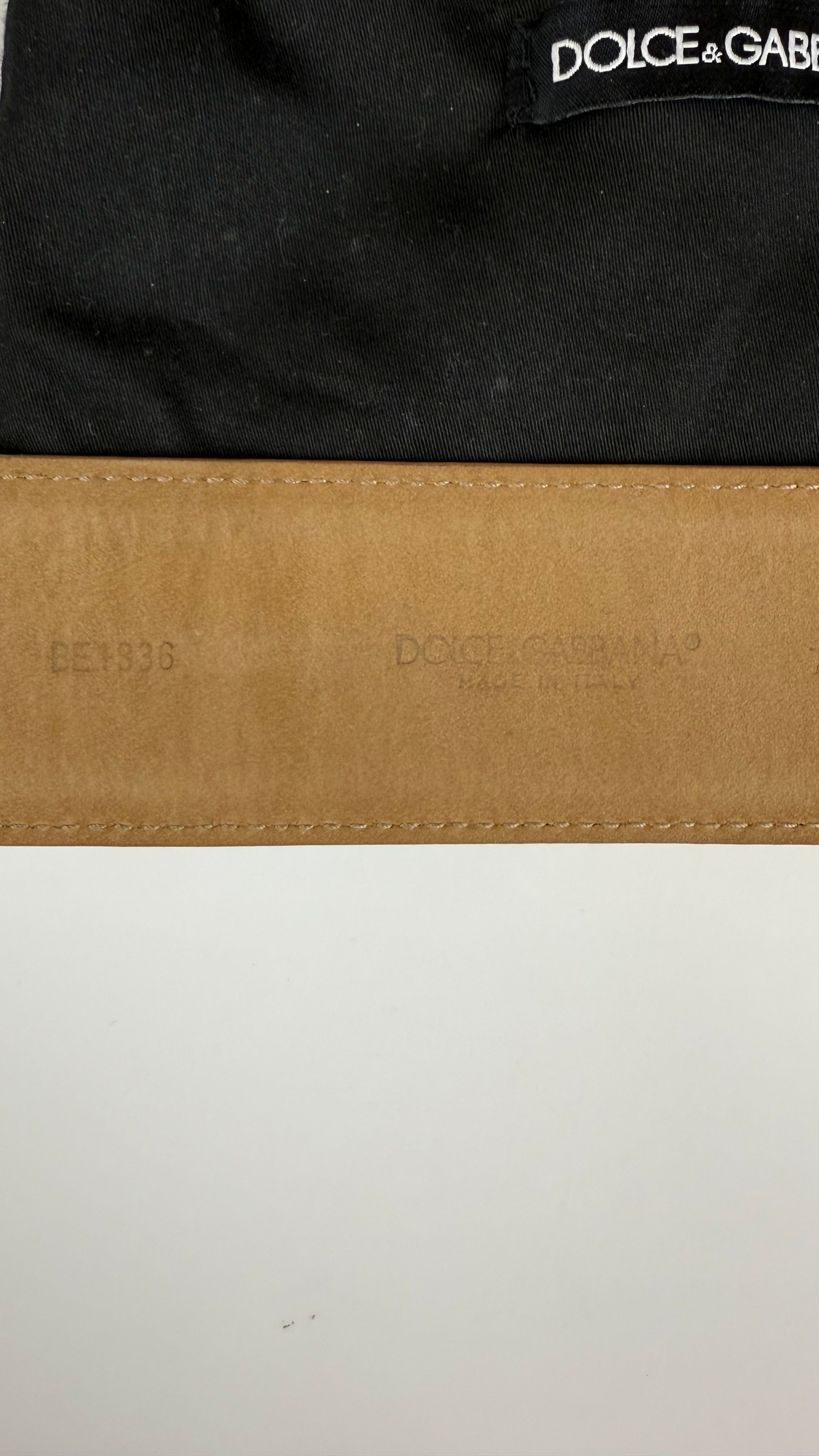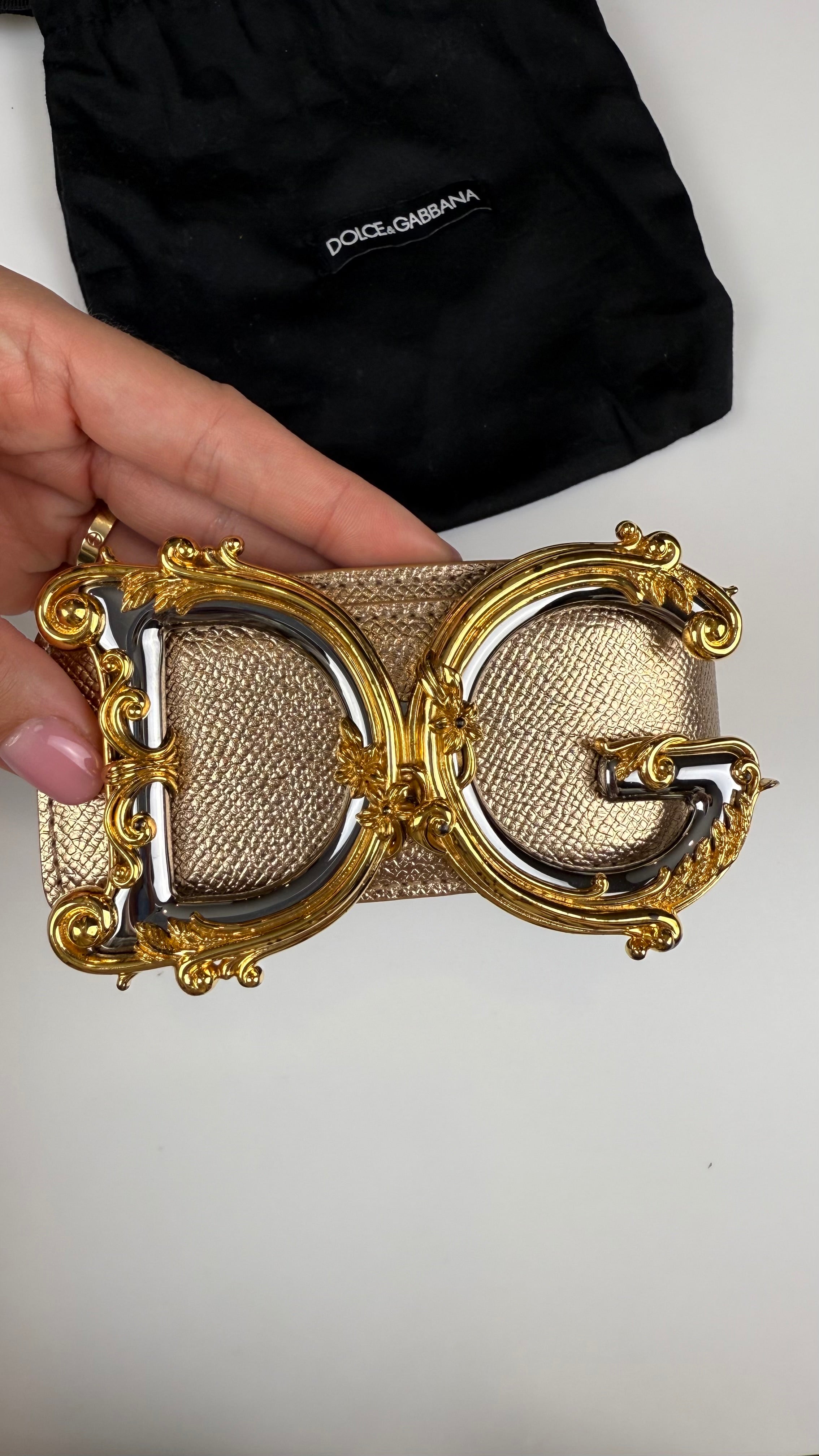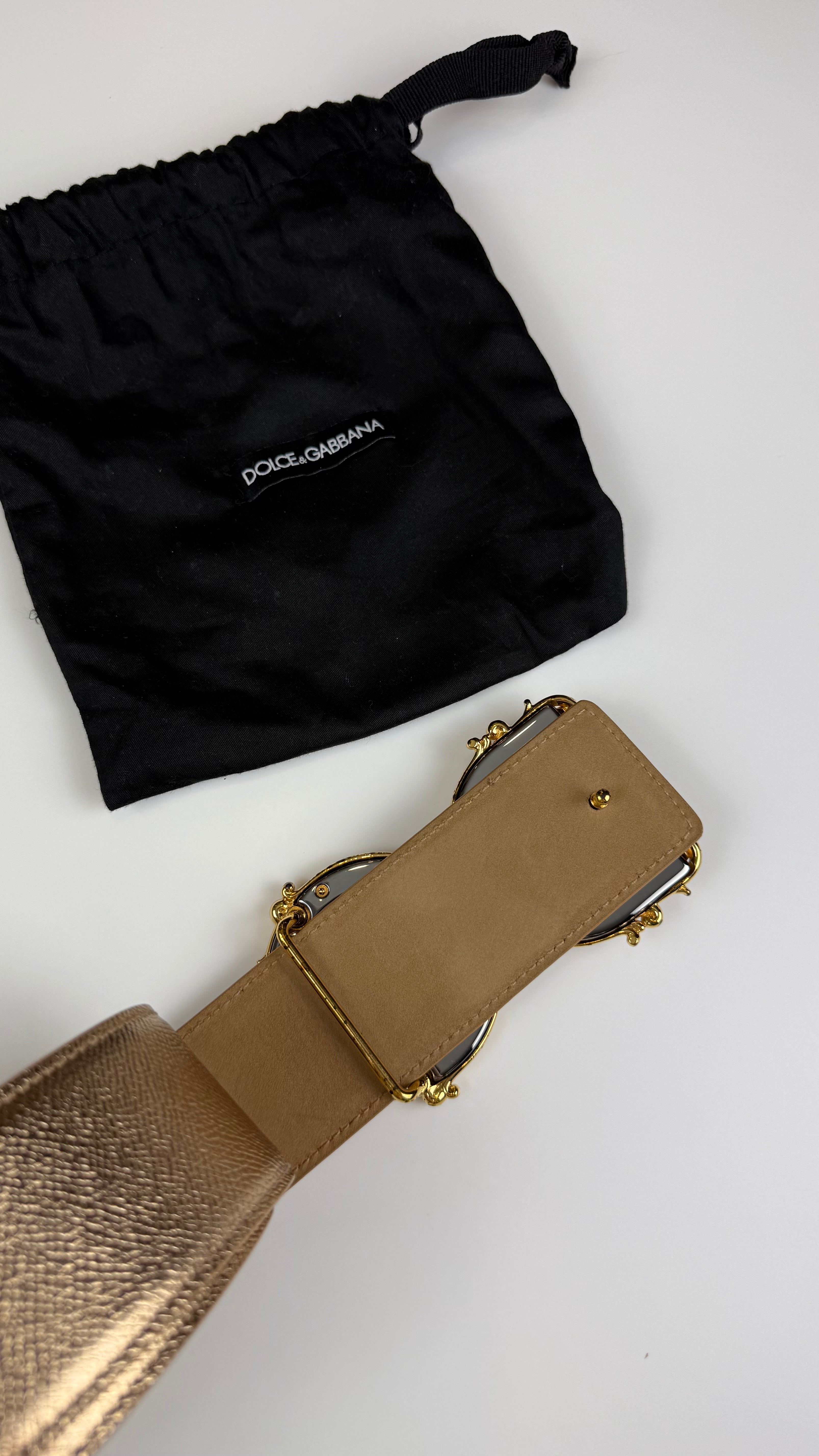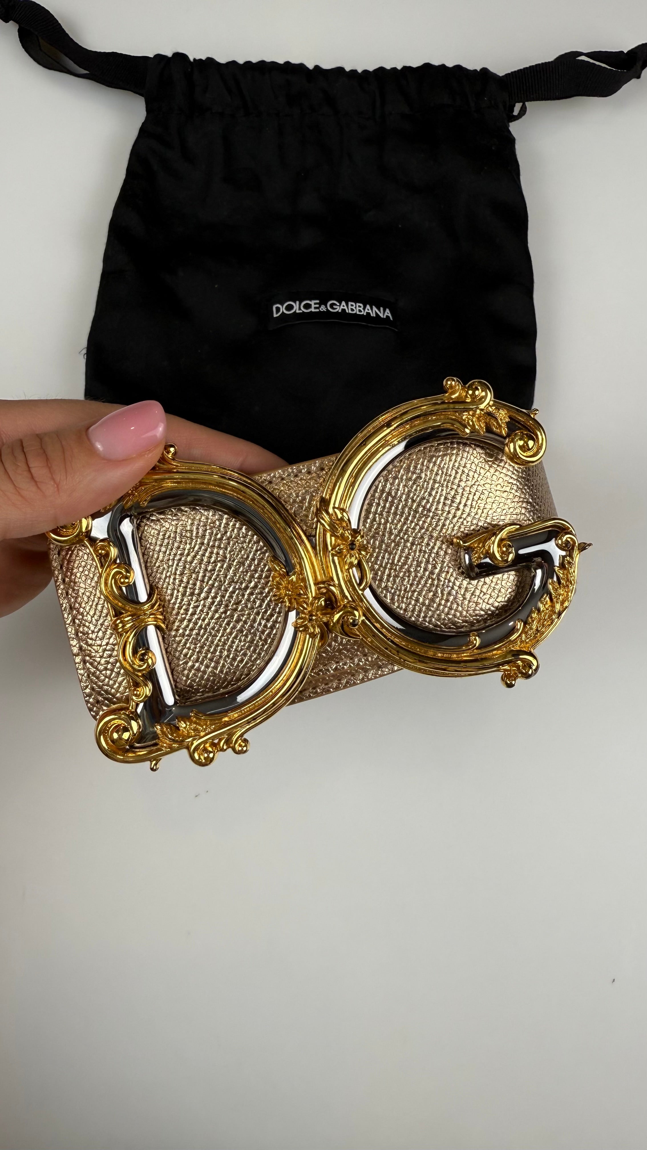 Cinto de couro dourado com fivela icônica Baroque com logo DG em metal. Largura 5 cm ideal para marcar cintura com sofisticação.