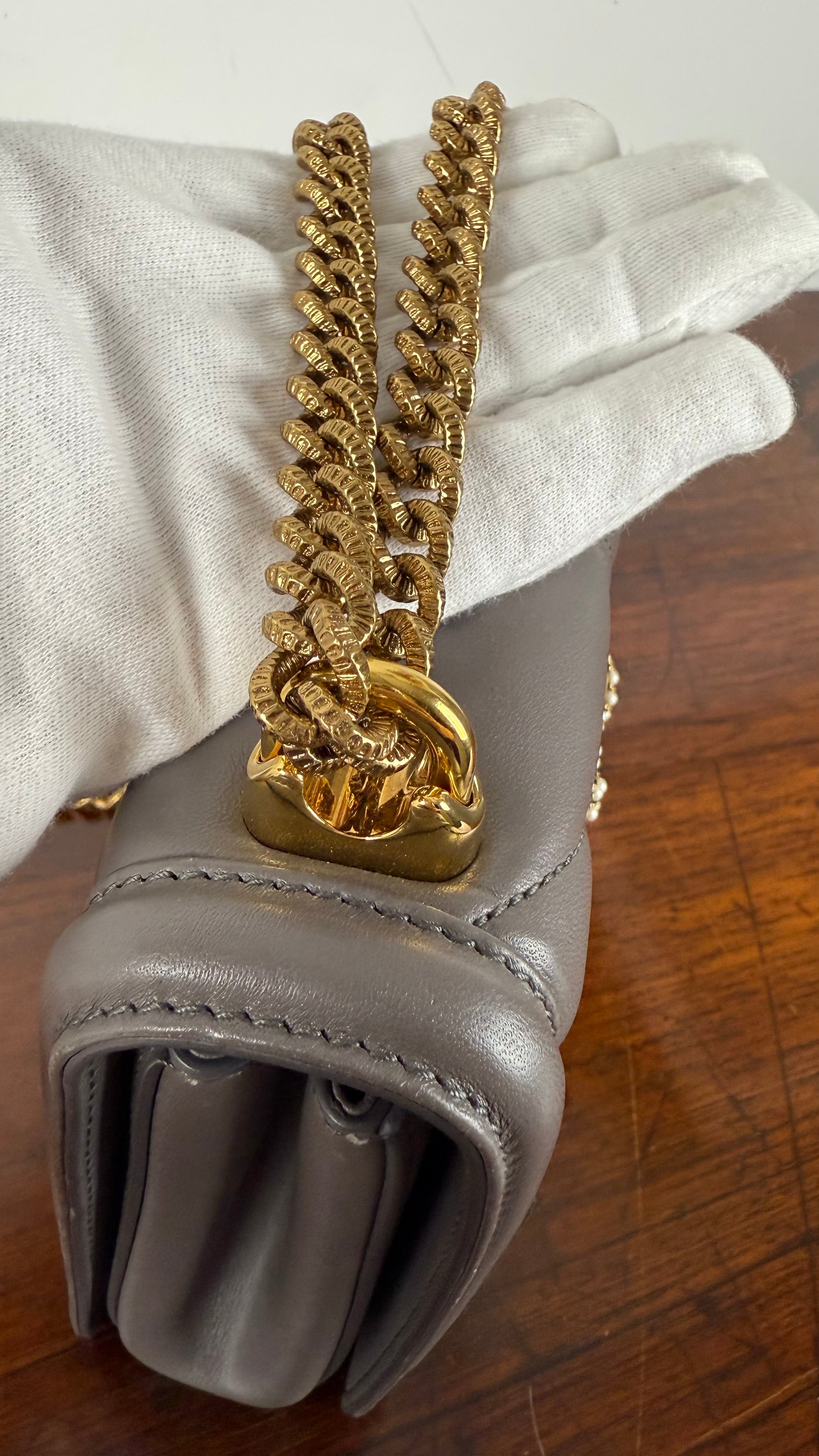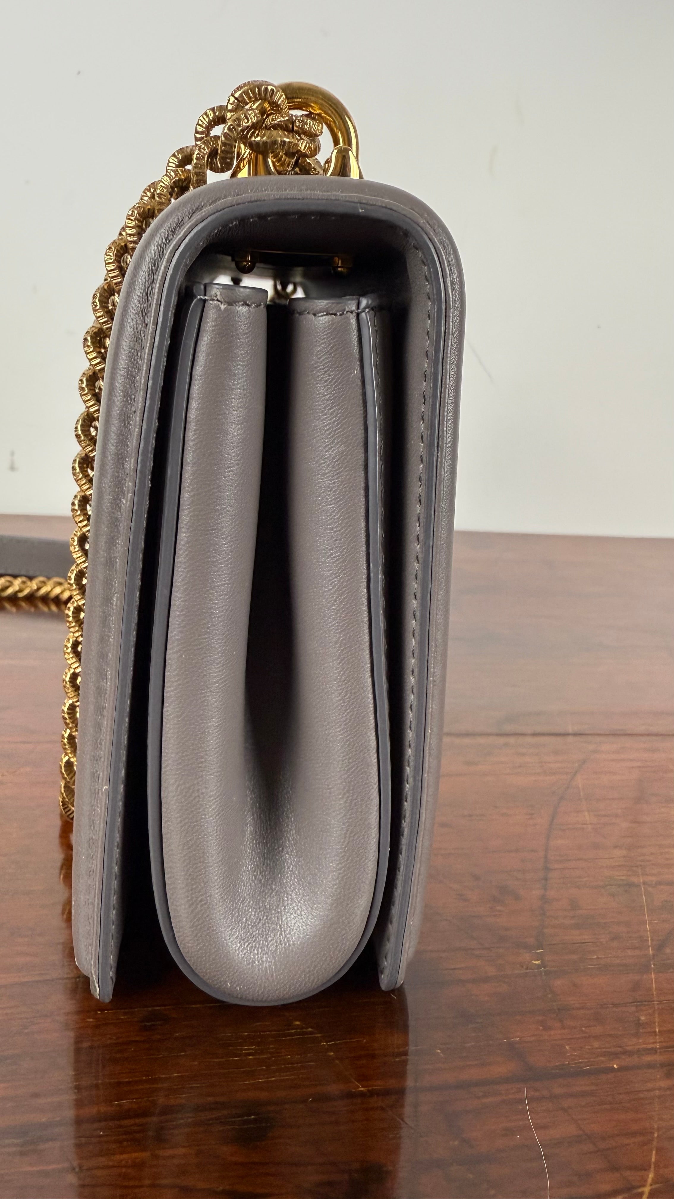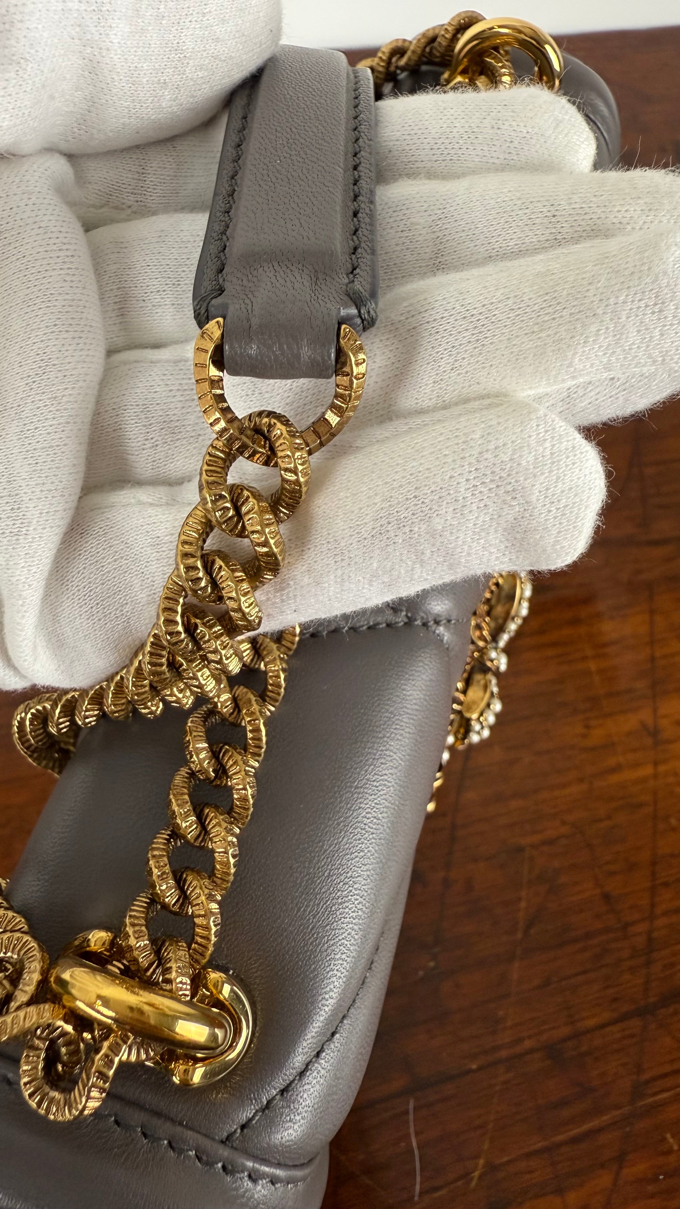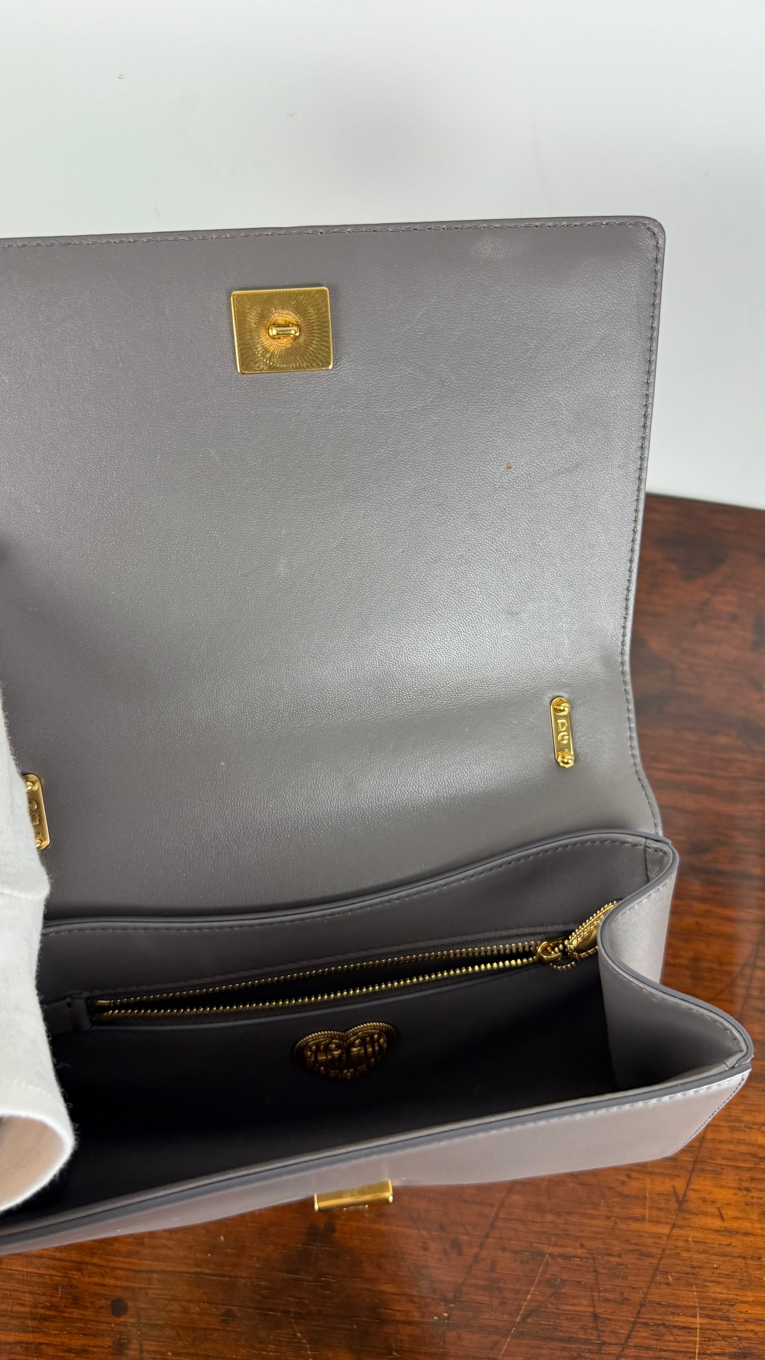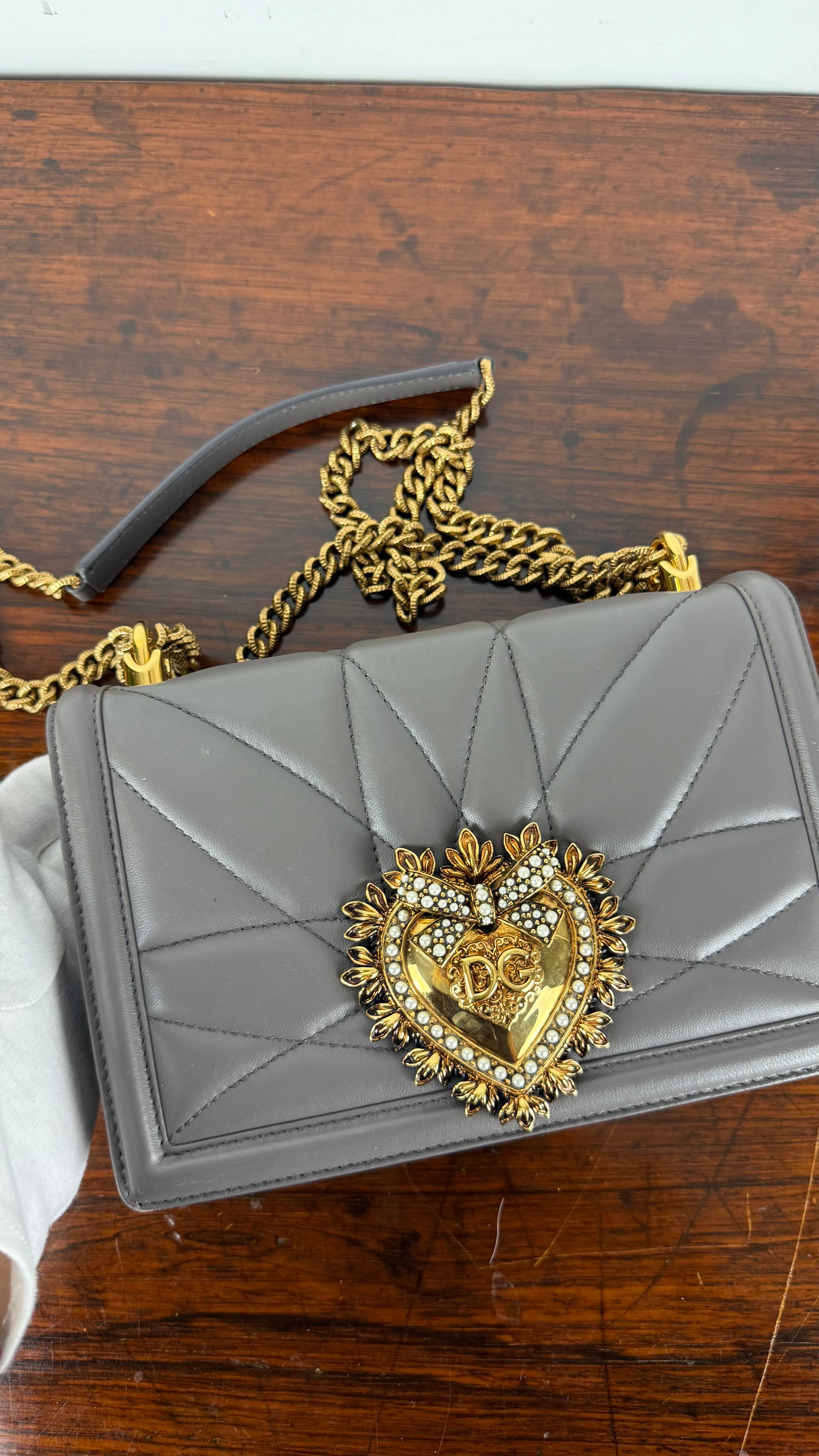 A Devotion Bag é um dos modelos mais emblemáticos da Dolce & Gabbana, celebrada por seu design sofisticado e o detalhe artesanal exclusivo: o sagrado coração DG em metal dourado e pérolas, feito à mão na Itália. É uma peça símbolo da maison, unindo luxo, romantismo e estilo atemporal.