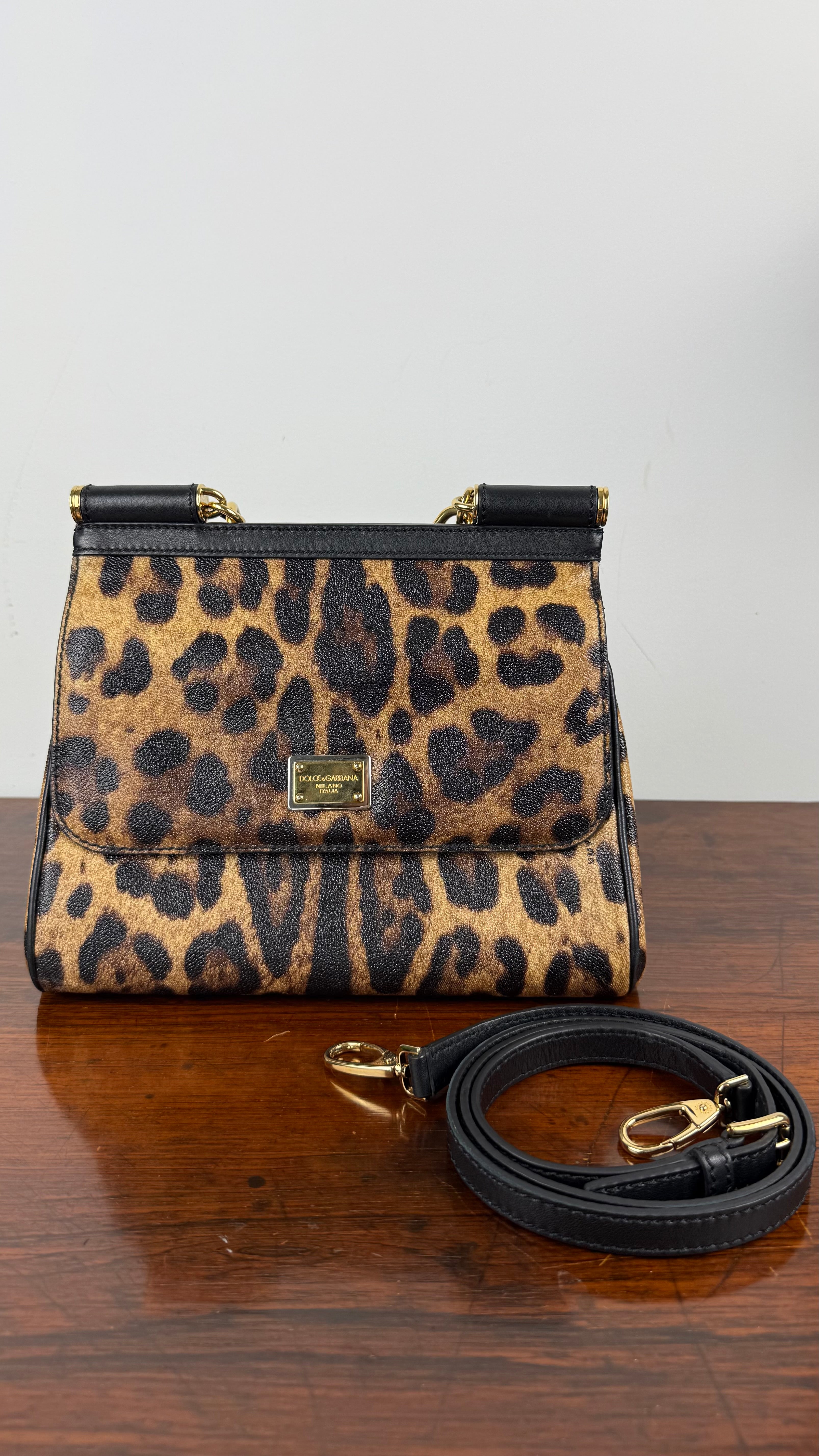 A Sicily Medium é um dos modelos mais icônicos da Dolce & Gabbana, representando a sofisticação e a feminilidade da marca italiana. Nesta versão, a peça ganha ainda mais destaque com a estampa de leopardo, um clássico da maison, que transmite personalidade e ousadia sem perder a elegância.