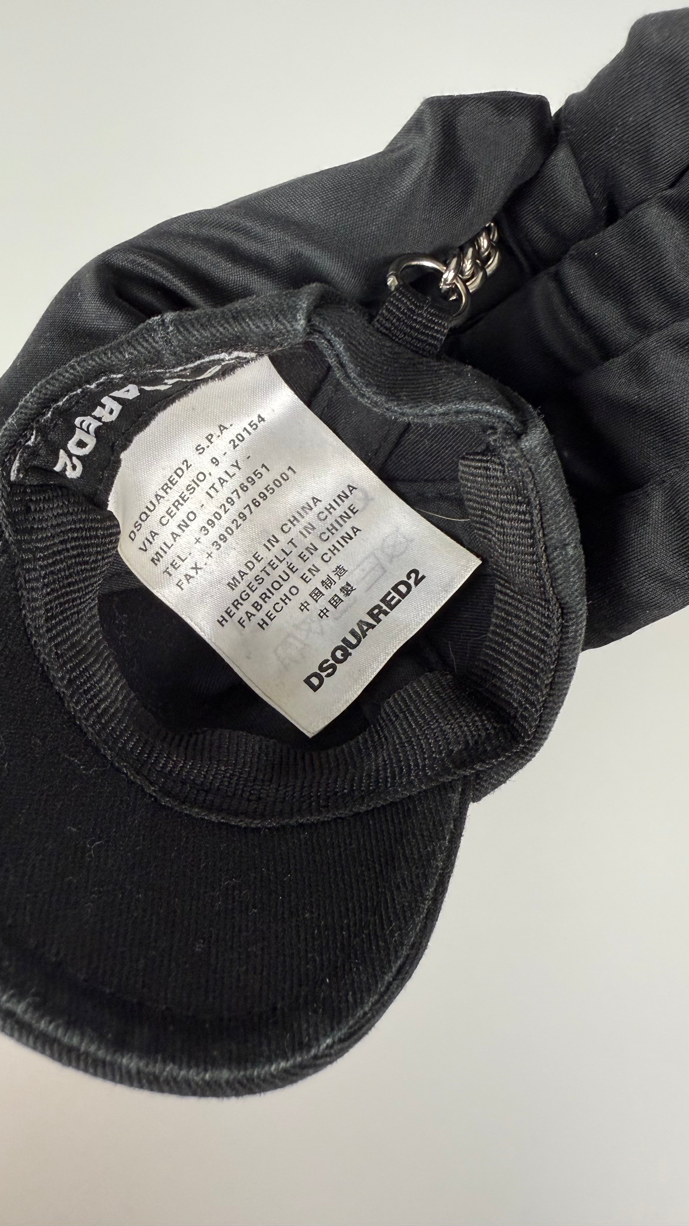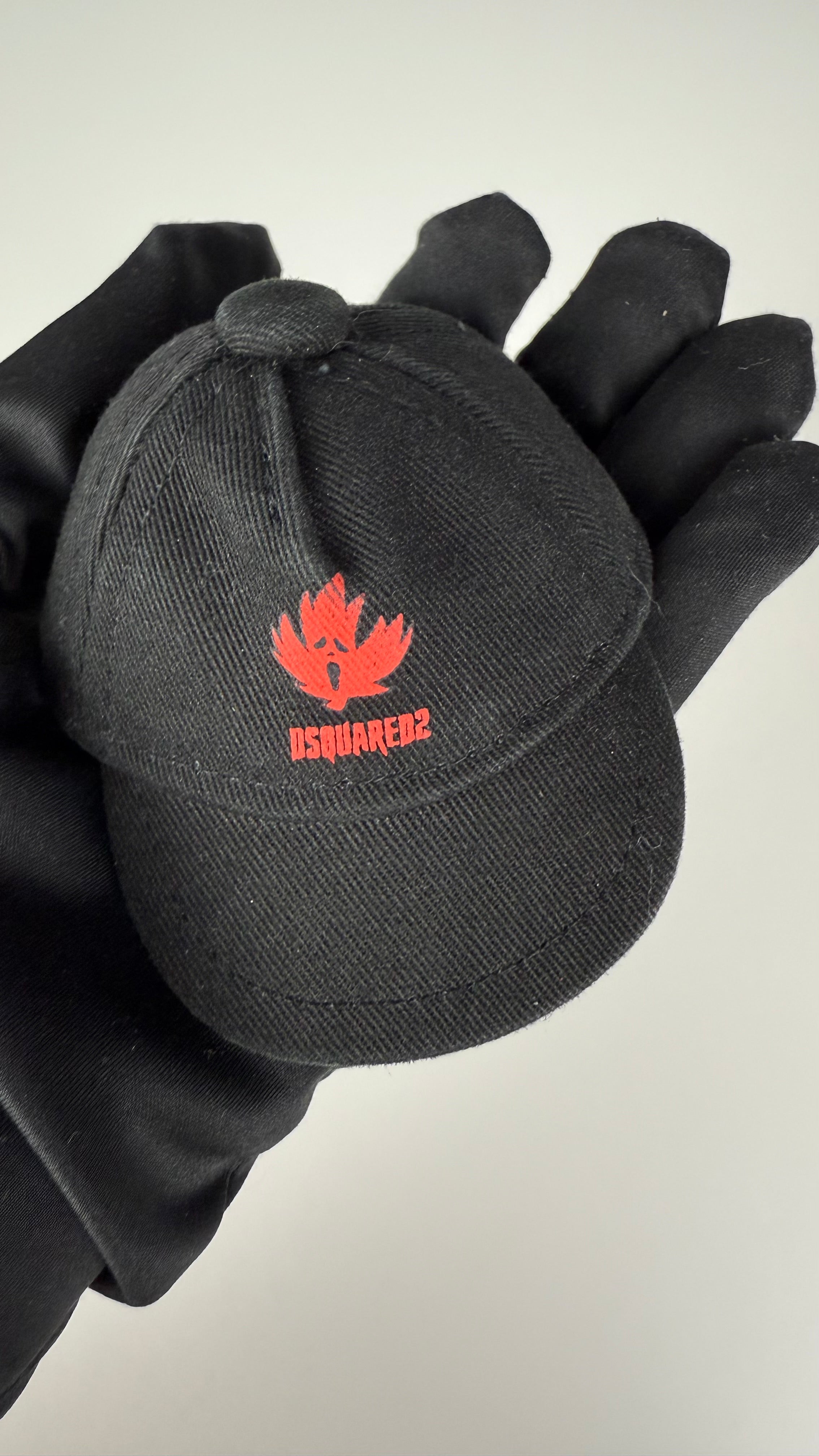 Estilo e personalidade em um acessório único! Este keychain Dsquared2 traz um design divertido e moderno em forma de boné preto em miniatura, confeccionado em tecido, com logo da marca em vermelho bordado na frente.