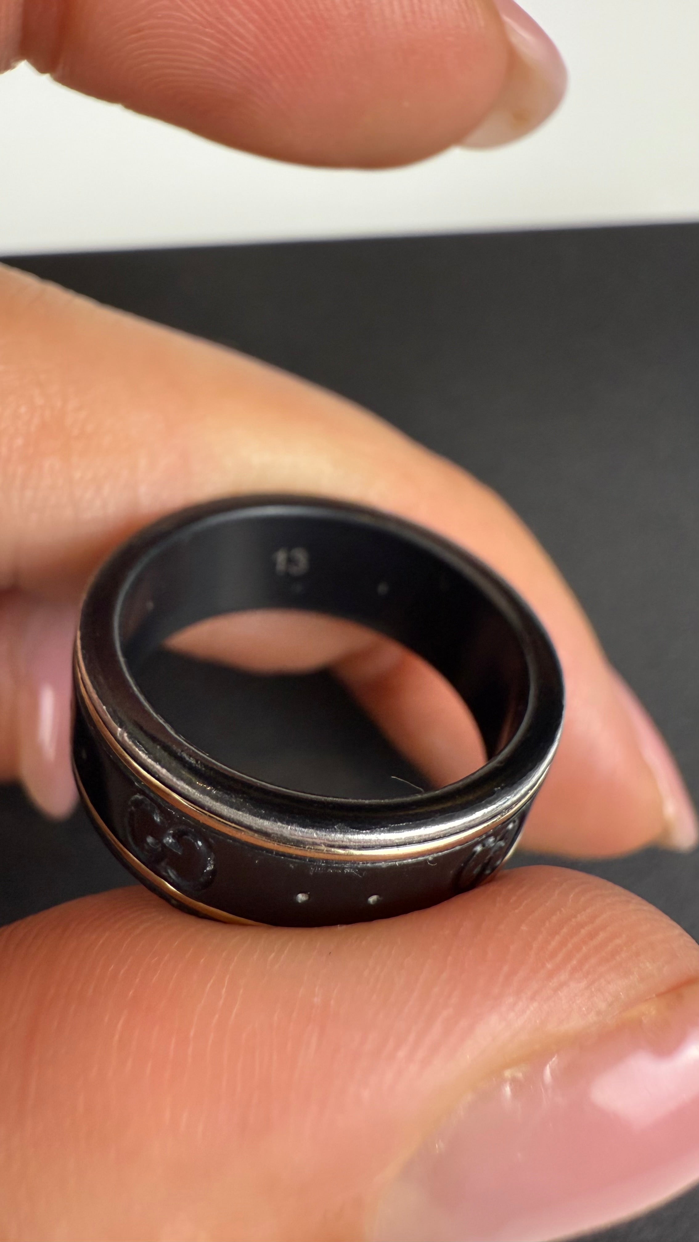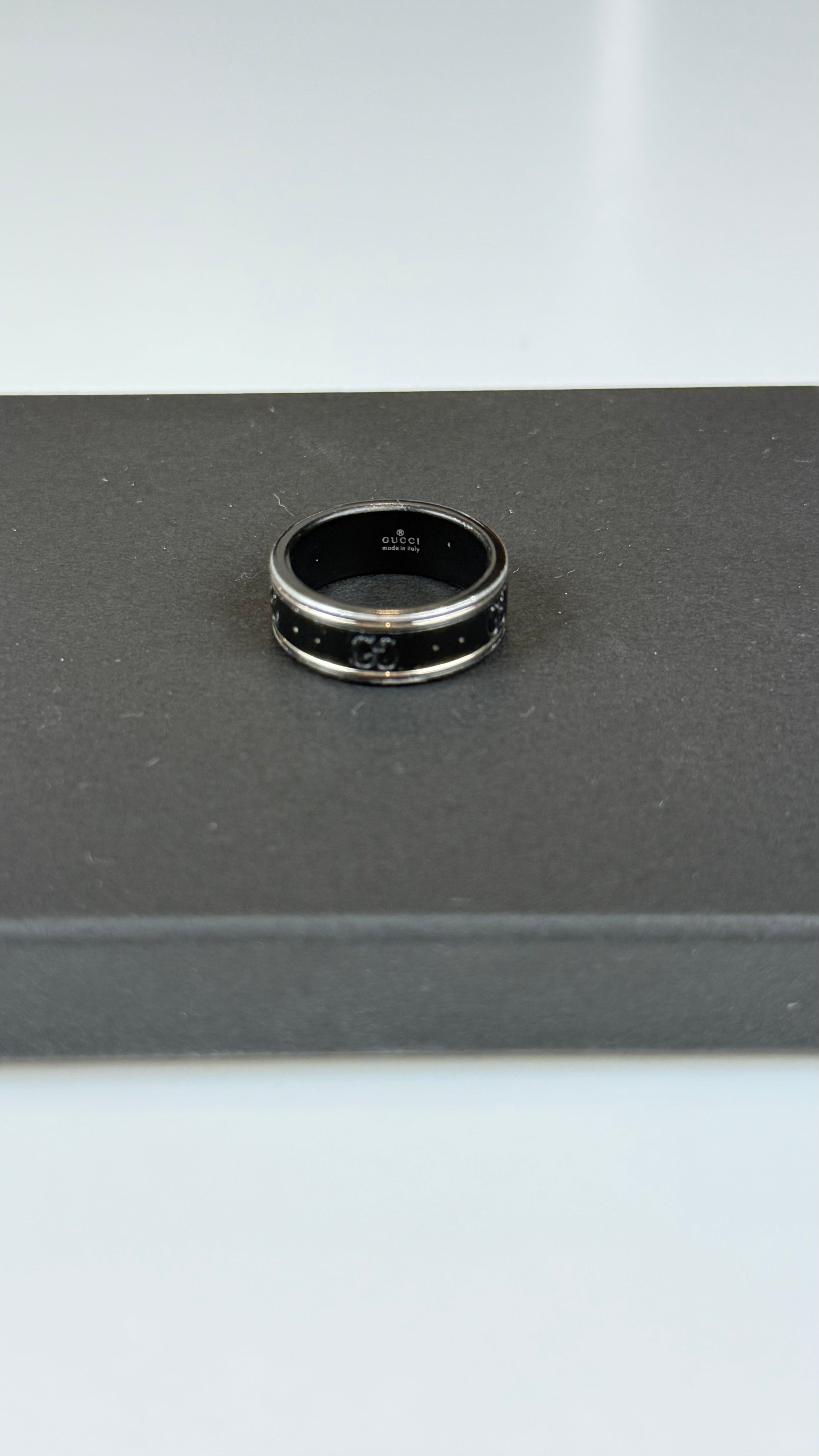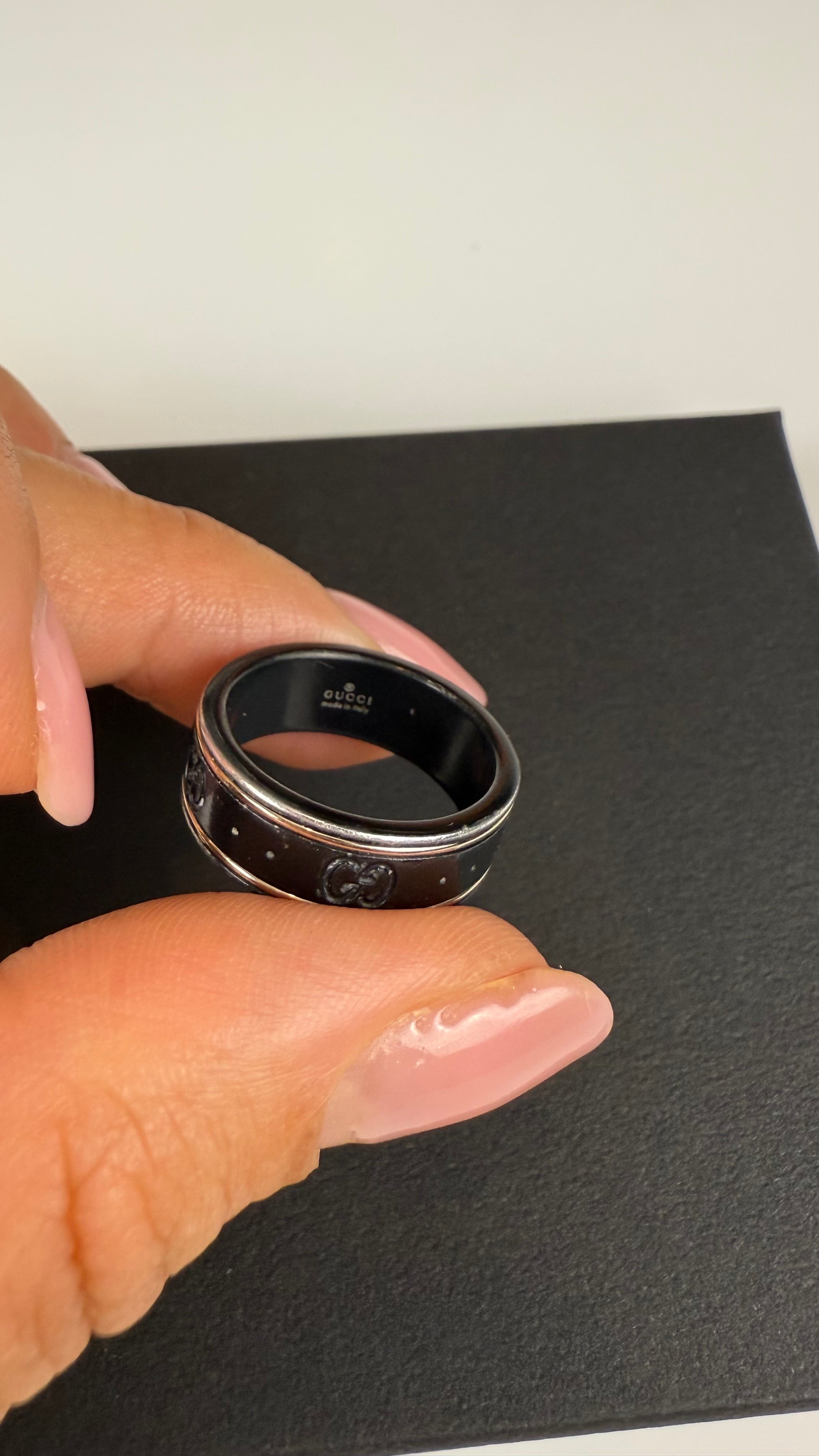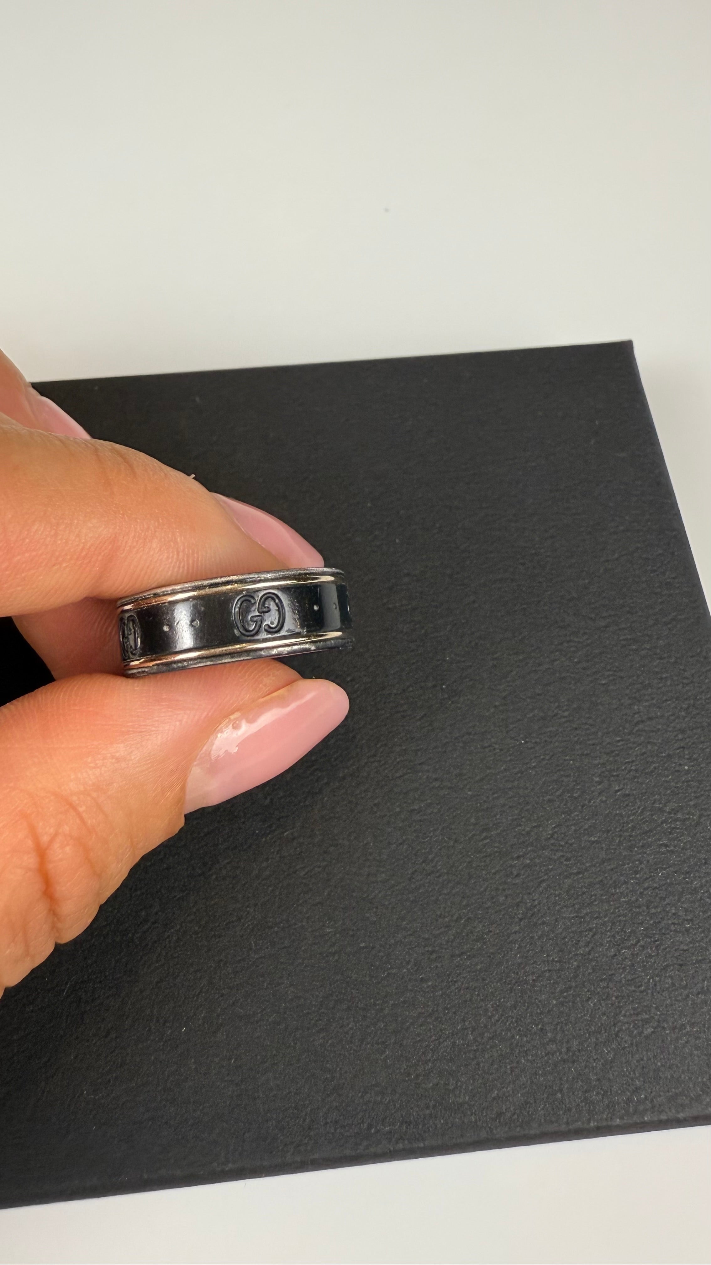 Anel Gucci Preto GG é a escolha ideal para quem busca estilo e autenticidade. Feito em metal de alta qualidade com acabamento esmaltado preto, o design apresenta o icônico monograma GG em relevo ao redor da peça, transmitindo luxo e identidade marcante.