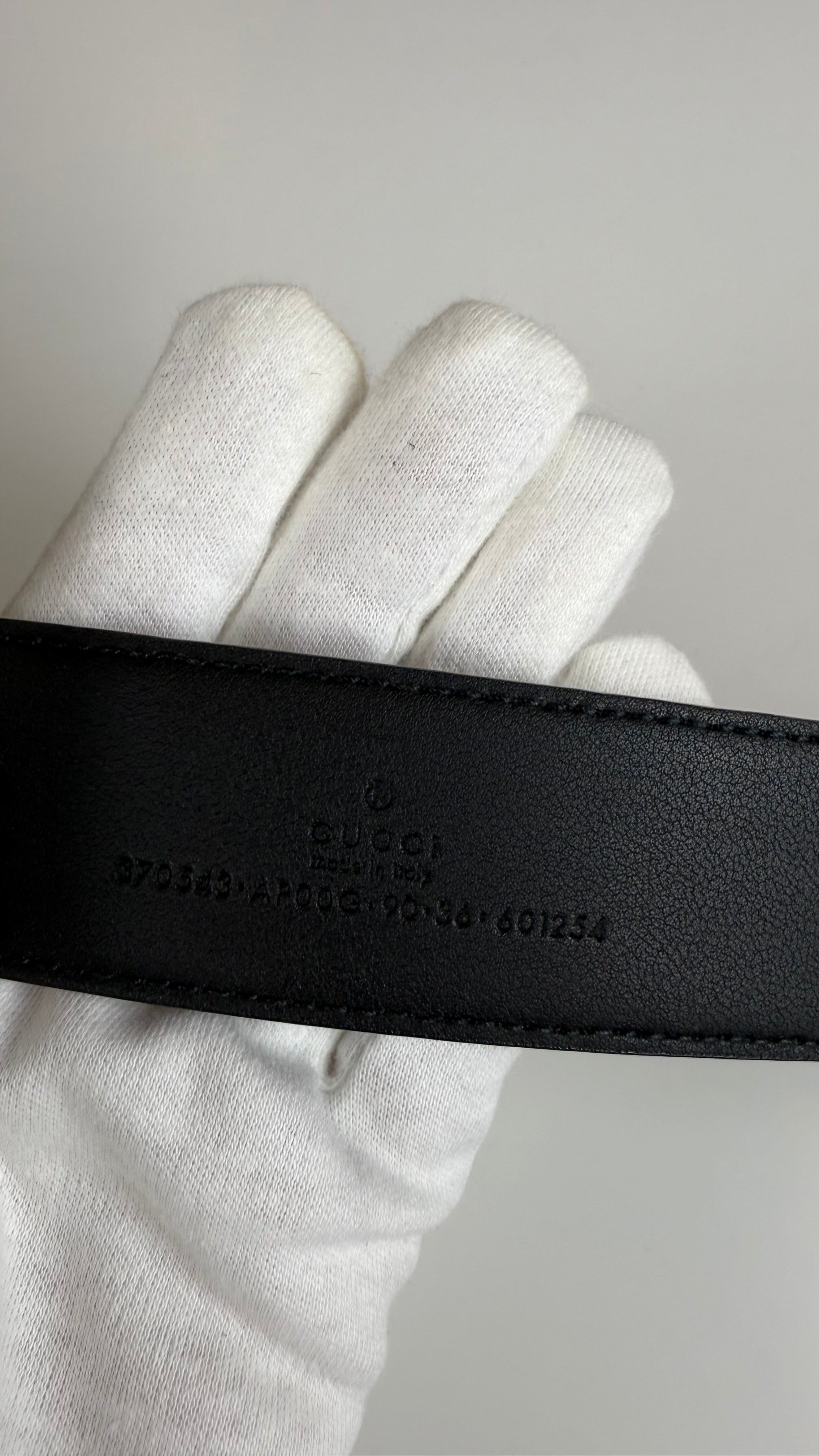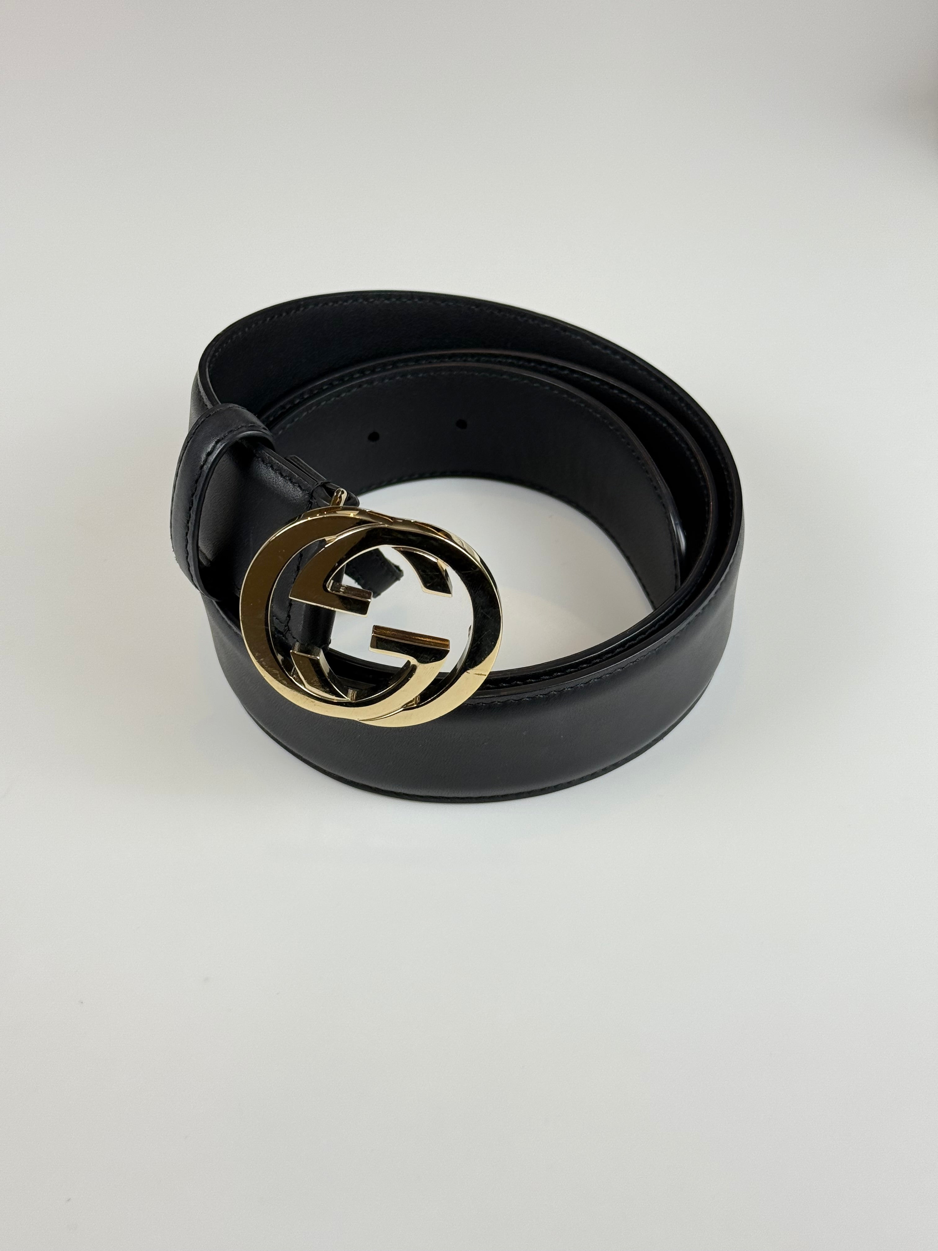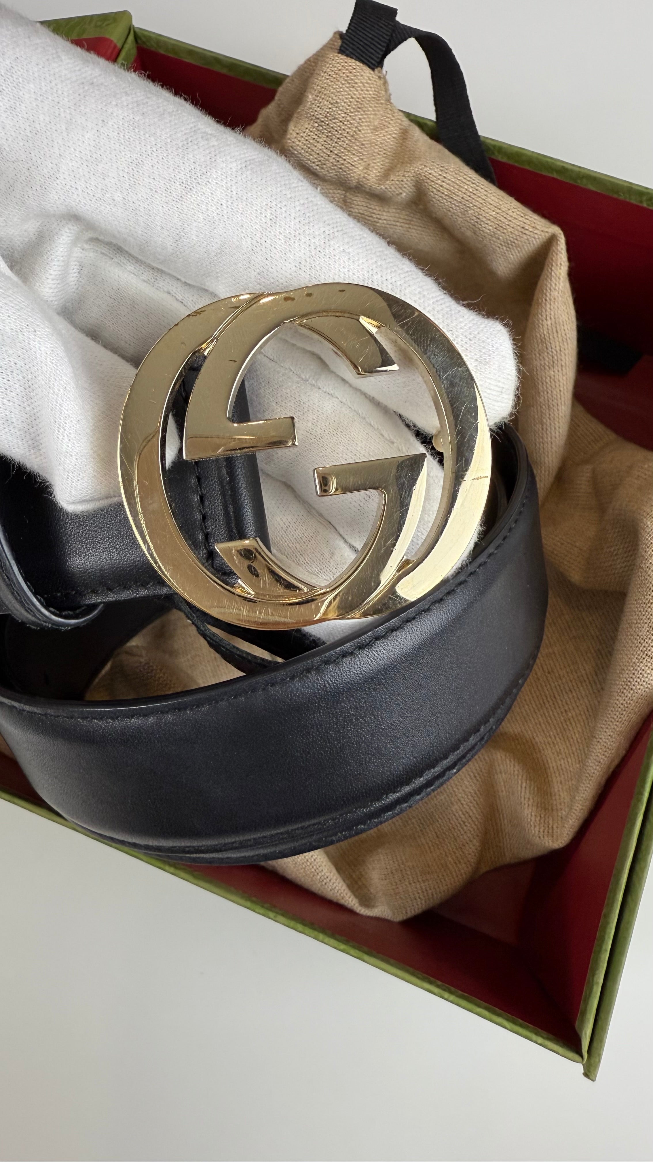 O cinto da imagem é o Gucci Blondie Belt, um acessório sofisticado que combina a tradição da maison italiana com design moderno.