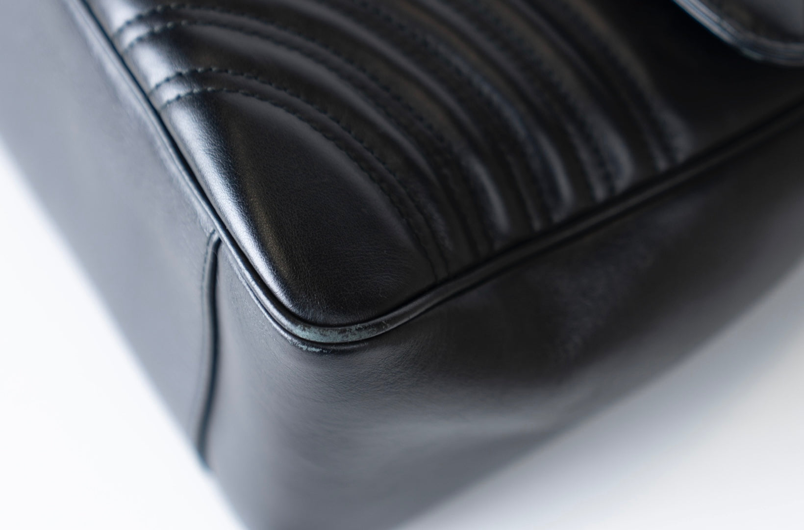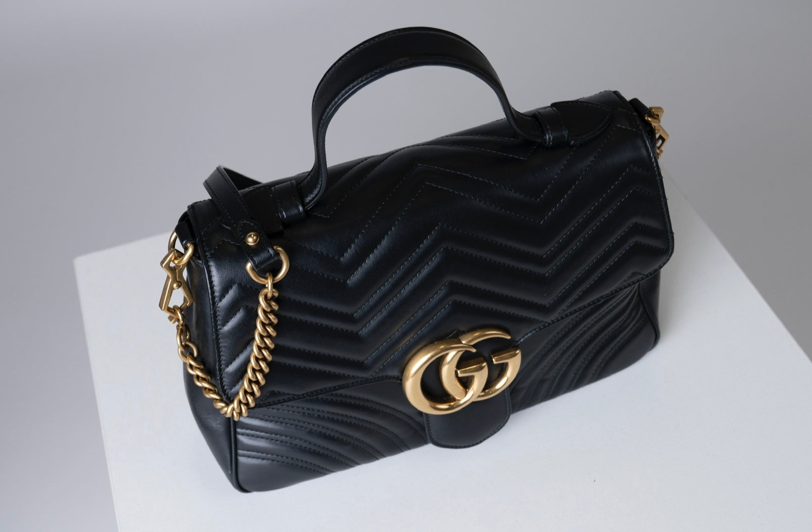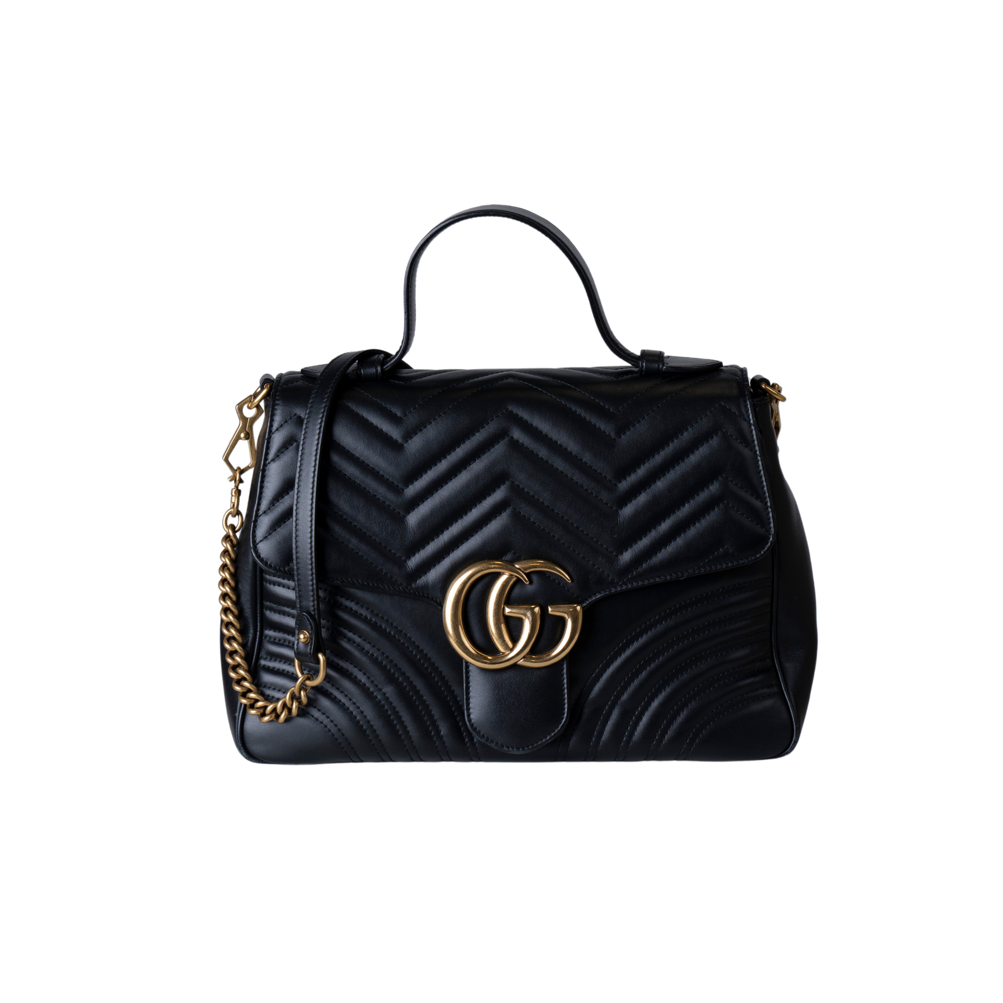 A Gucci GG Marmont Top Handle é uma bolsa sofisticada que combina o estilo clássico da Gucci com detalhes contemporâneos. Parte da coleção Marmont, esta peça destaca-se pelo seu design estruturado e pelo emblemático logótipo Double G.