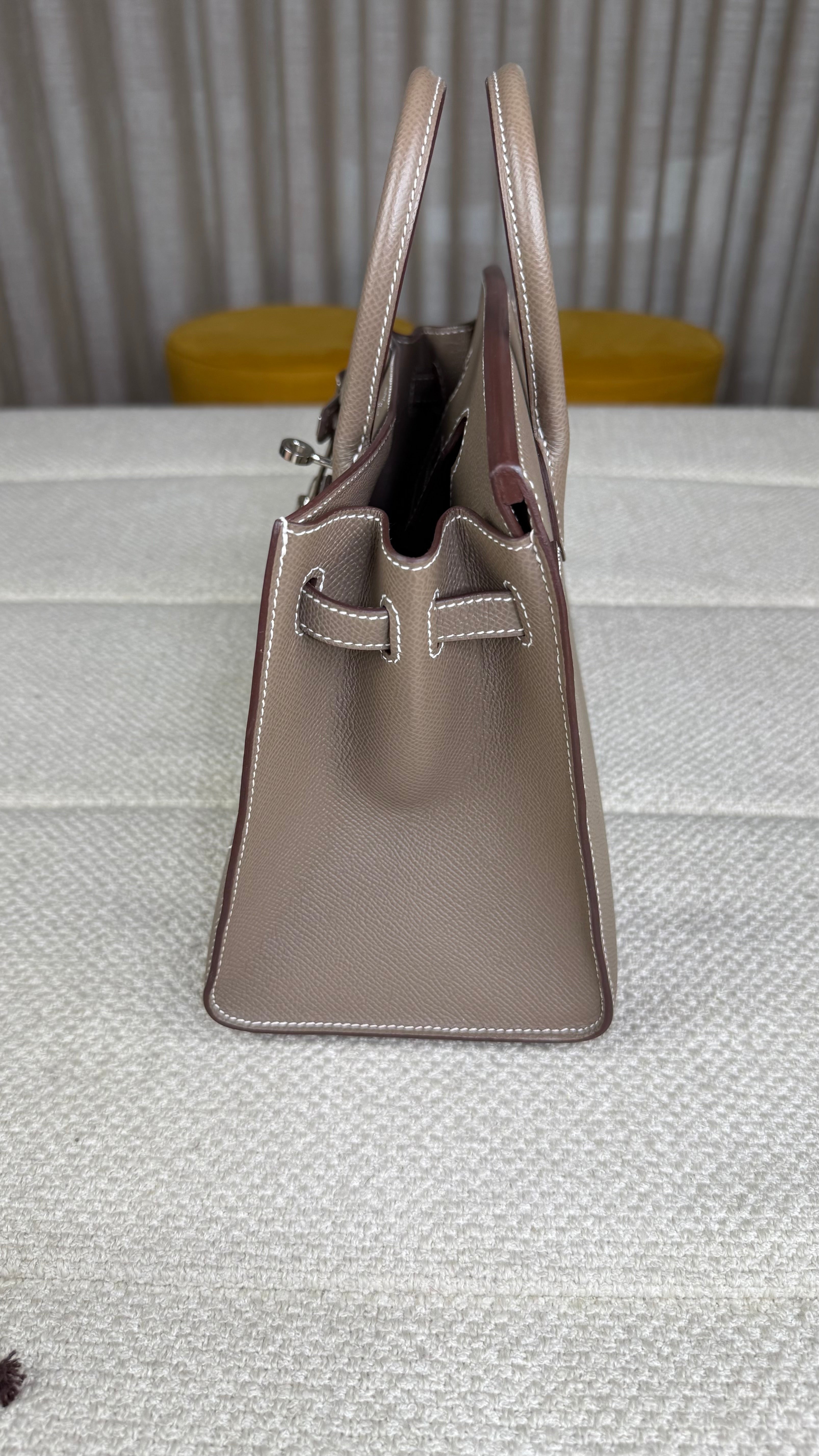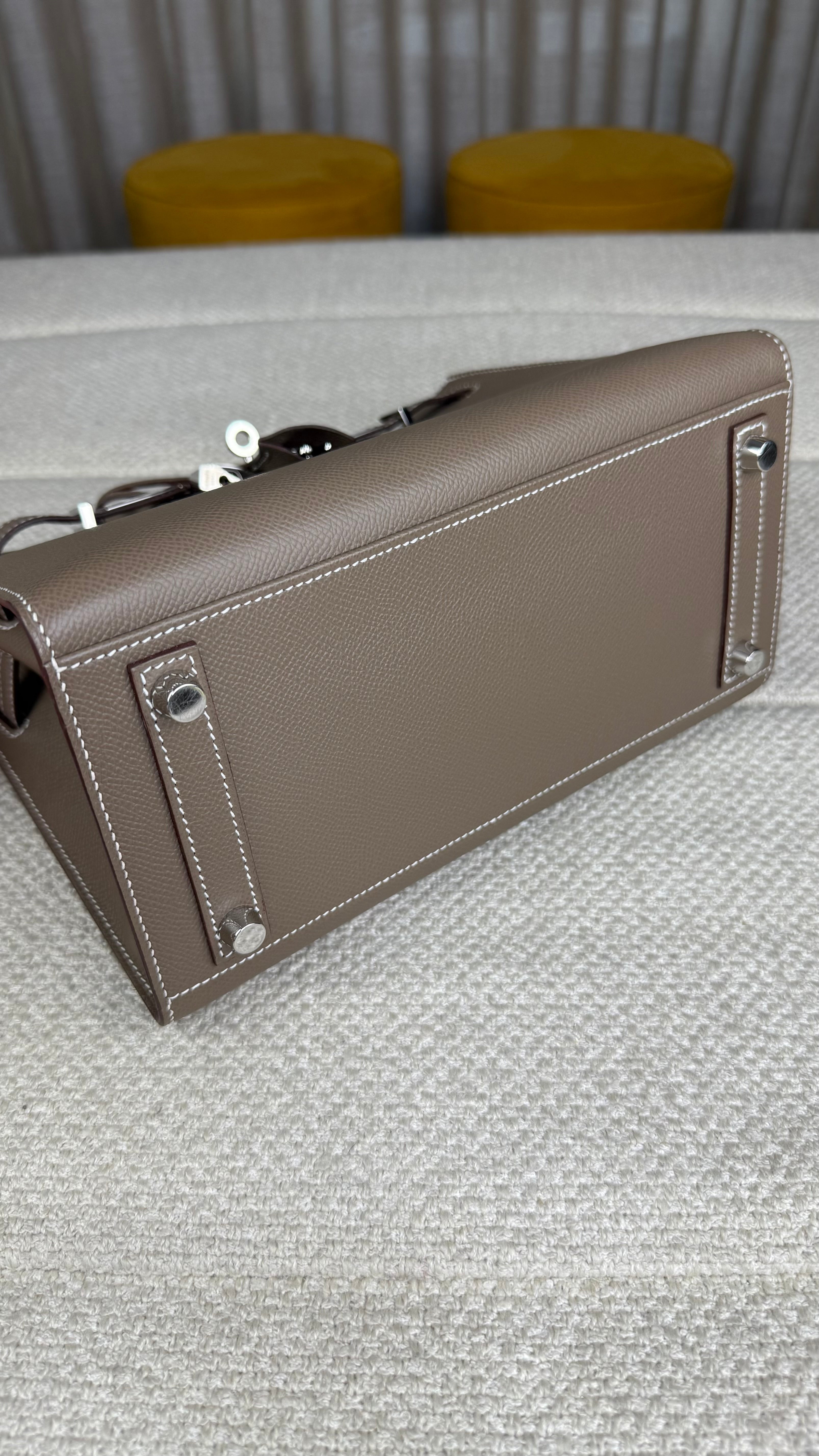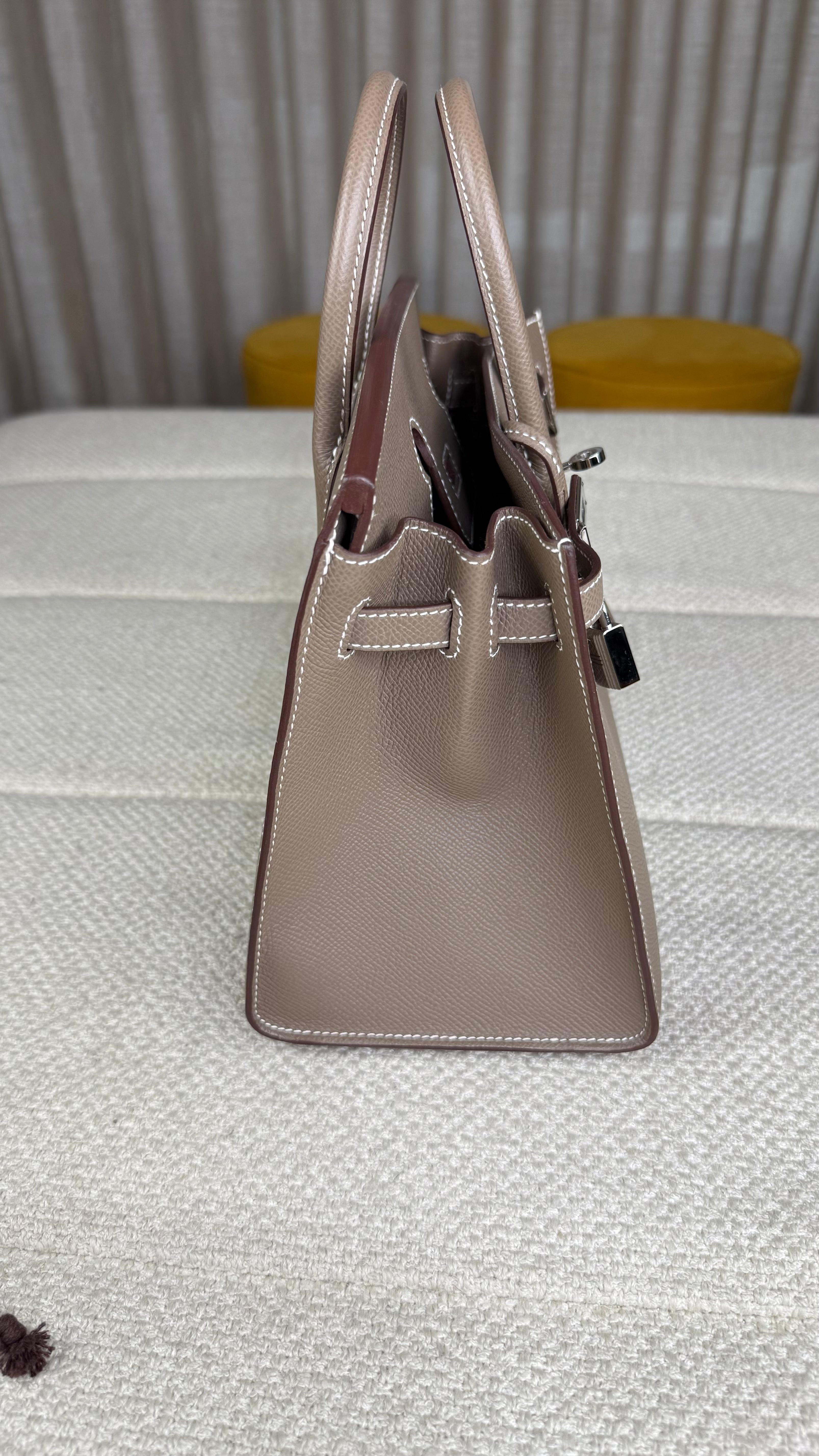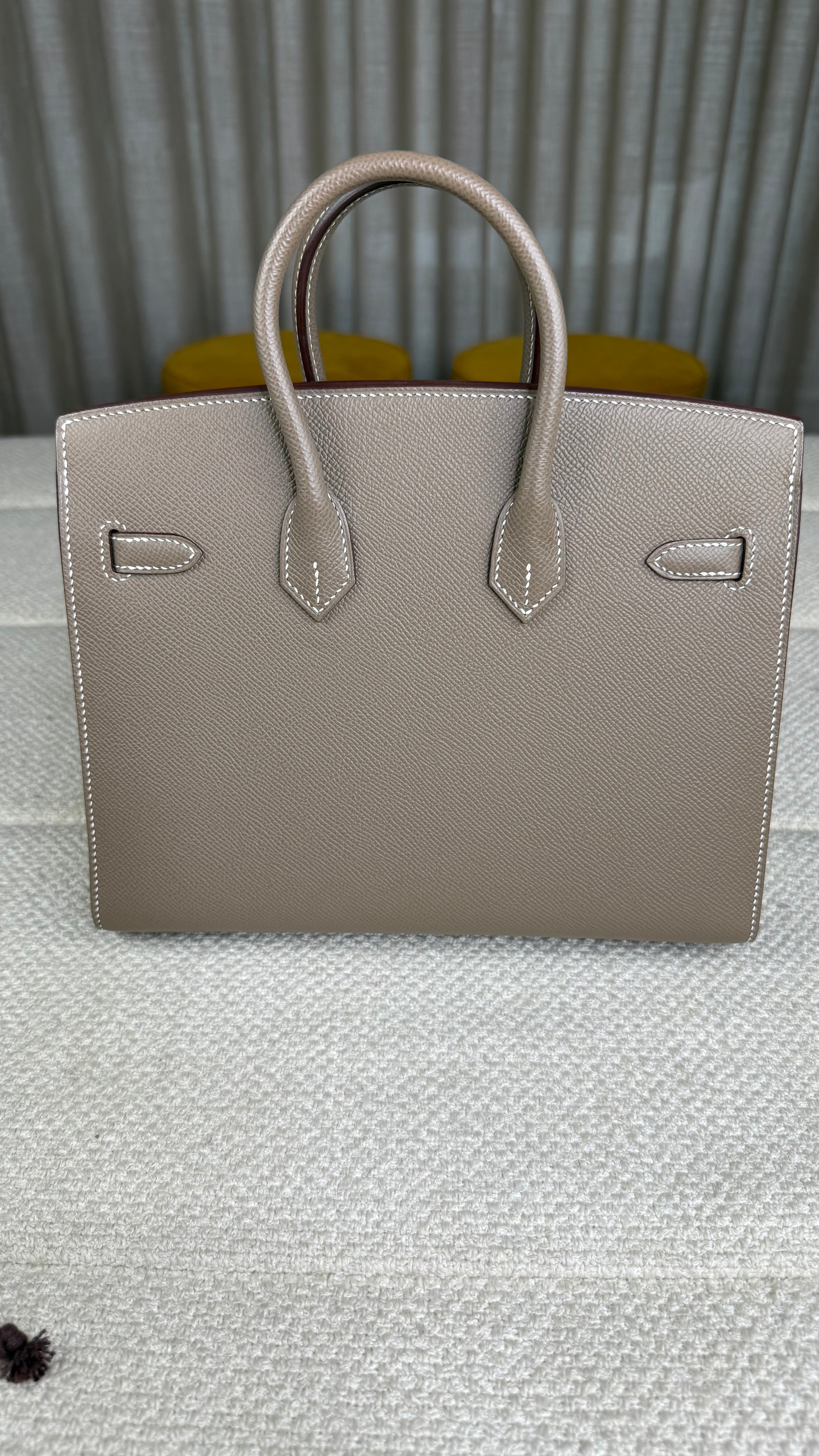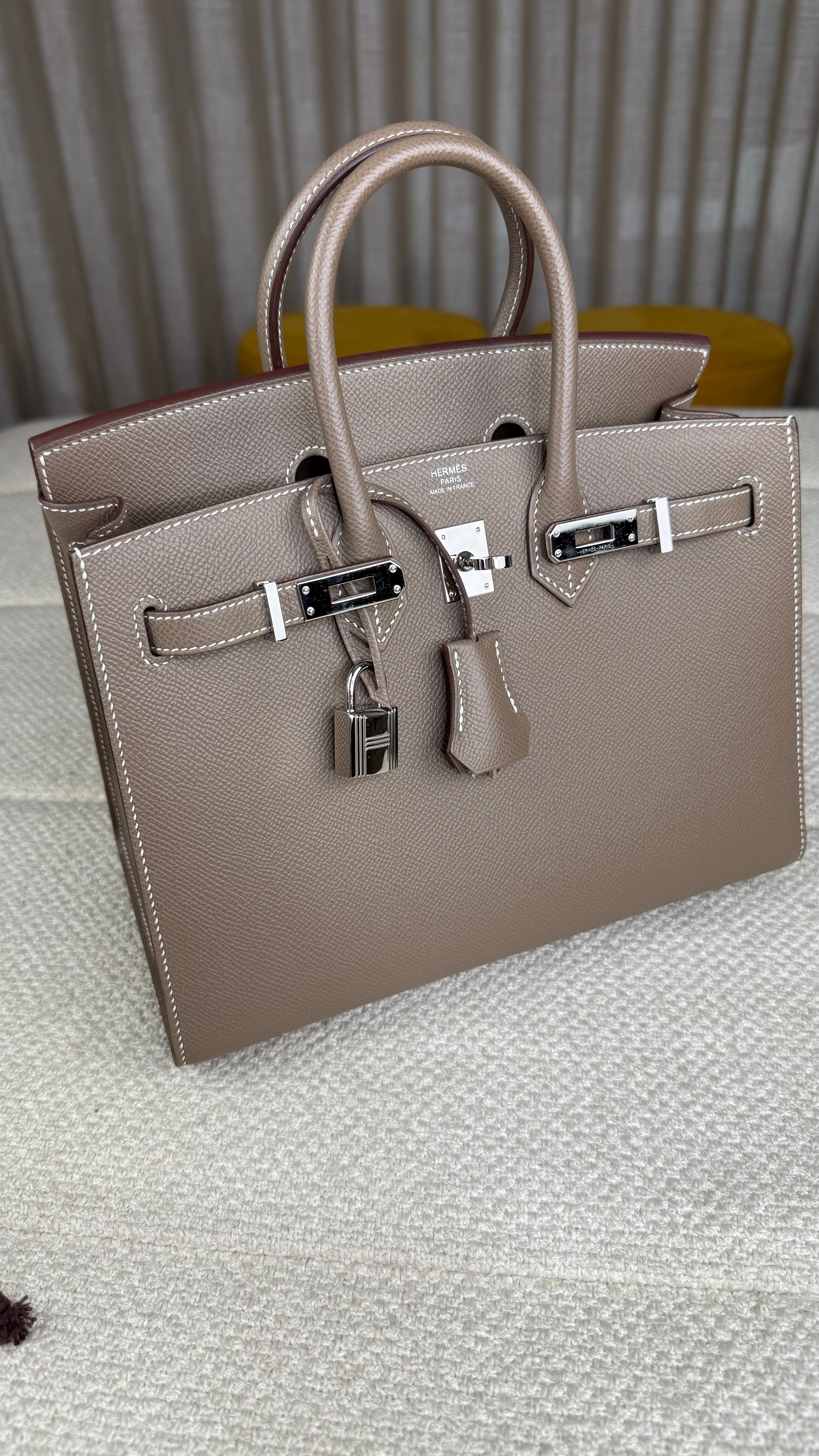 Com seu formato compacto e linhas estruturadas, essa versão da icônica Birkin combina elegância atemporal com uma sofisticação moderna. Confeccionada em couro Epsom, conhecido por sua durabilidade e textura refinada, a bolsa exibe um acabamento impecável que realça cada detalhe de sua construção meticulosa. A Birkin 25 Sellier é uma expressão de estilo e exclusividade, ideal para quem busca um acessório discreto, mas inegavelmente poderoso.