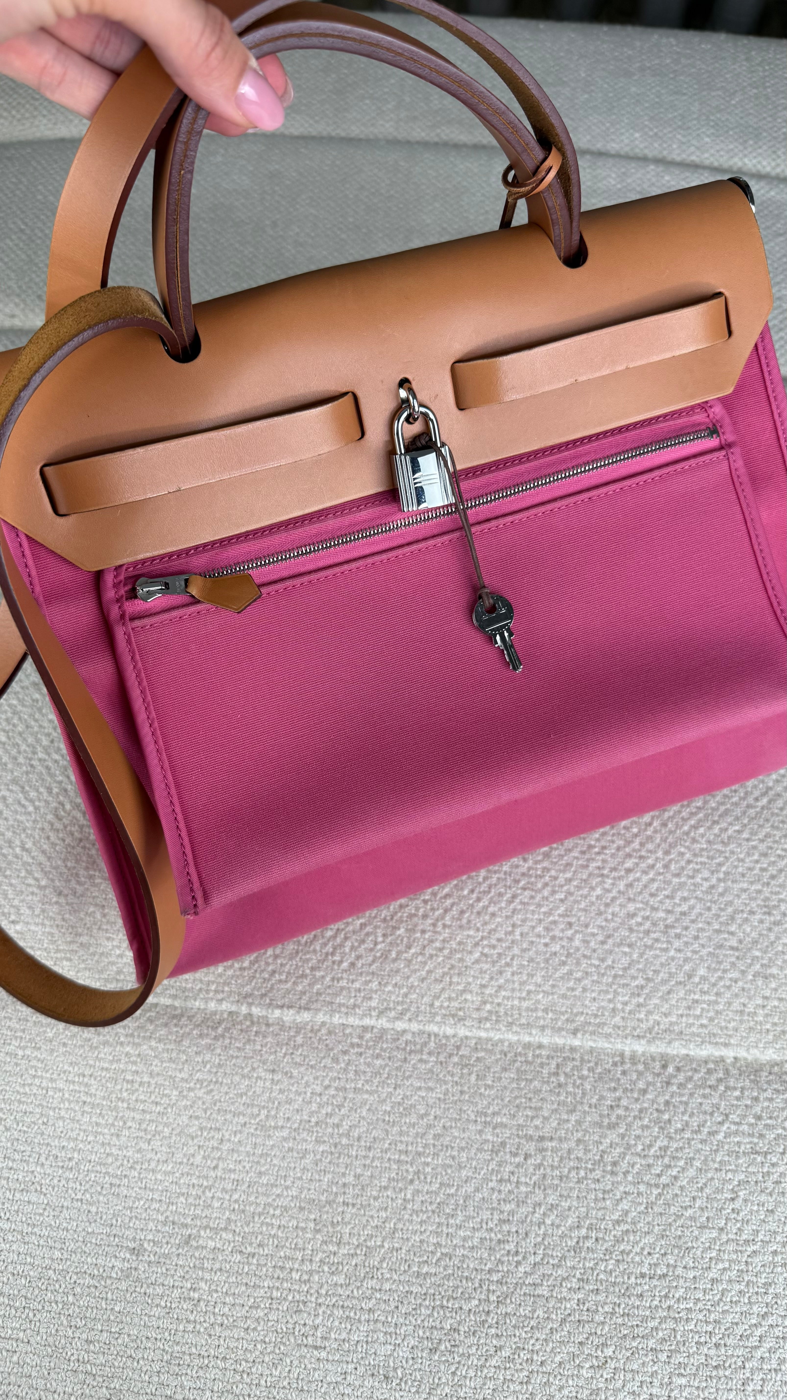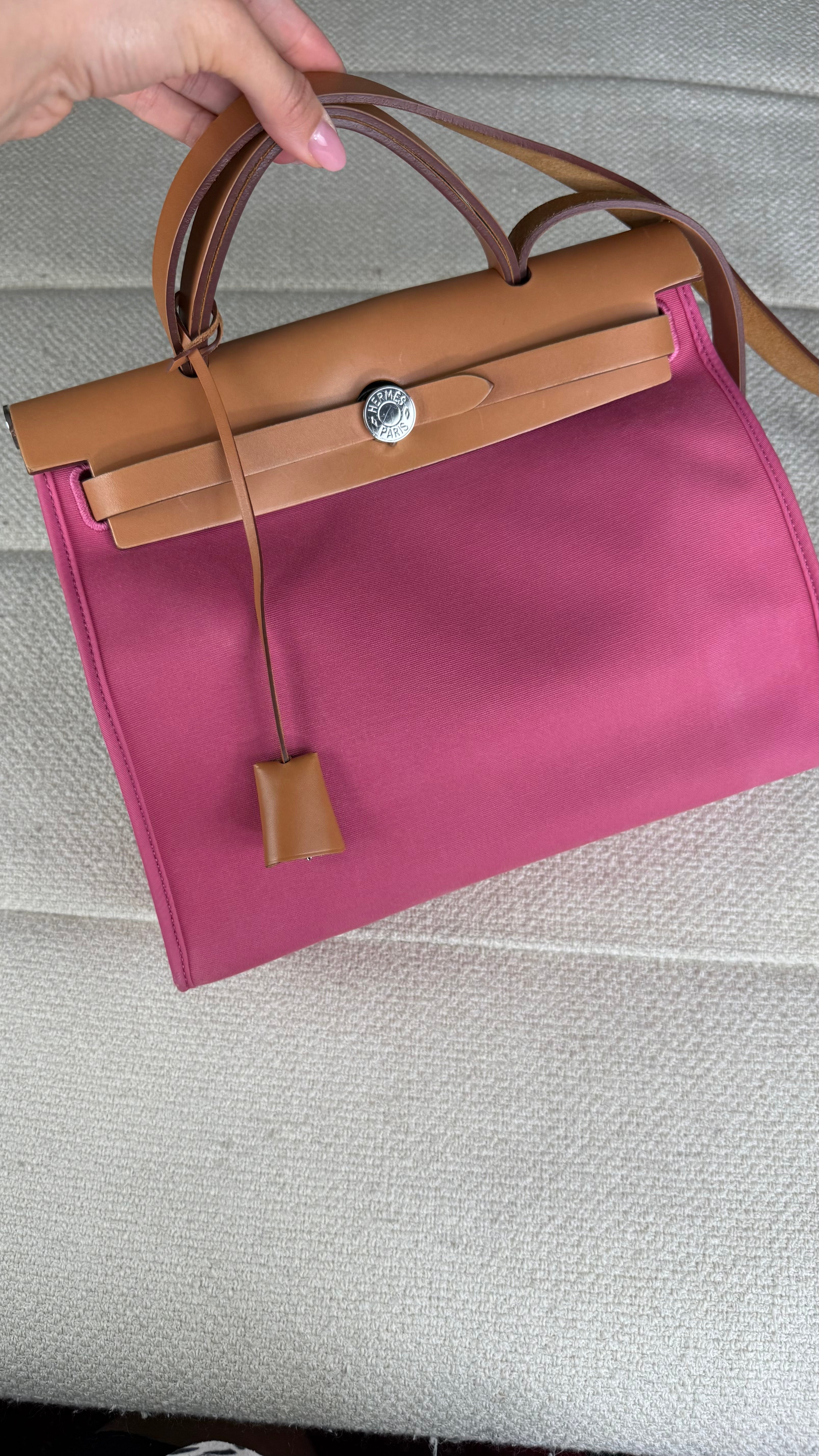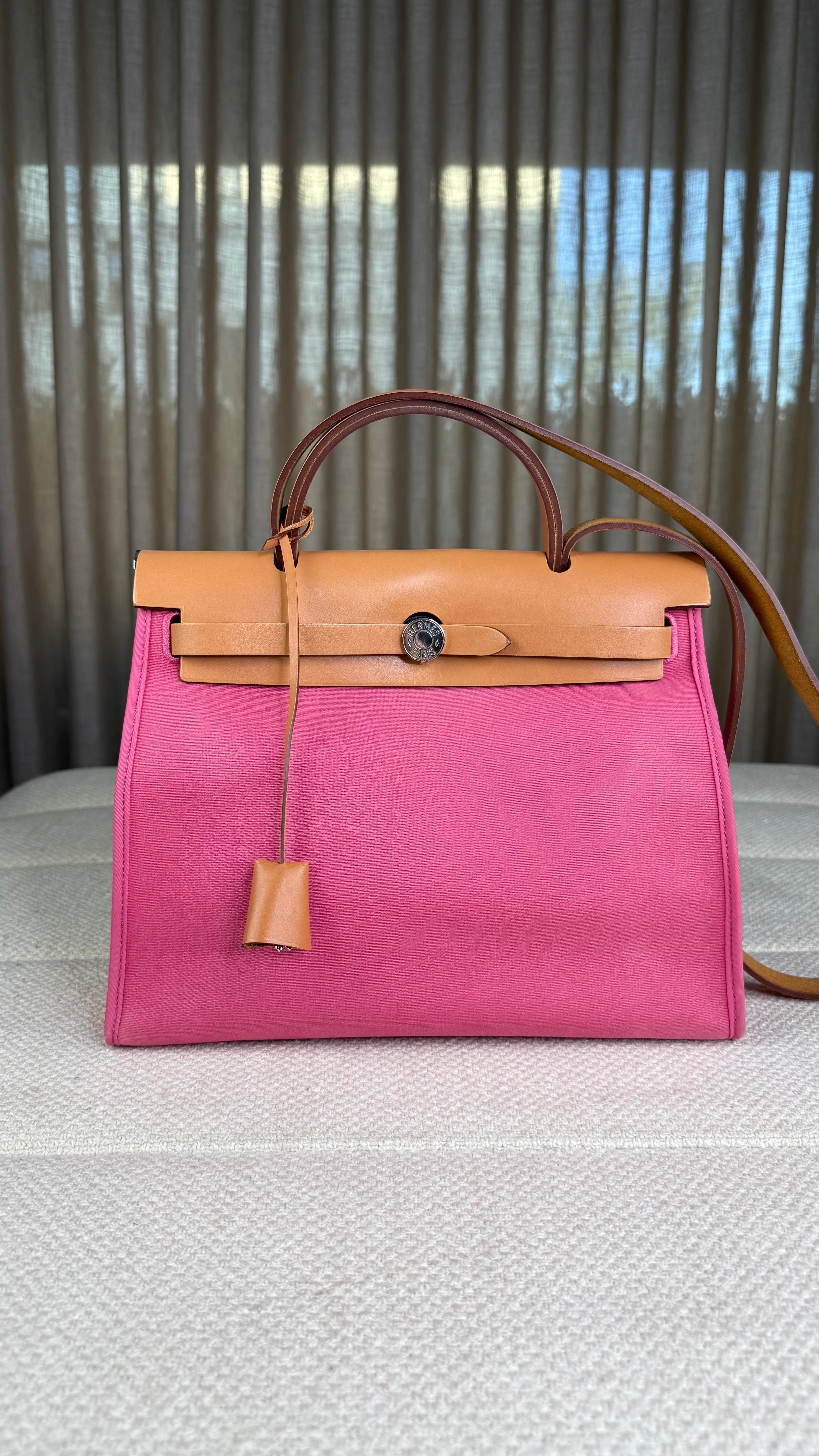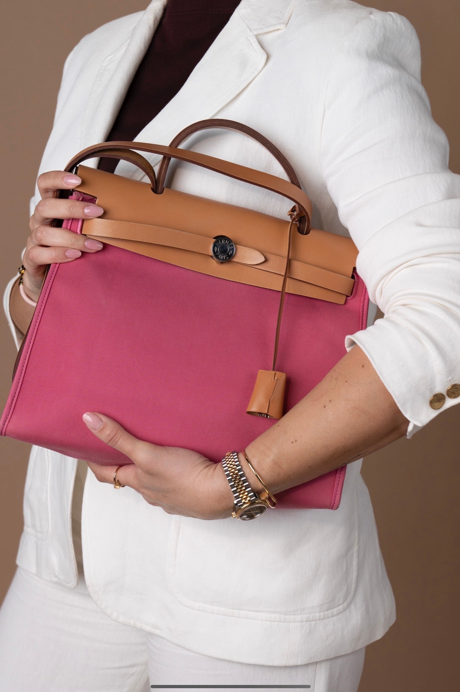 A Hermès Herbag 31 em rosa é a perfeita combinação entre elegância casual e a tradição artesanal da Maison Hermès. Com seu design atemporal e linhas limpas, a Herbag é confeccionada em lona resistente de alta qualidade, com detalhes em couro natural, trazendo um contraste sofisticado e moderno. O tom rosa acrescenta um toque feminino e delicado à peça, tornando-a ideal para quem busca praticidade sem abrir mão do luxo. Leve e funcional, a Herbag 31 é perfeita para o dia a dia e para ocasiões especiais.