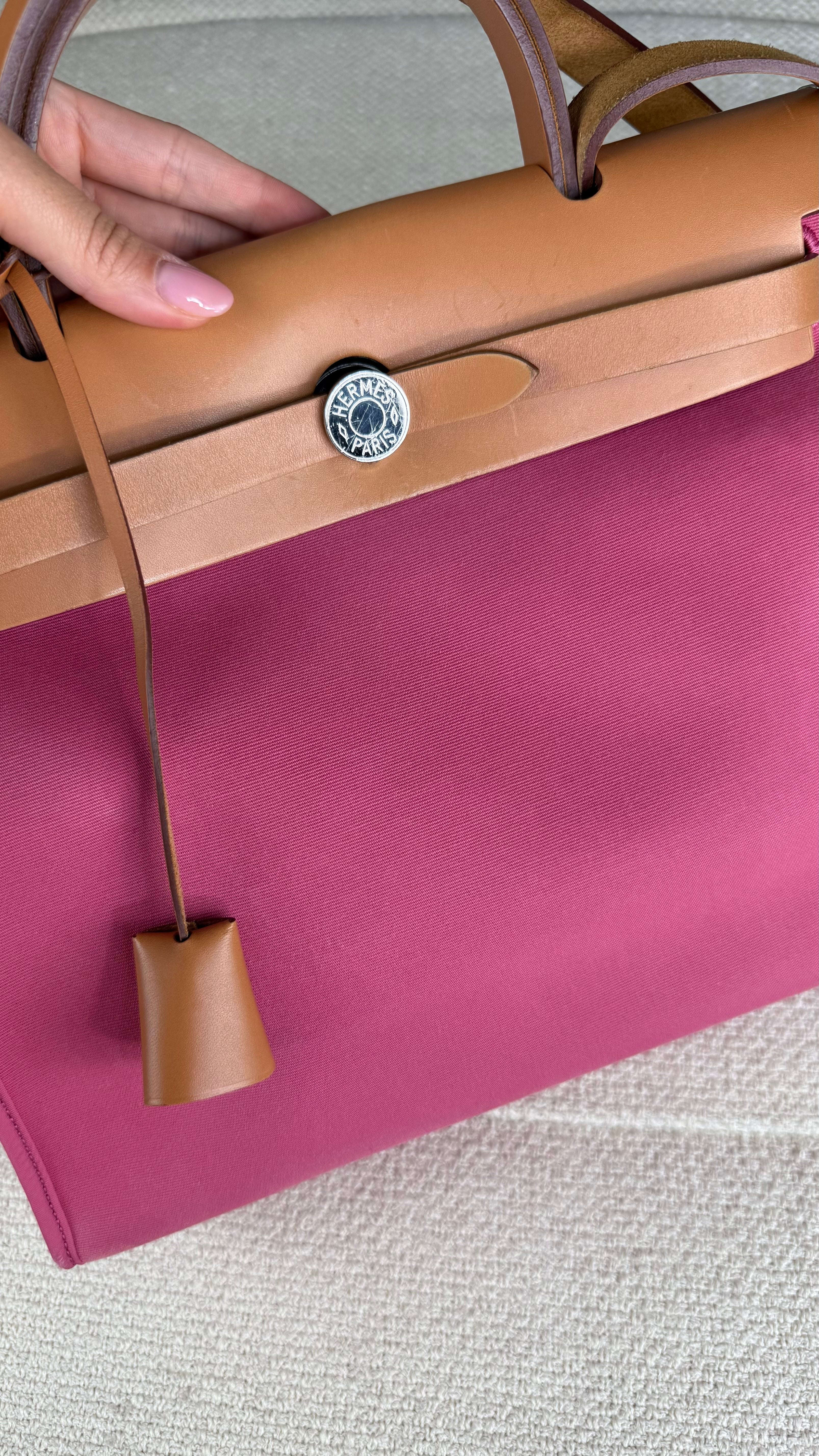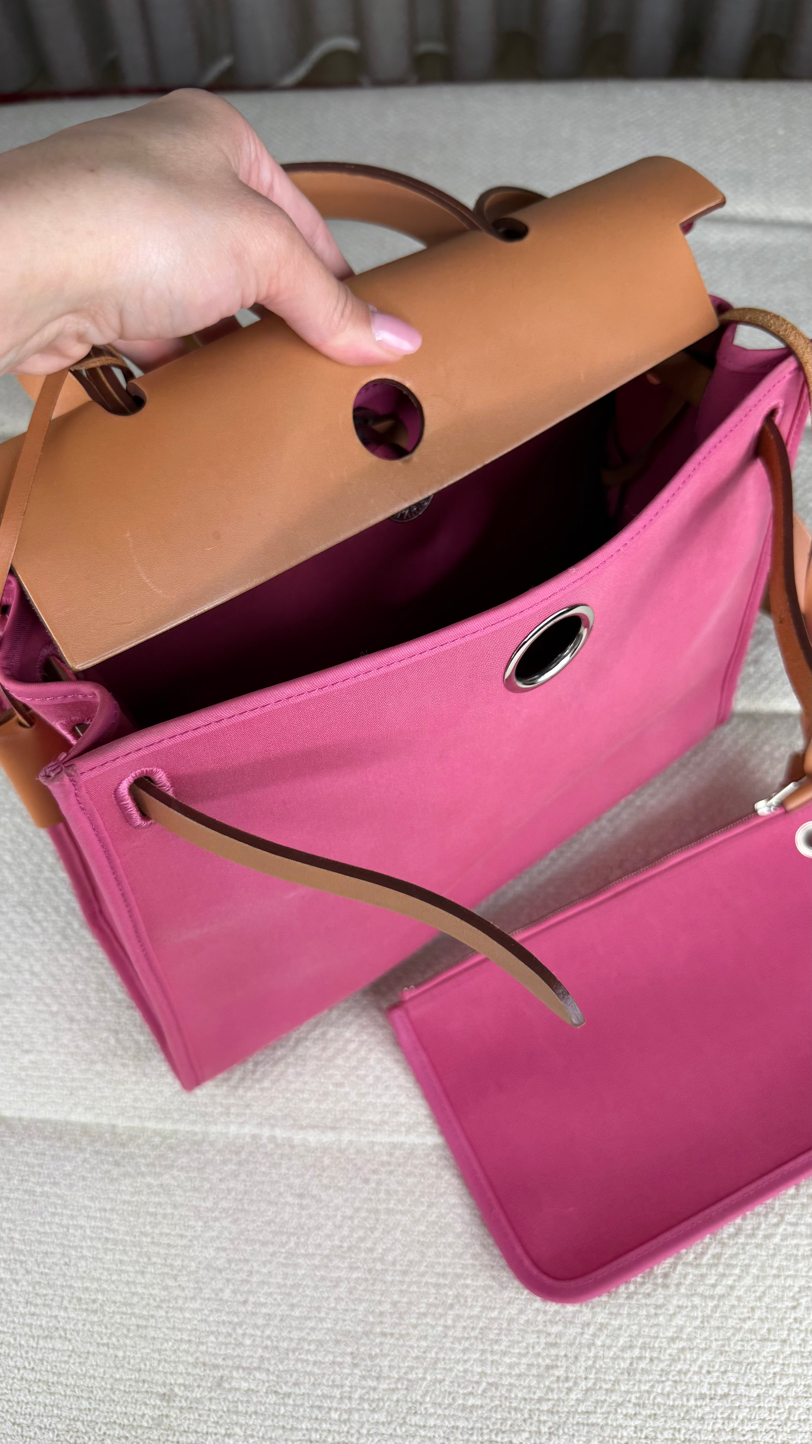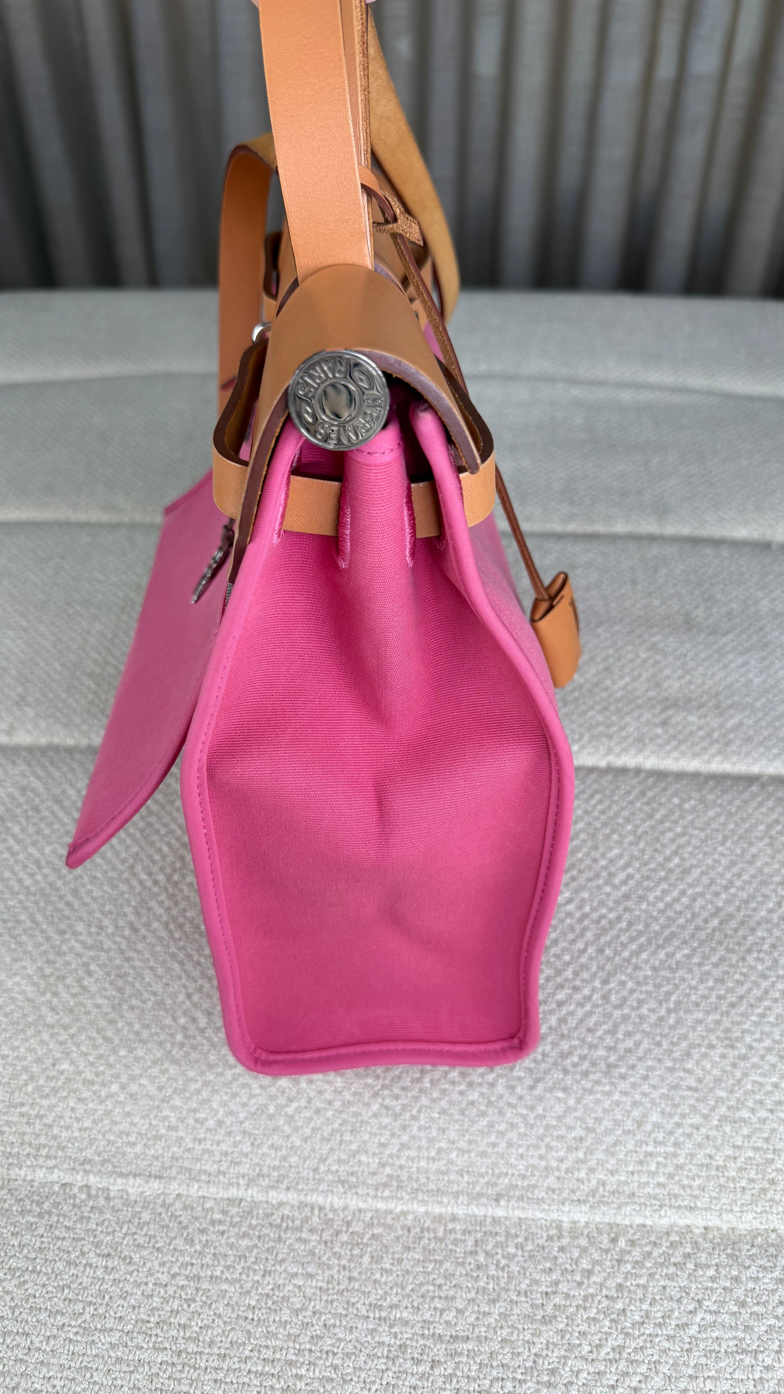 A Hermès Herbag 31 em rosa é a perfeita combinação entre elegância casual e a tradição artesanal da Maison Hermès. Com seu design atemporal e linhas limpas, a Herbag é confeccionada em lona resistente de alta qualidade, com detalhes em couro natural, trazendo um contraste sofisticado e moderno. O tom rosa acrescenta um toque feminino e delicado à peça, tornando-a ideal para quem busca praticidade sem abrir mão do luxo. Leve e funcional, a Herbag 31 é perfeita para o dia a dia e para ocasiões especiais.