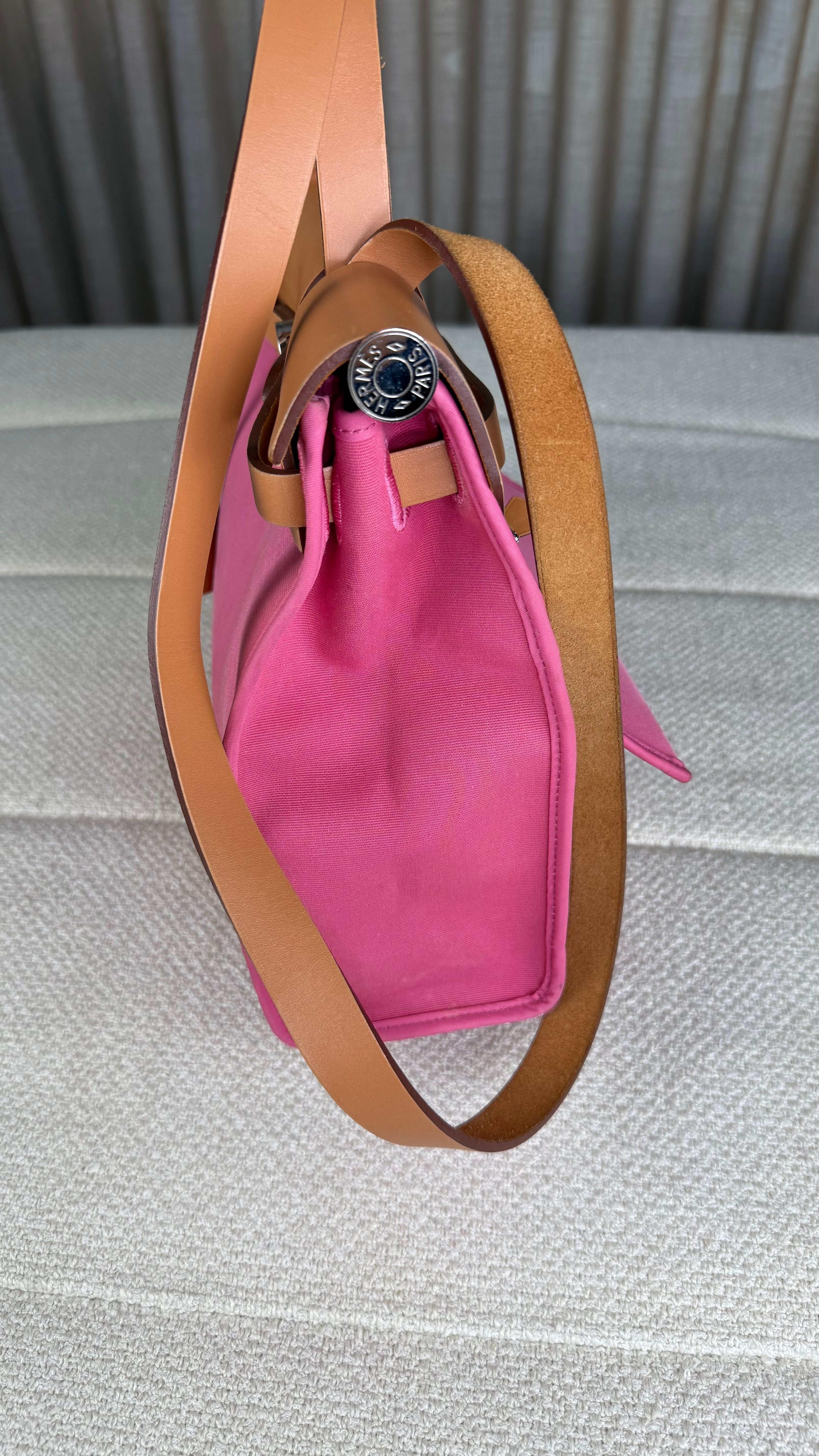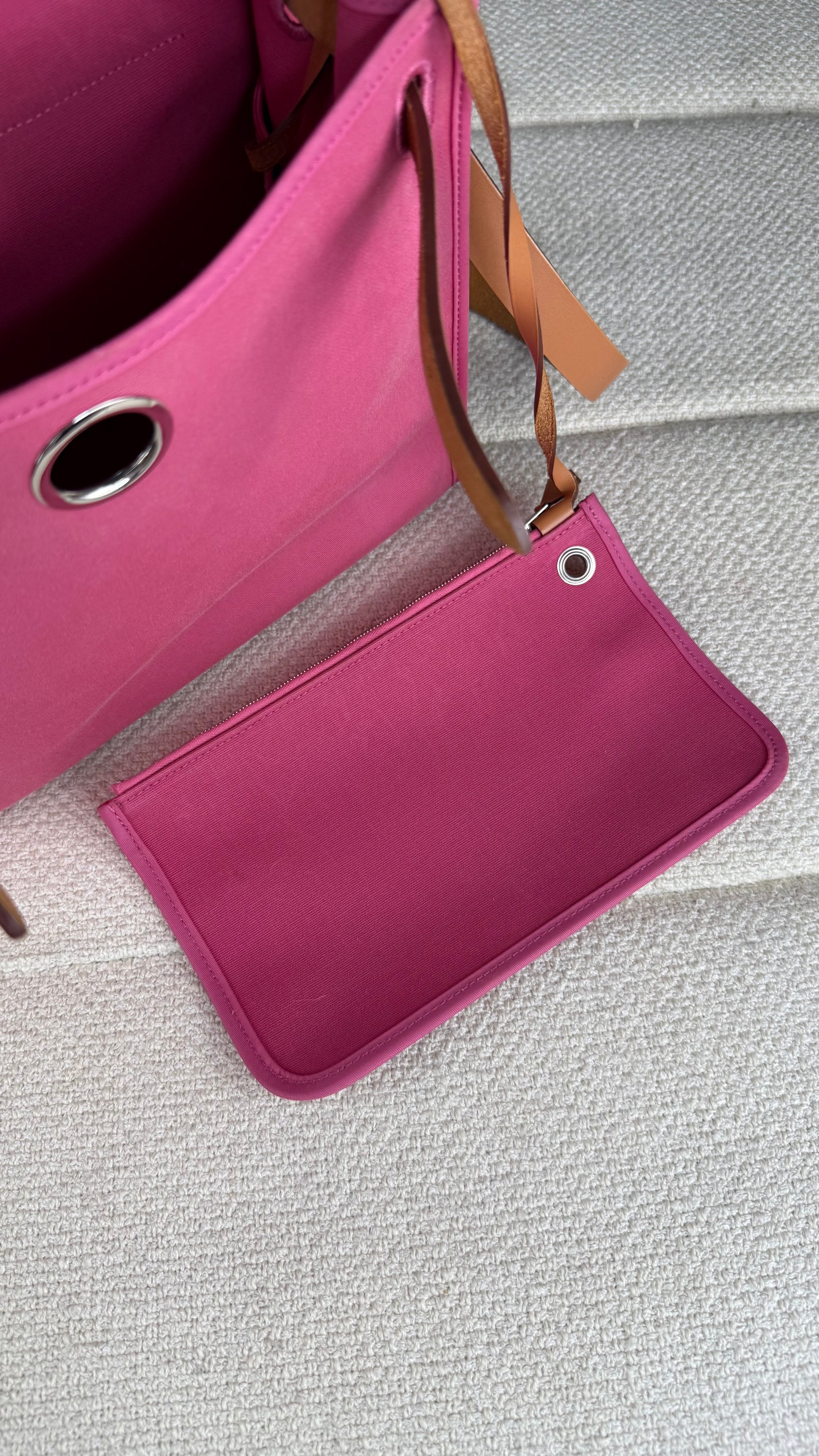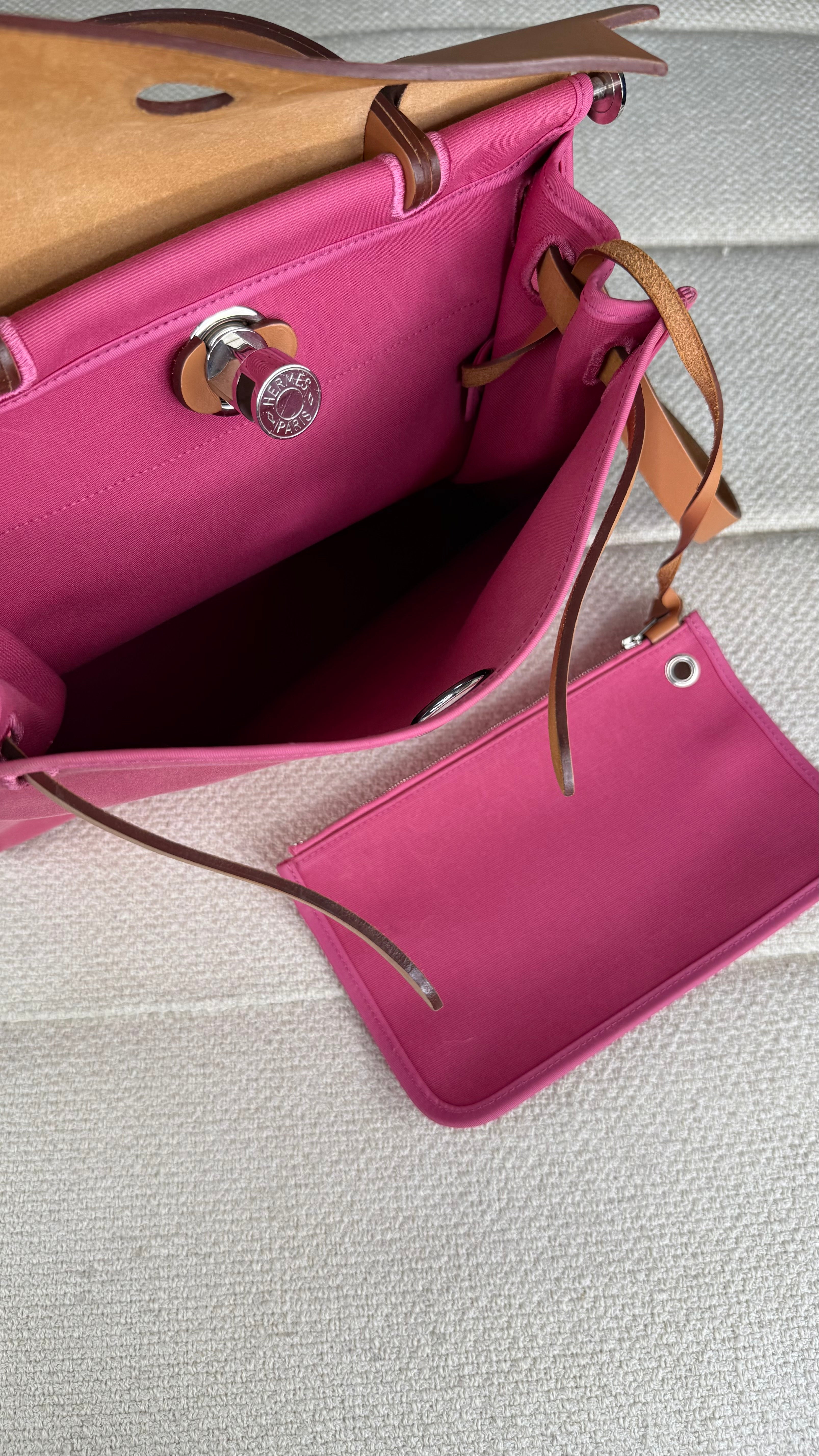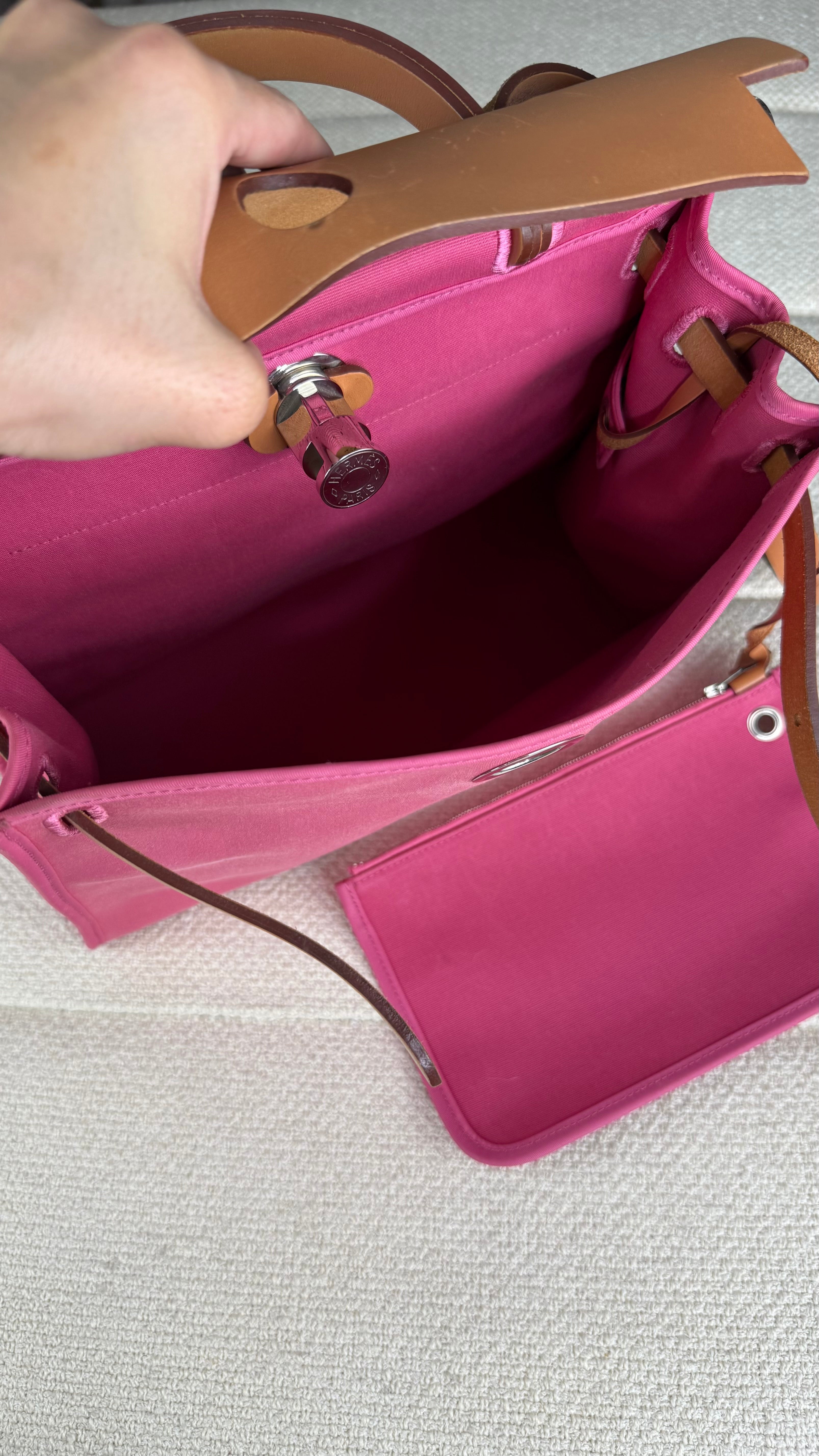 A Hermès Herbag 31 em rosa é a perfeita combinação entre elegância casual e a tradição artesanal da Maison Hermès. Com seu design atemporal e linhas limpas, a Herbag é confeccionada em lona resistente de alta qualidade, com detalhes em couro natural, trazendo um contraste sofisticado e moderno. O tom rosa acrescenta um toque feminino e delicado à peça, tornando-a ideal para quem busca praticidade sem abrir mão do luxo. Leve e funcional, a Herbag 31 é perfeita para o dia a dia e para ocasiões especiais.