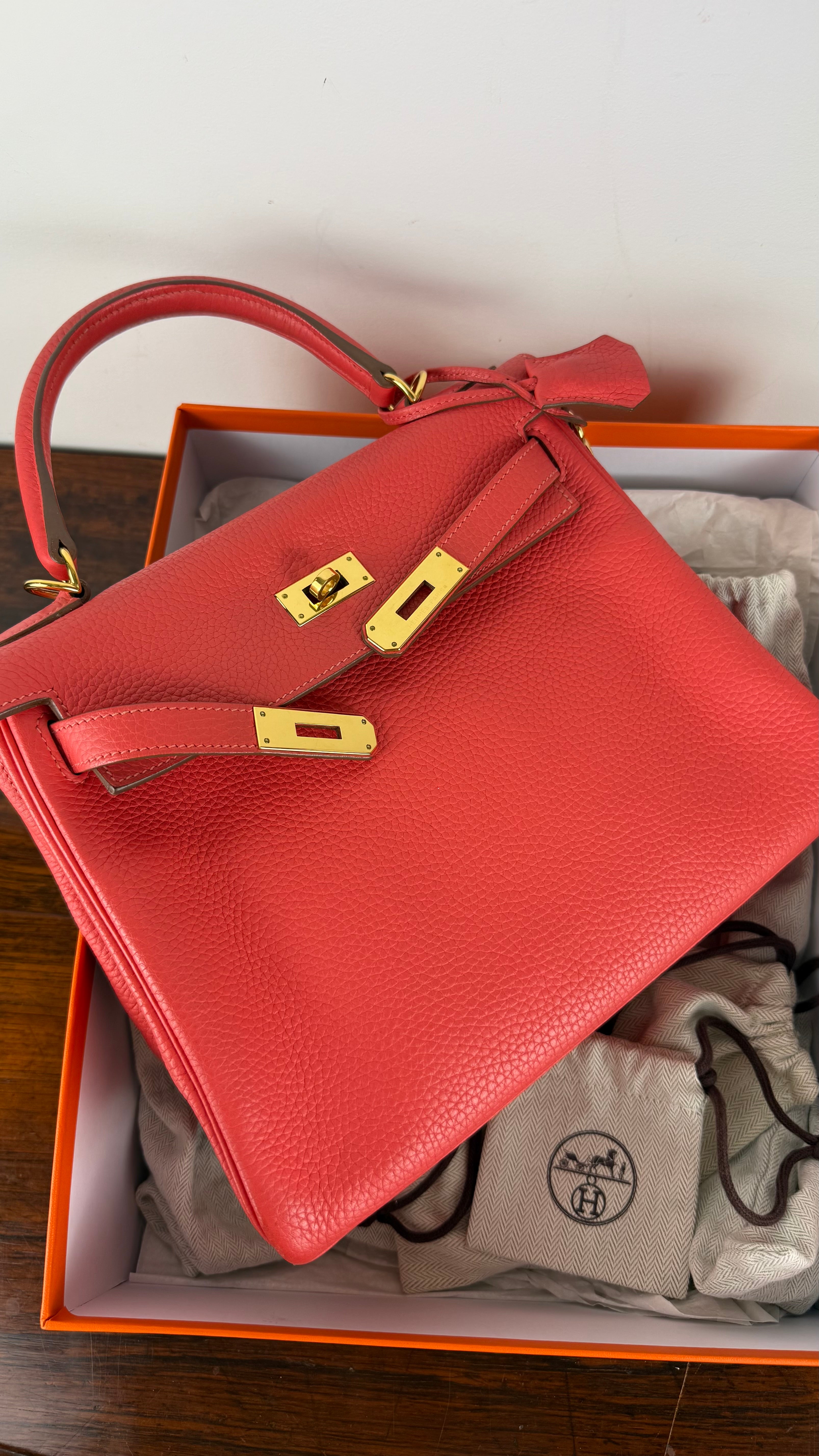 A Kelly foi originalmente lançada em 1935 como Sac à Dépêches e renomeado em 1977 após Grace Kelly utilizá-lo para proteger sua gravidez, imortalizando-o na cultura pop. Disponível em vários tamanhos, o 28 cm equilibra elegância e praticidade, sendo oferecido nos estilos Sellier (costura externa) e Retourne (costura interna).
