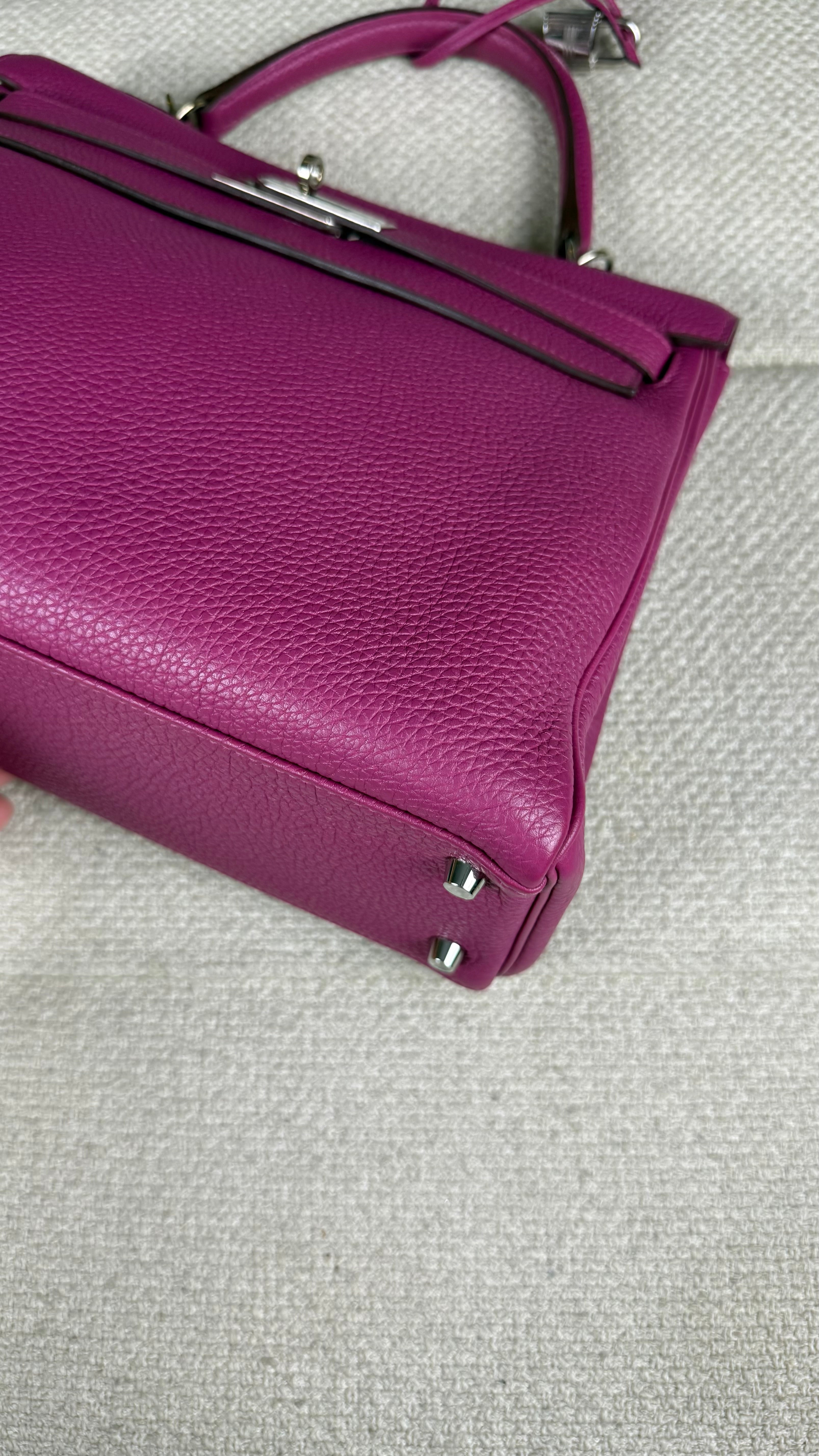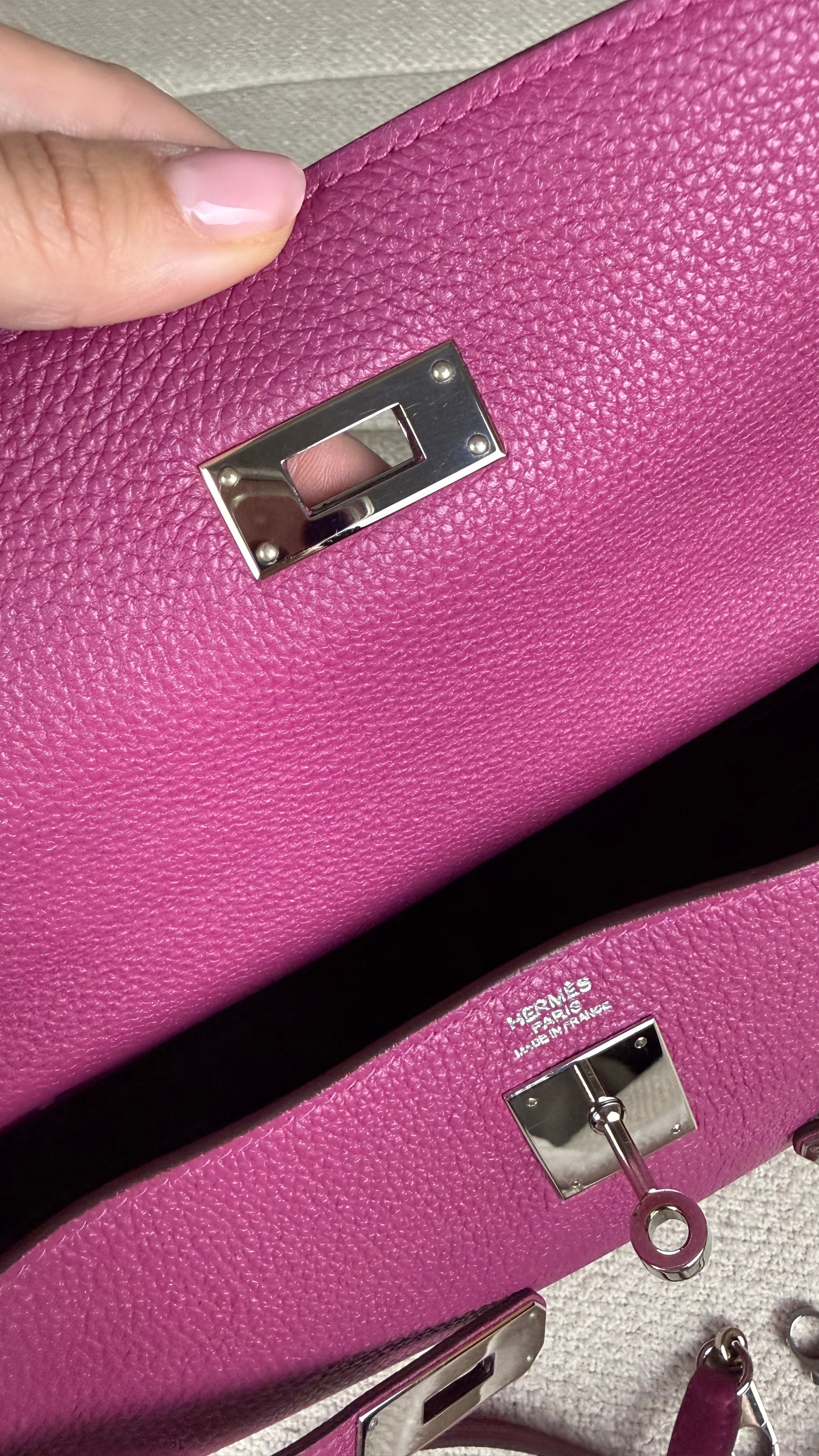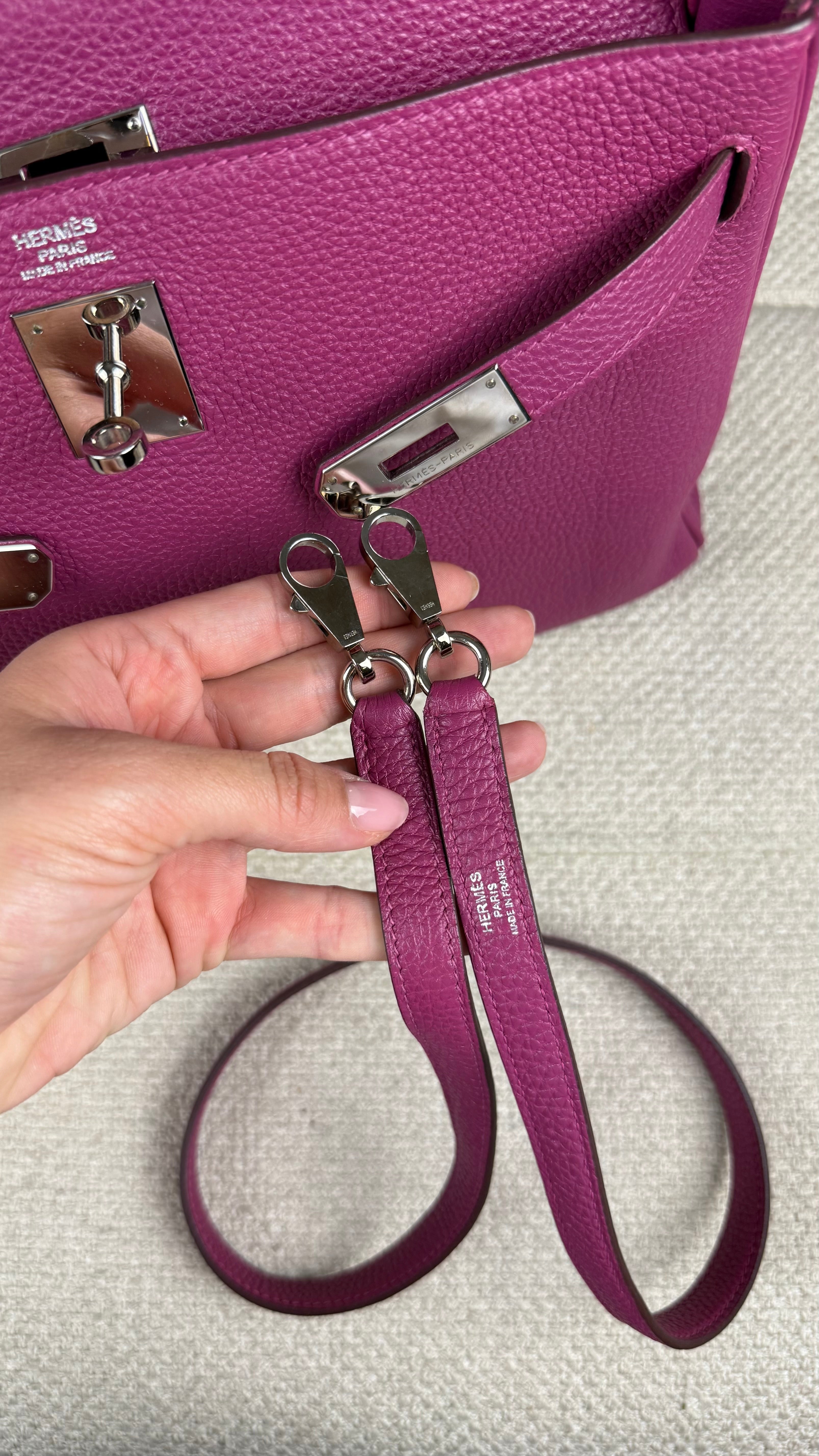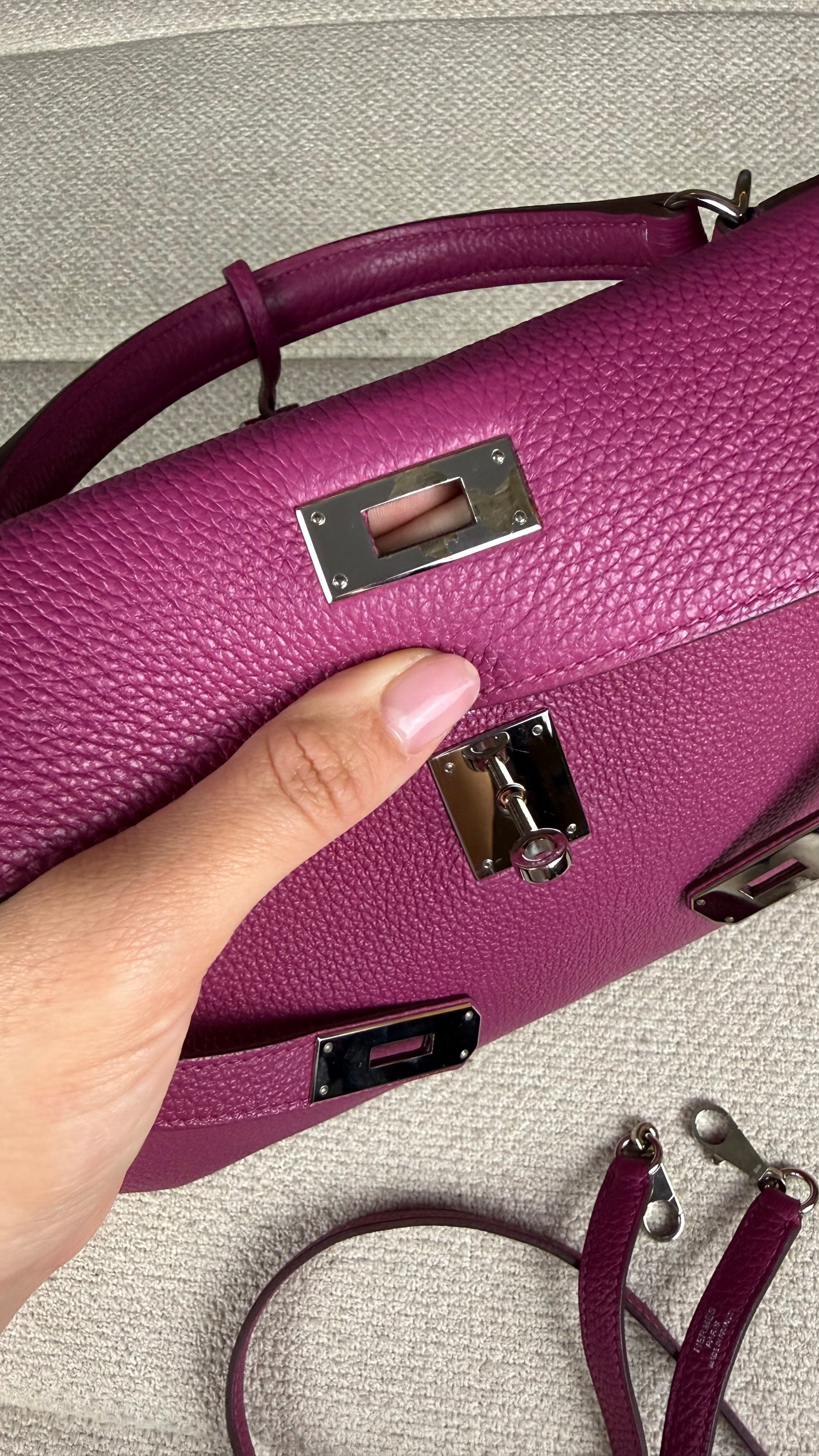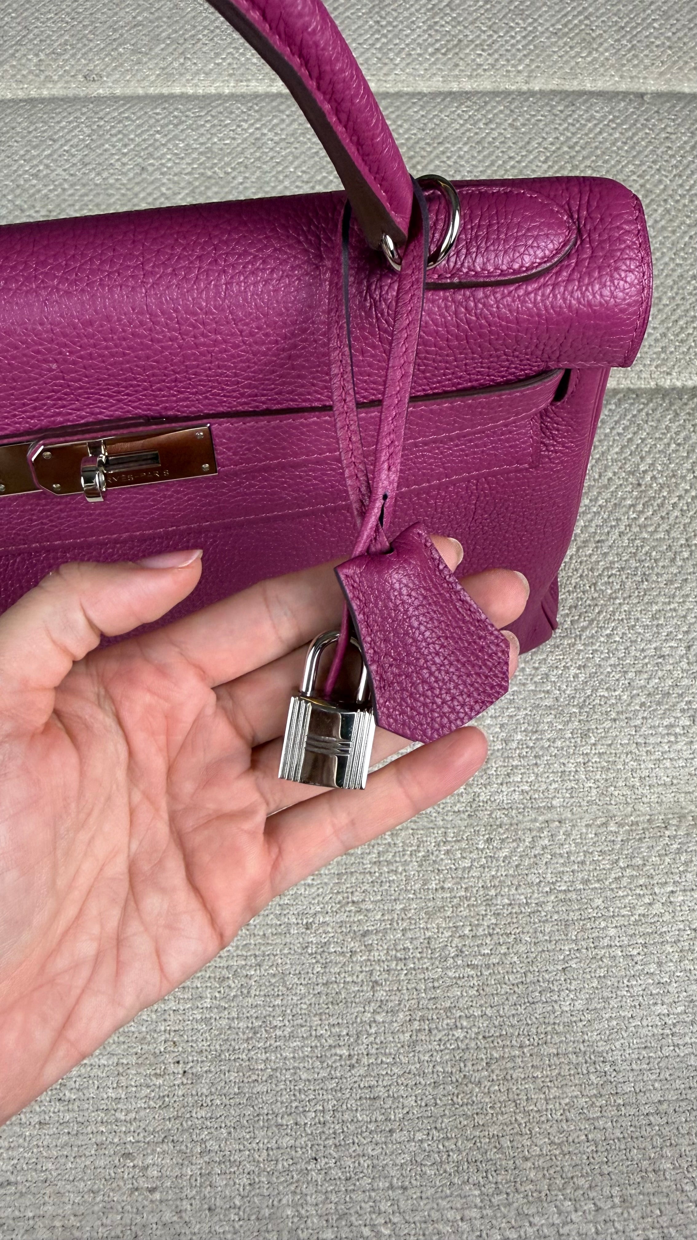 Hermès Kelly 32 Sellier em couro Togo – Cor Anemone – Ferragens Palladium.