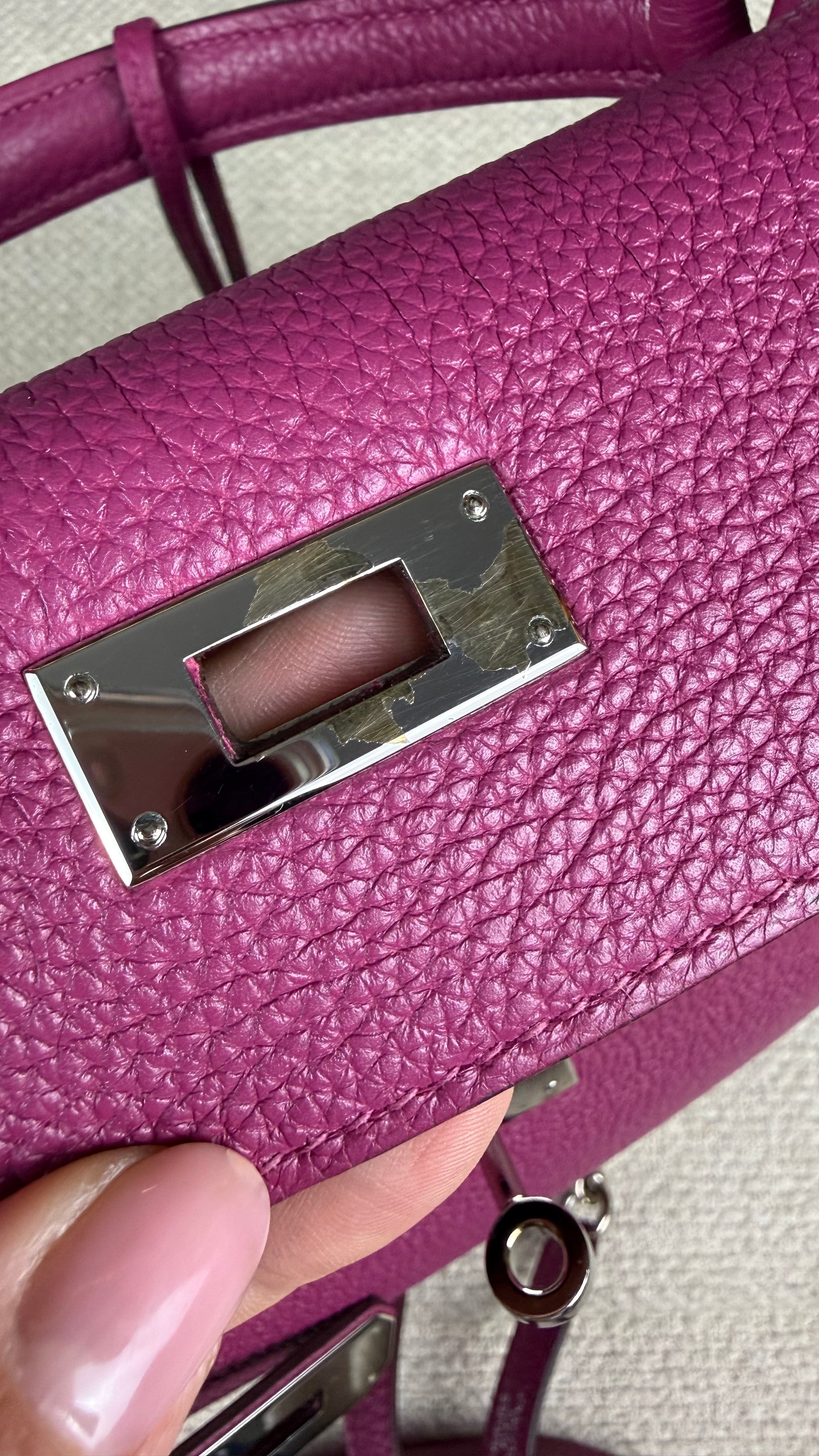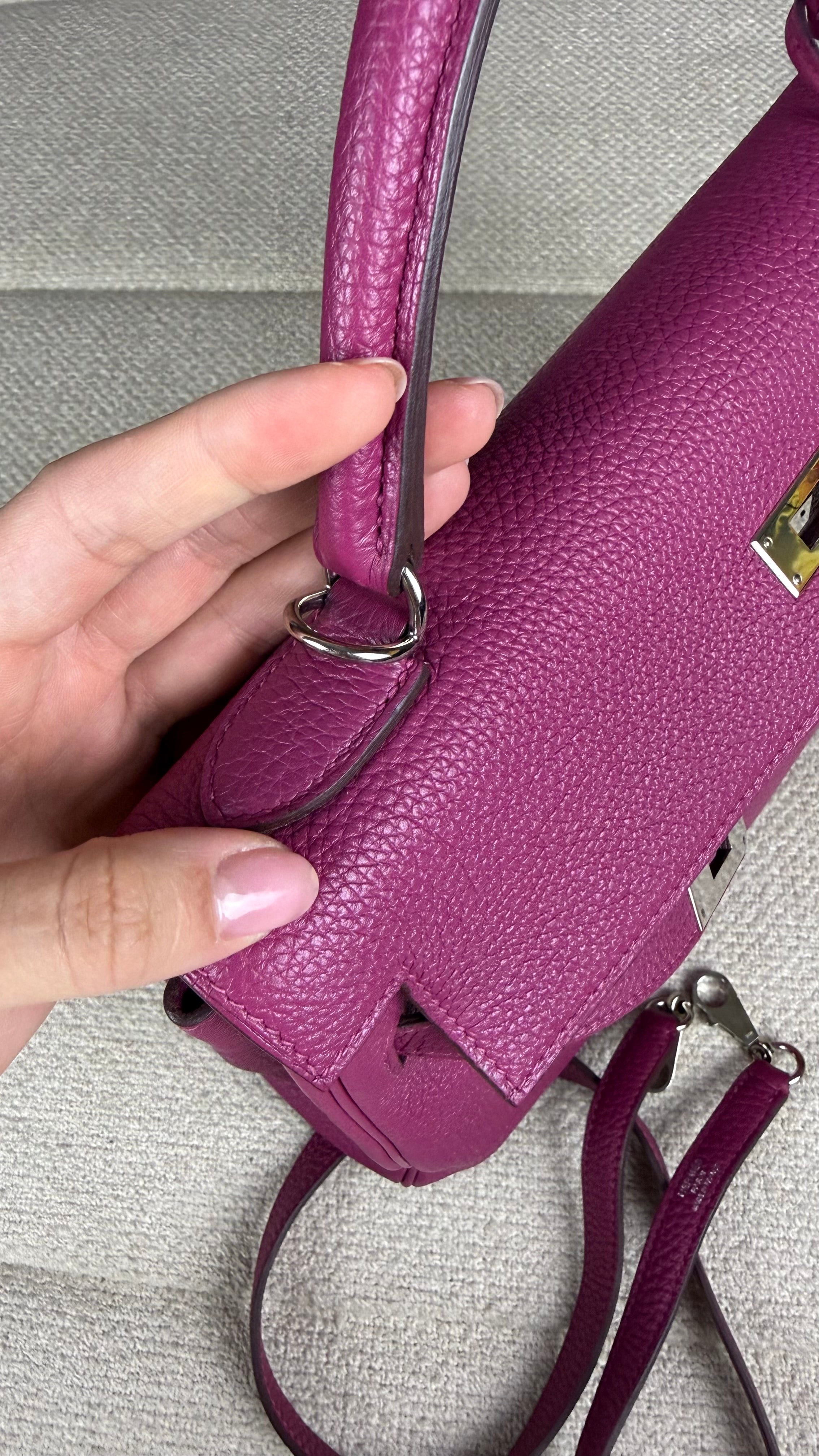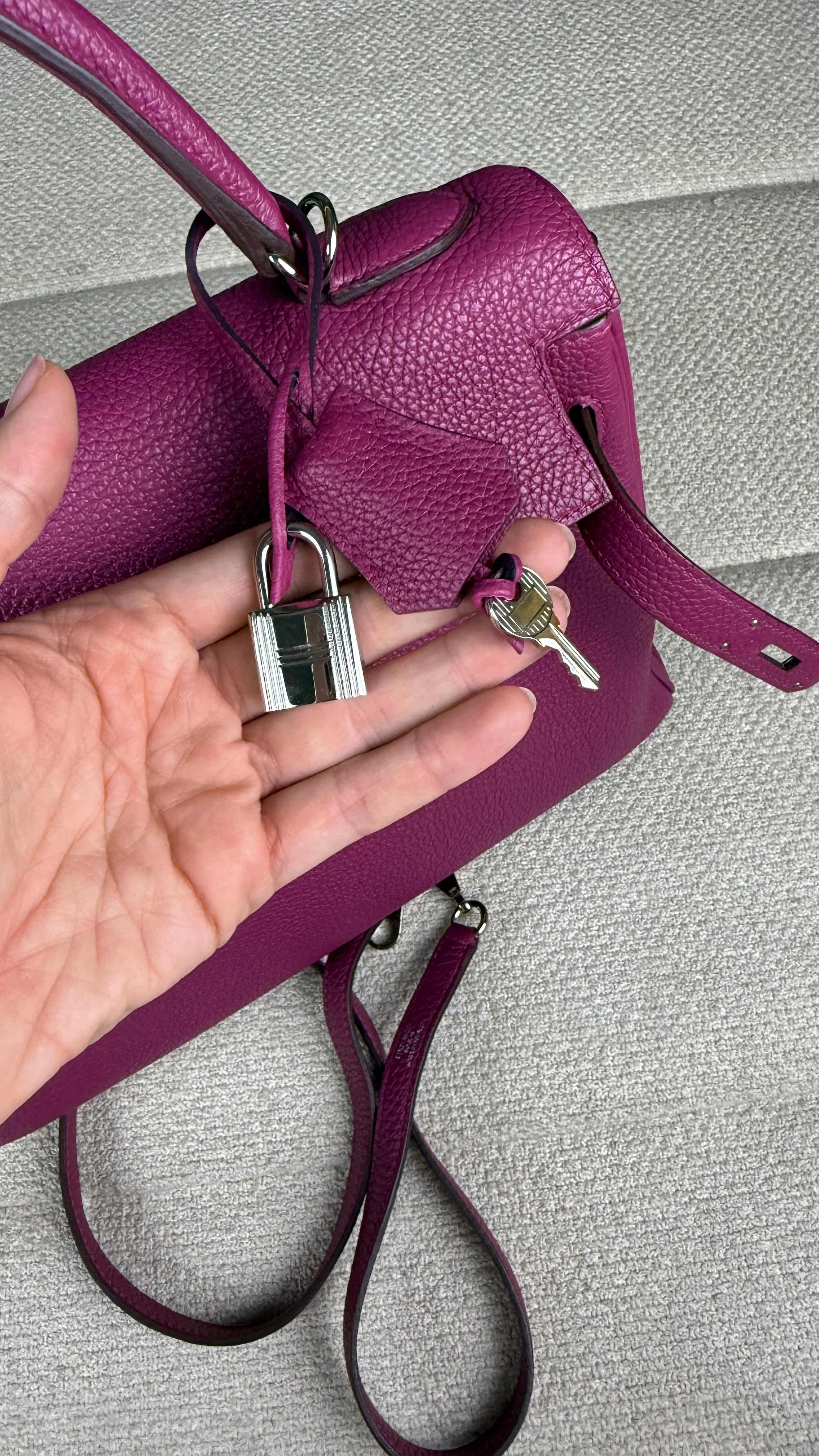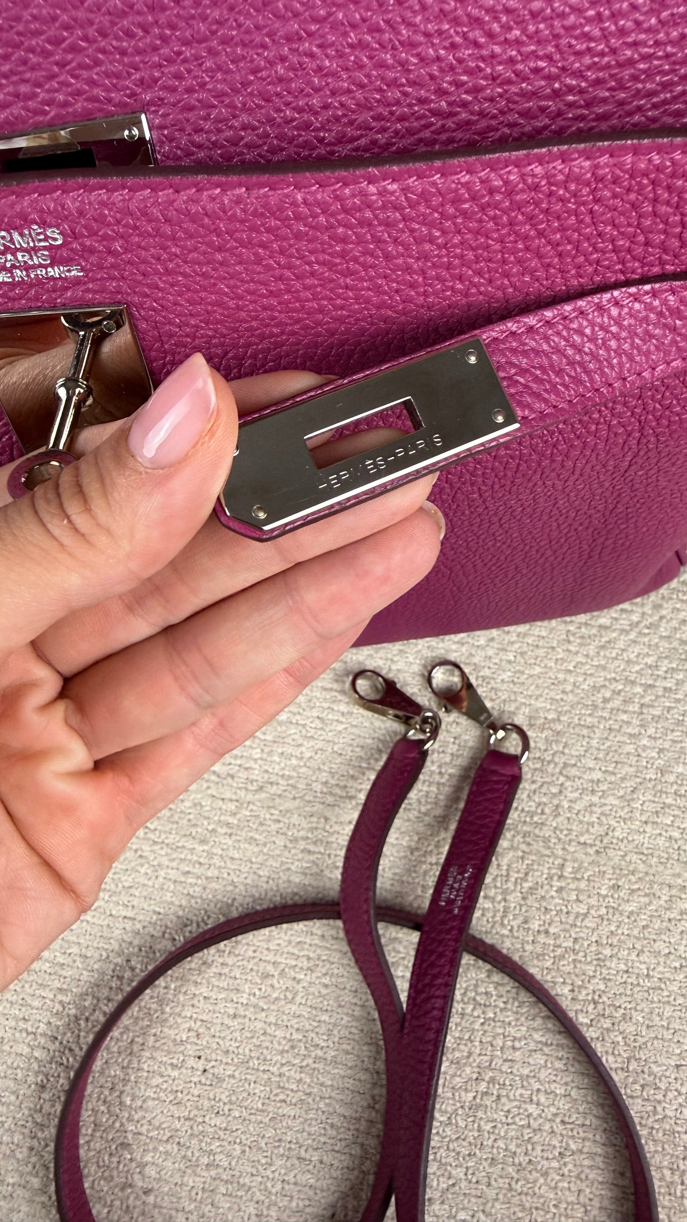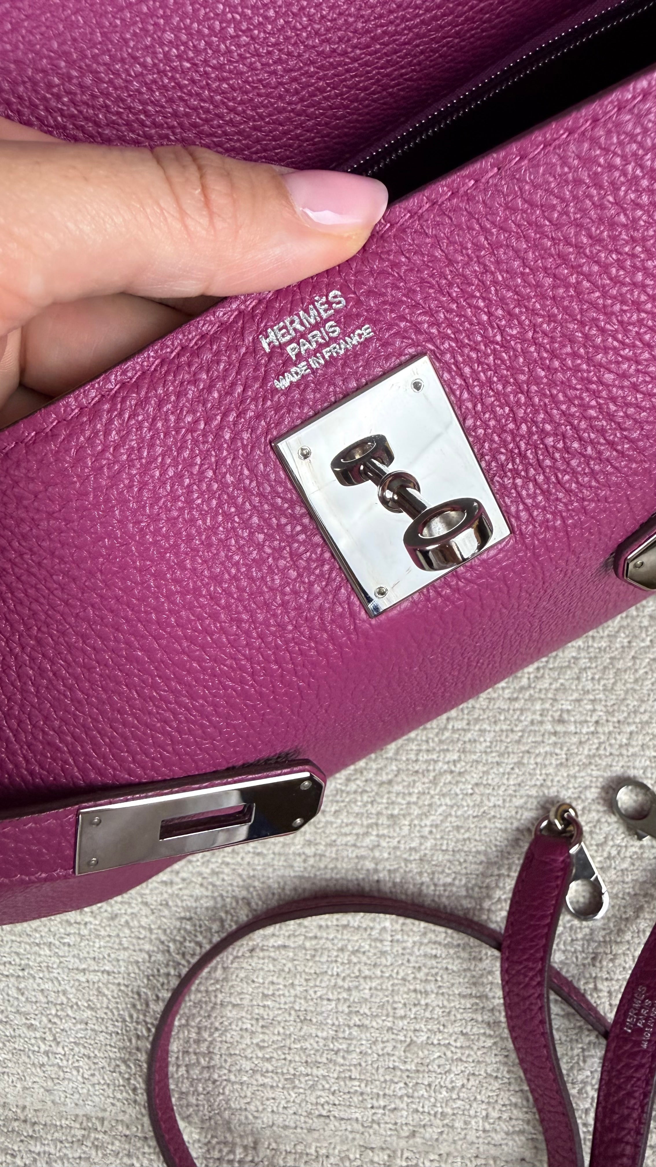 Hermès Kelly 32 Sellier em couro Togo – Cor Anemone – Ferragens Palladium.