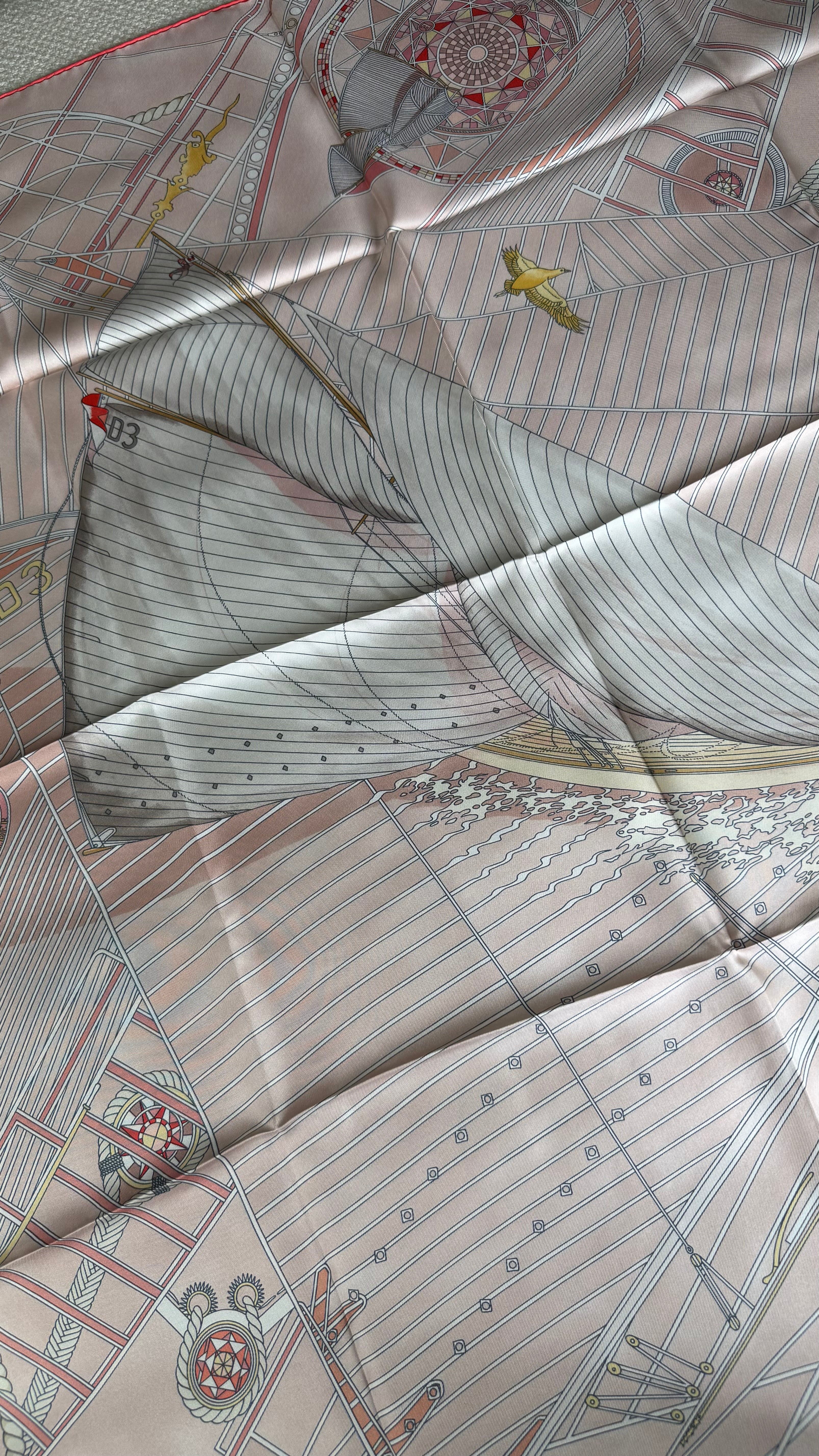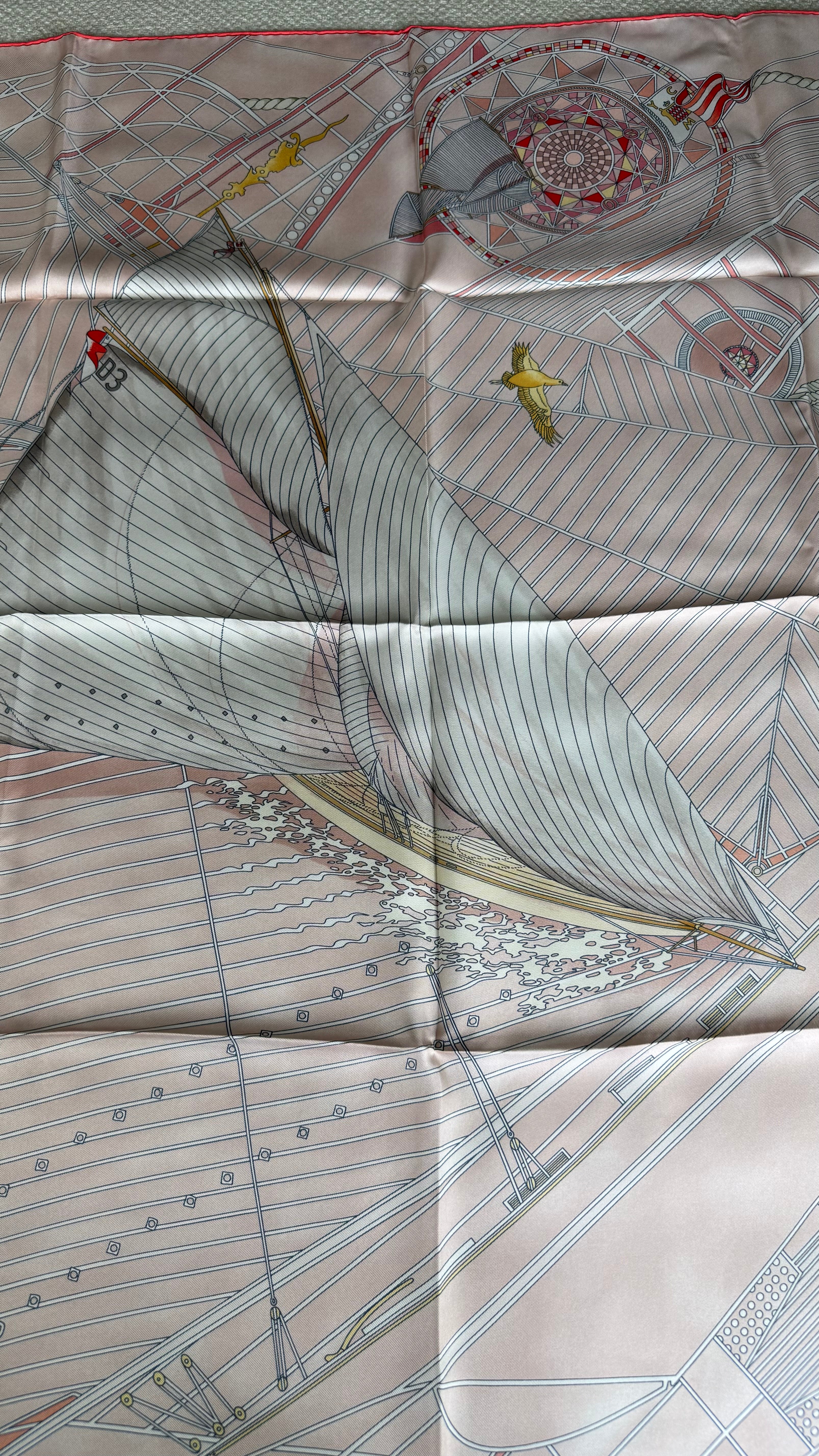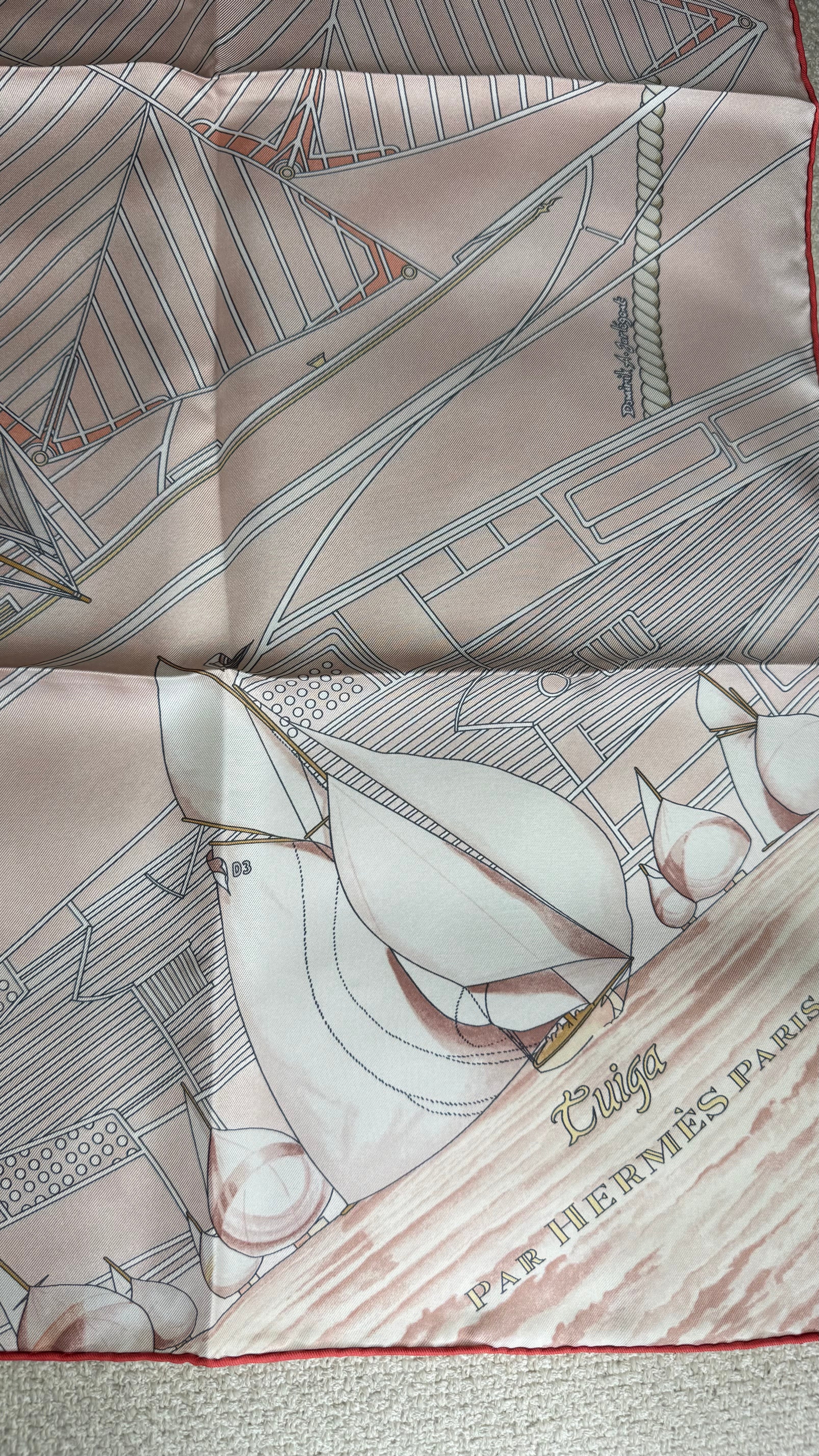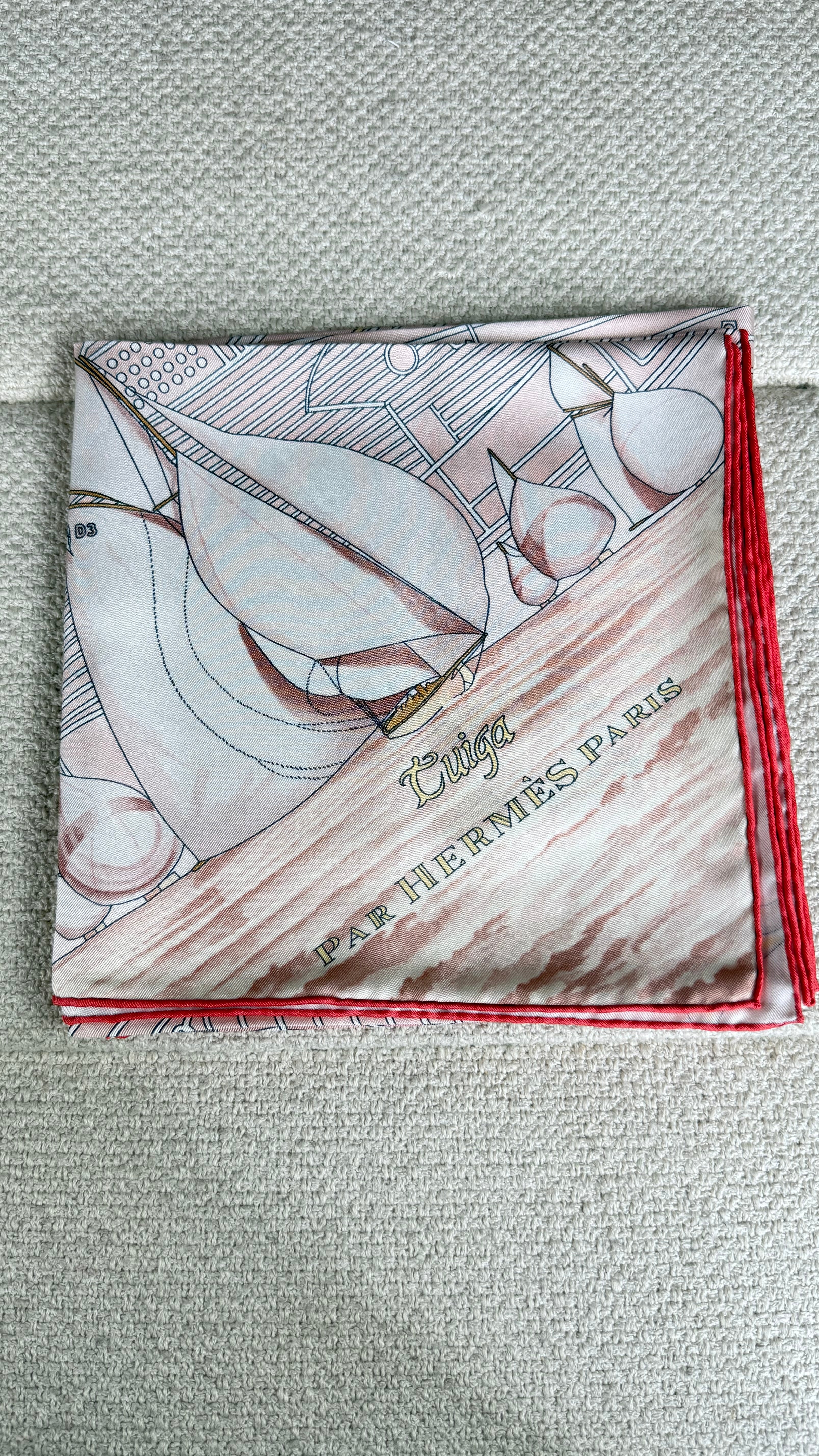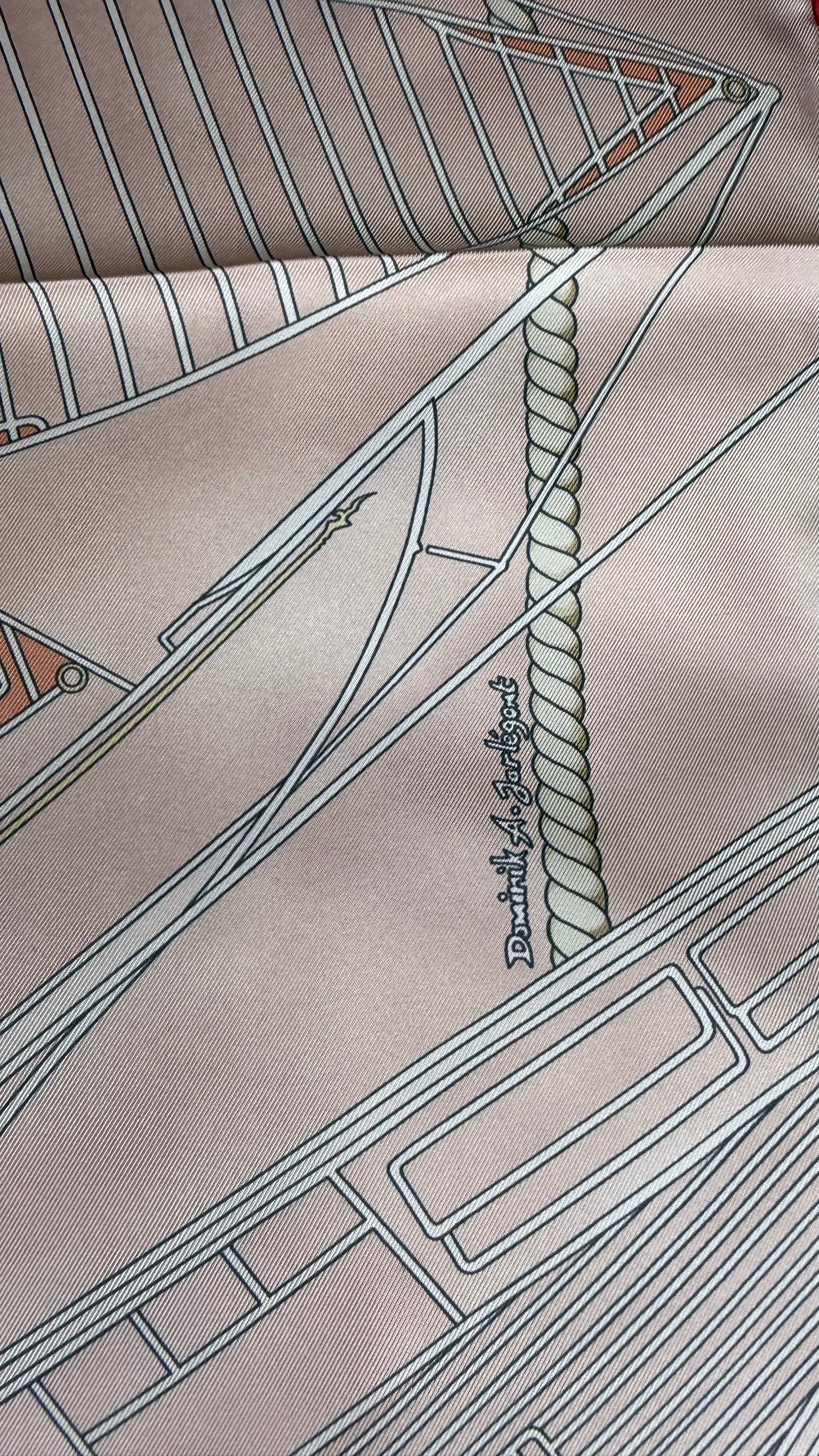 O Hermès Tuiga Silk Scarf é uma peça refinada que homenageia o mundo náutico, destacando-se pelo seu design detalhado e pela qualidade excepcional da seda utilizada.