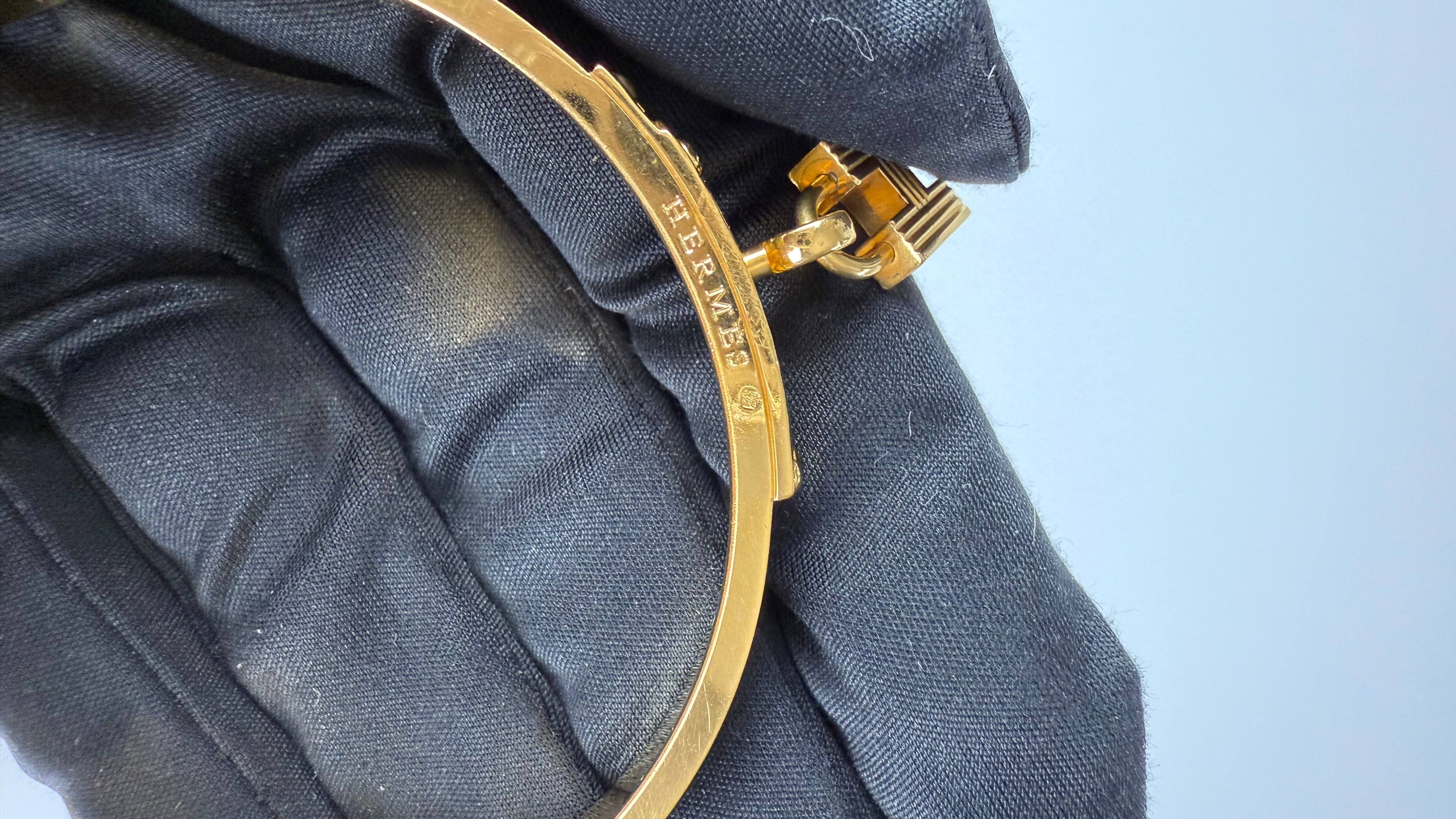 Ícone da joalheria de luxo, esta pulseira Hermès traz o clássico design inspirado no fecho das bolsas Kelly, um dos maiores símbolos da maison francesa.
