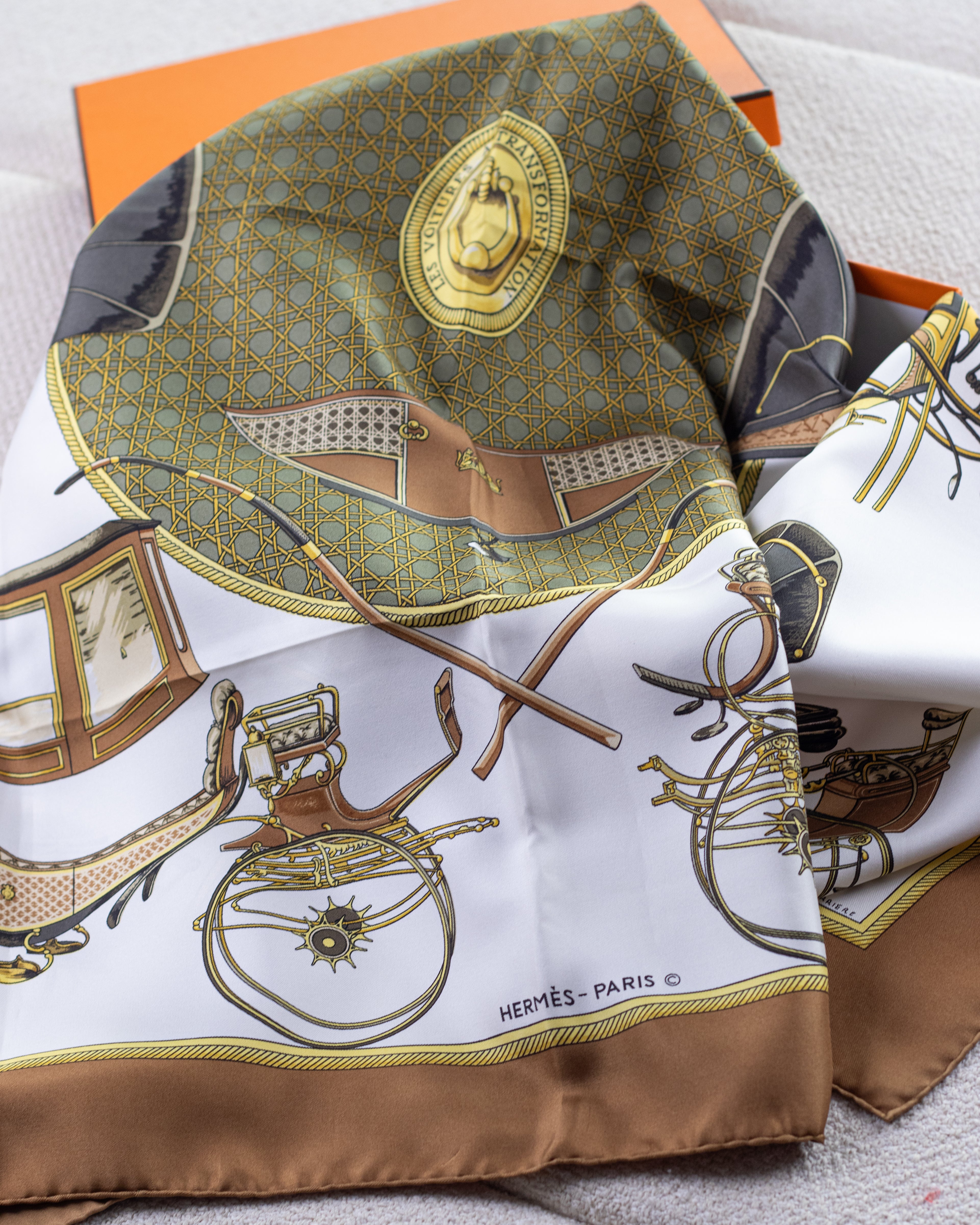 Lenço Hermès Les Voitures a Transformation by Francoise de La Perriere