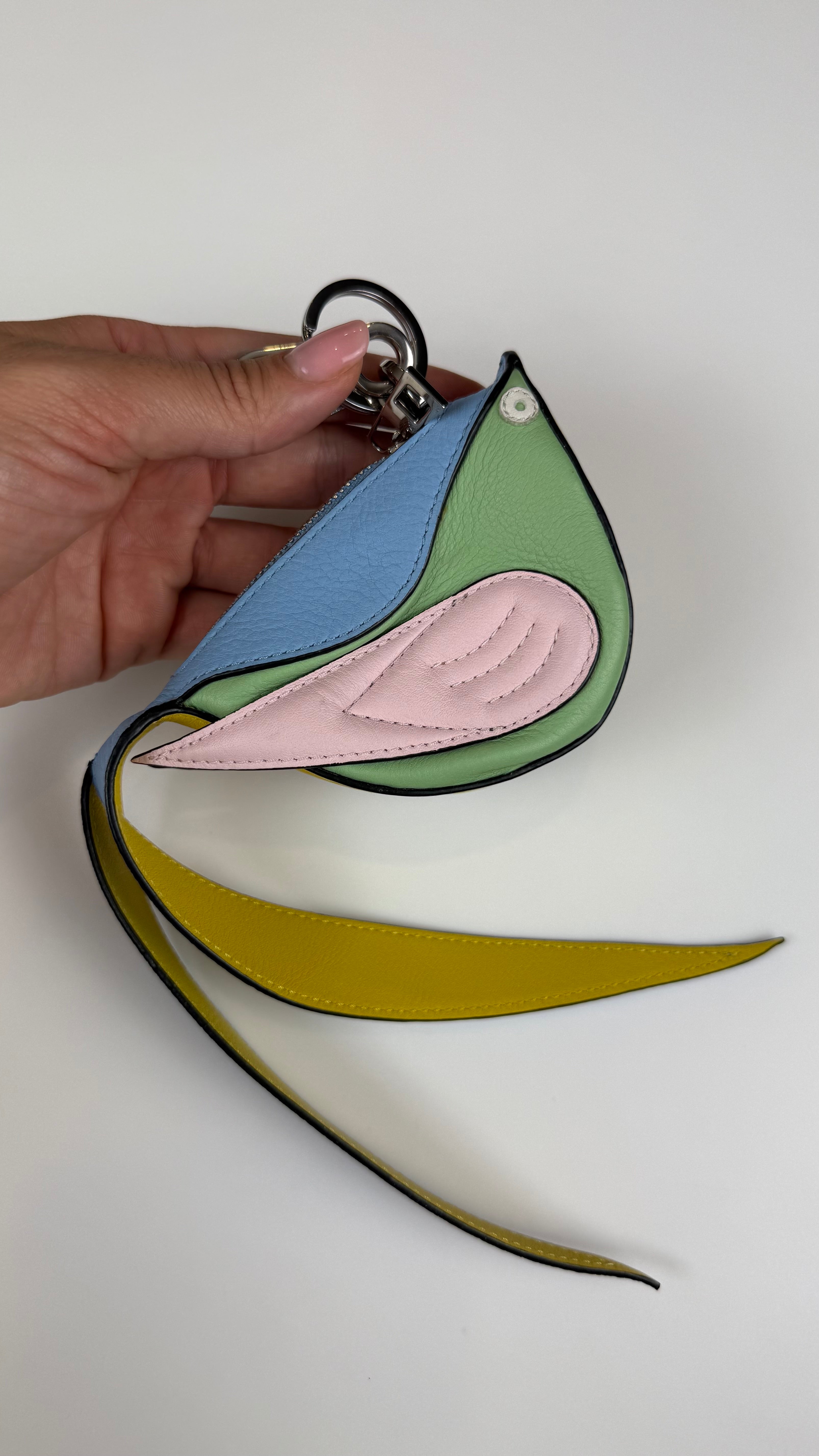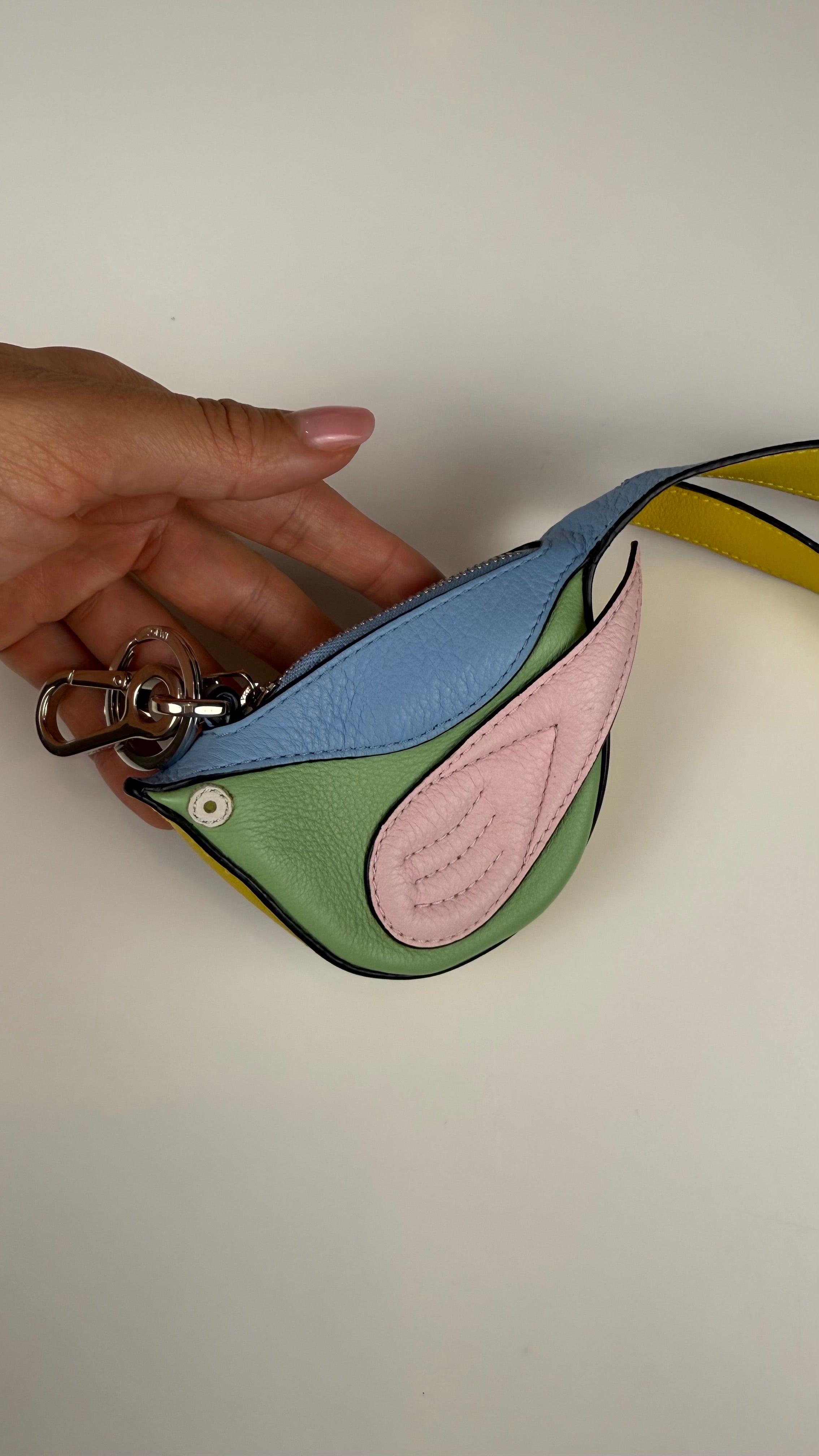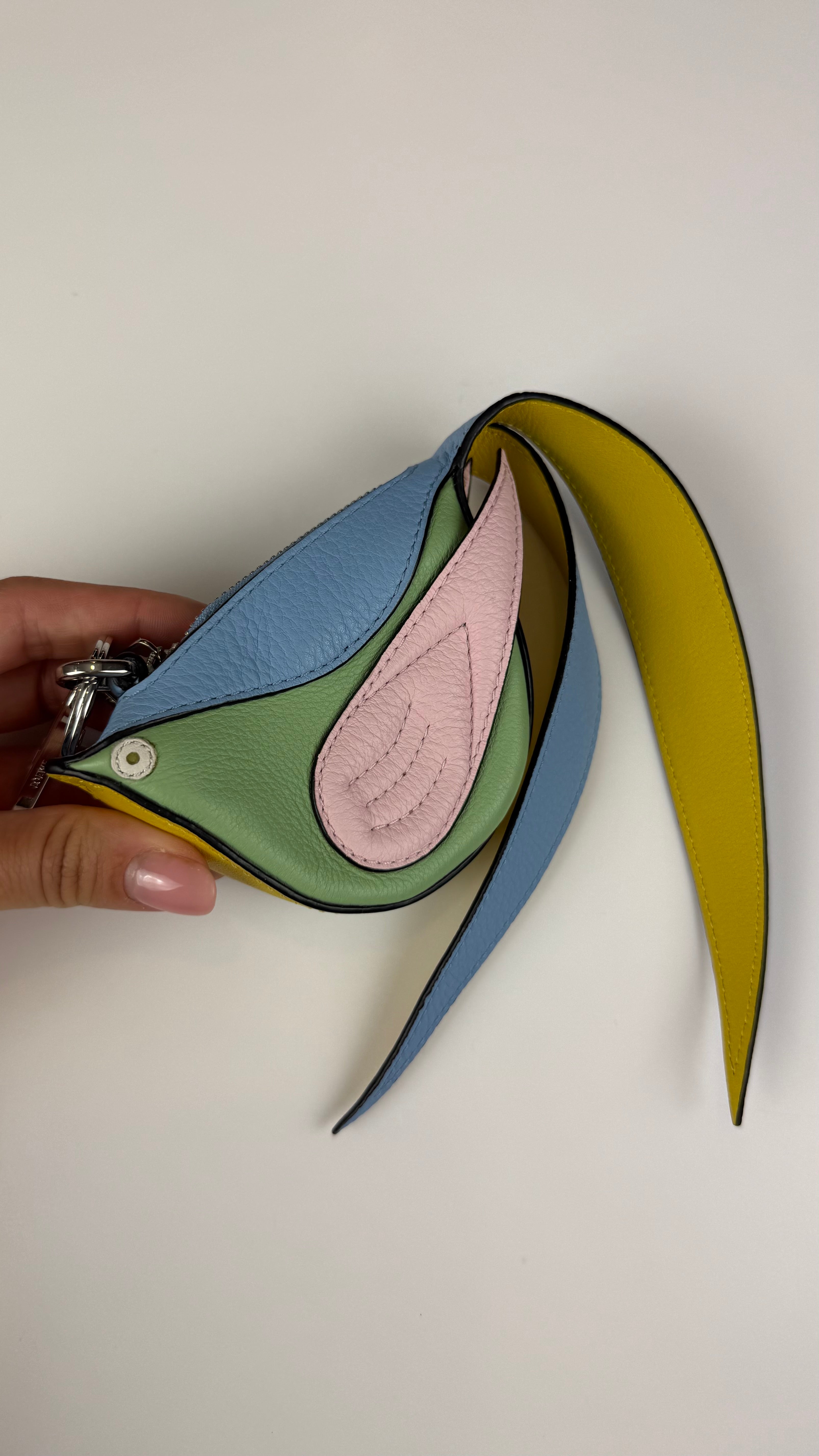 Um acessório encantador e criativo da Loewe, famoso por suas peças artesanais de couro com design inovador. Este porta-moedas em formato de pássaro une praticidade e estilo em um item único.