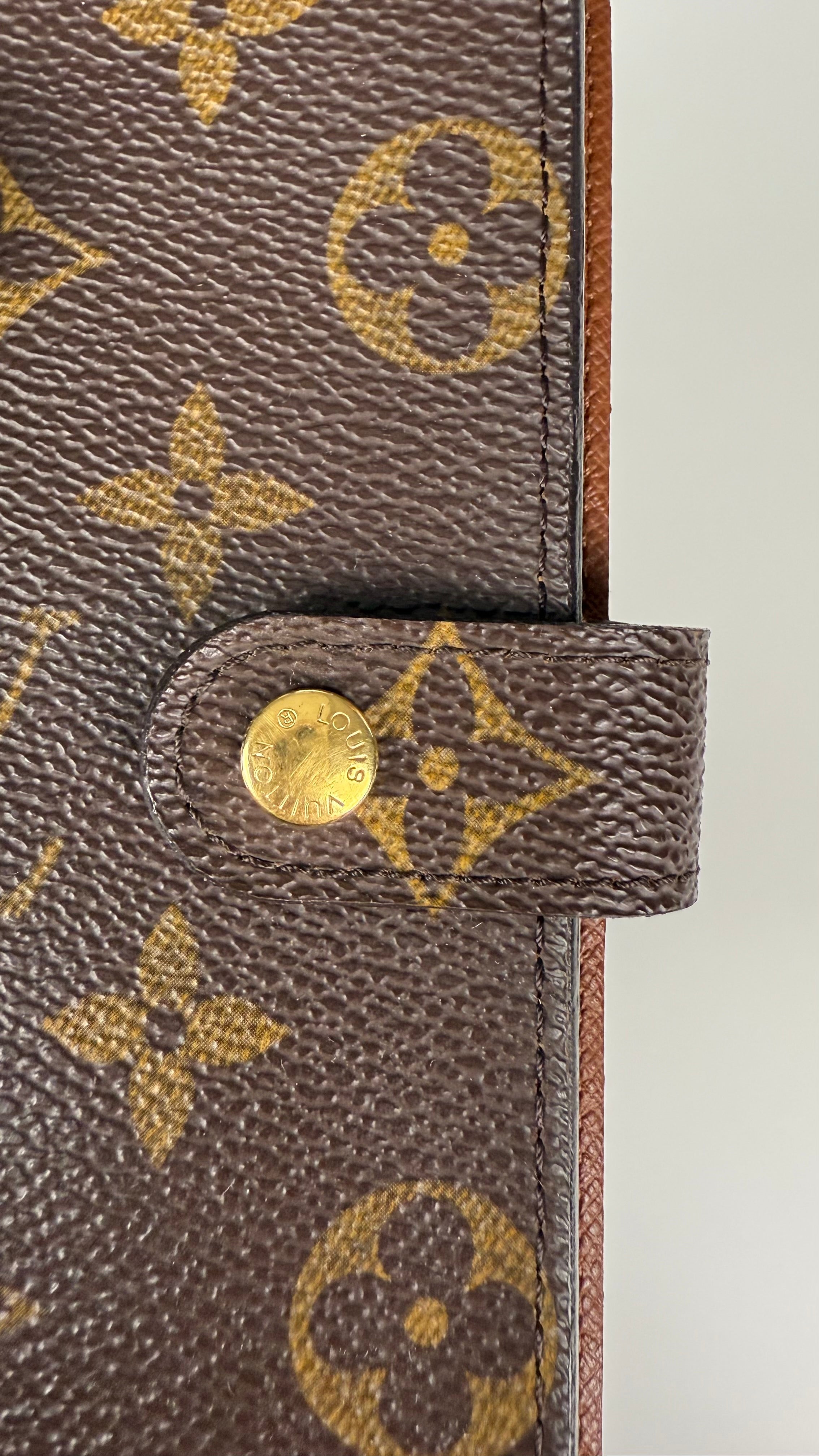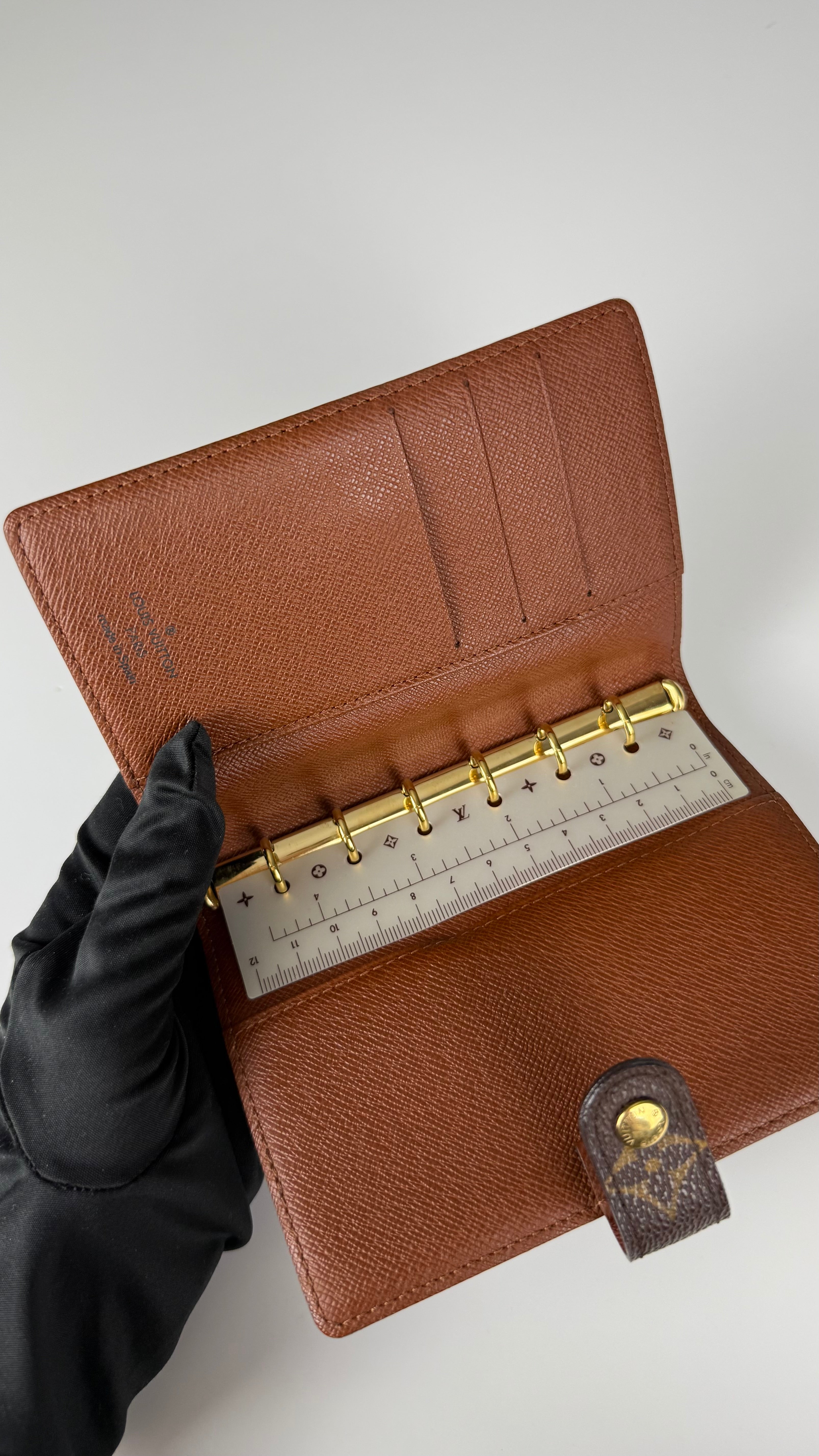 Organização e luxo em um só acessório! A Agenda PM da Louis Vuitton é um clássico atemporal, confeccionada no icônico canvas Monogram com fecho de pressão em metal dourado gravado com a assinatura da maison.