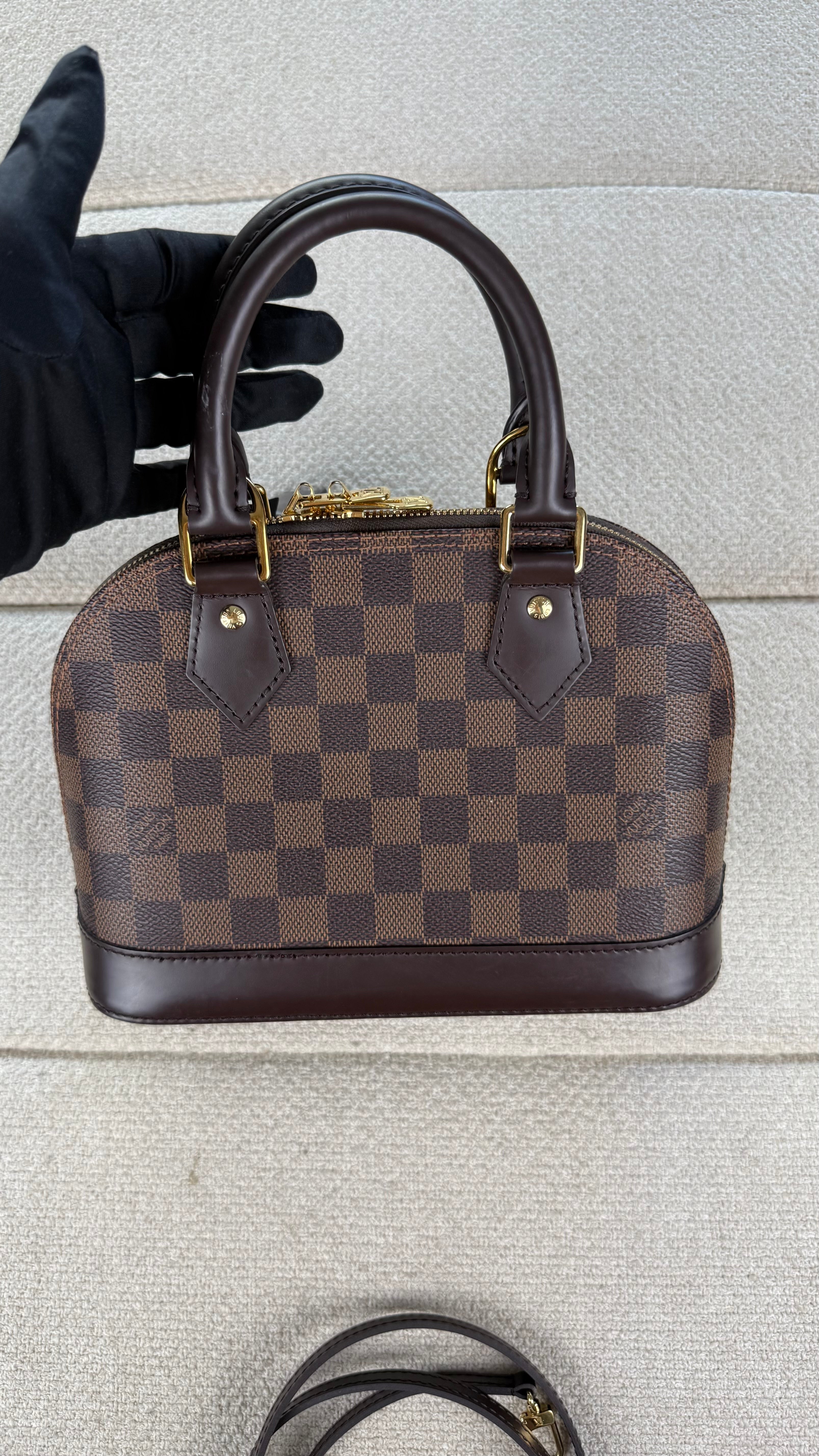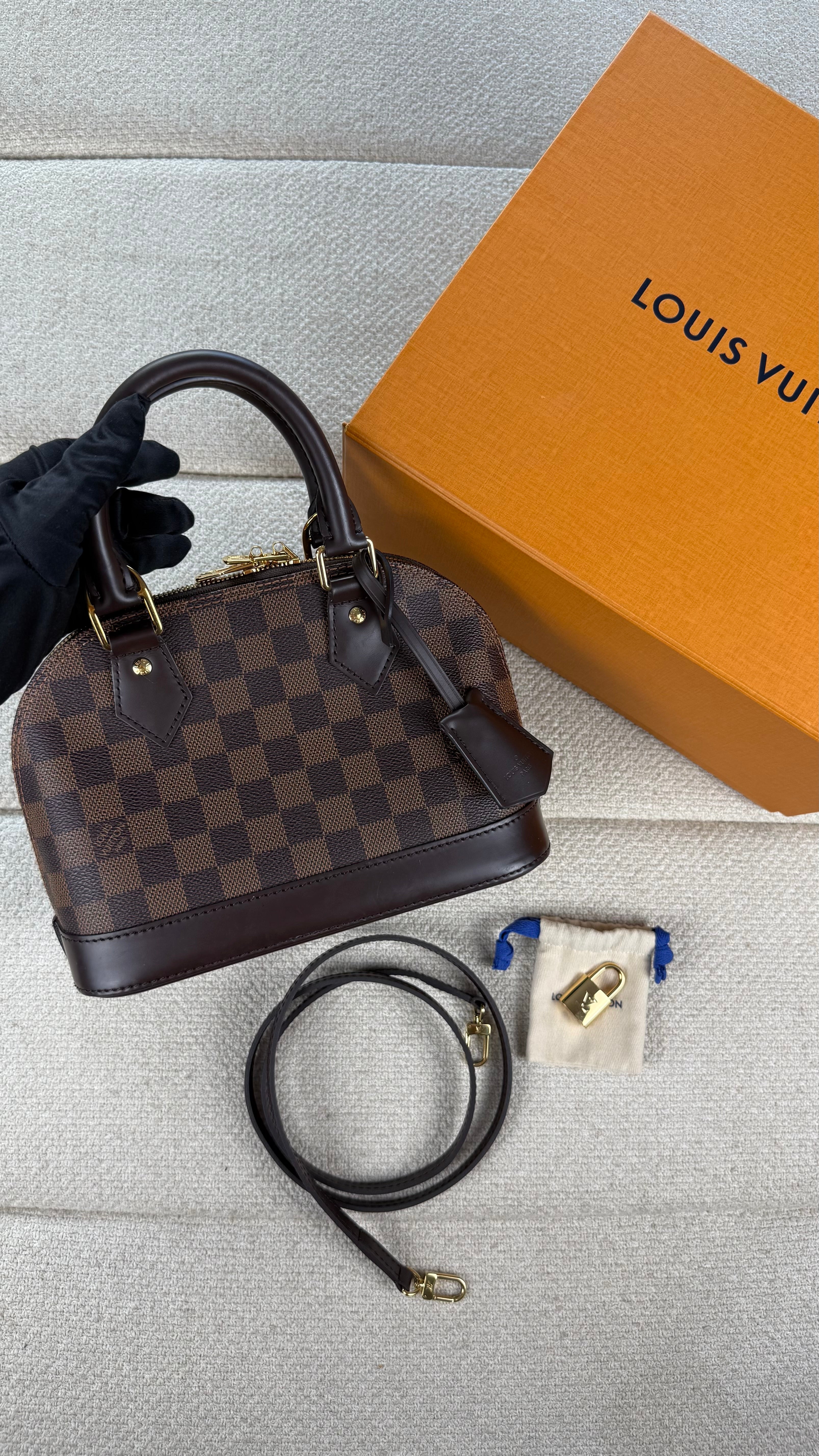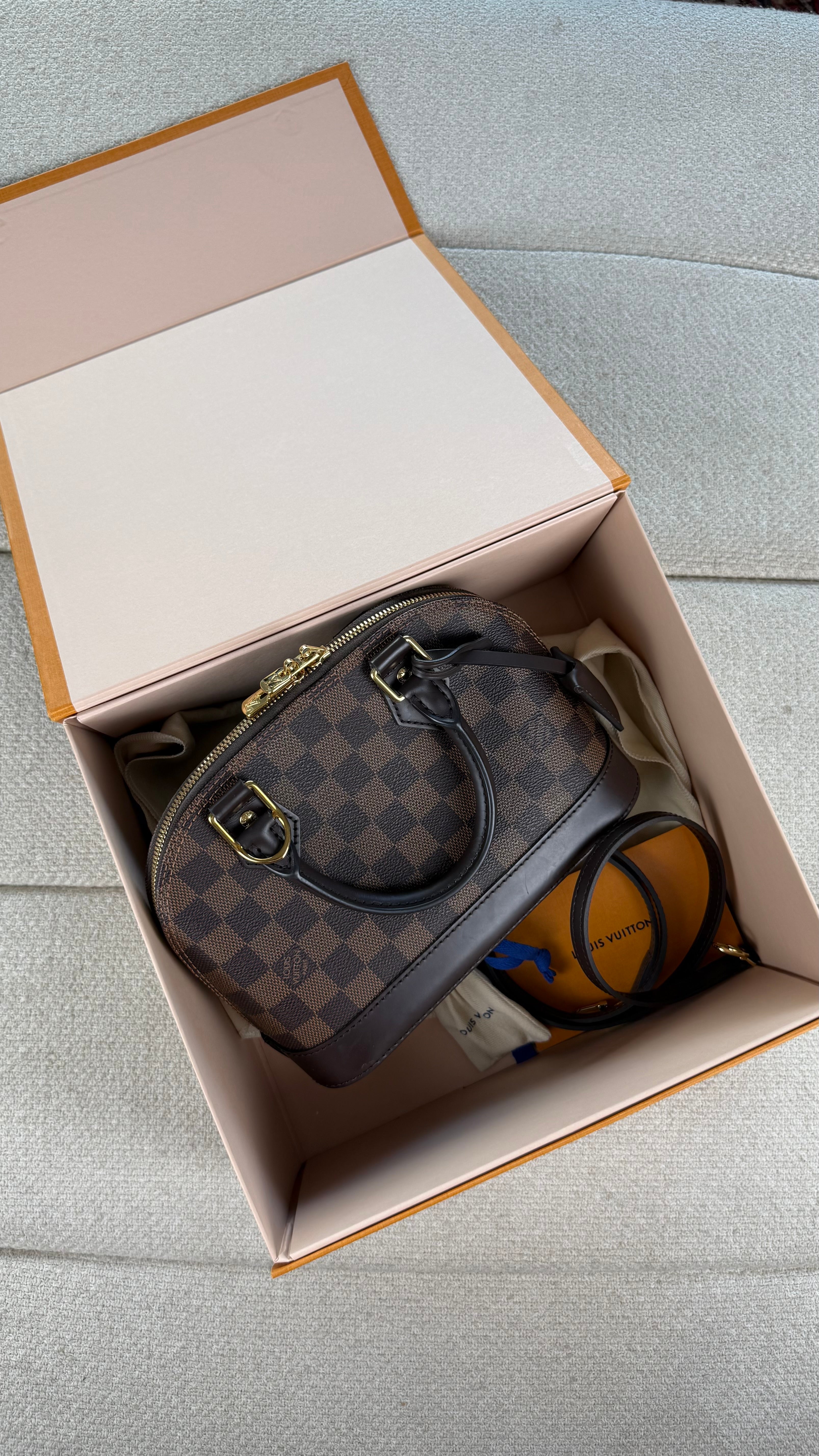 Louis Vuitton Alma BB Damier Ebene, um dos modelos mais icônicos e elegantes da maison Louis Vuitton, símbolo do requinte parisiense e do artesanato de luxo.