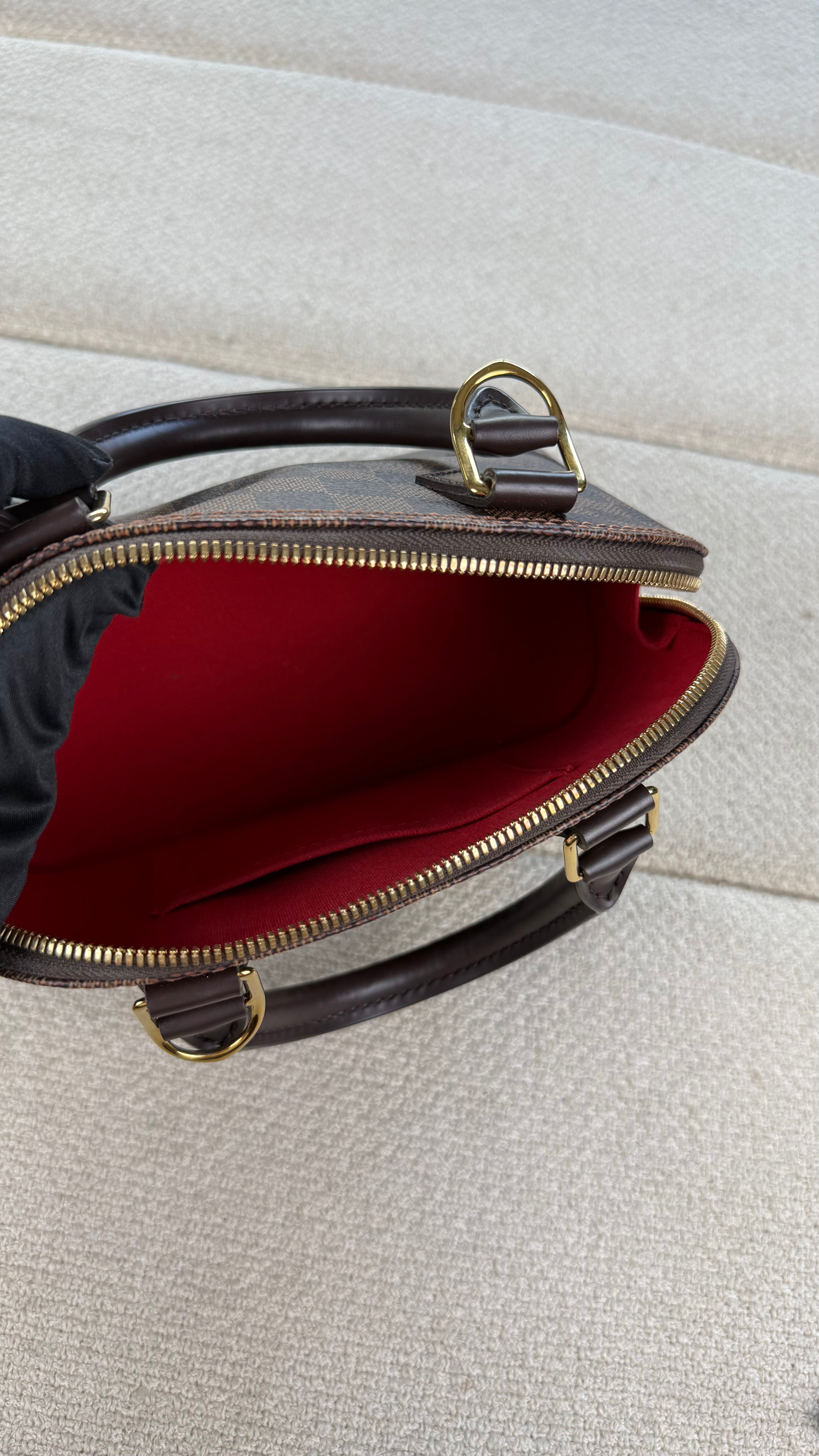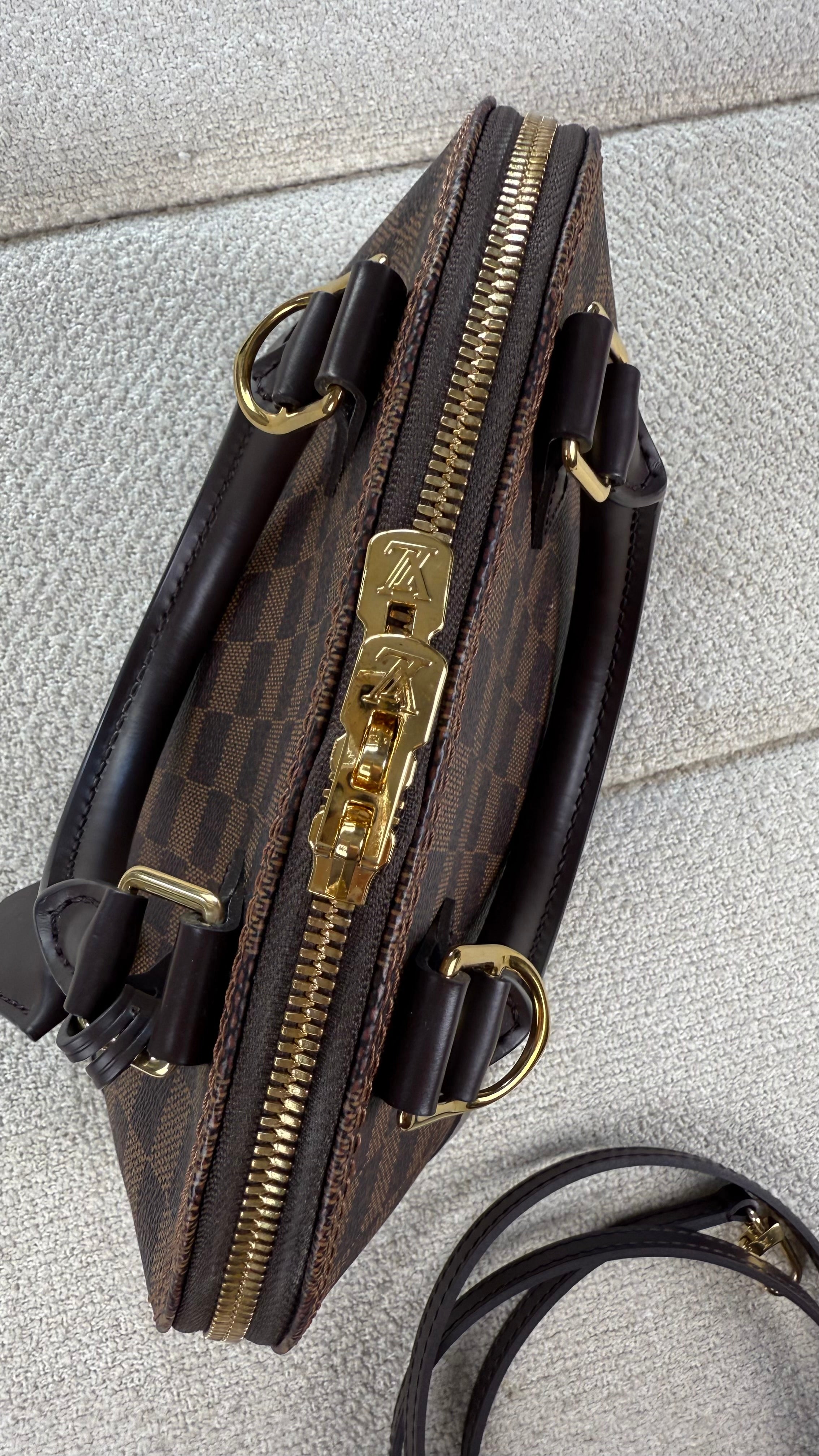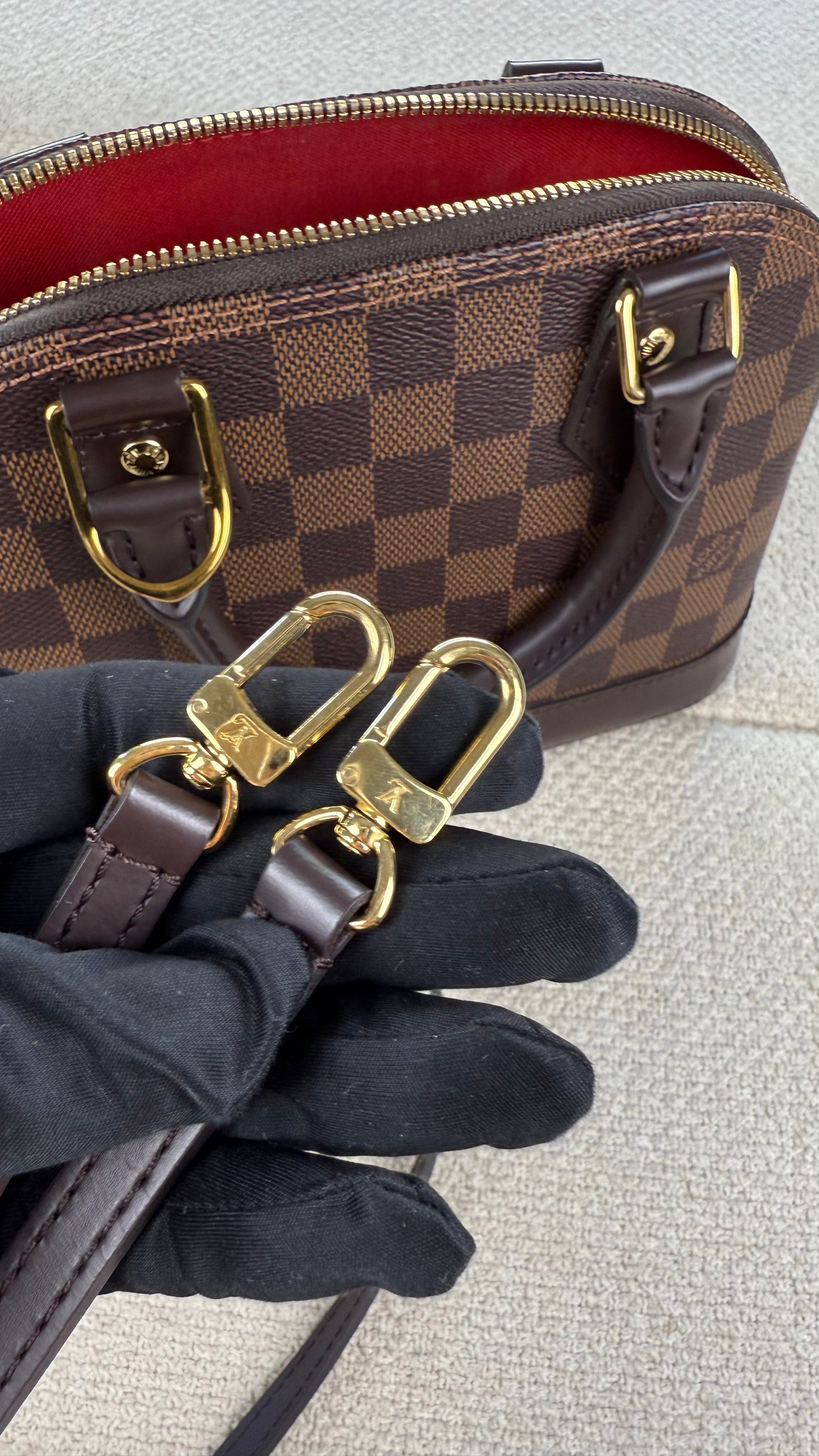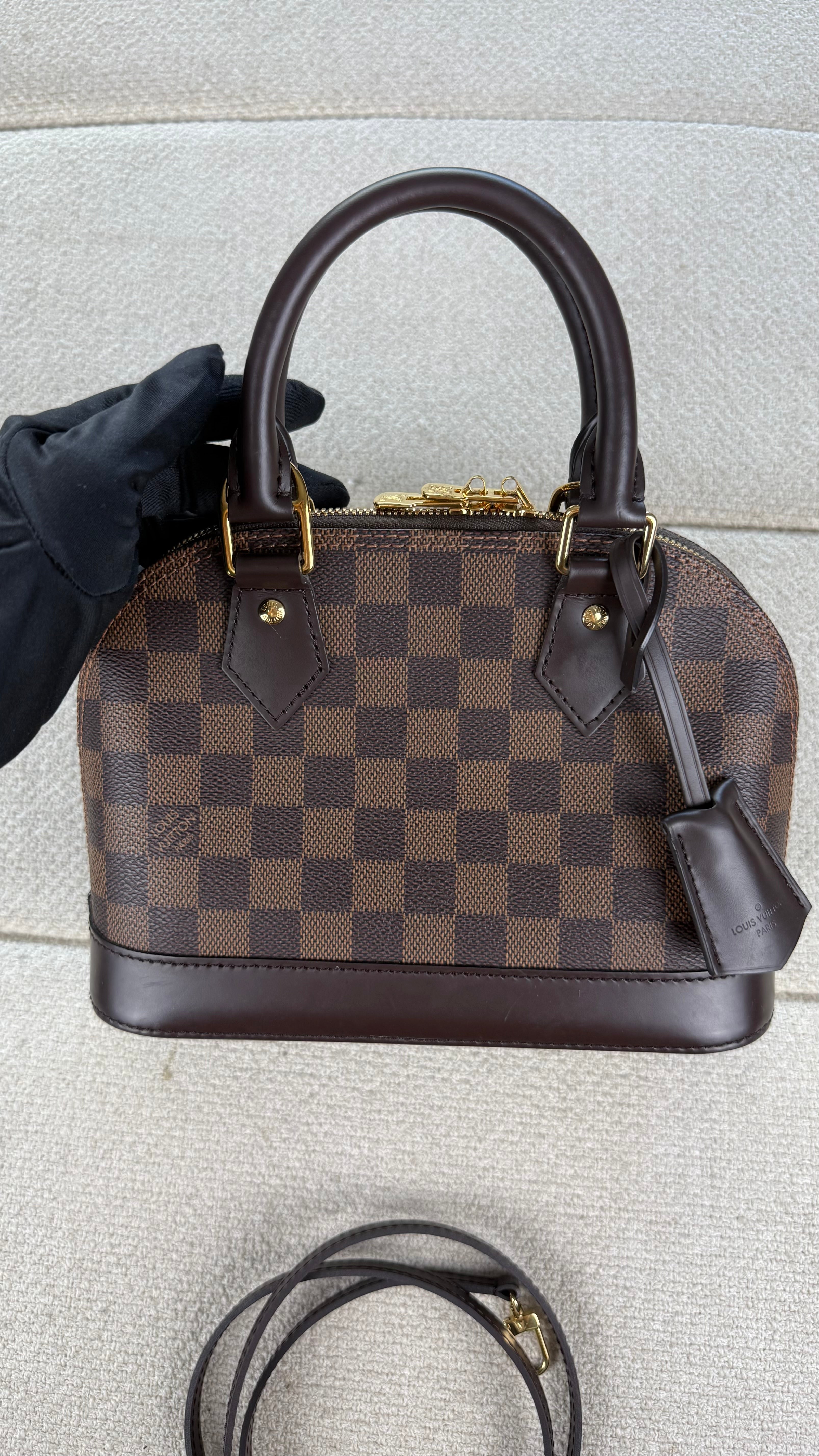 Louis Vuitton Alma BB Damier Ebene, um dos modelos mais icônicos e elegantes da maison Louis Vuitton, símbolo do requinte parisiense e do artesanato de luxo.