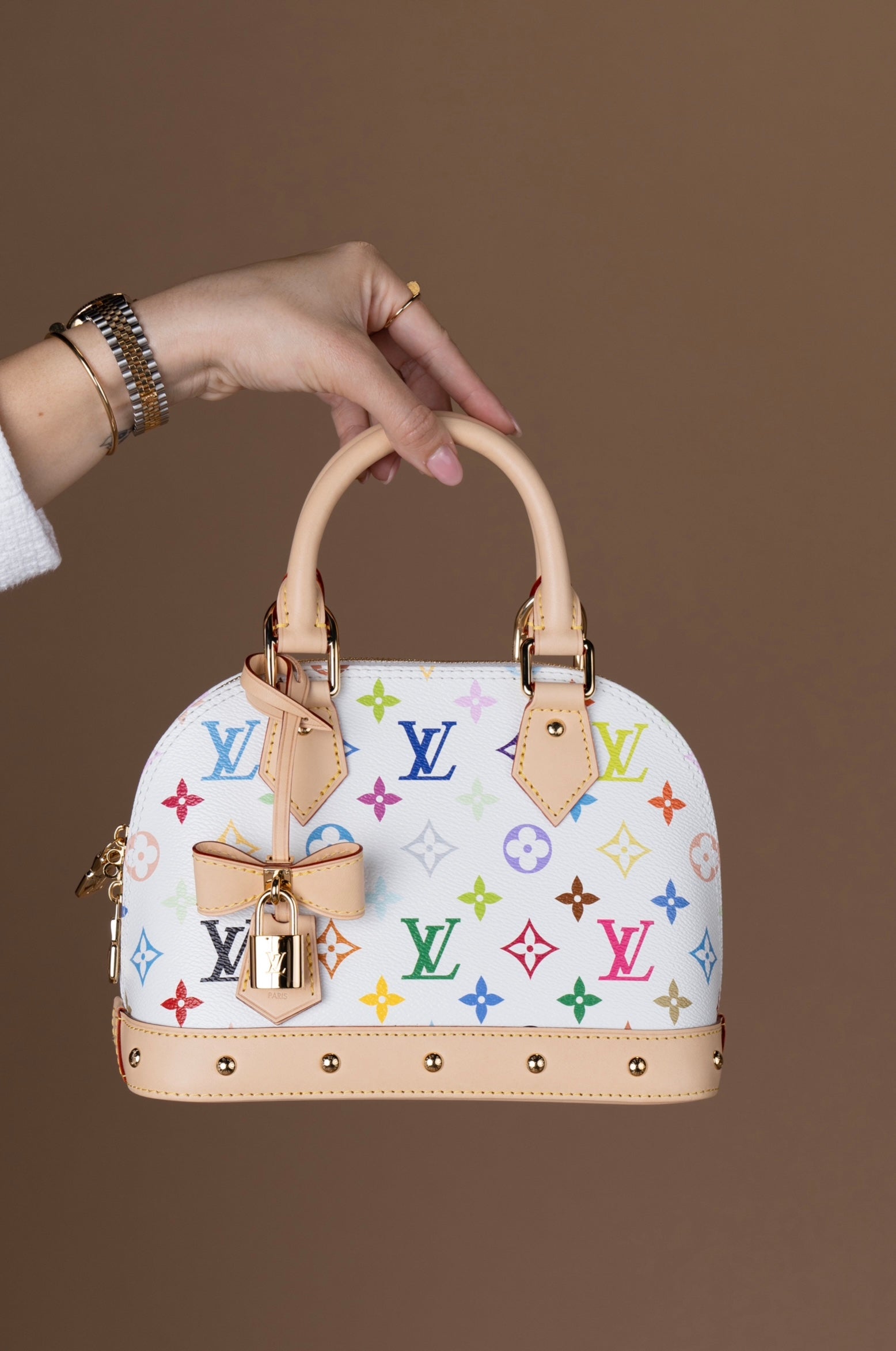Em comemoração aos 20 anos da icônica colaboração entre a Louis Vuitton e o artista japonês Takashi Murakami, a maison relançou em 2025 a celebrada carteira Alma BB. Esta edição especial combina o design estruturado e elegante da clássica Alma BB com os elementos vibrantes que marcaram a parceria original iniciada em 2003, resultando numa peça que homenageia a tradição enquanto abraça o espírito contemporâneo da arte pop.