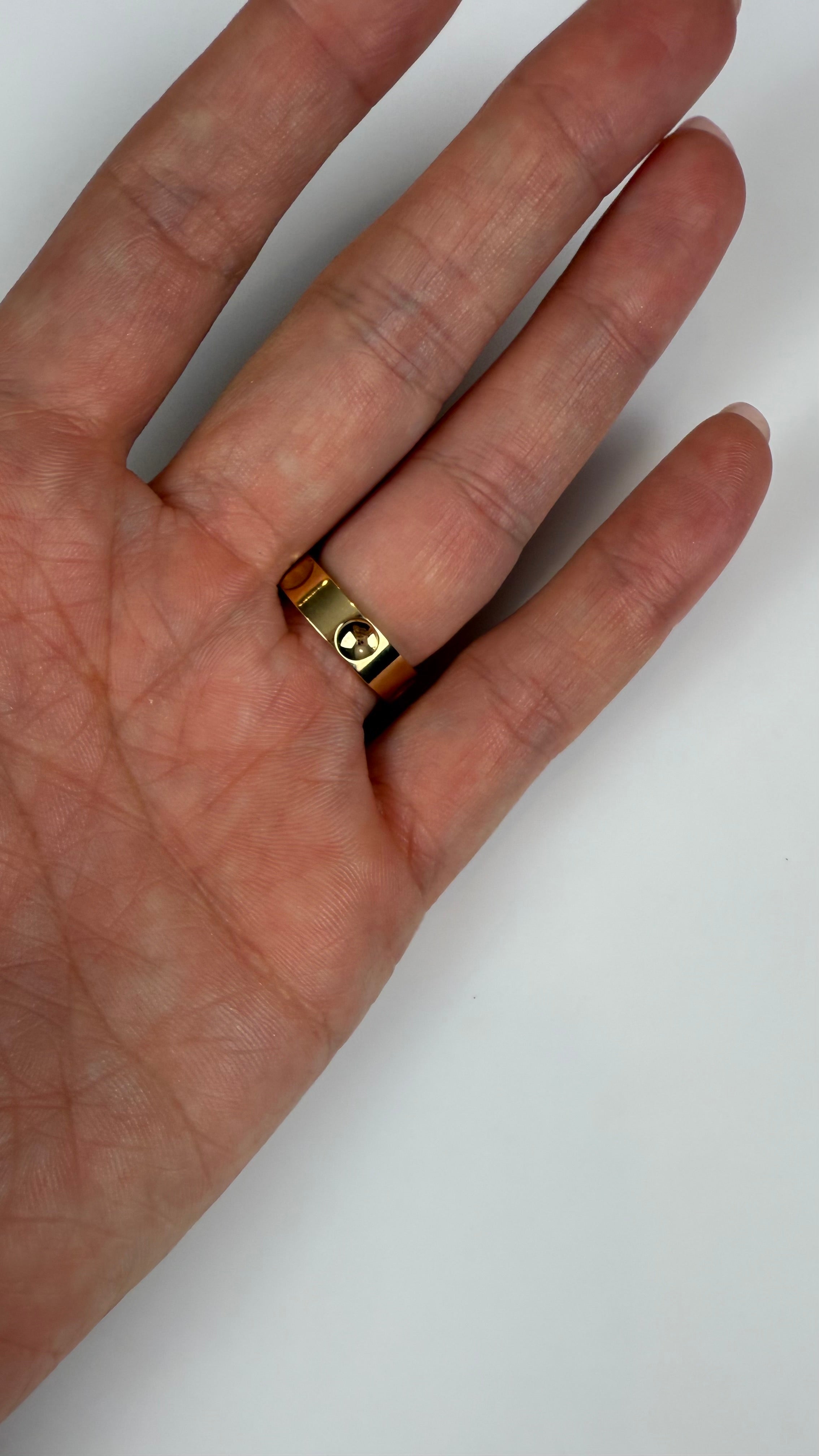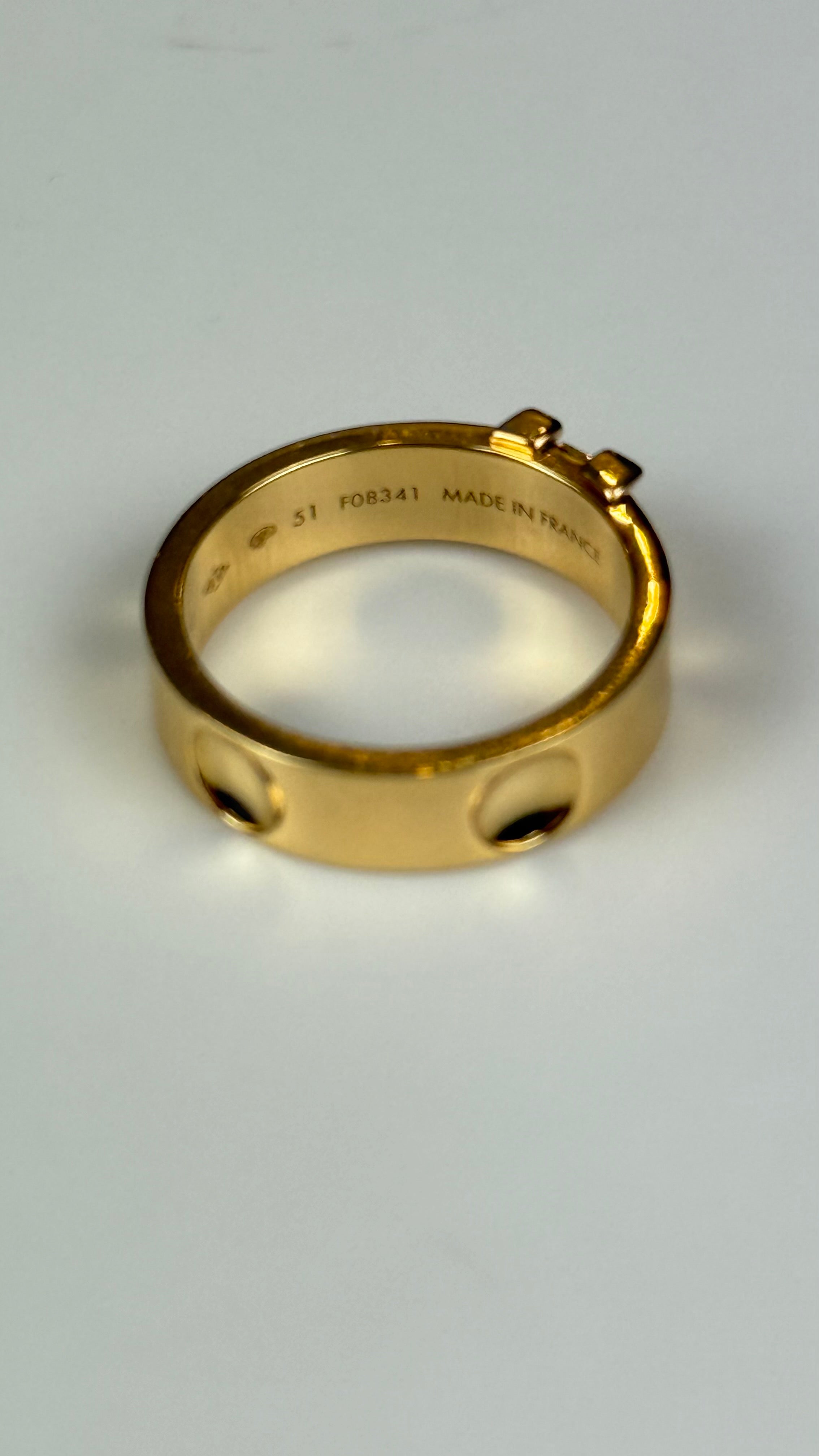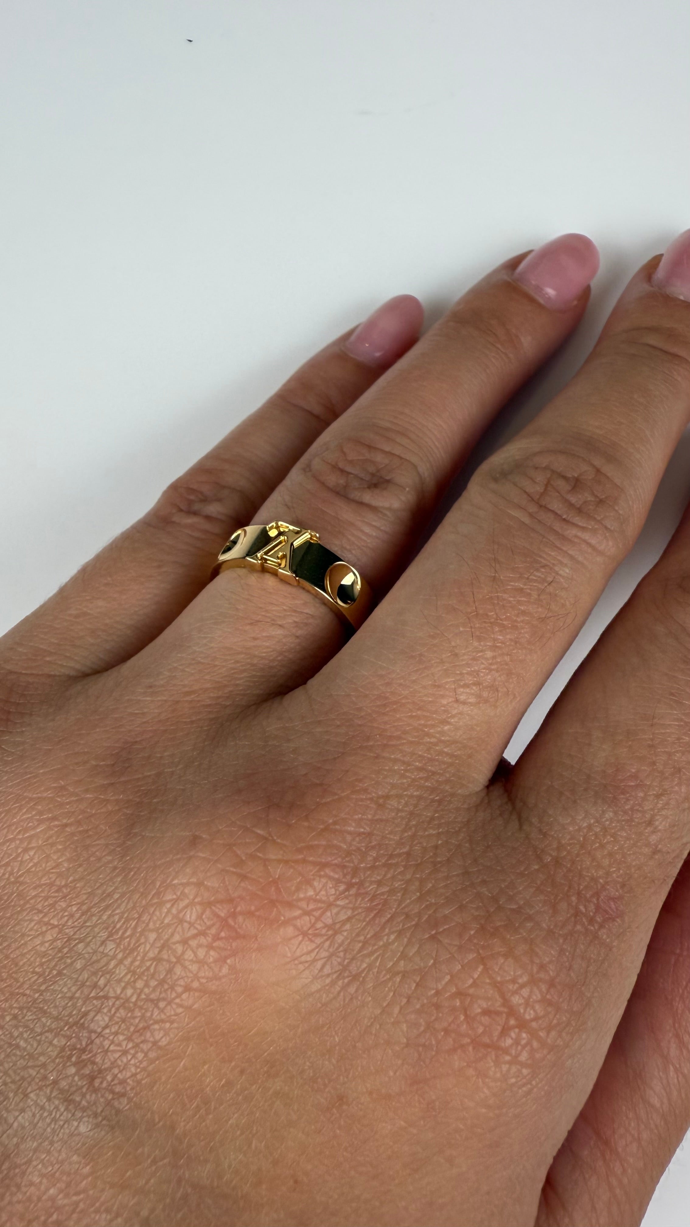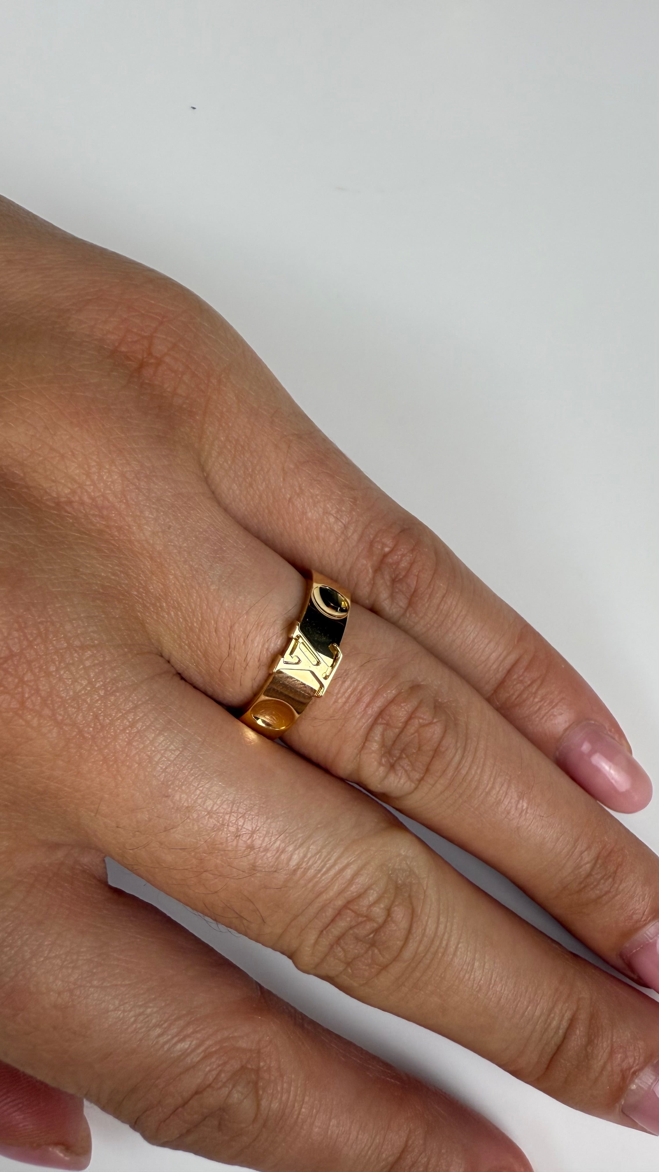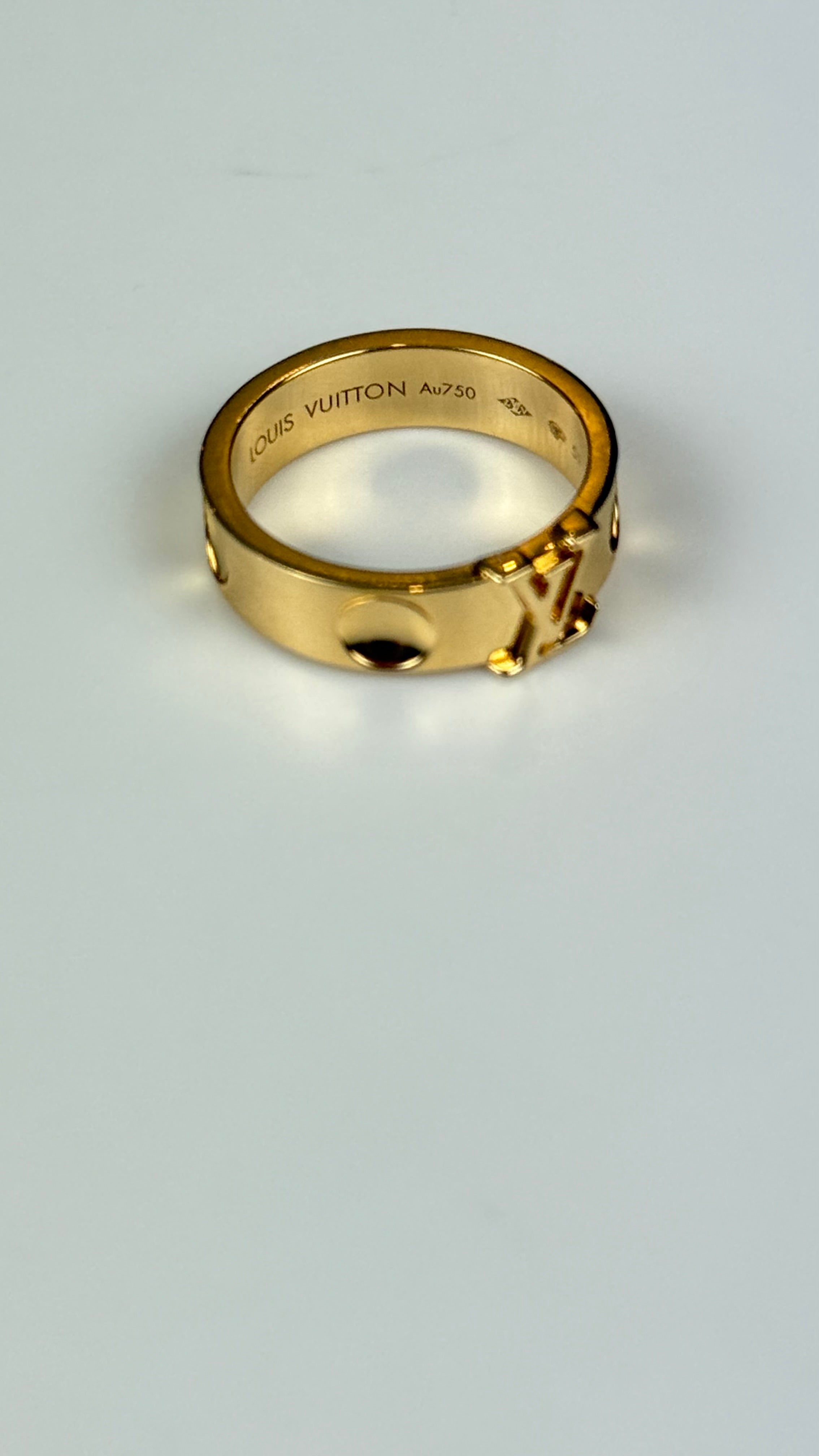 O anel Empreinte da Louis Vuitton é uma joia atemporal, marcada pelos cavados circulares que remetem aos rebites das malas da maison e pelo detalhe central com o LV inicial icônico.