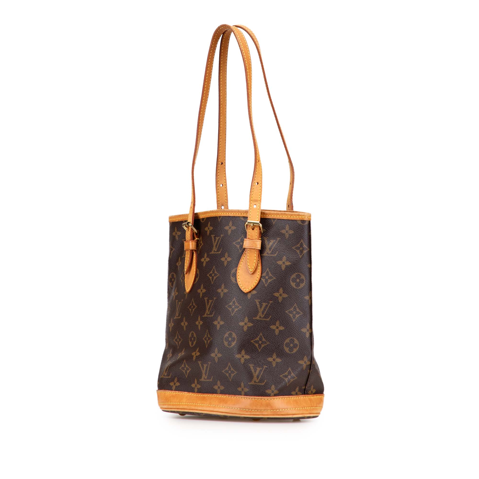 - DimensõesClássica, prática e com o charme intemporal da Louis Vuitton, a Petit Bucket é uma das bolsas mais icónicas da marca. Confeccionada em resistente Monogram Canvas, esta peça combina durabilidade com elegância discreta.