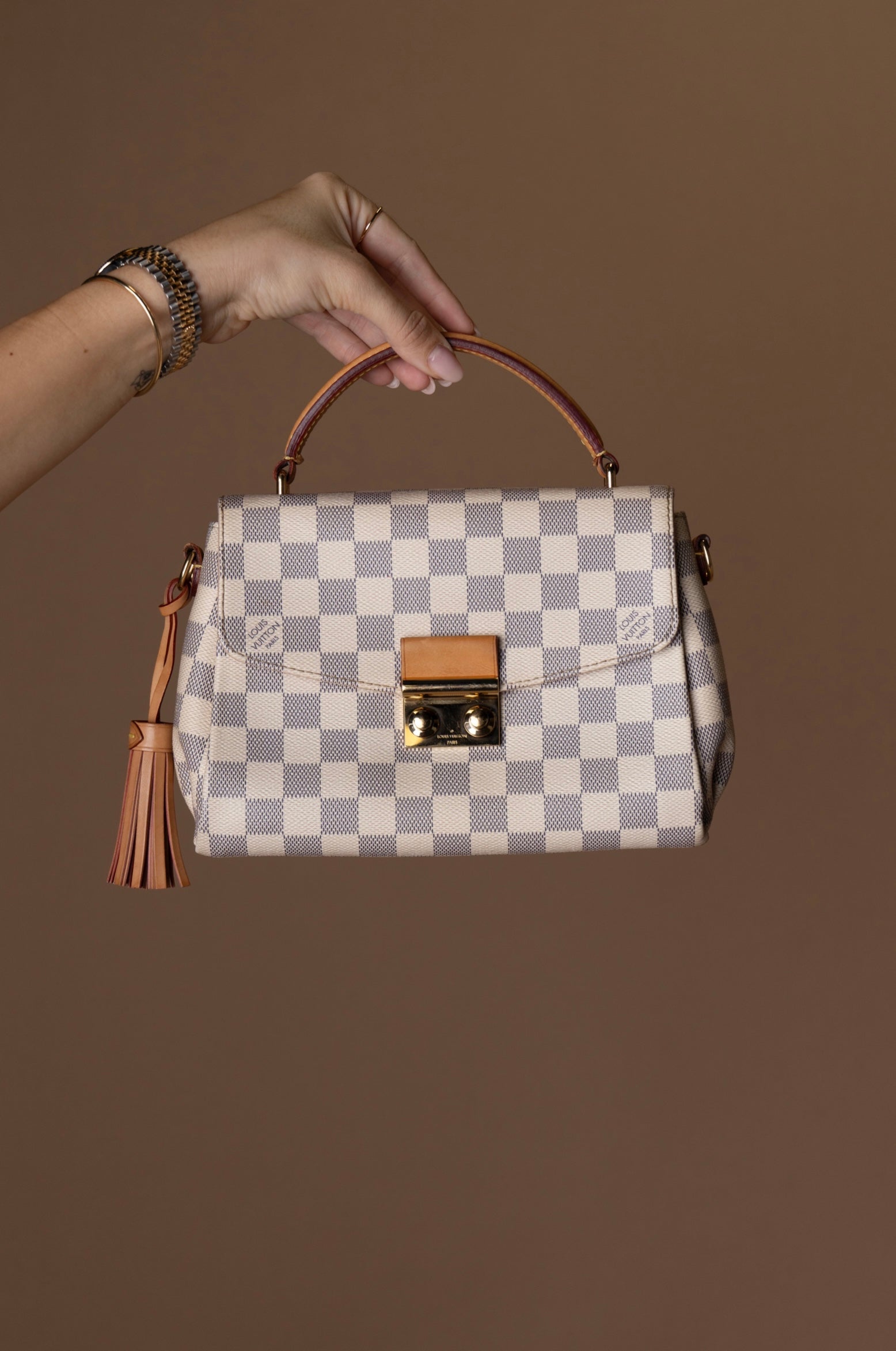 A bolsa Louis Vuitton Croisette em Damier Azur é uma peça compacta e elegante, ideal para ocasiões casuais e sofisticadas. Com um design moderno e detalhes refinados, ela combina funcionalidade com o estilo icônico da marca.