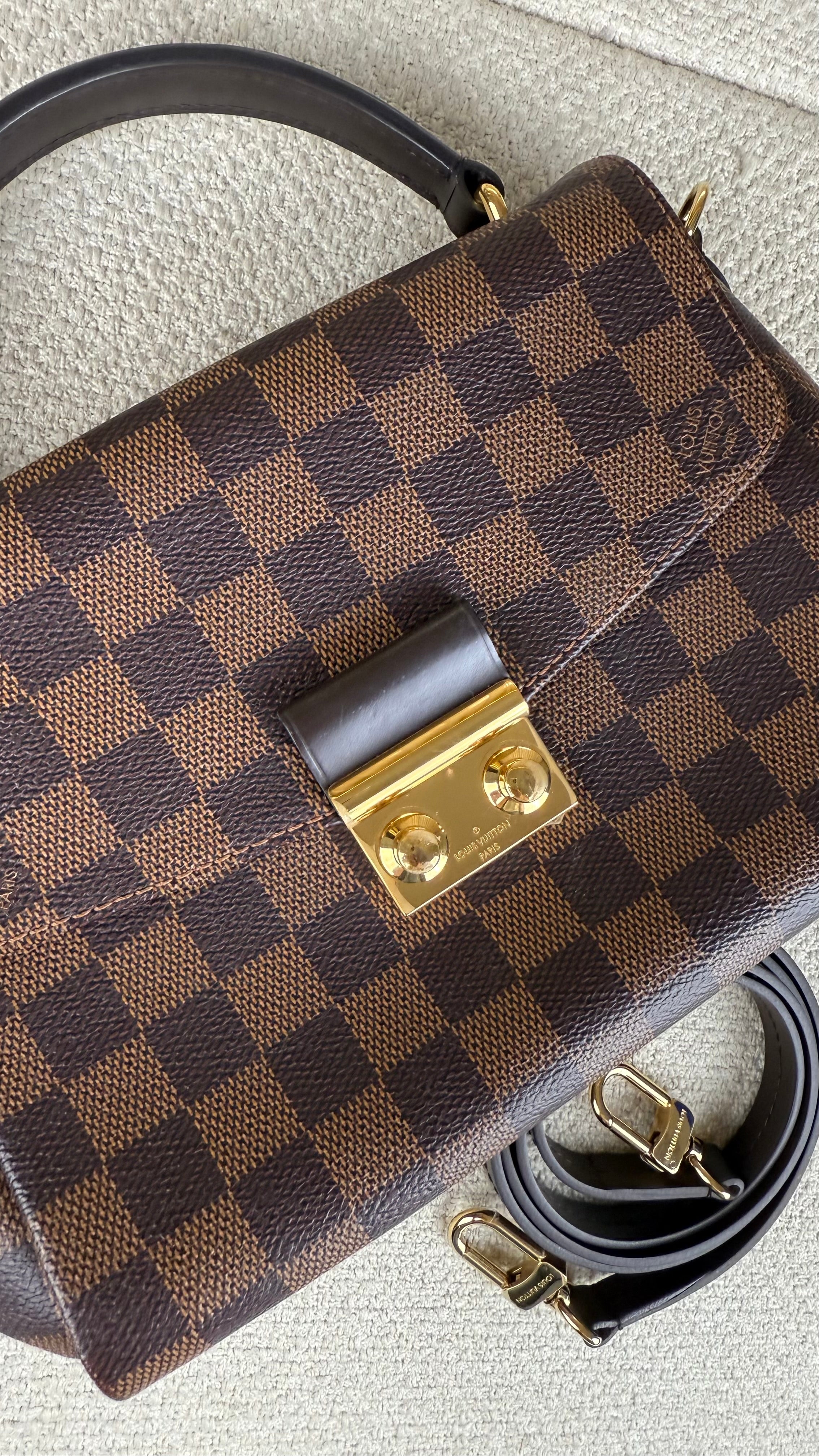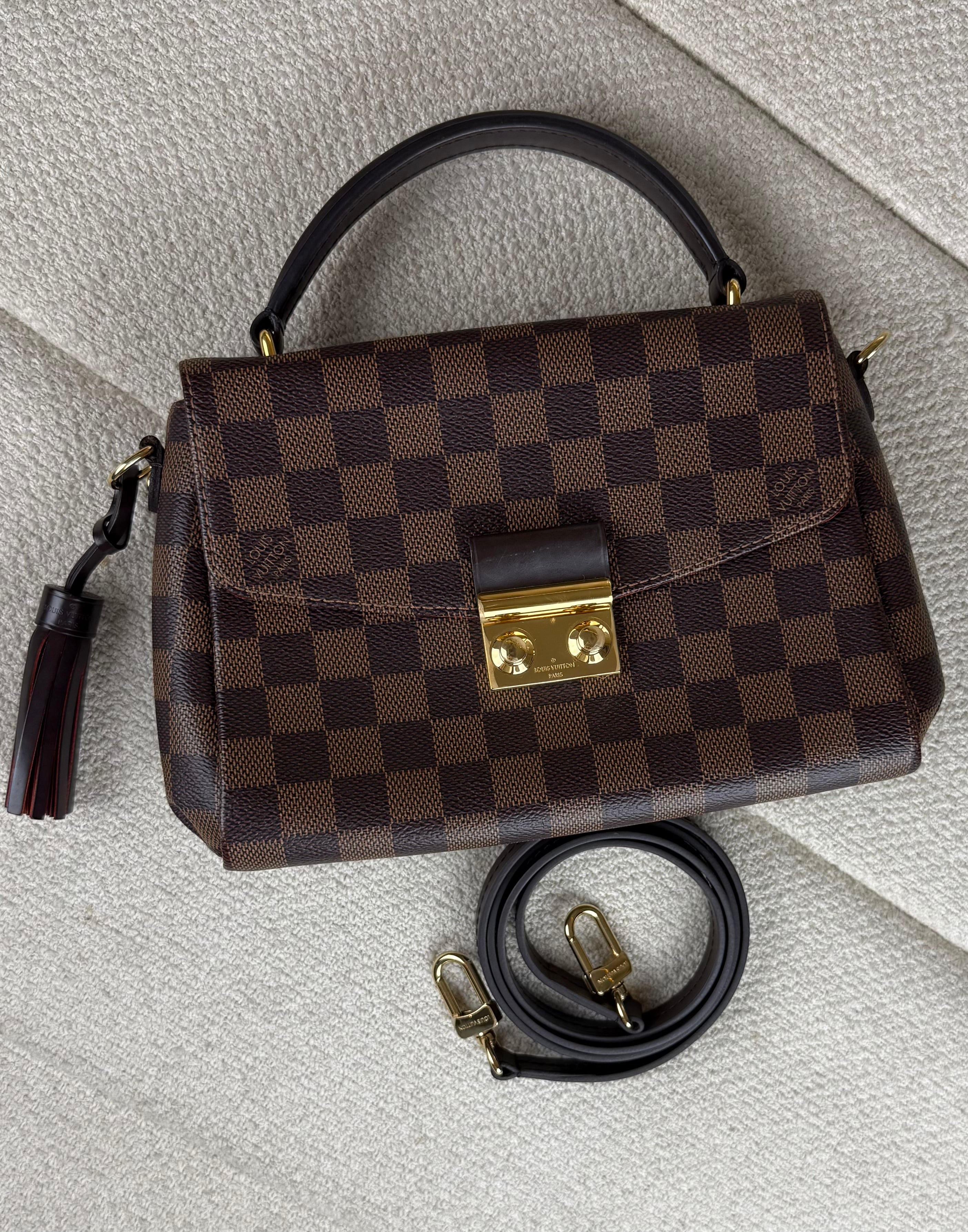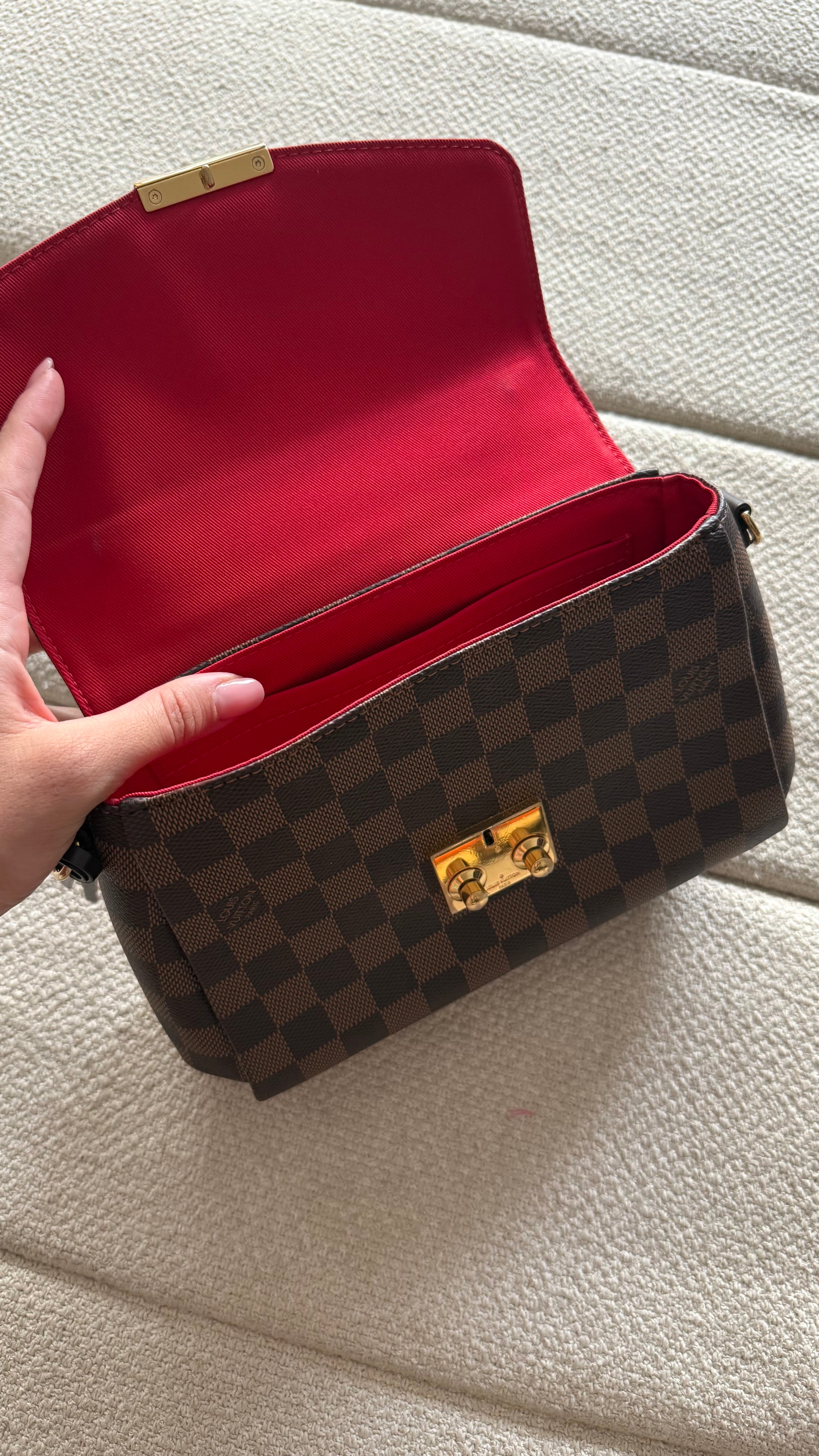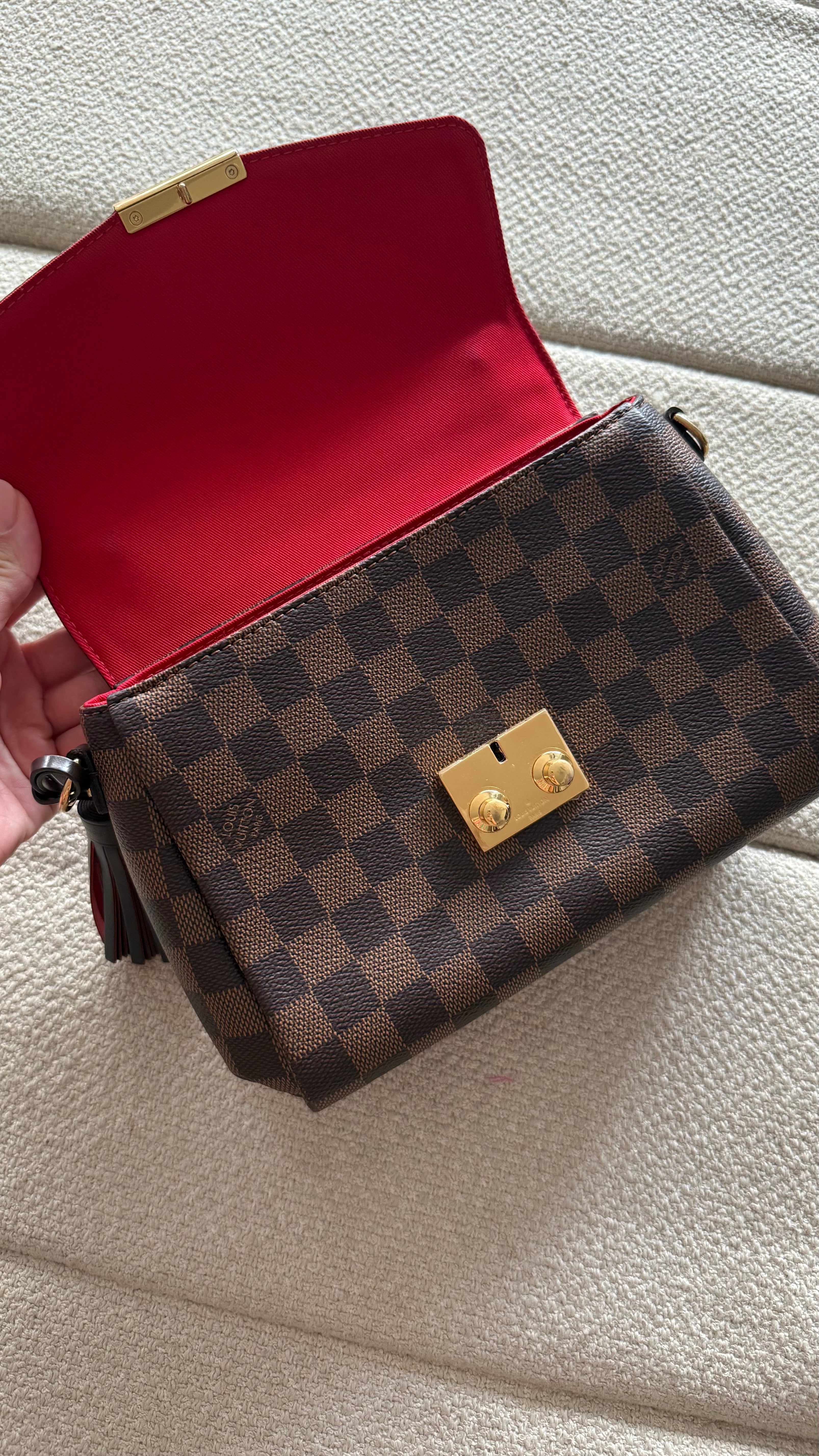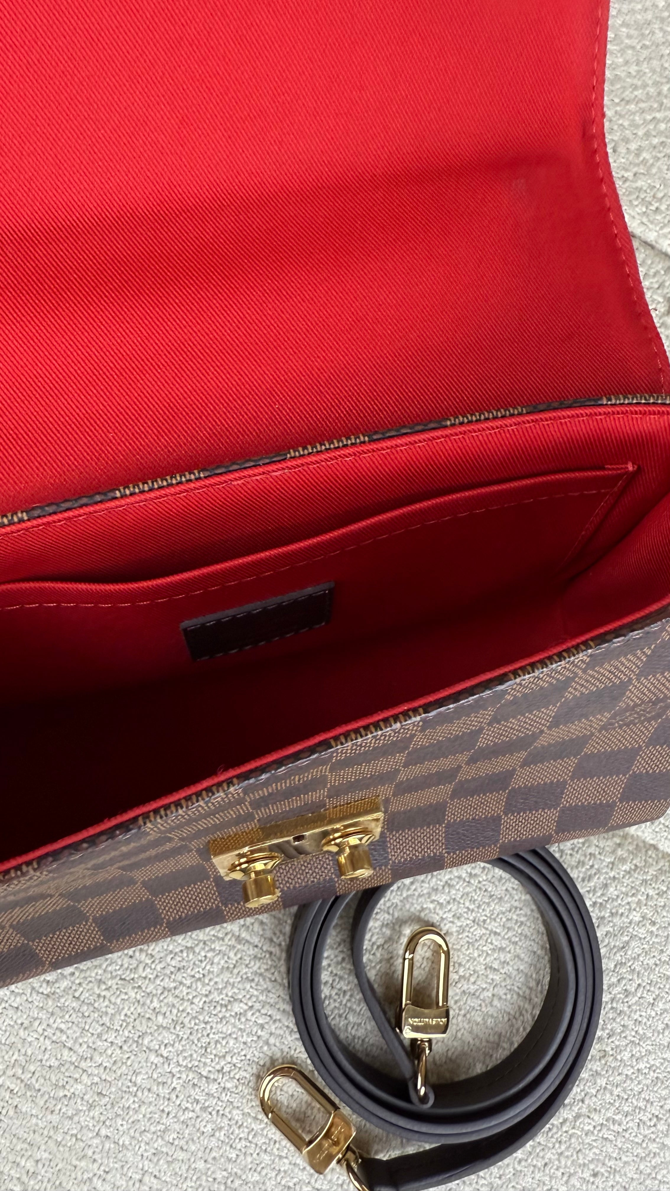 A Croisette é um modelo pequeno, mas estruturado, que se destaca pelo seu design sofisticado e funcional. Feita em canvas Damier Ebene, um dos padrões clássicos da Louis Vuitton, a bolsa combina elegância atemporal com praticidade contemporânea.