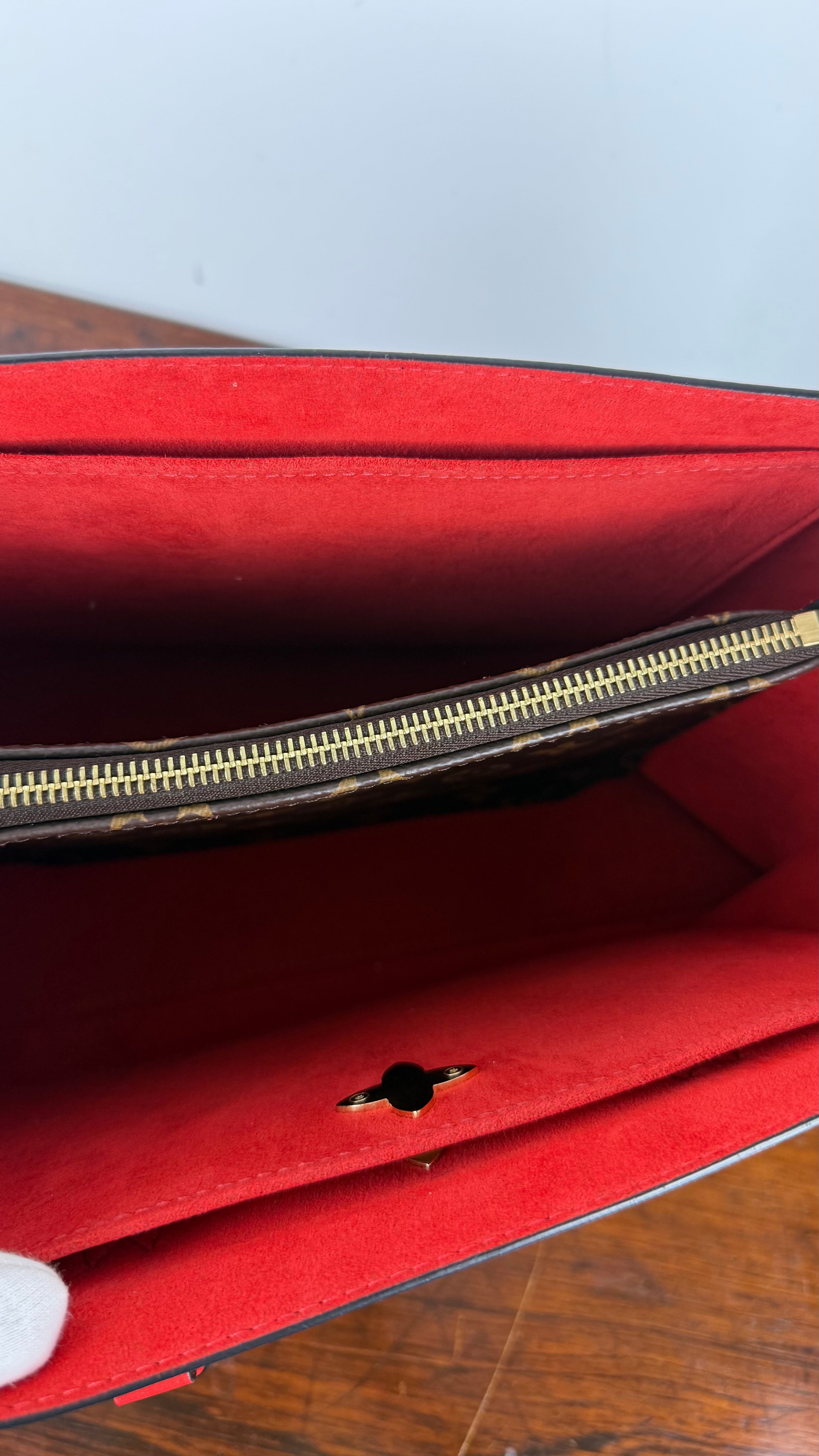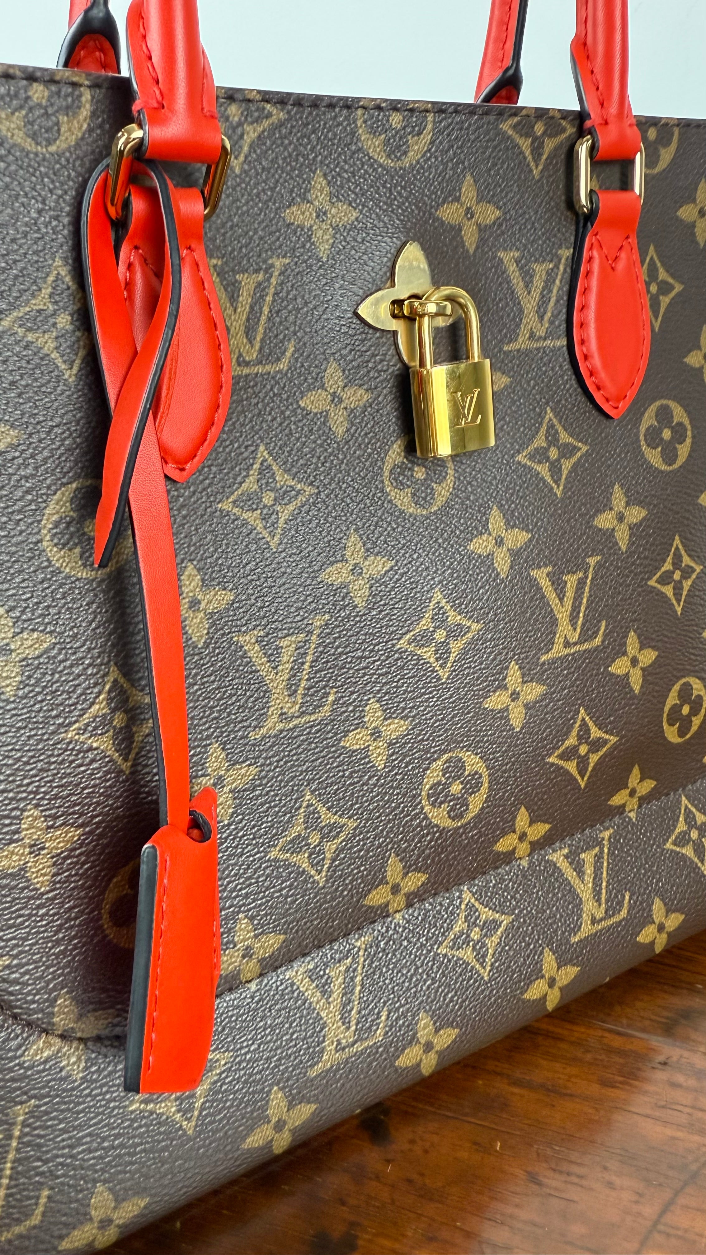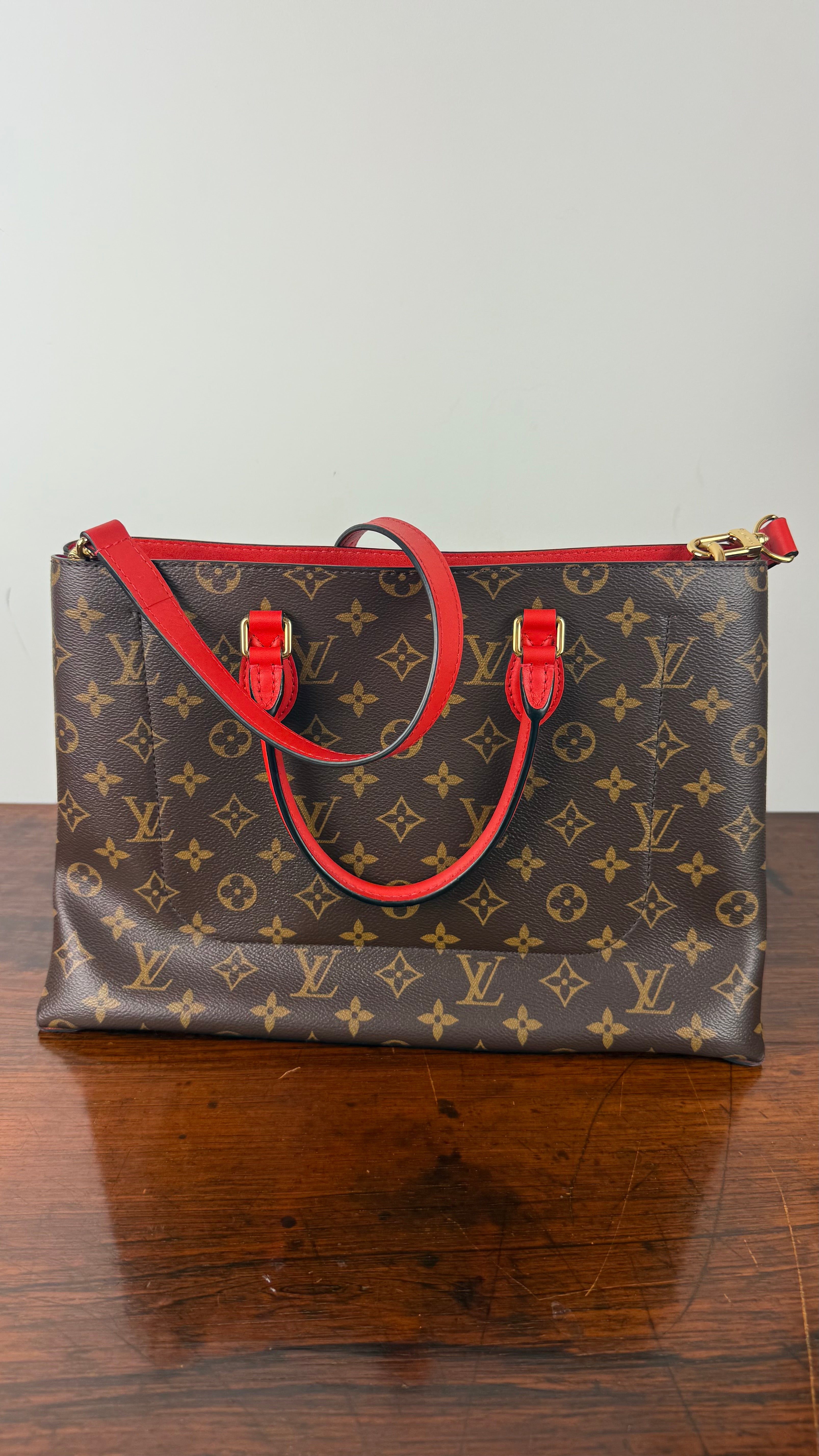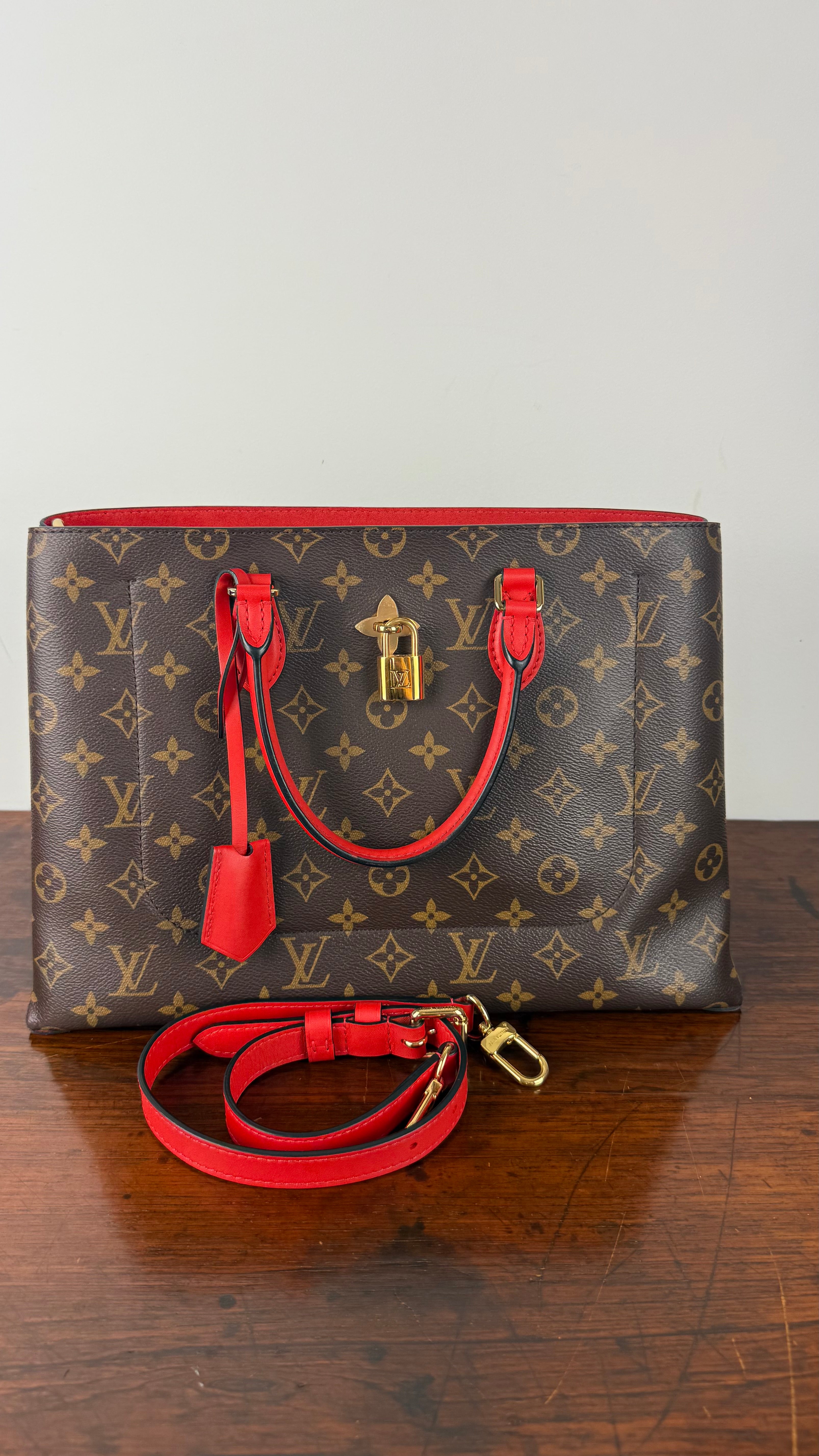 - CorCanvas Monogram clássico com detalhes em pele vermelha (handles, tira e acabamento)