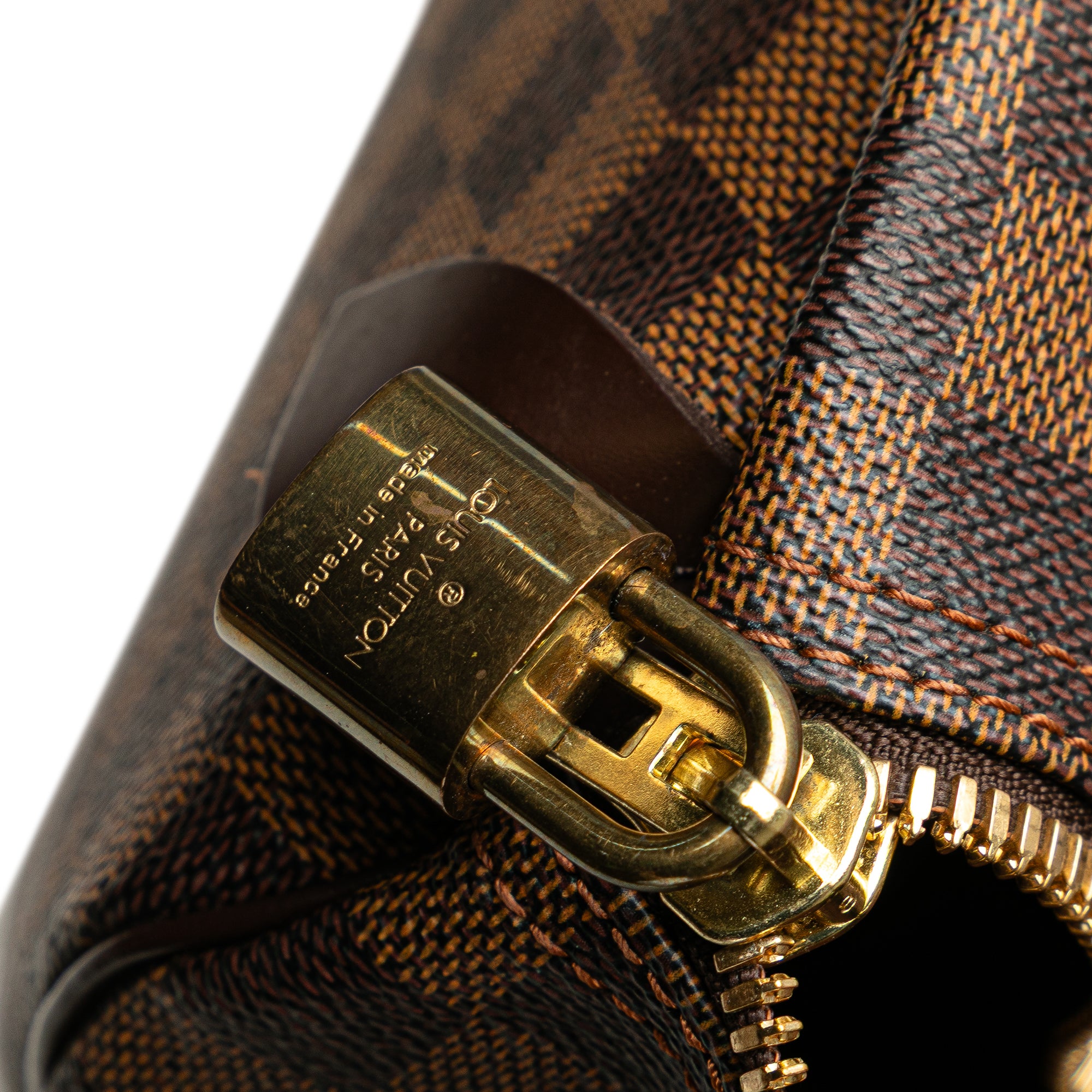 - MaterialLona Damier Ebene com acabamentos em couro natural castanho-escuro